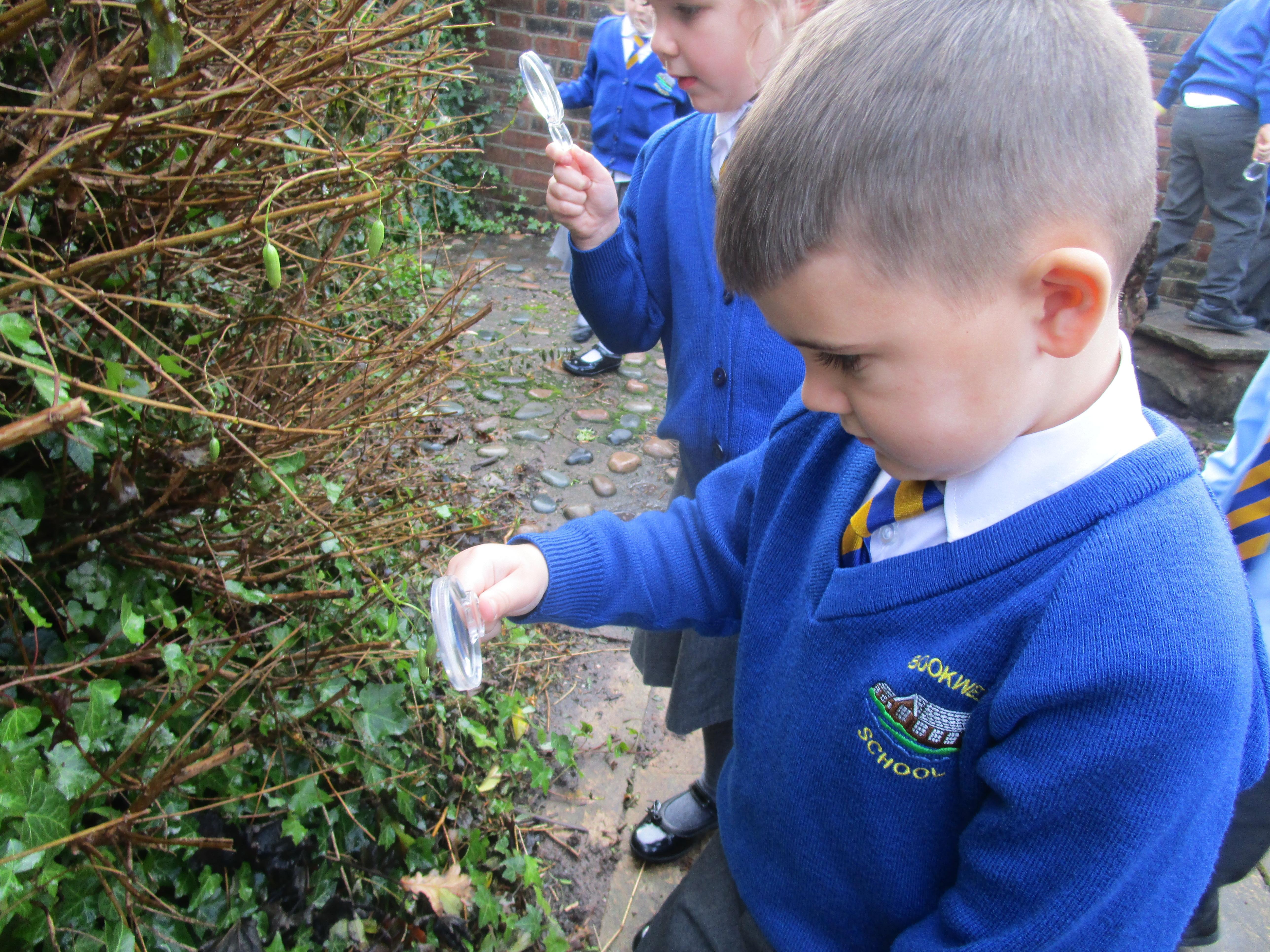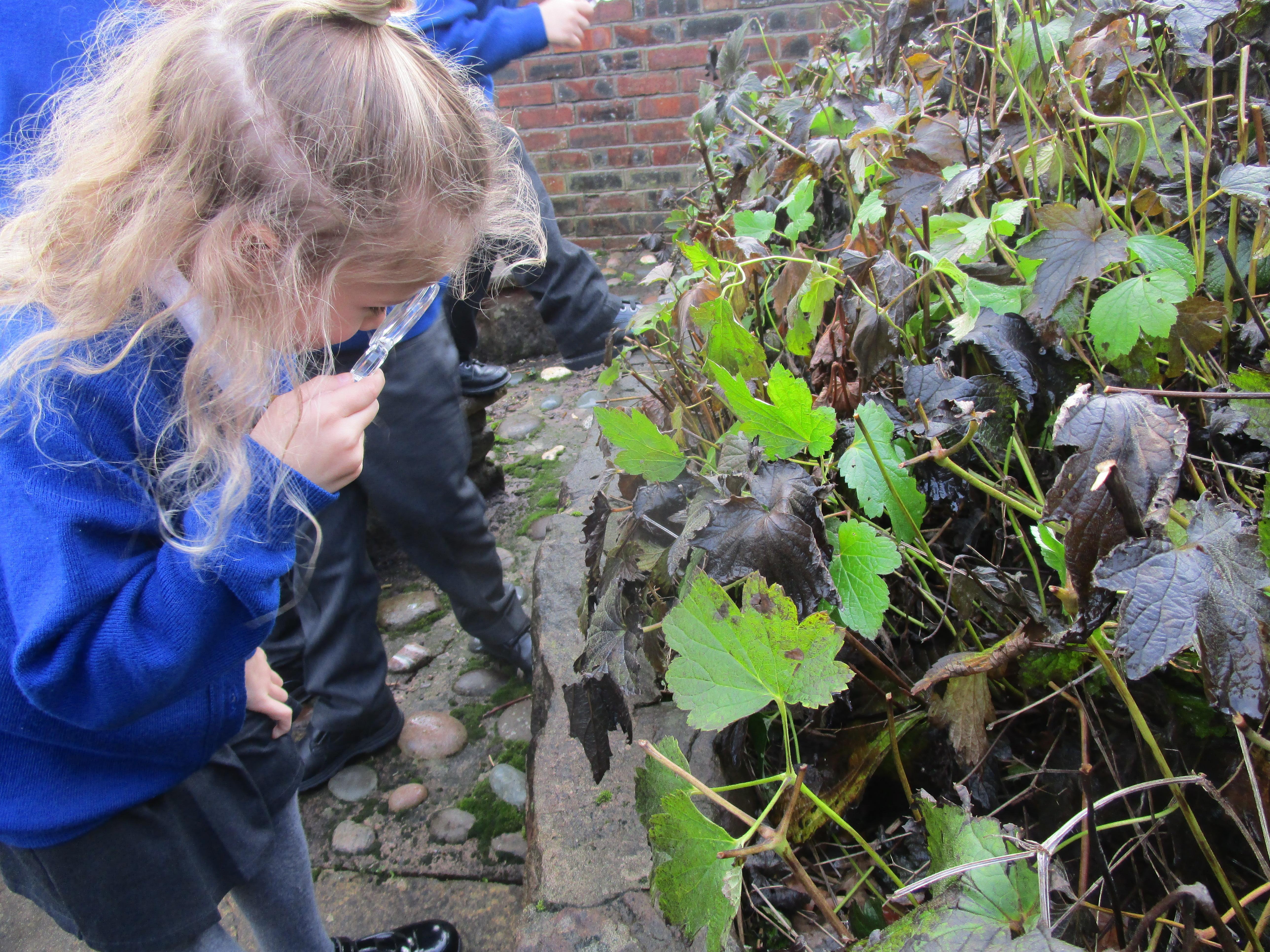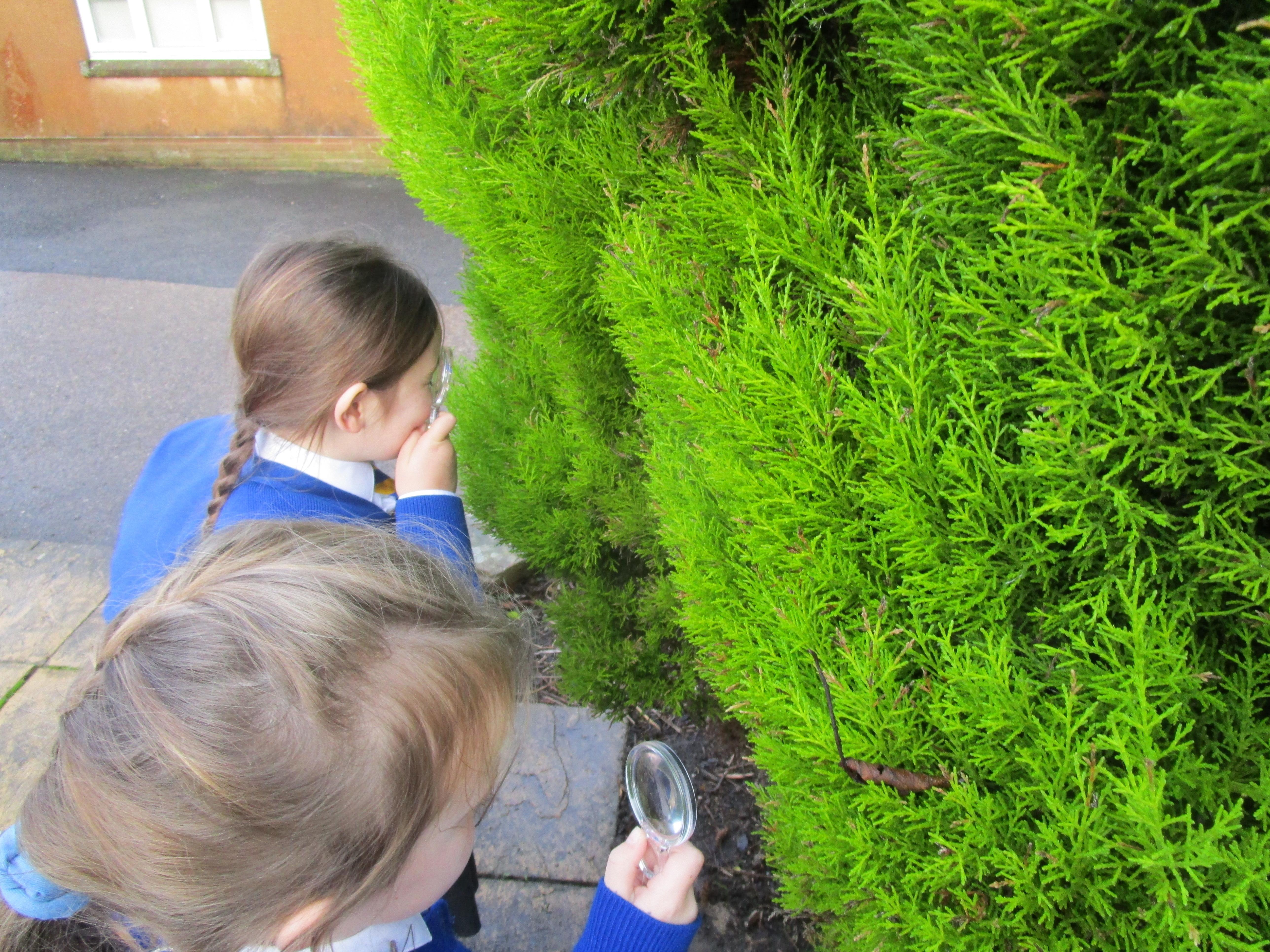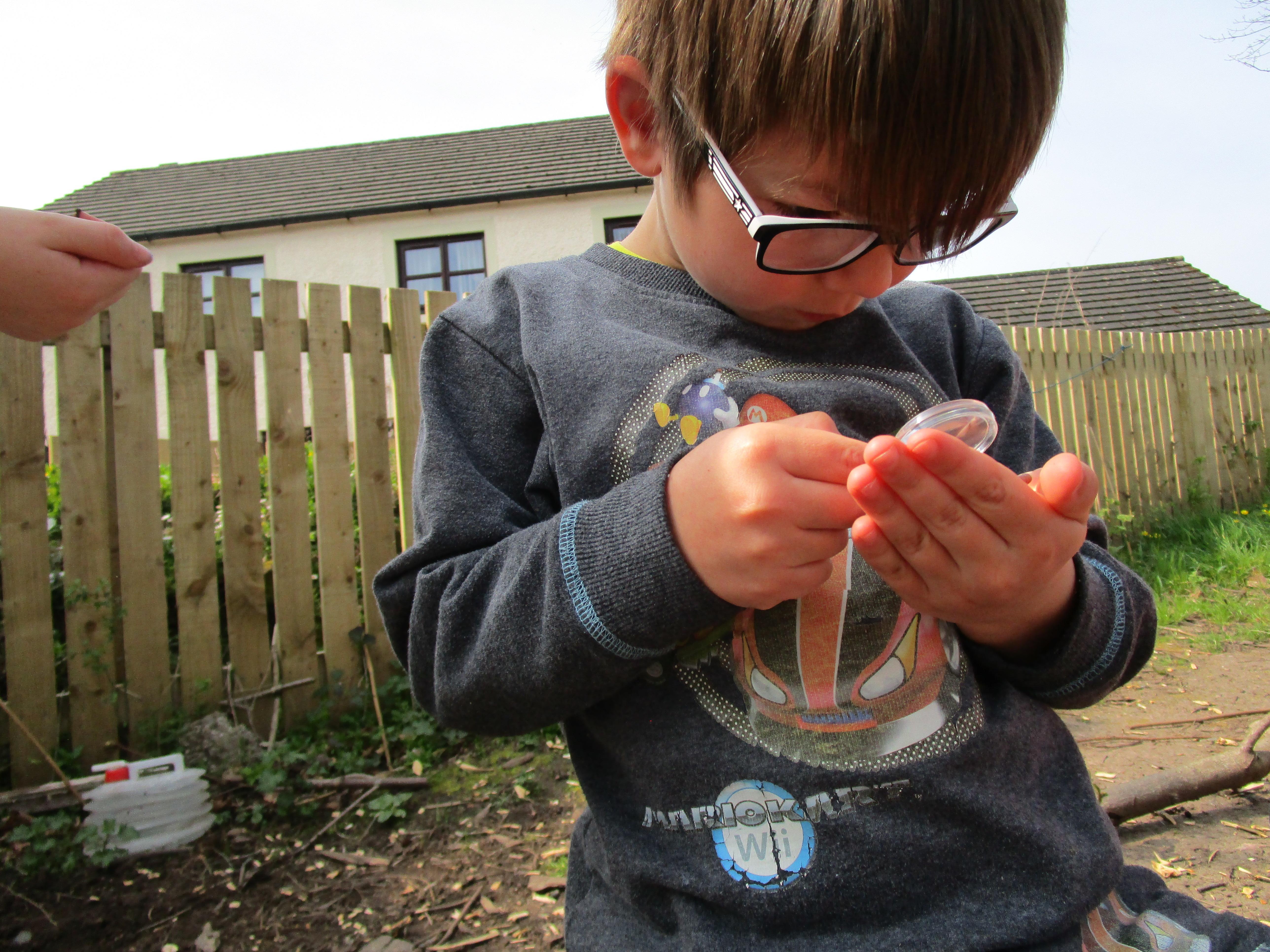 The children were using the magnifying glasses to check if they improved how well they could see something.