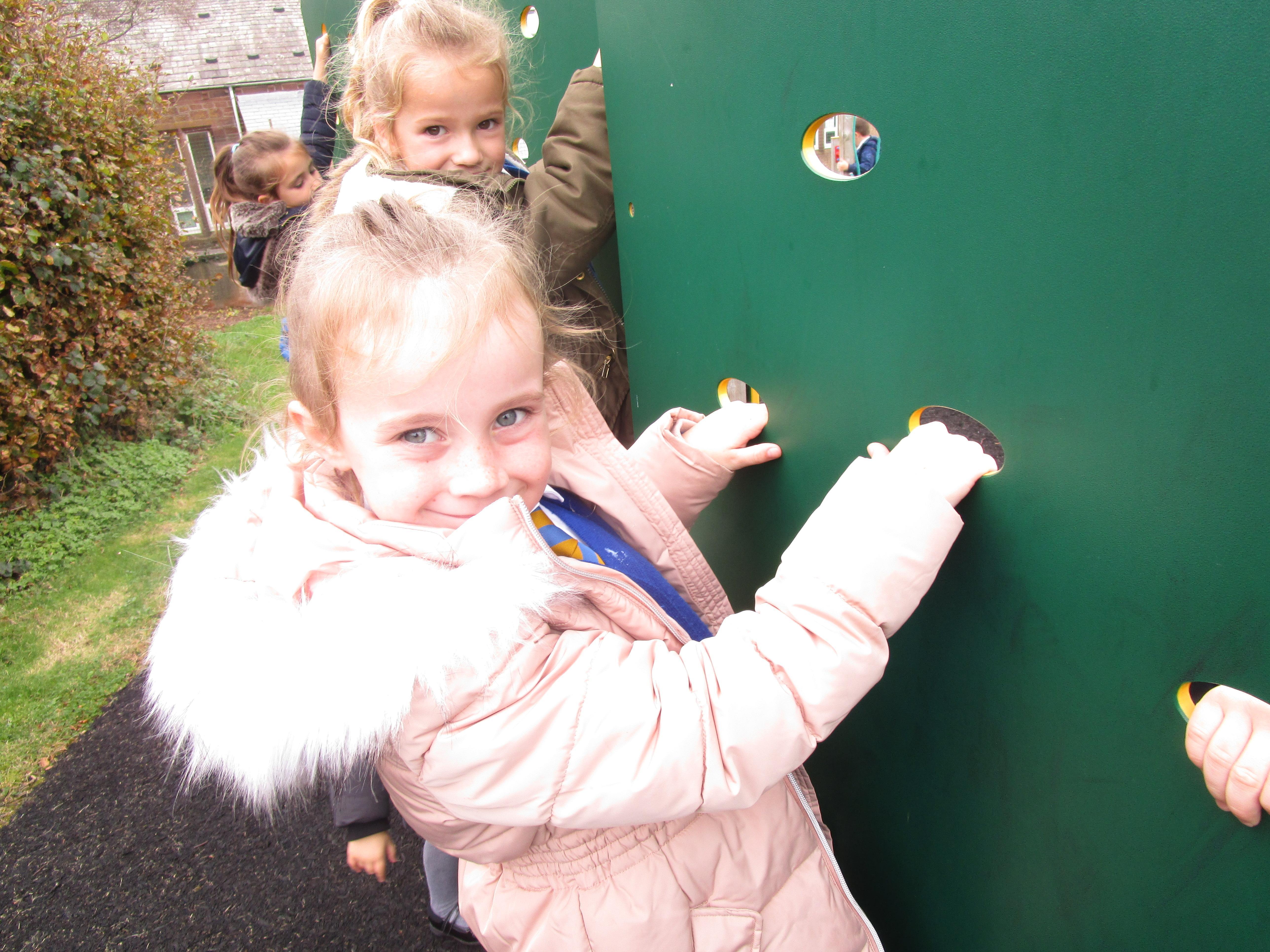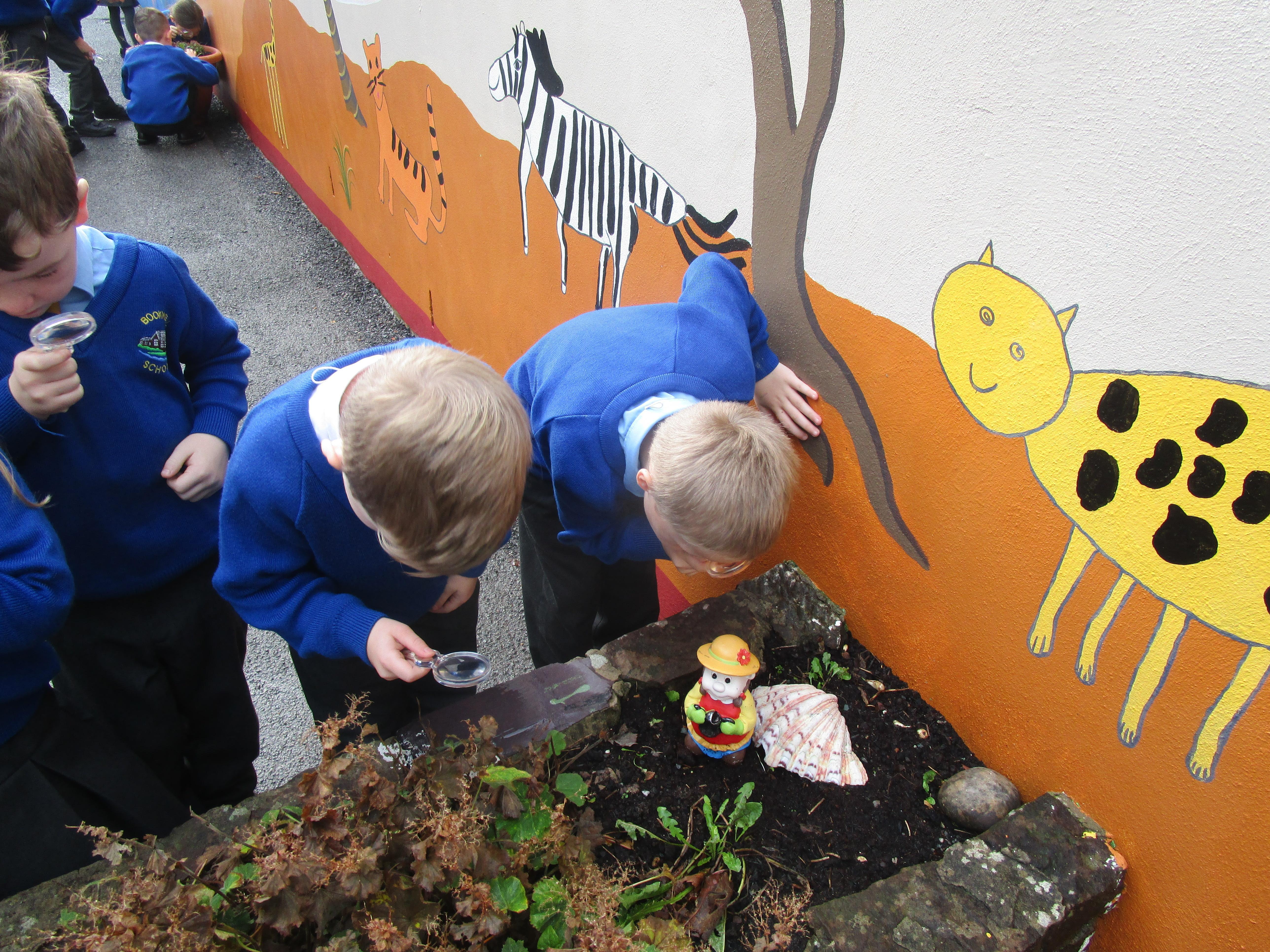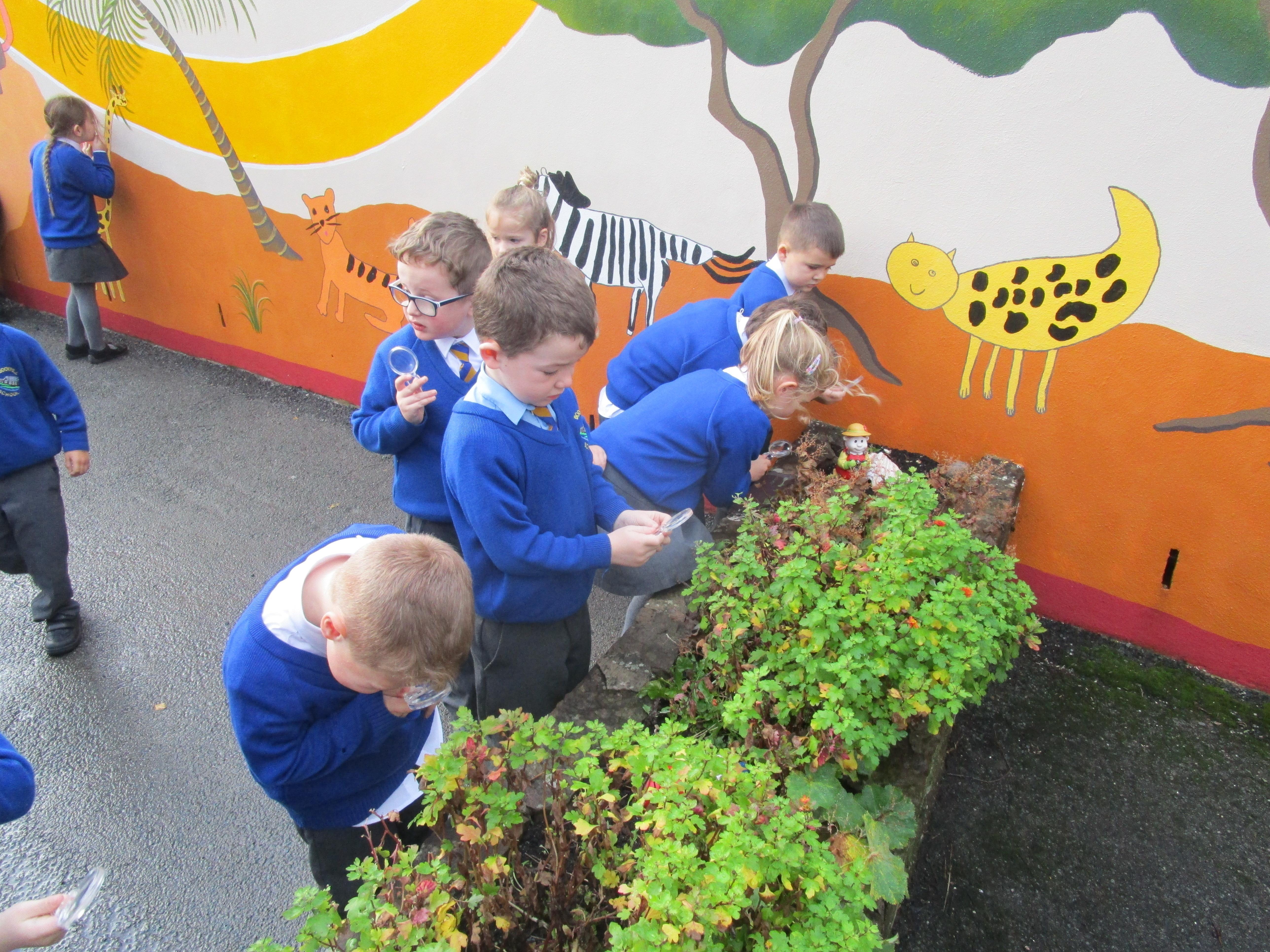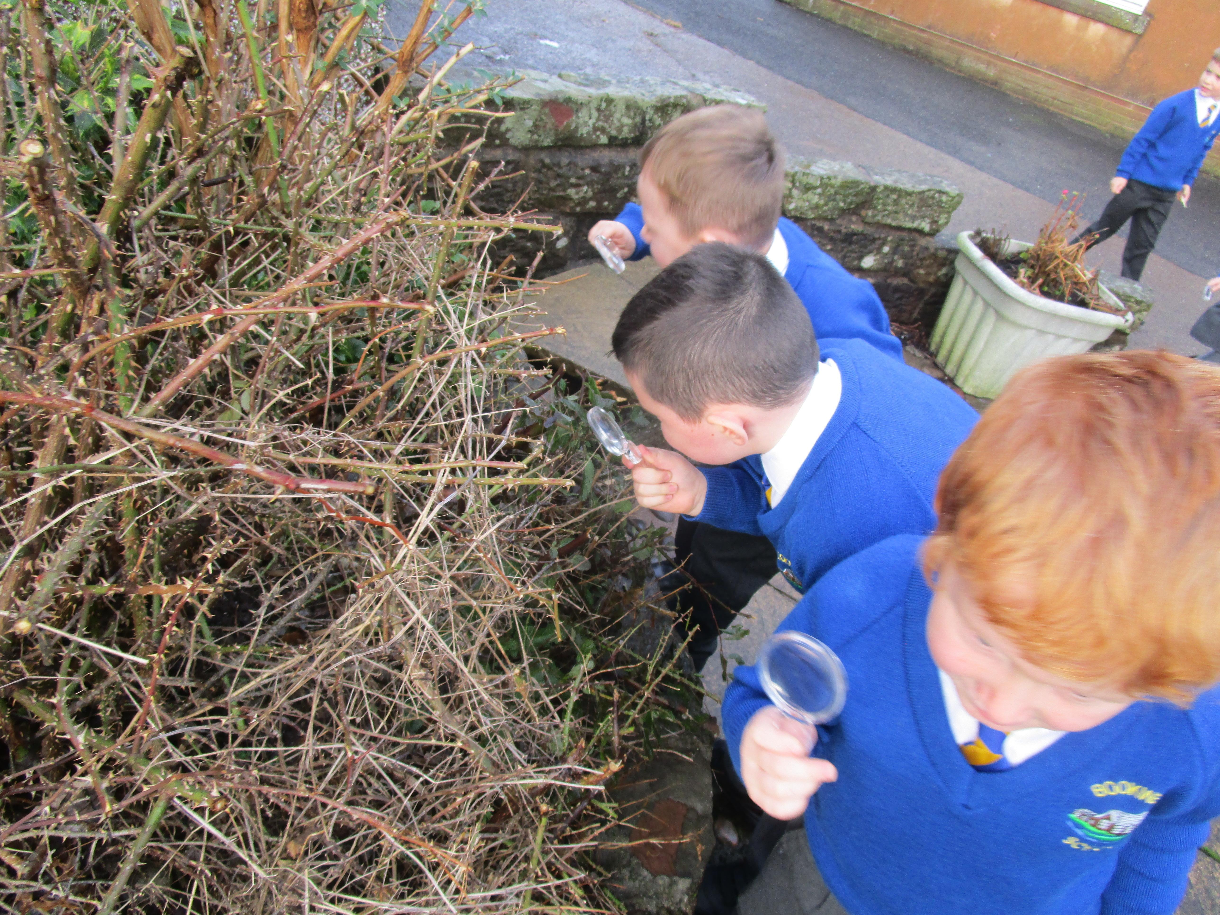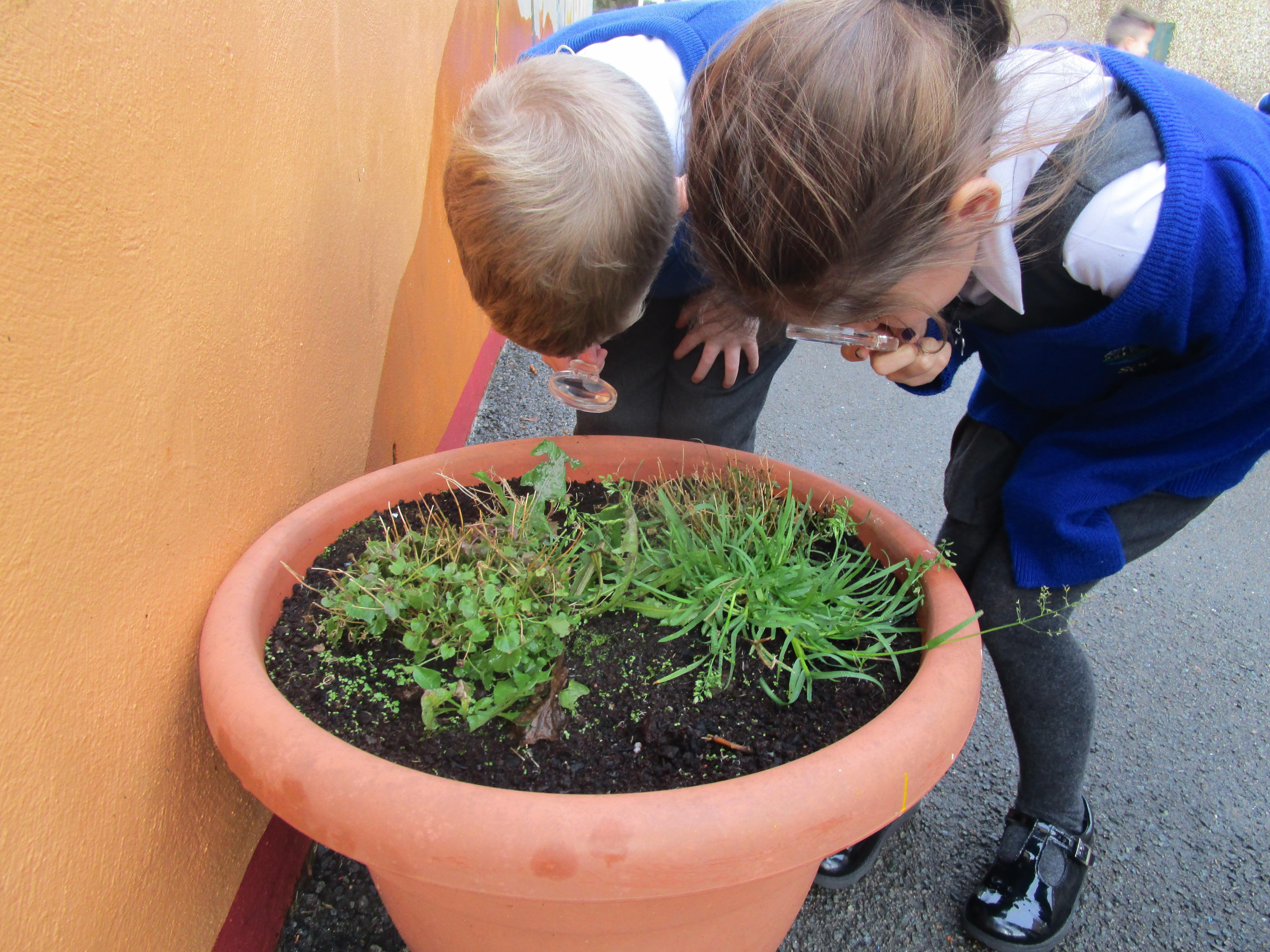 The children were using the magnifying glasses to check if they improved how well they could see something.