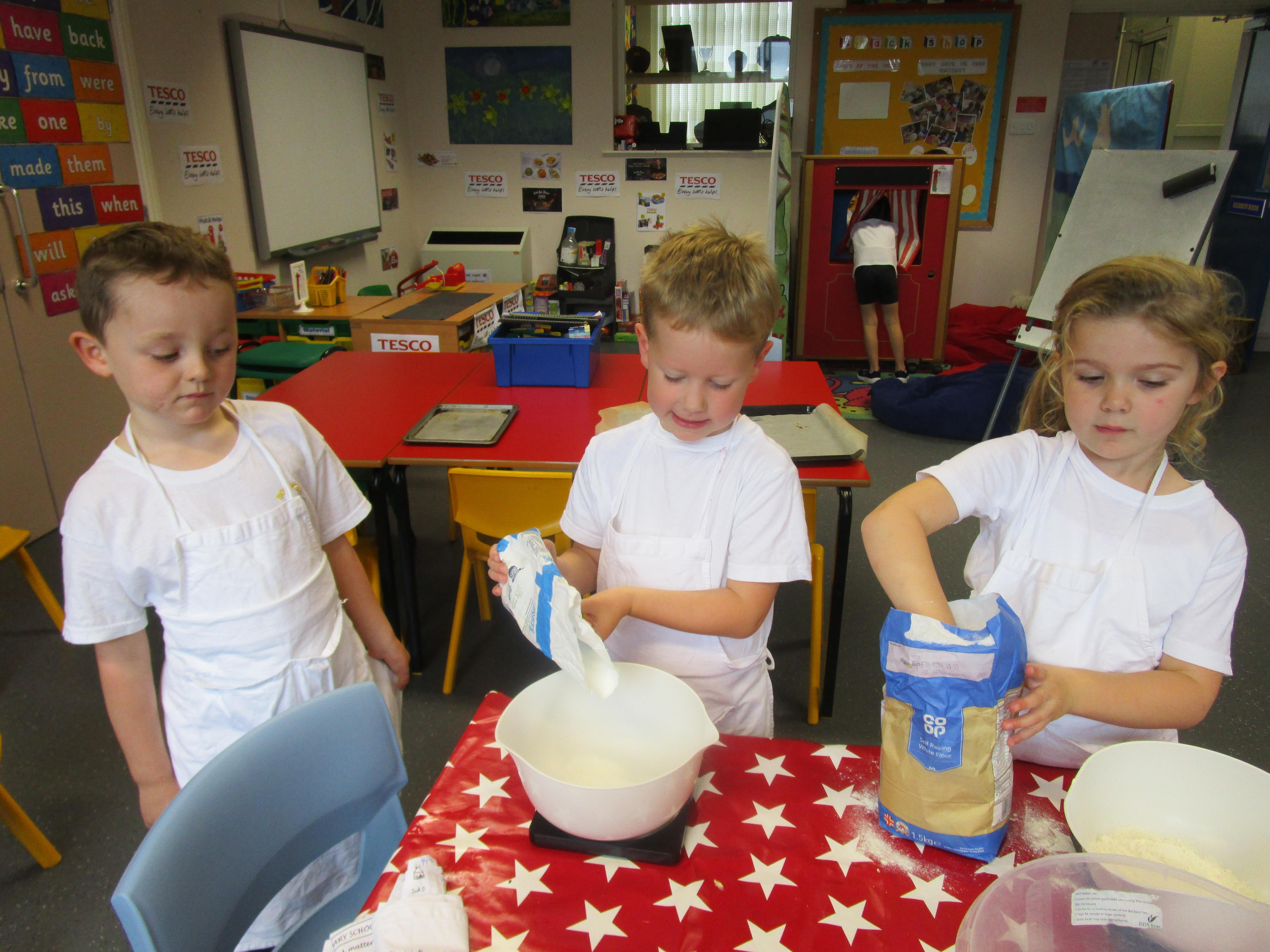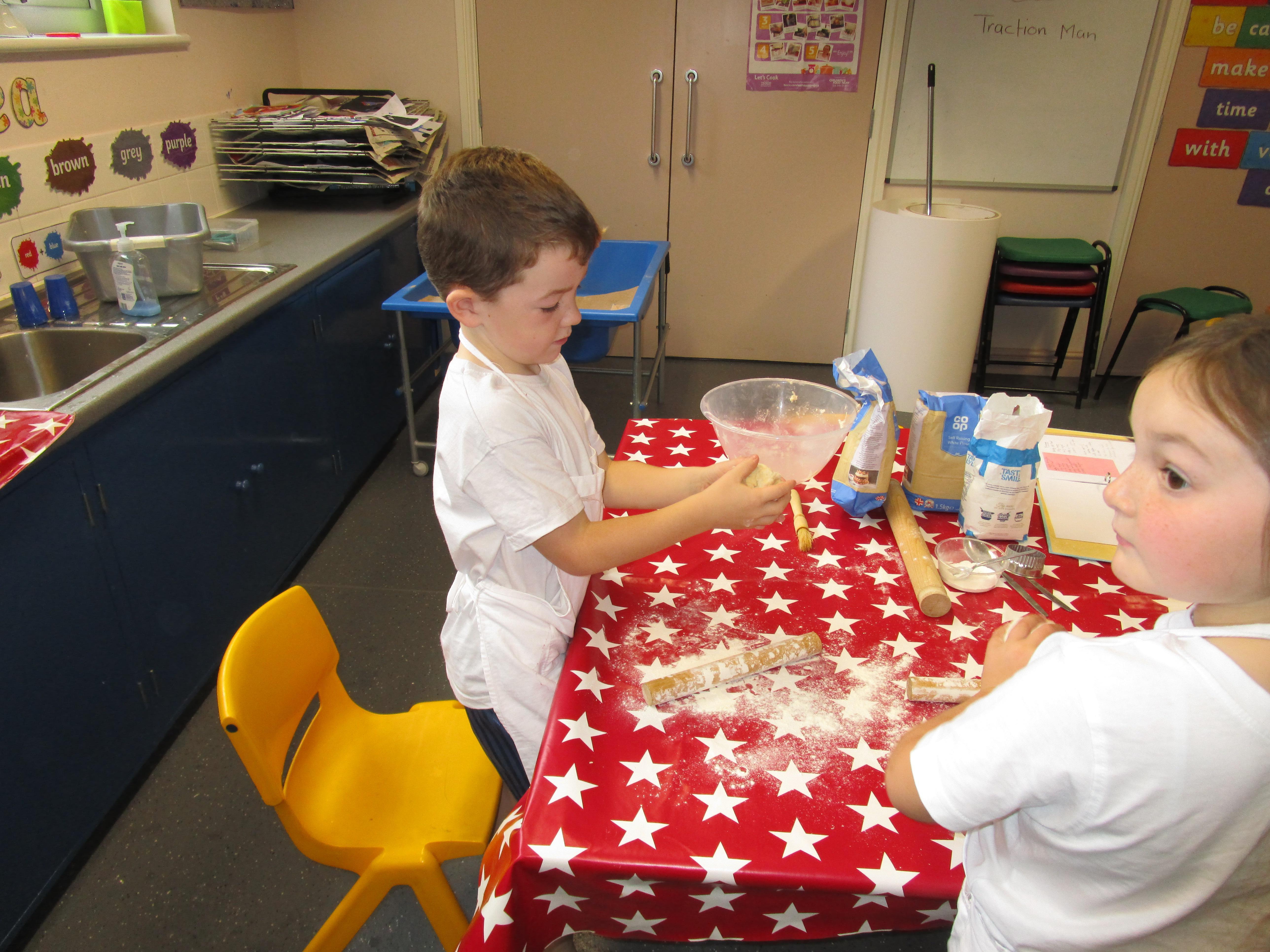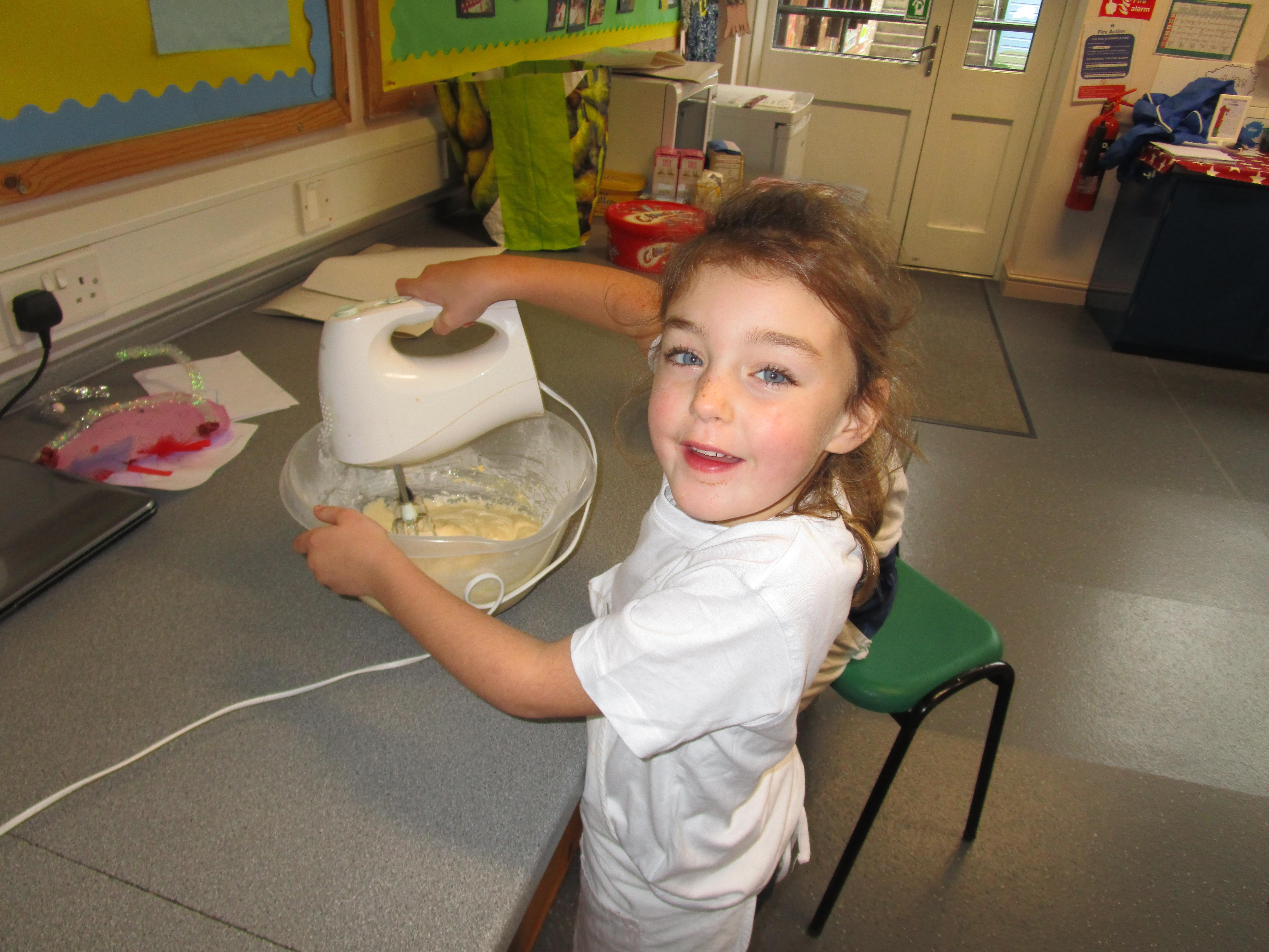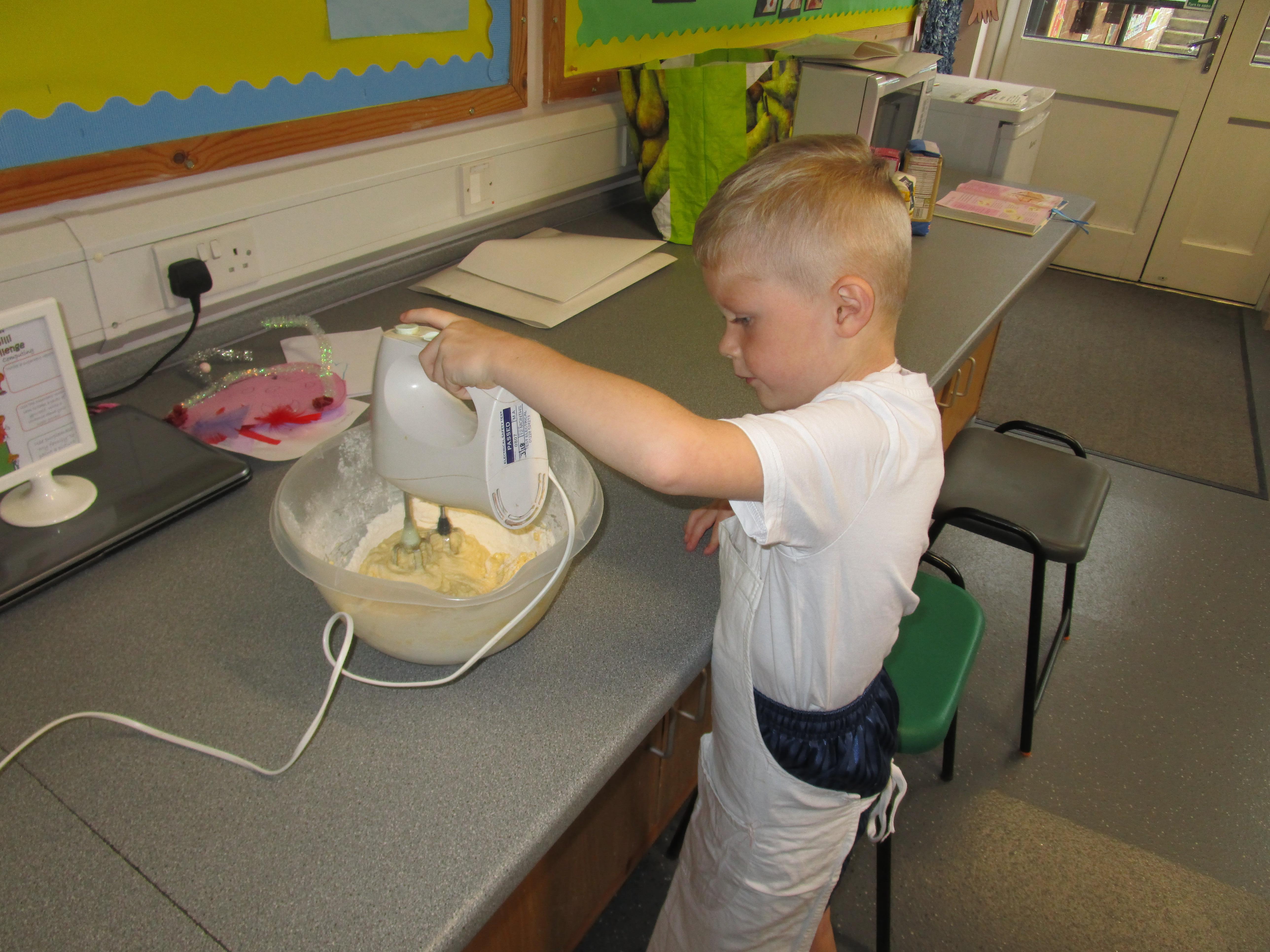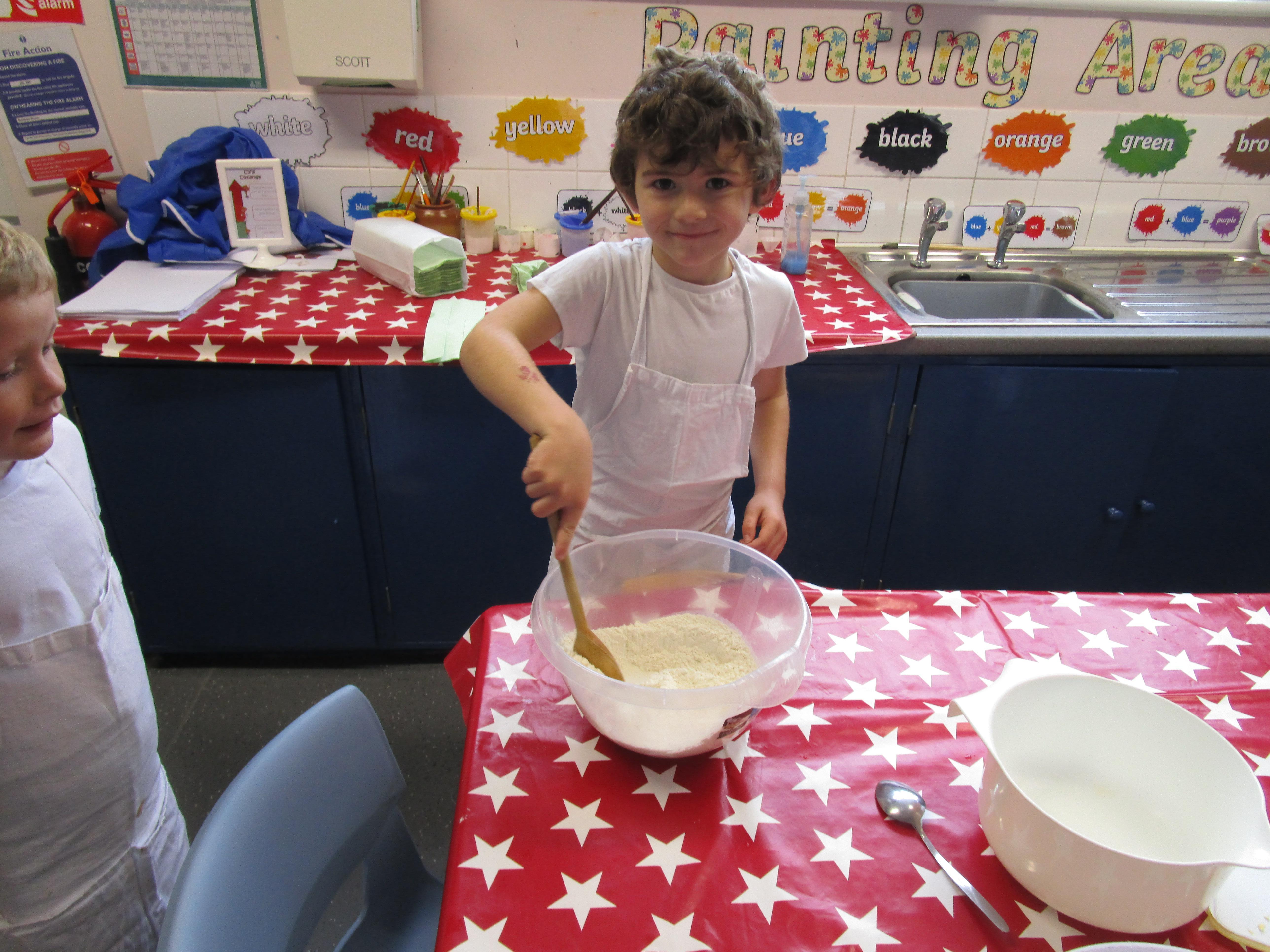 Every week some of the children in class bake in the Rainbow Room with Mrs Morton and prepare food for the other class to eat on Friday afternoon. Every child in class will get the chance to bake several times during the year.