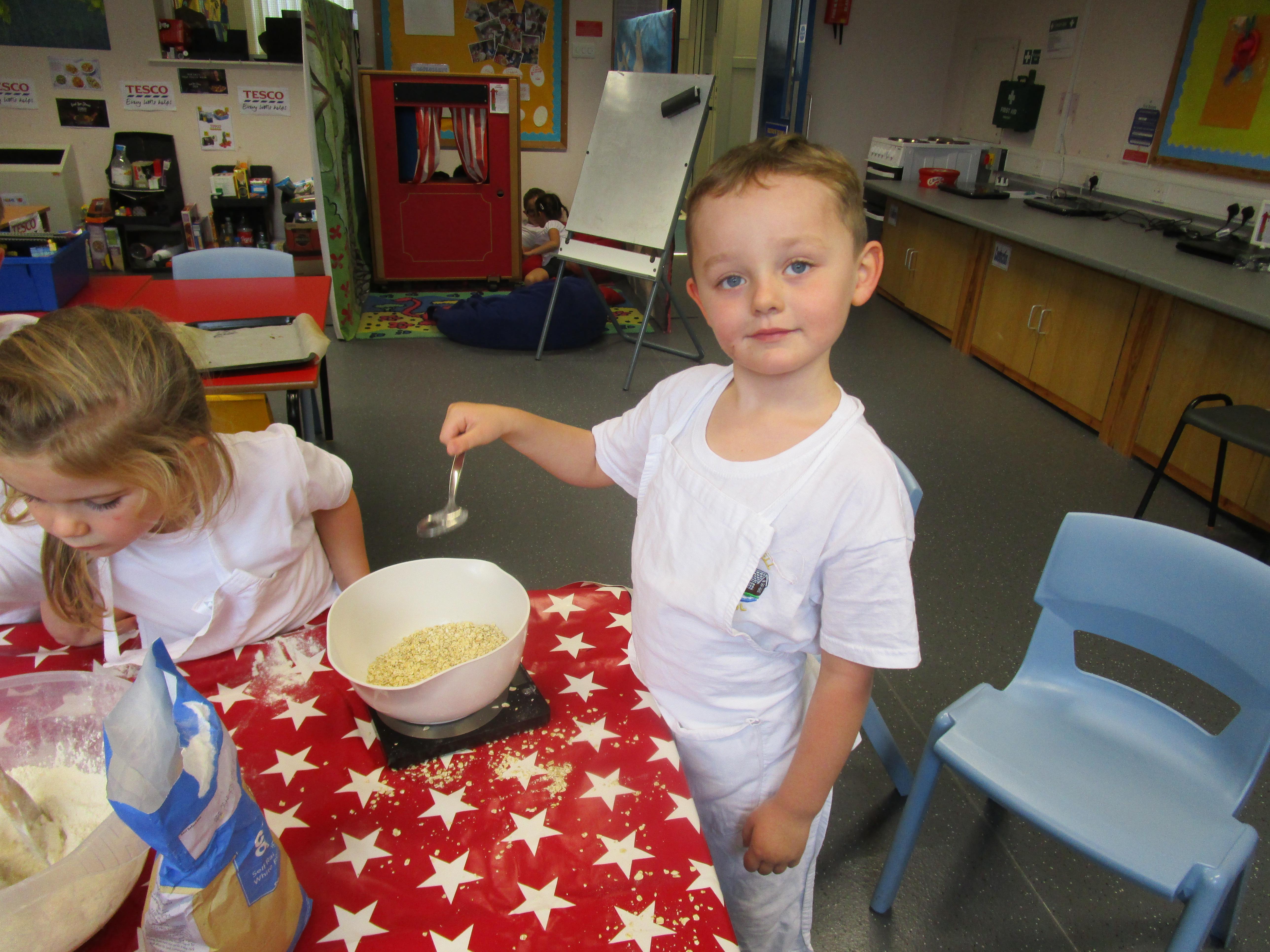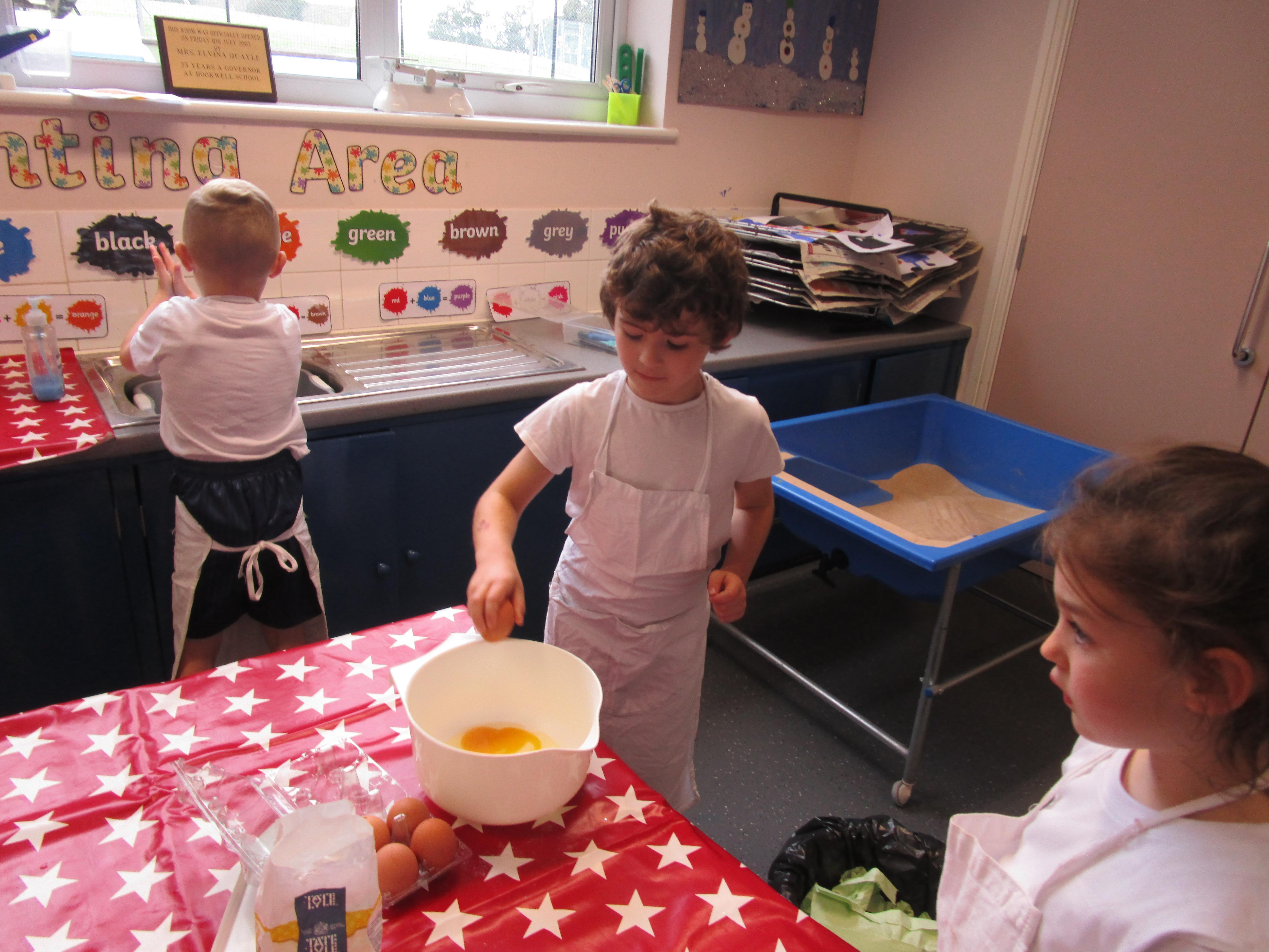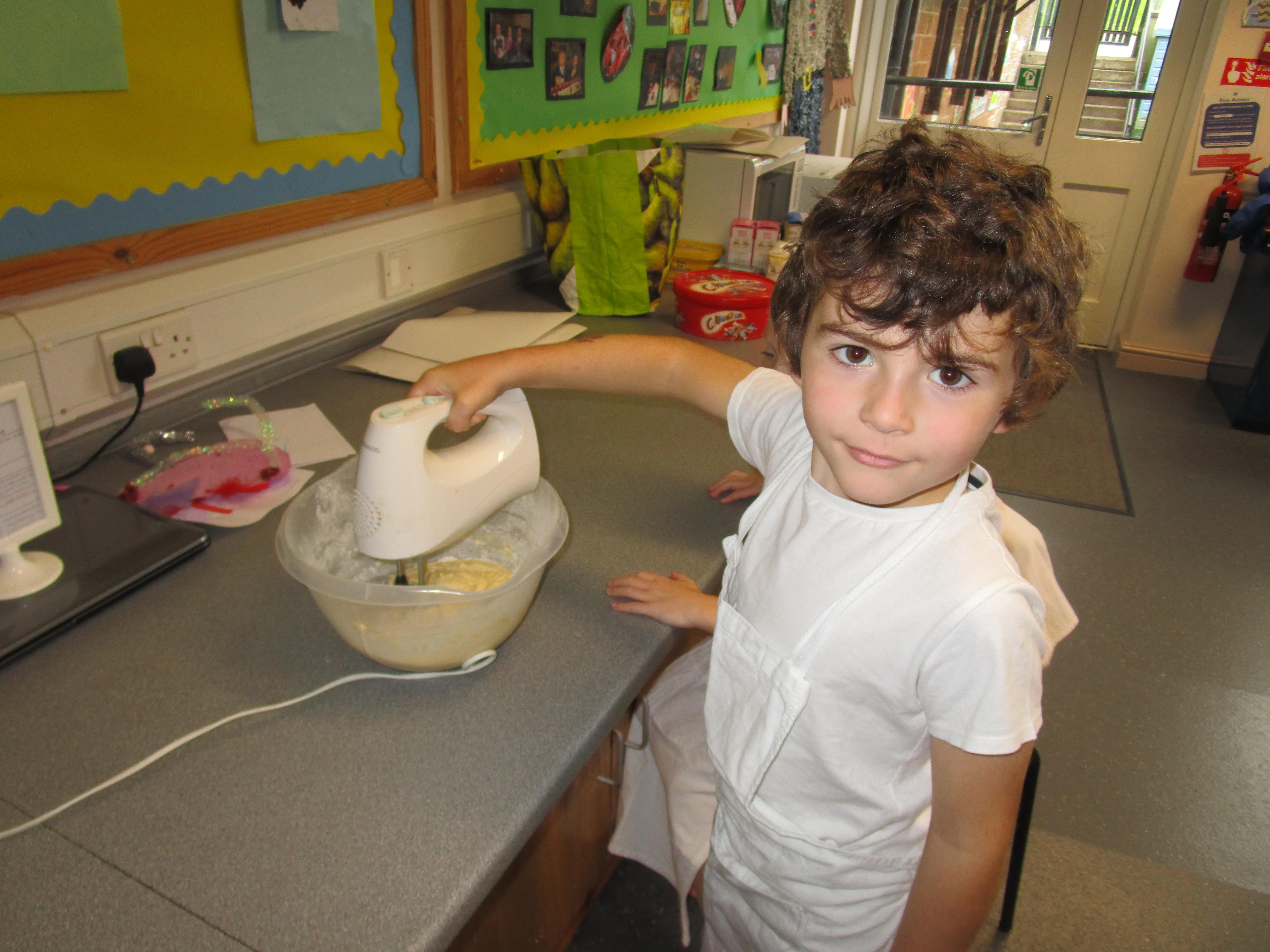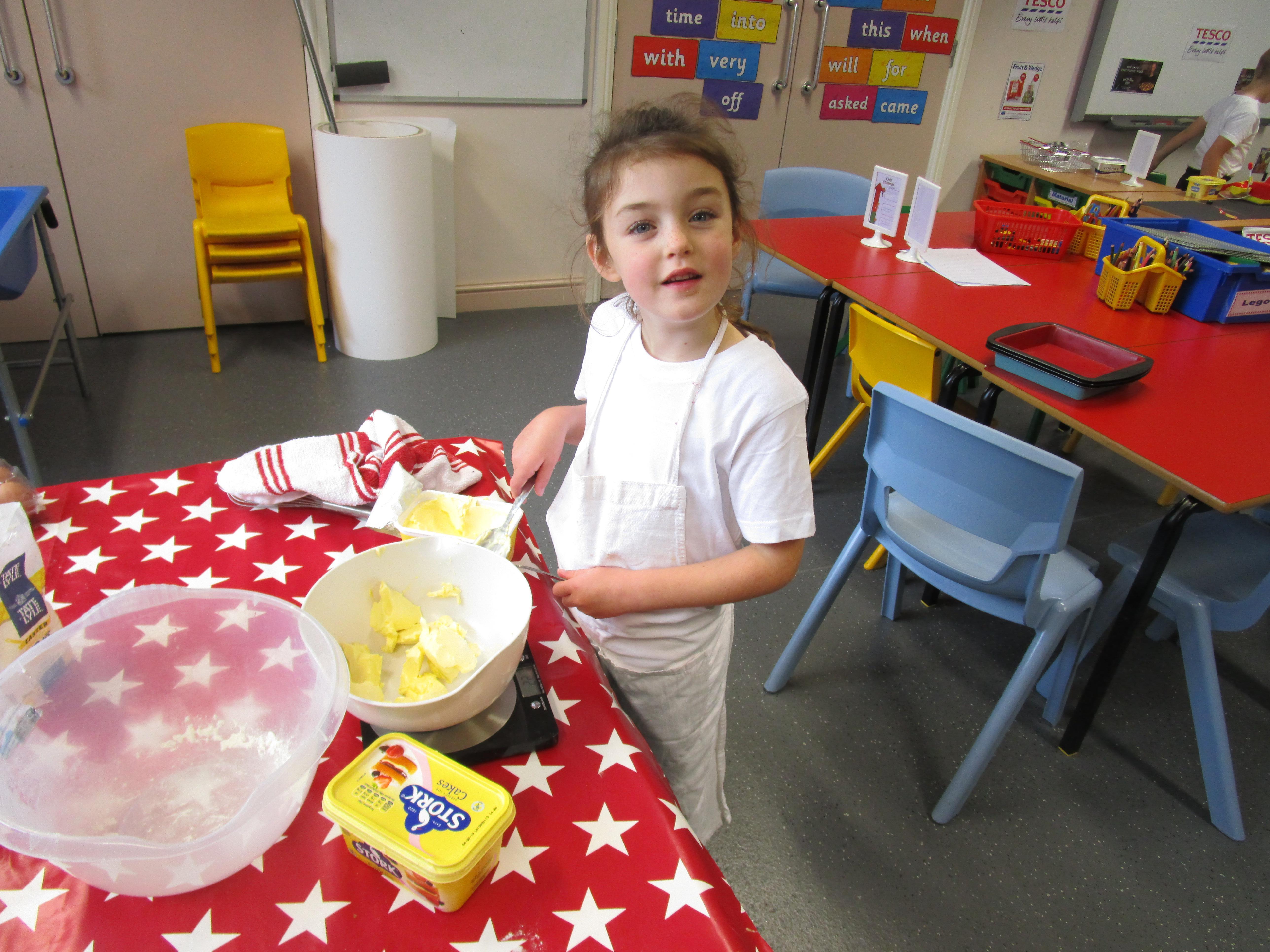 Every week some of the children in class bake in the Rainbow Room with Mrs Morton and prepare food for the other class to eat on Friday afternoon. Every child in class will get the chance to bake several times during the year.