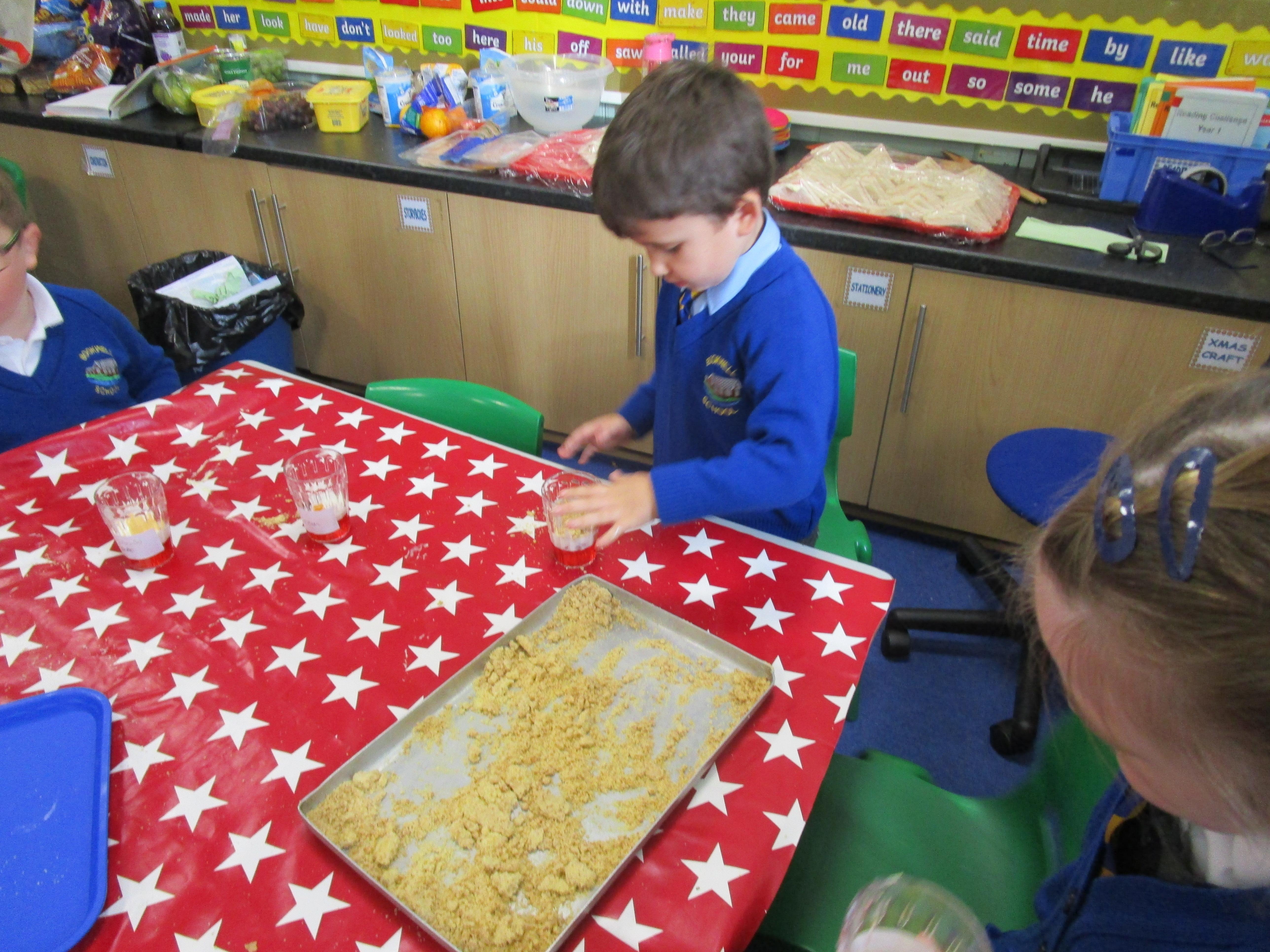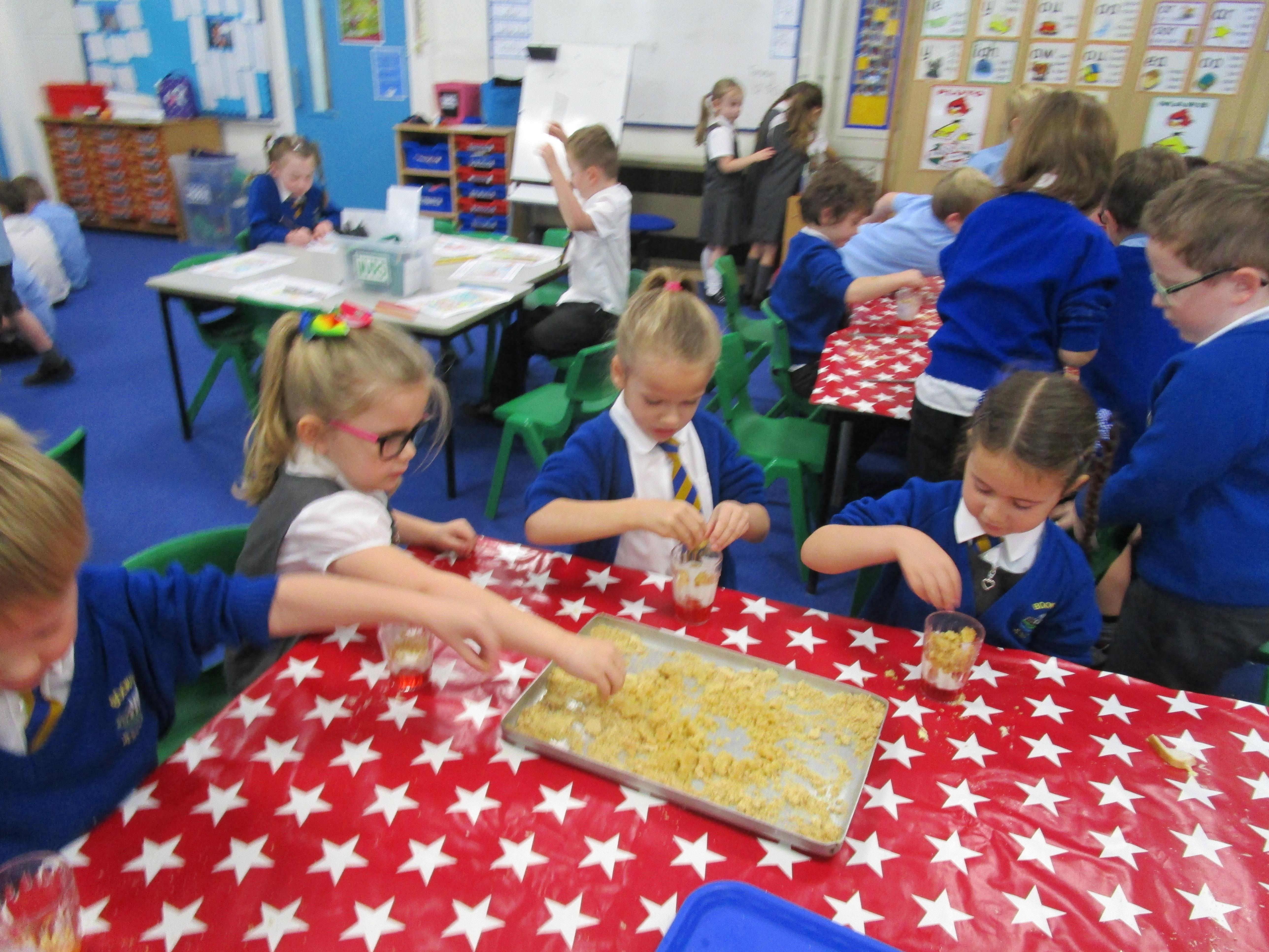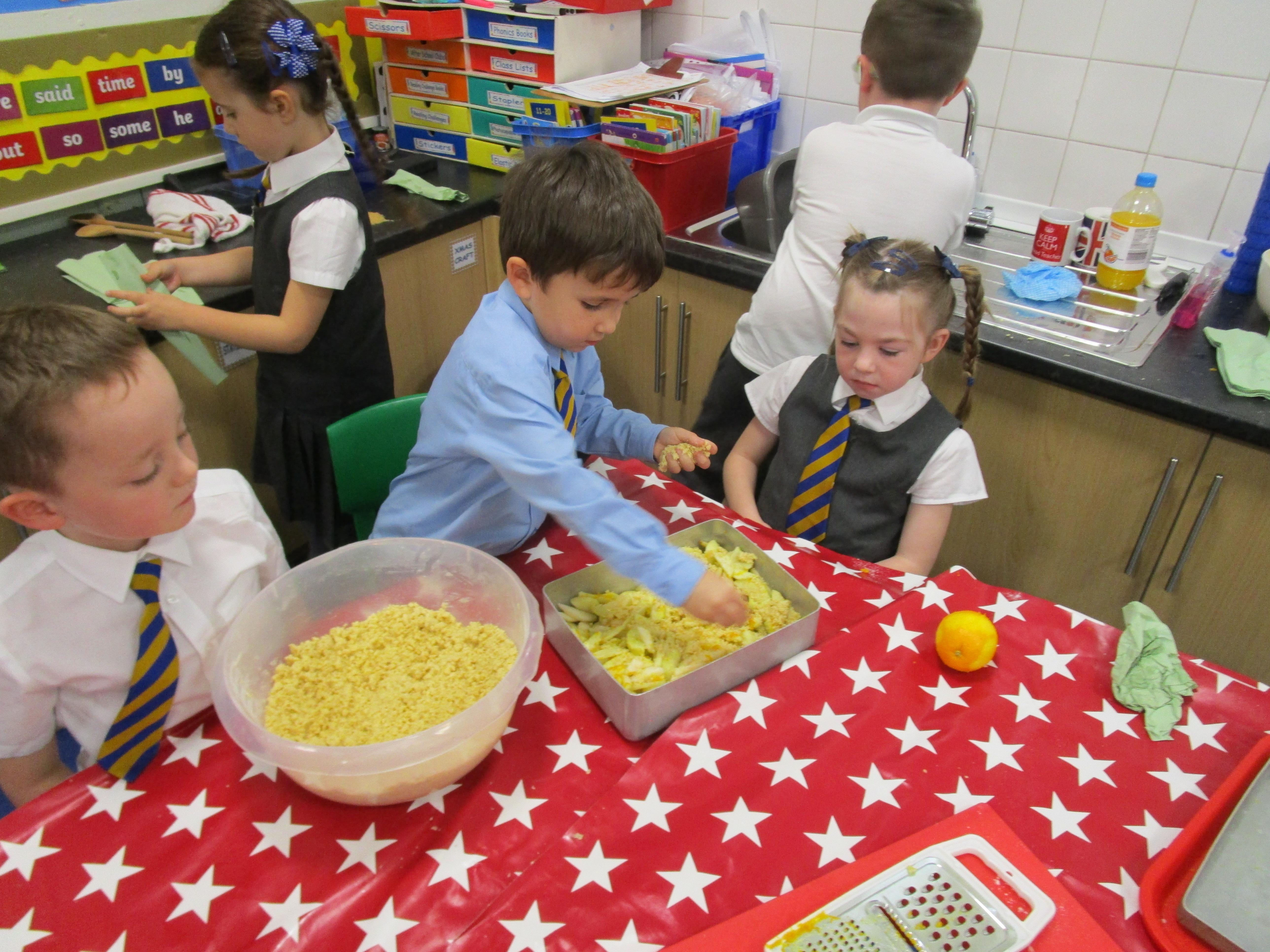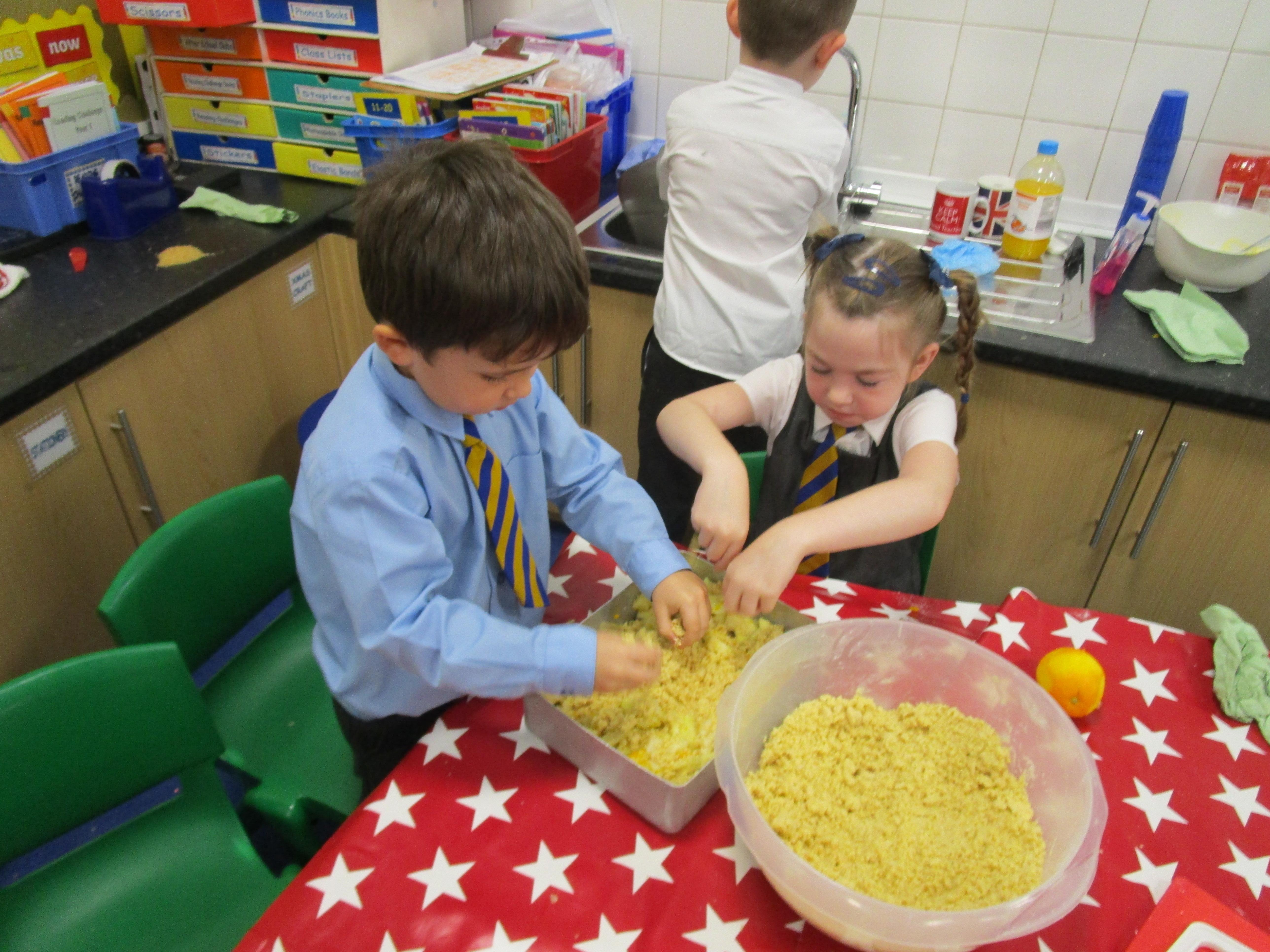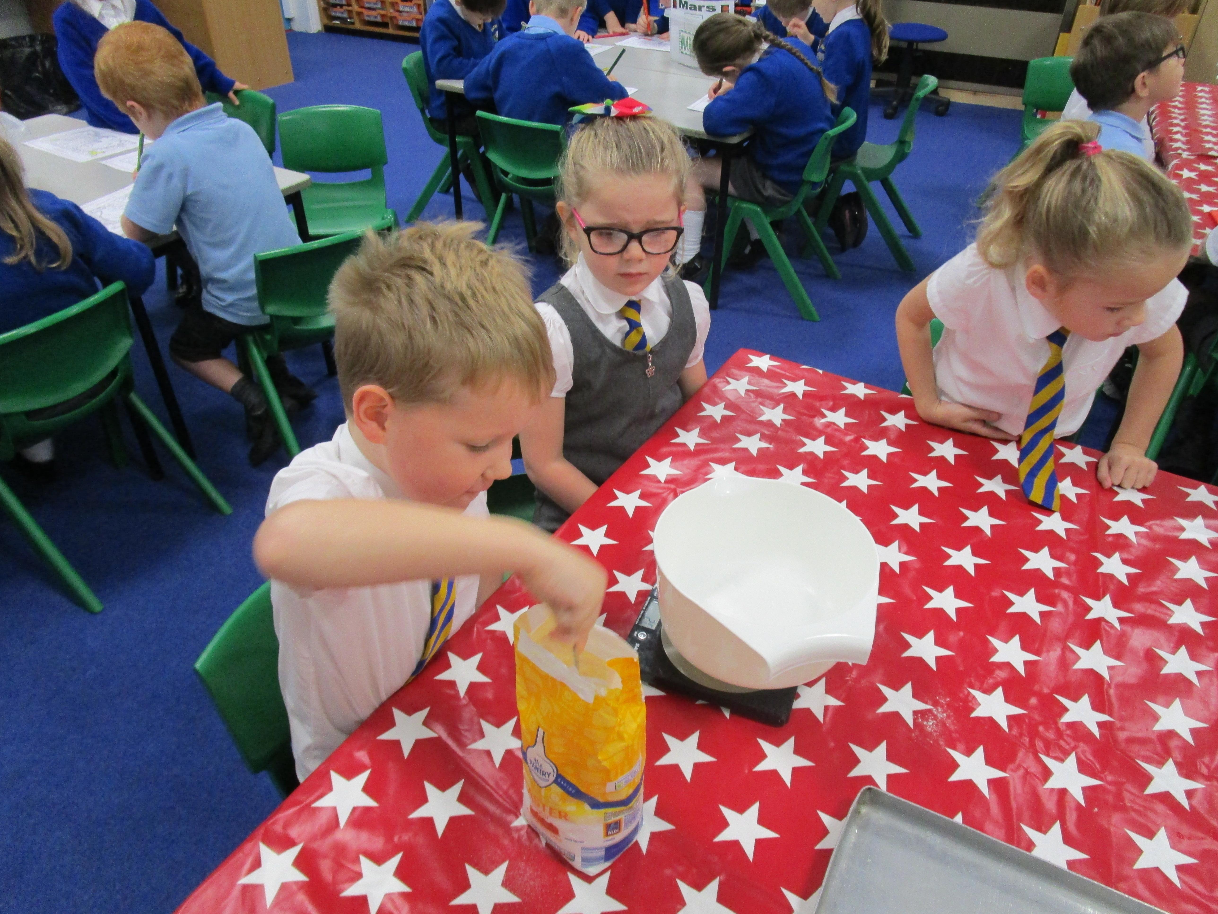 Every week some of the children in class bake in the Rainbow Room with Mrs Morton and prepare food for the other class to eat on Friday afternoon. Every child in class will get the chance to bake several times during the year.