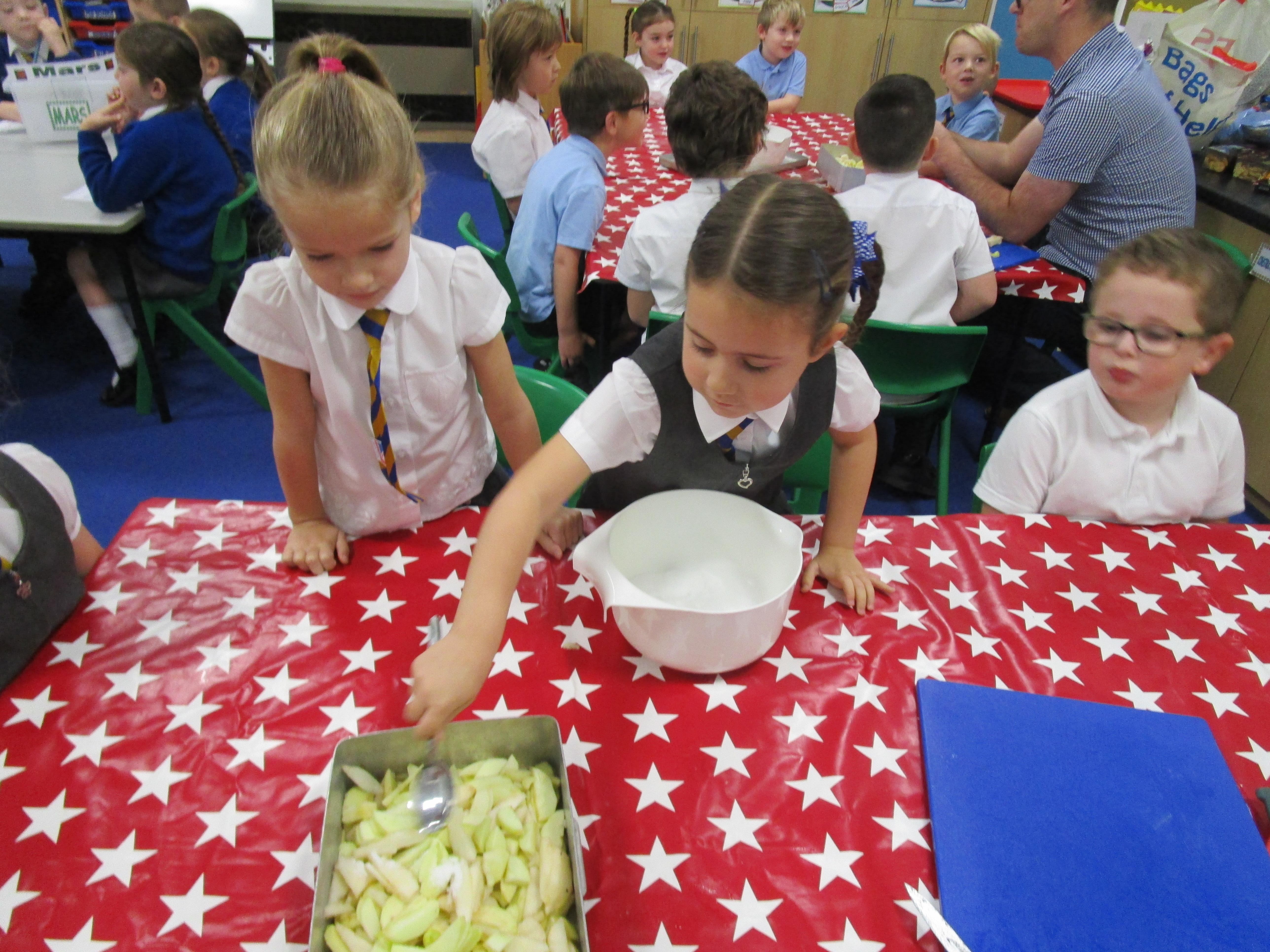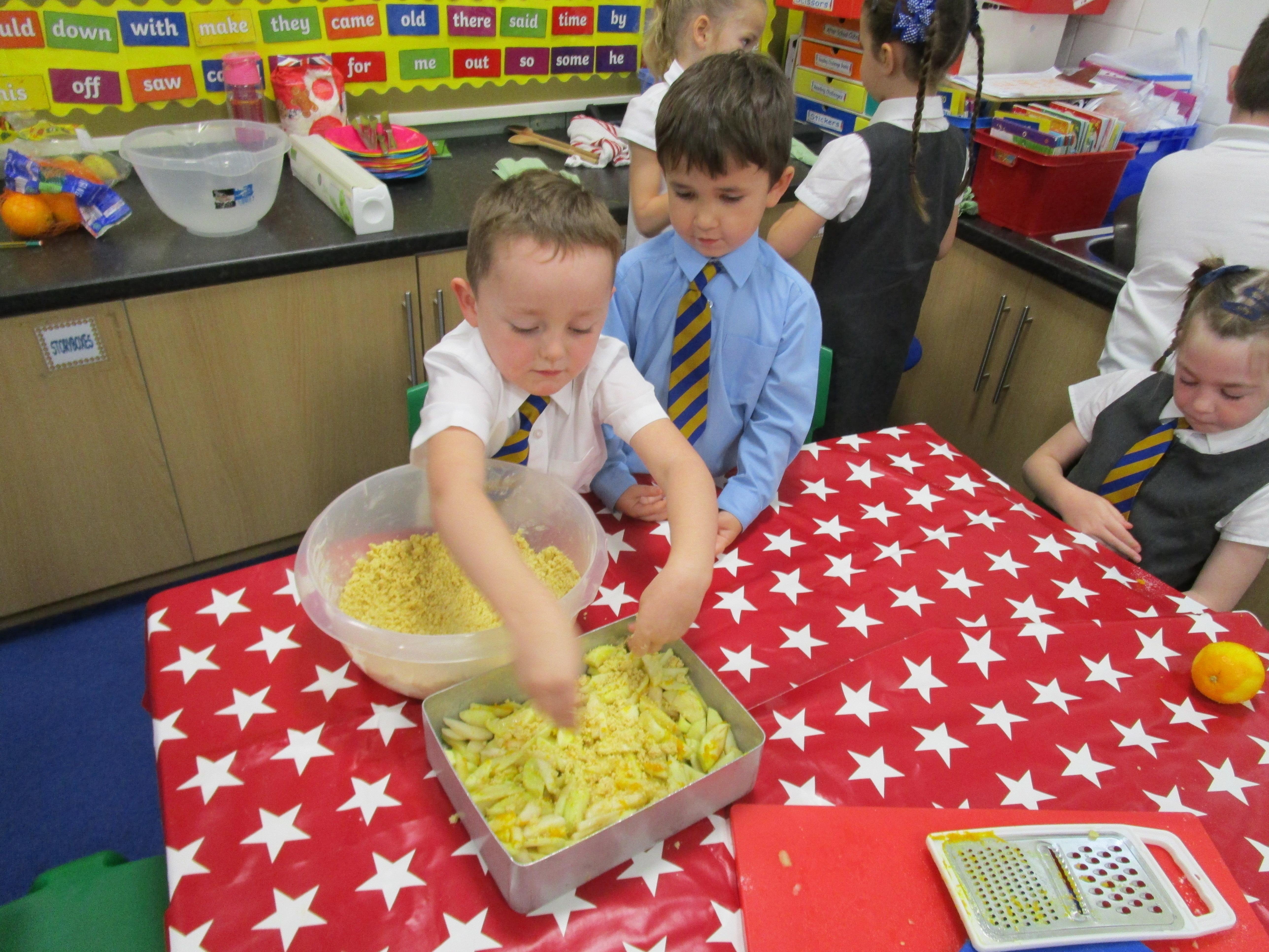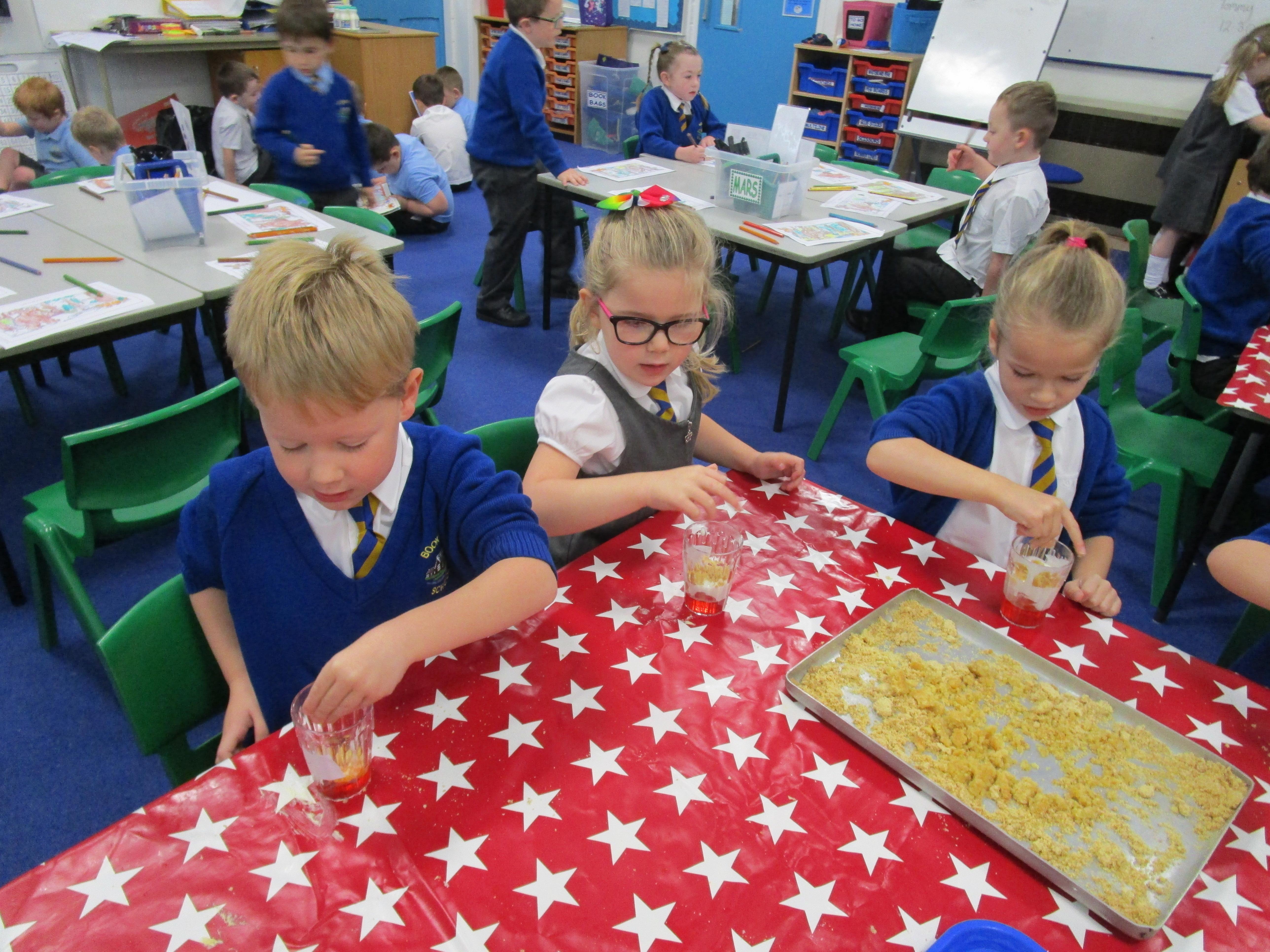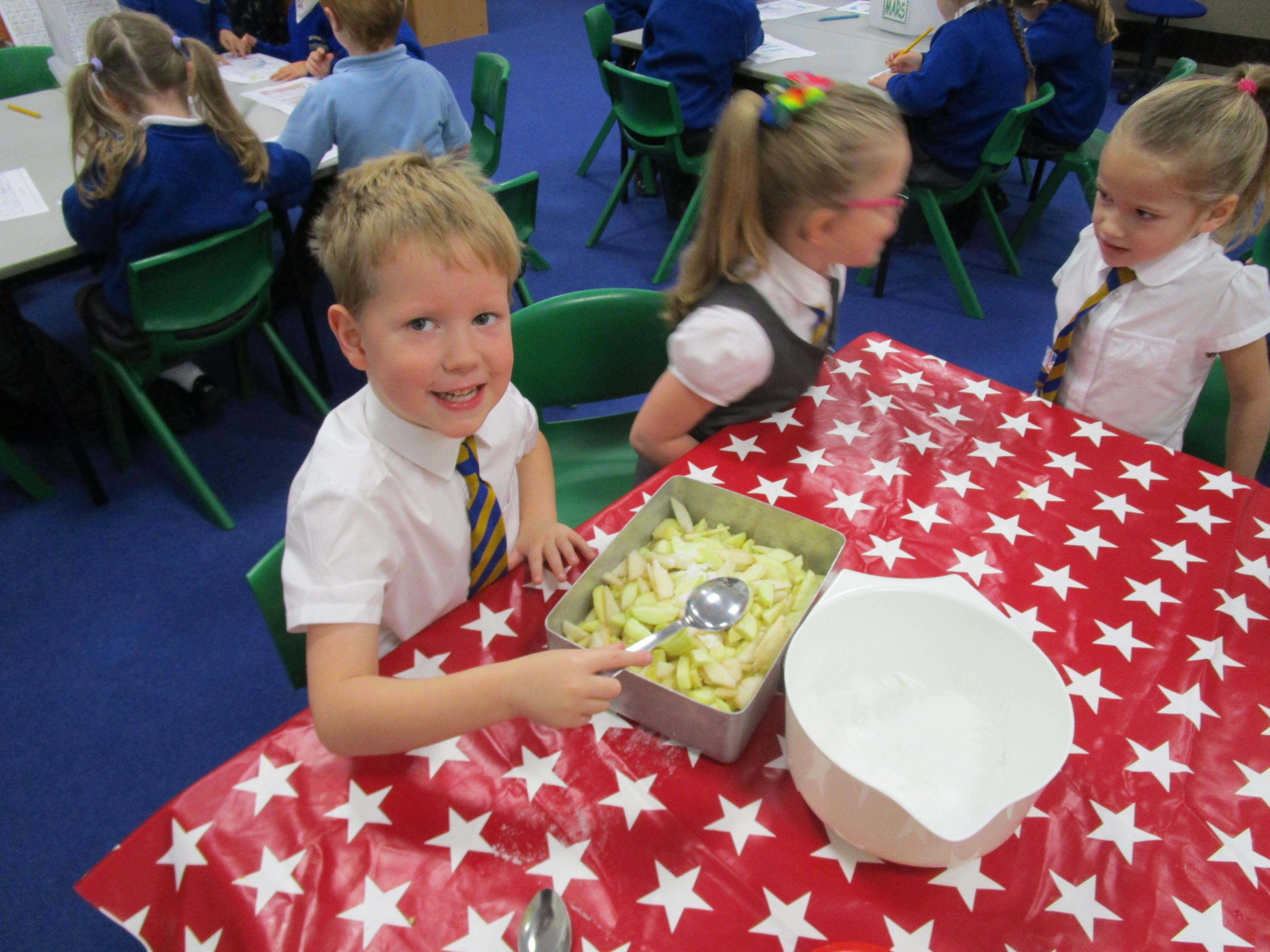 Every week some of the children in class bake in the Rainbow Room with Mrs Morton and prepare food for the other class to eat on Friday afternoon. Every child in class will get the chance to bake several times during the year.