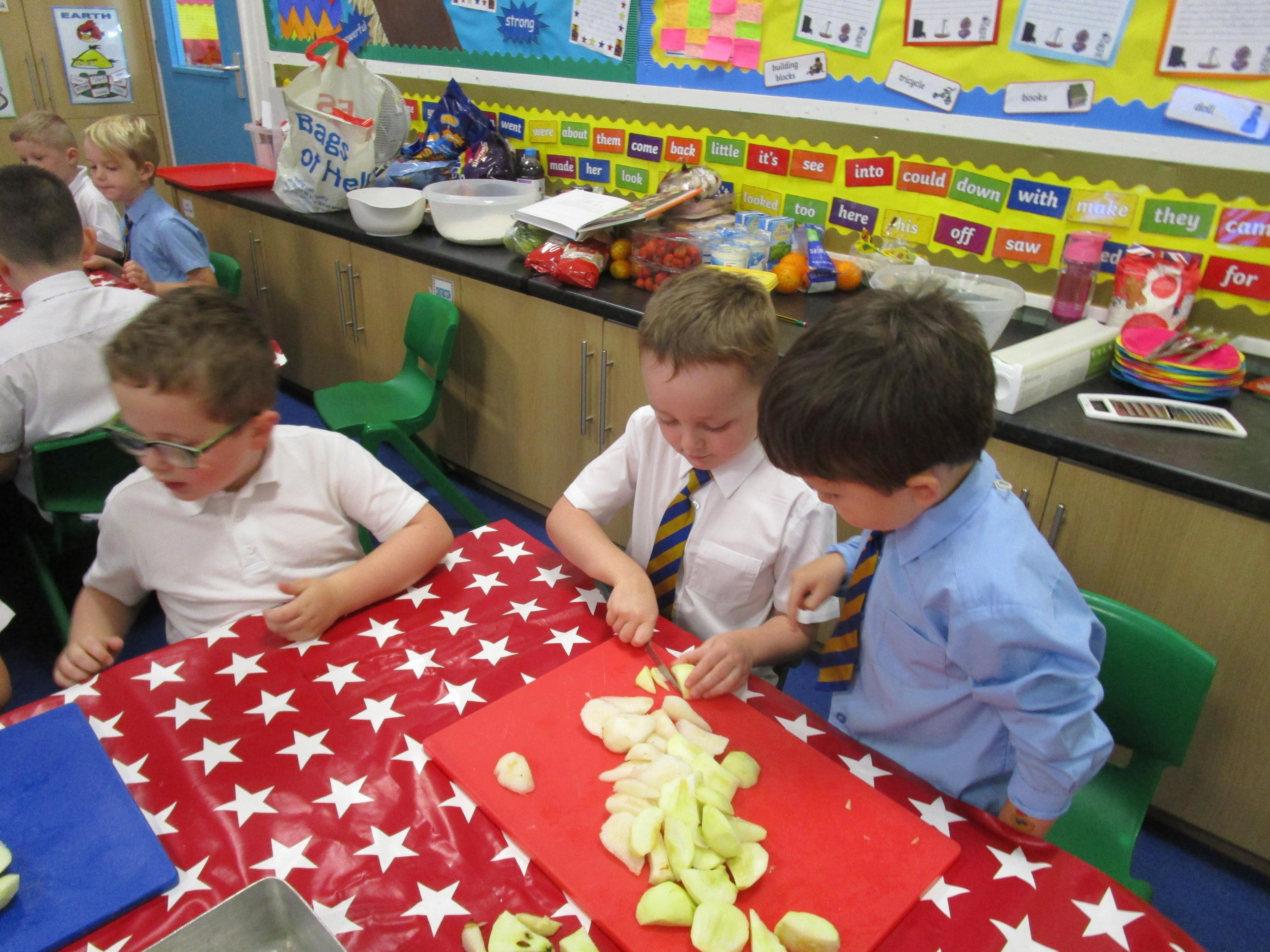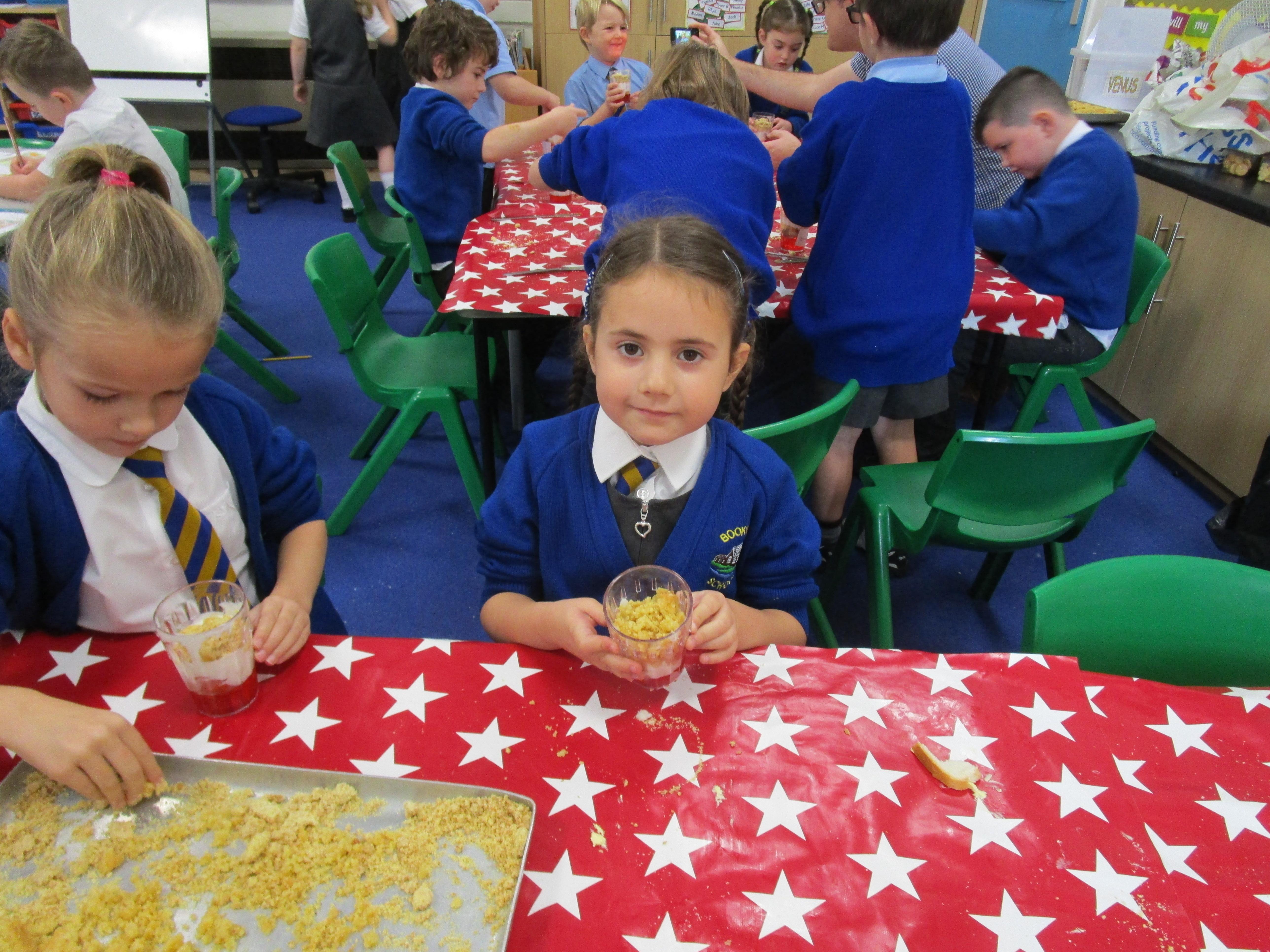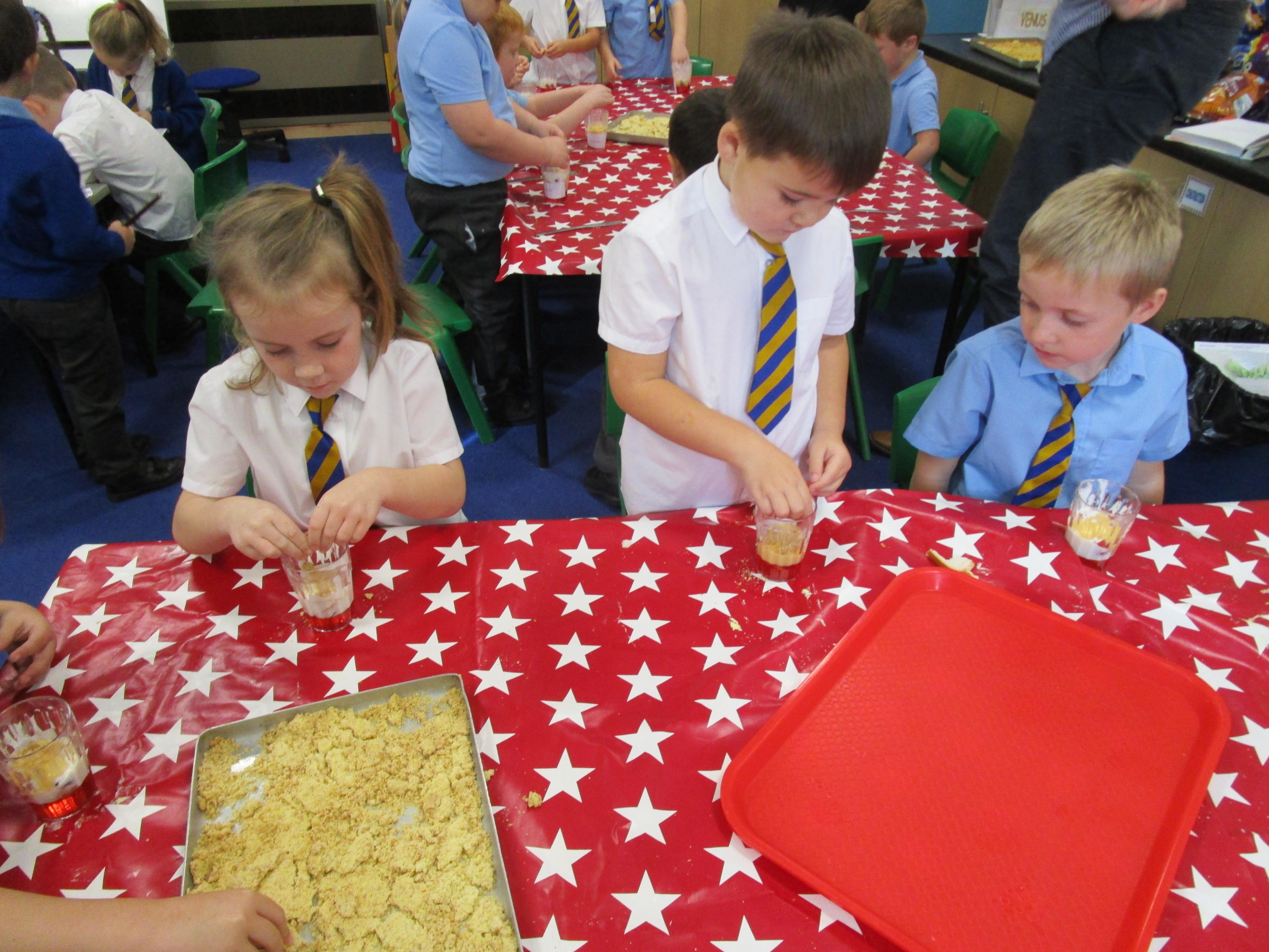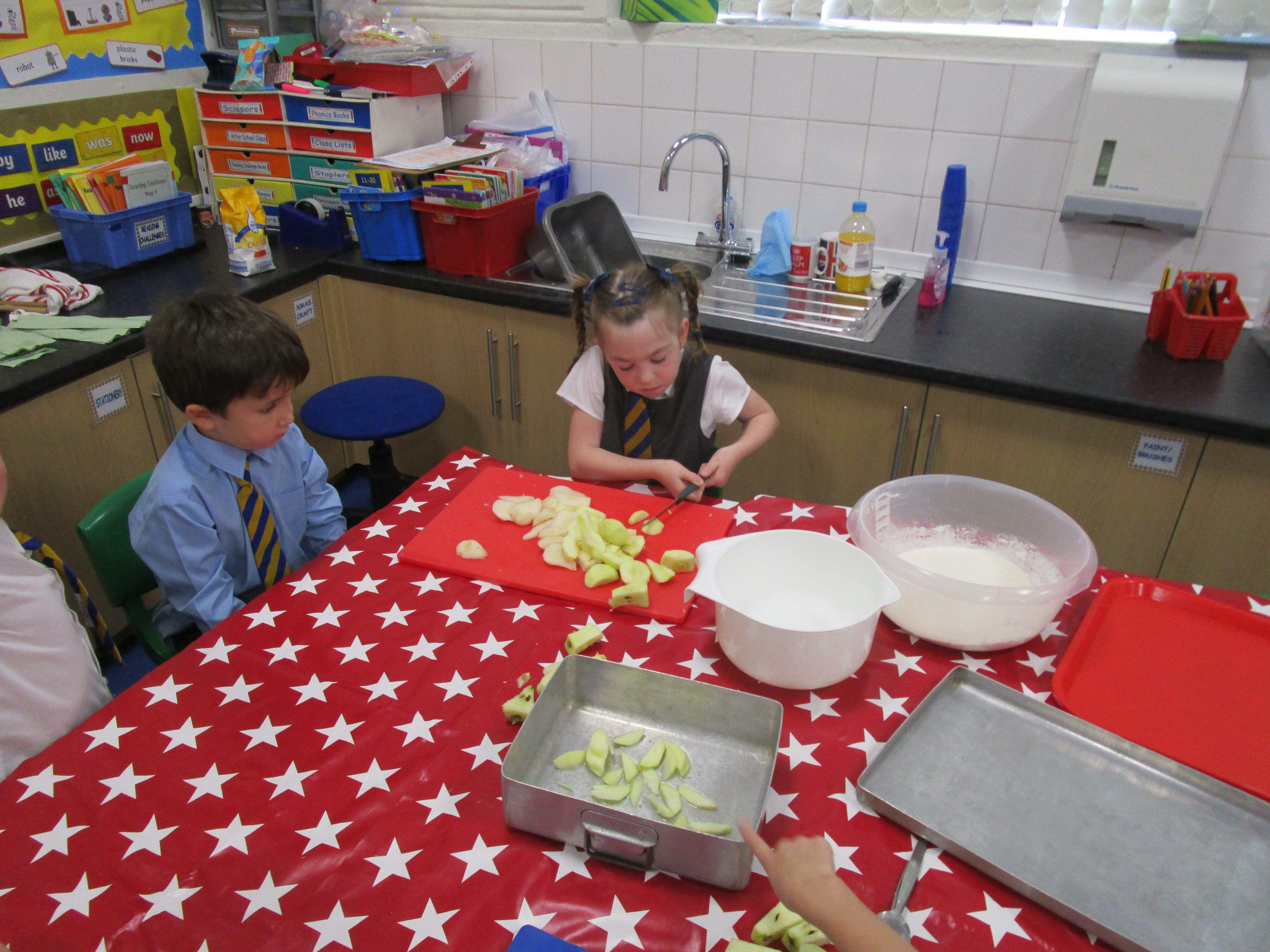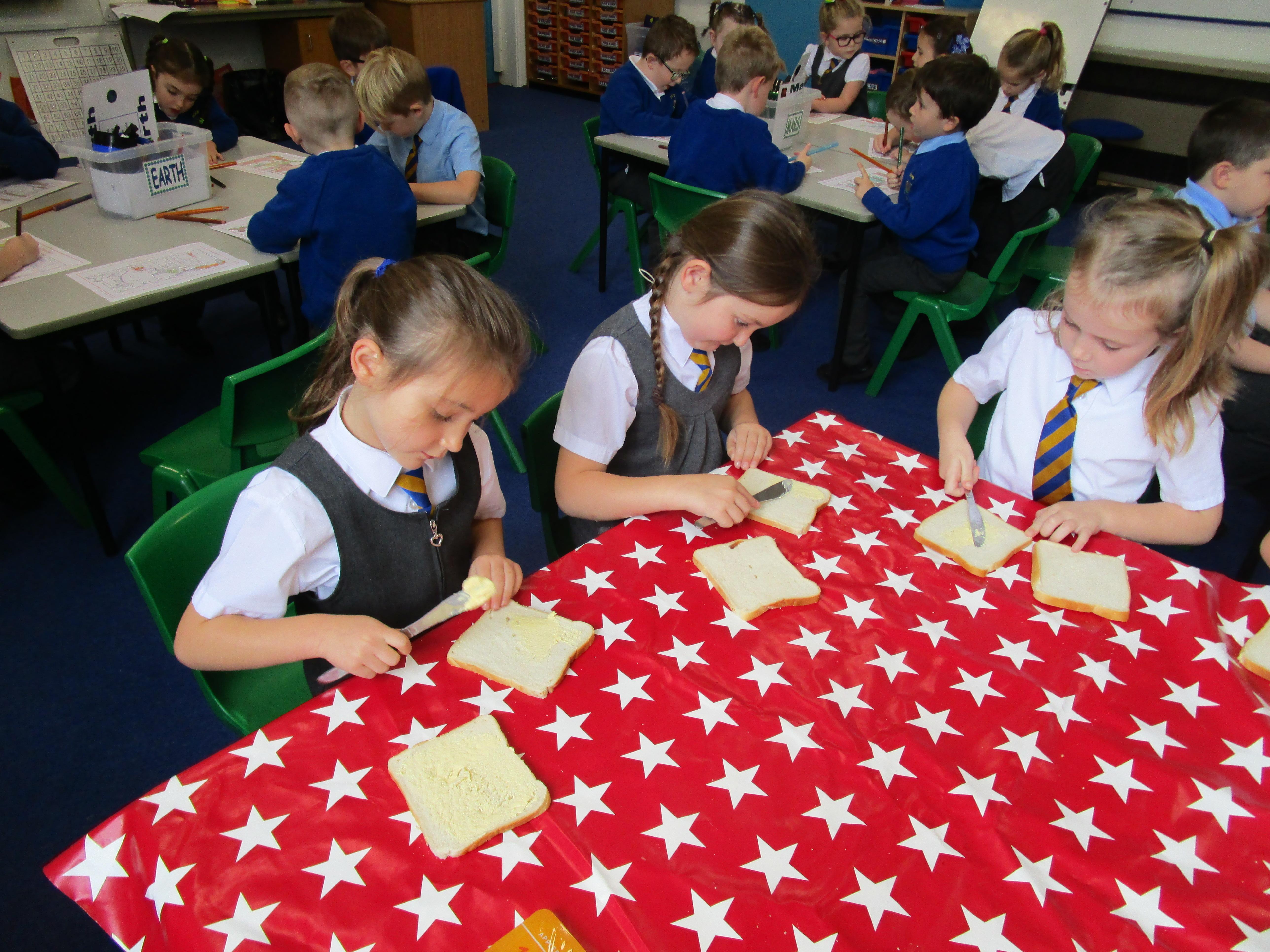Every week some of the children in class bake in the Rainbow Room with Mrs Morton and prepare food for the other class to eat on Friday afternoon. Every child in class will get the chance to bake several times during the year.