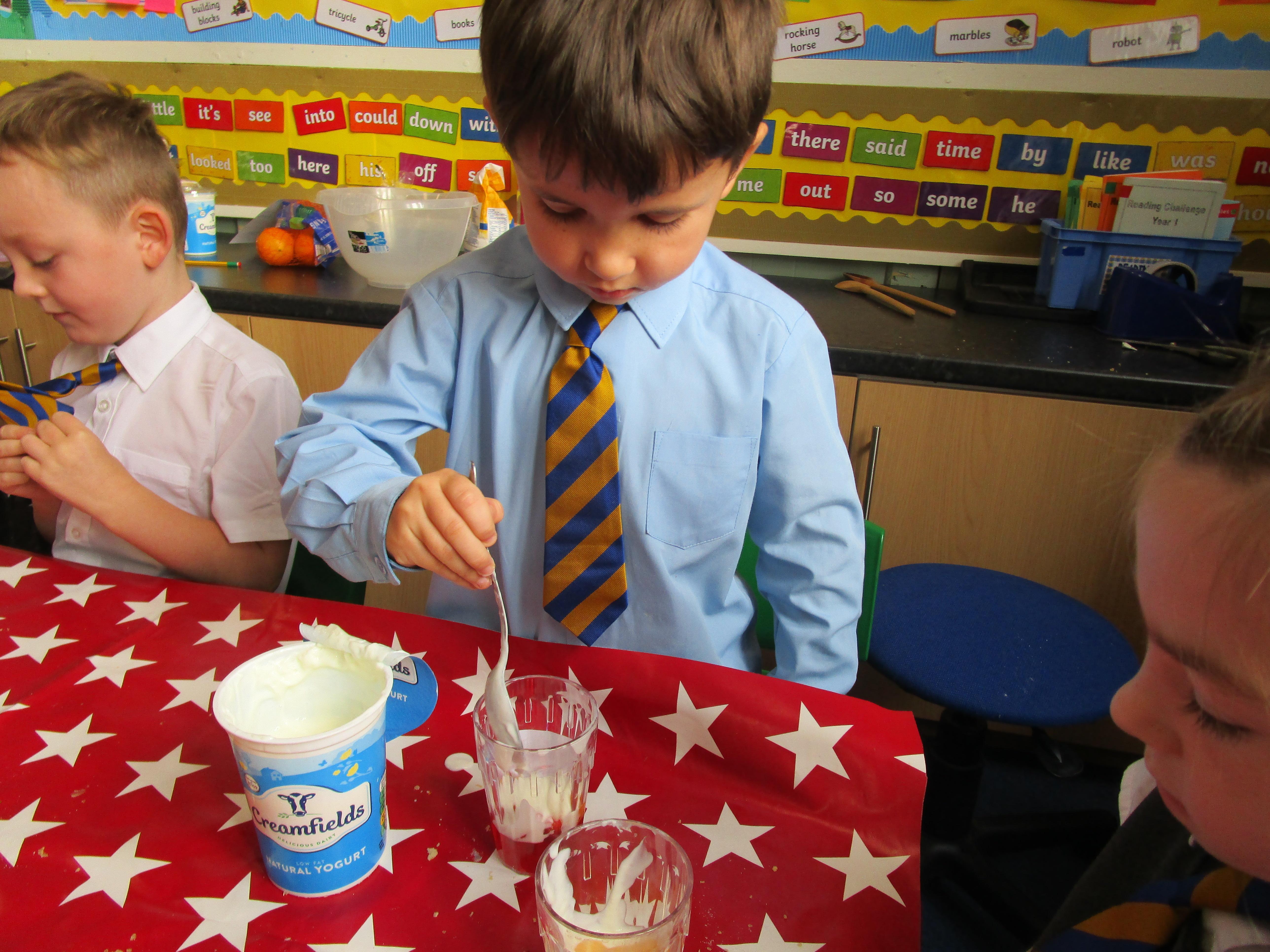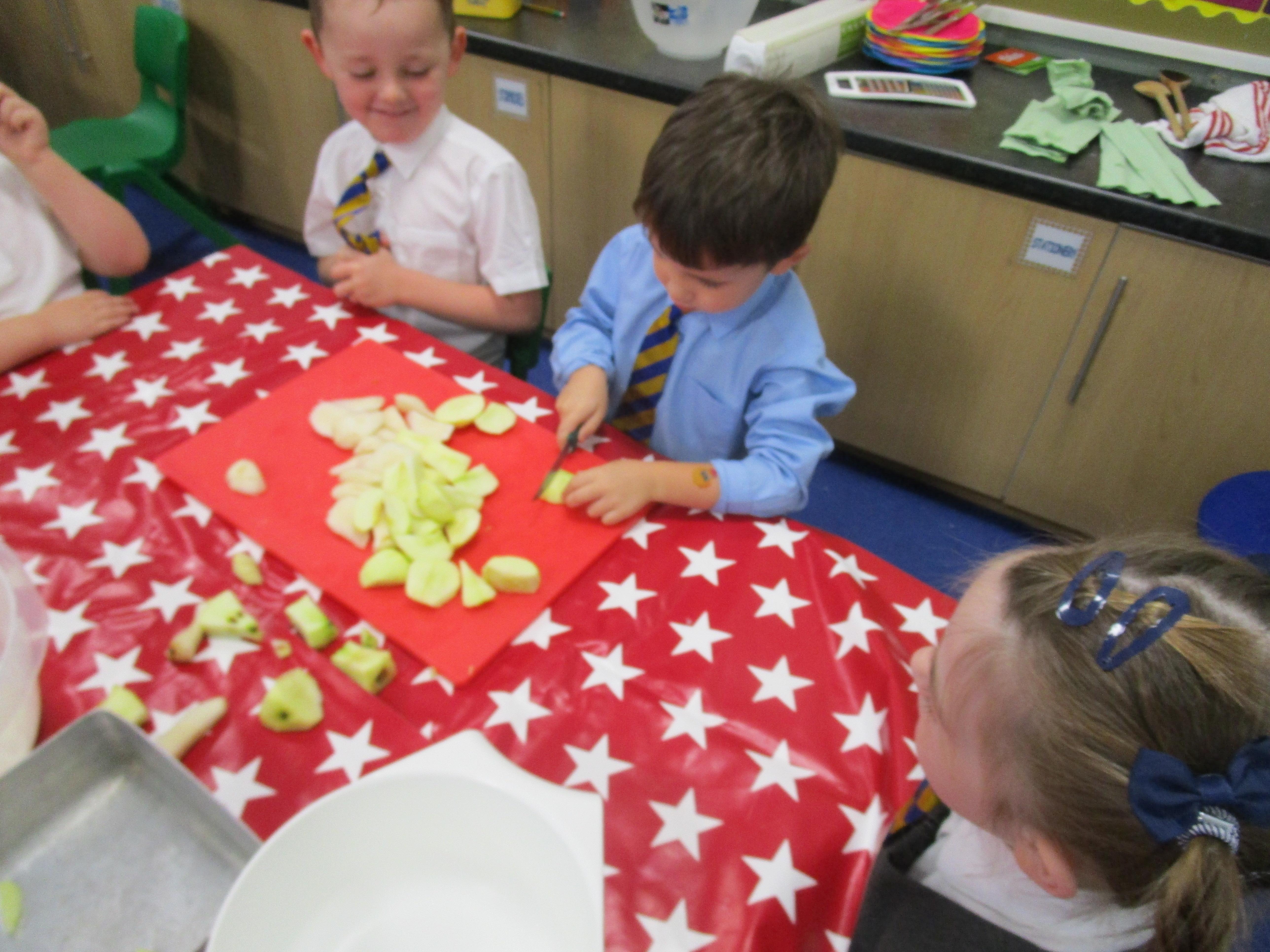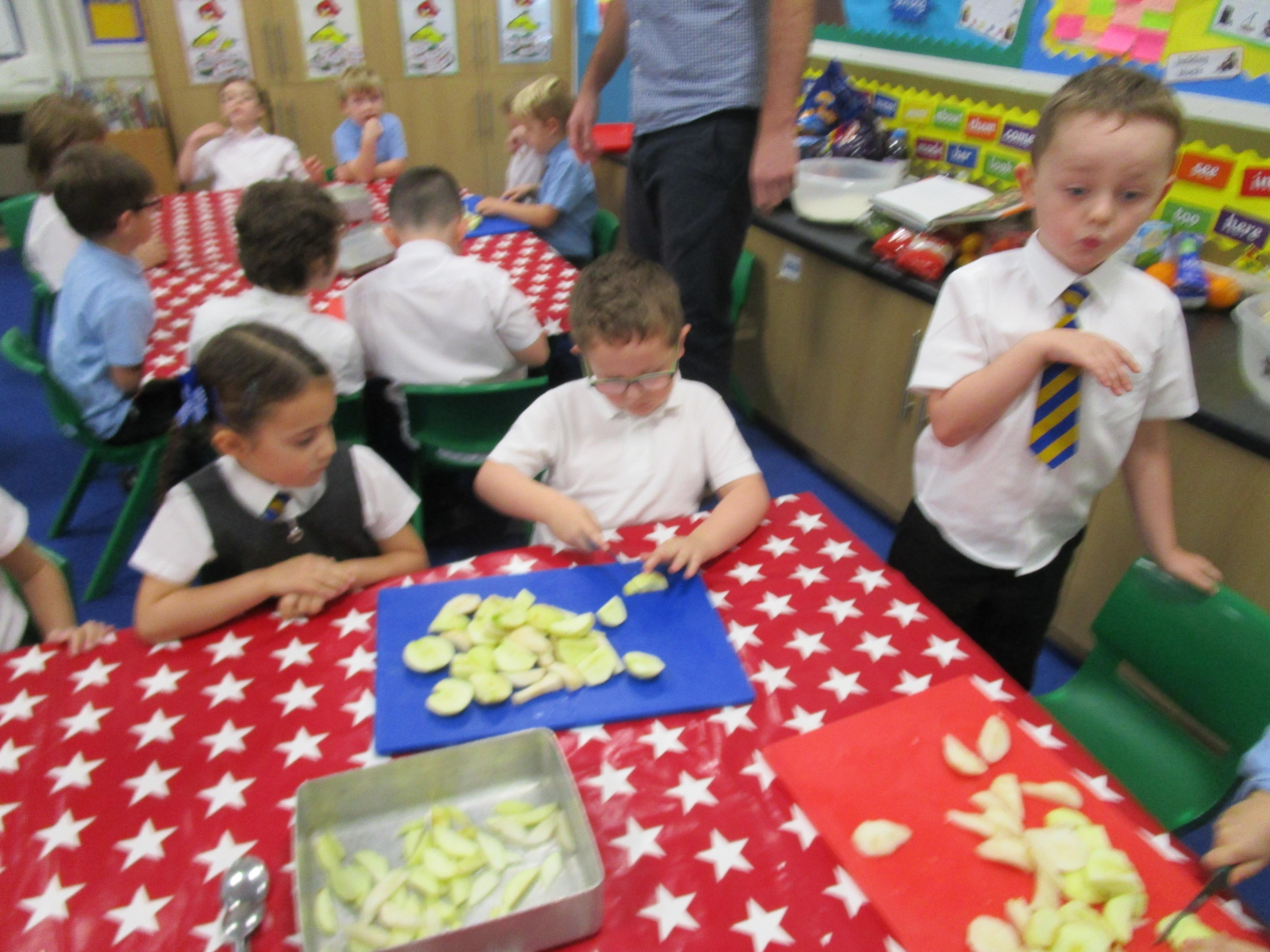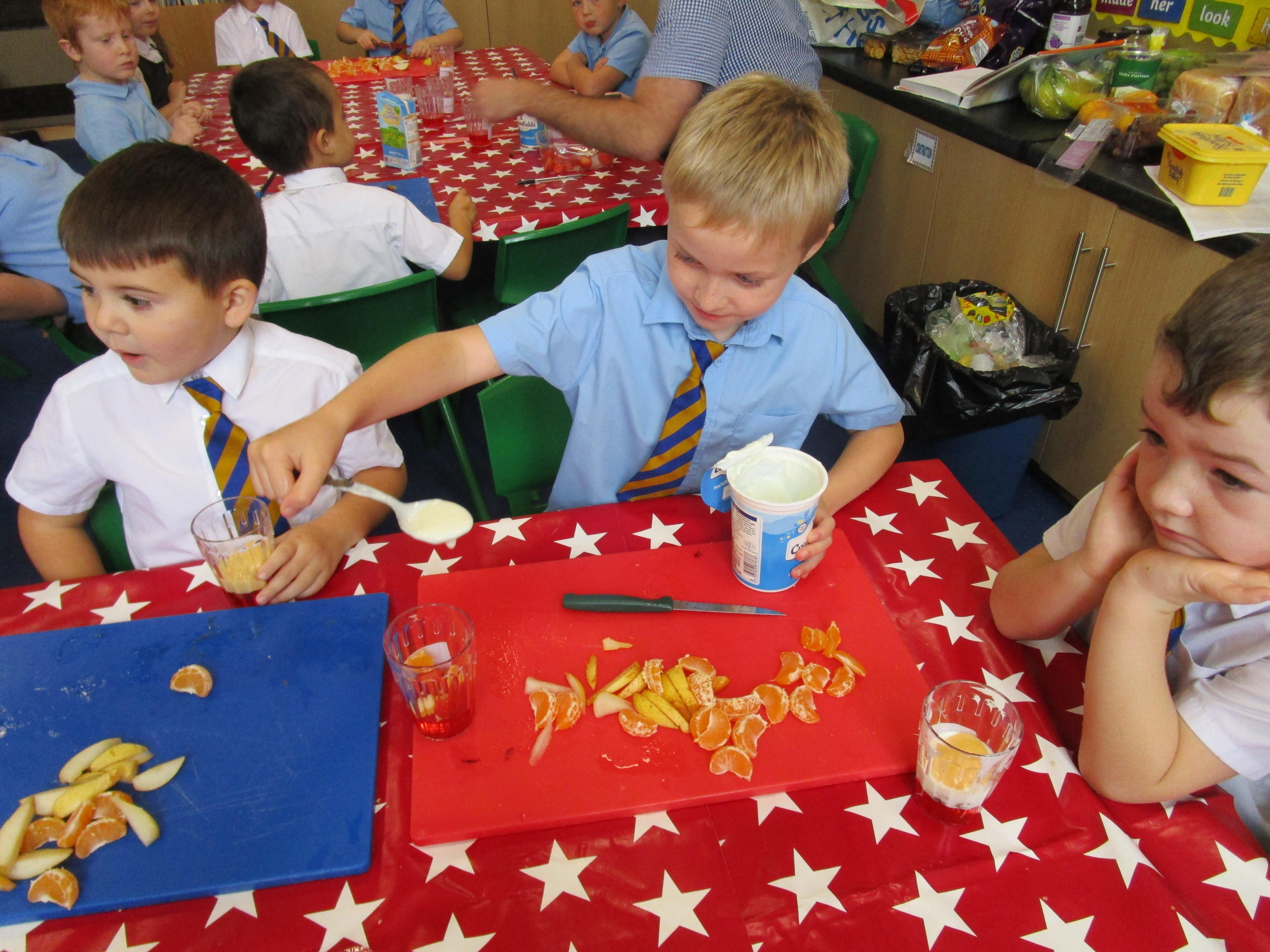 Every week some of the children in class bake in the Rainbow Room with Mrs Morton and prepare food for the other class to eat on Friday afternoon. Every child in class will get the chance to bake several times during the year.