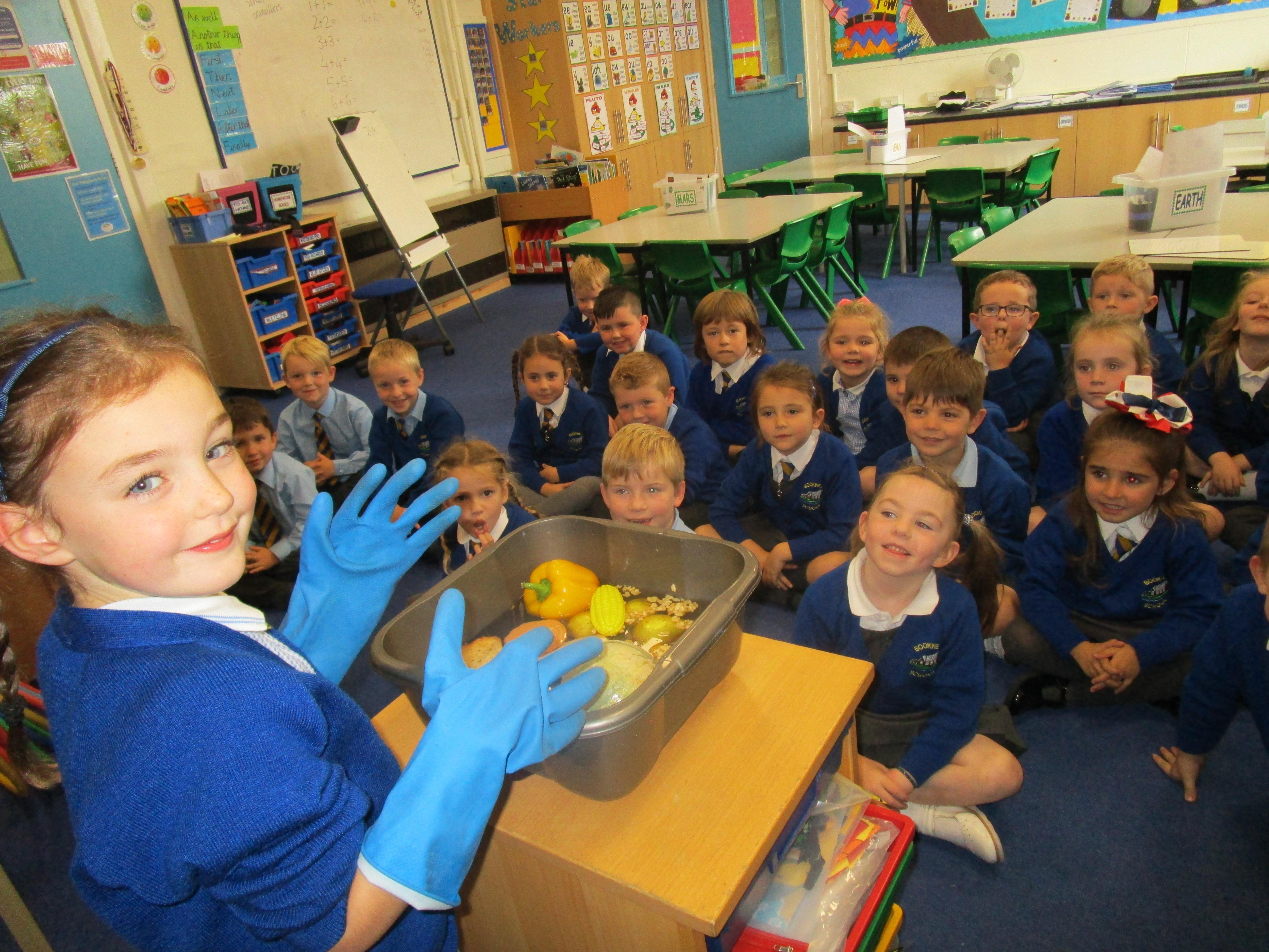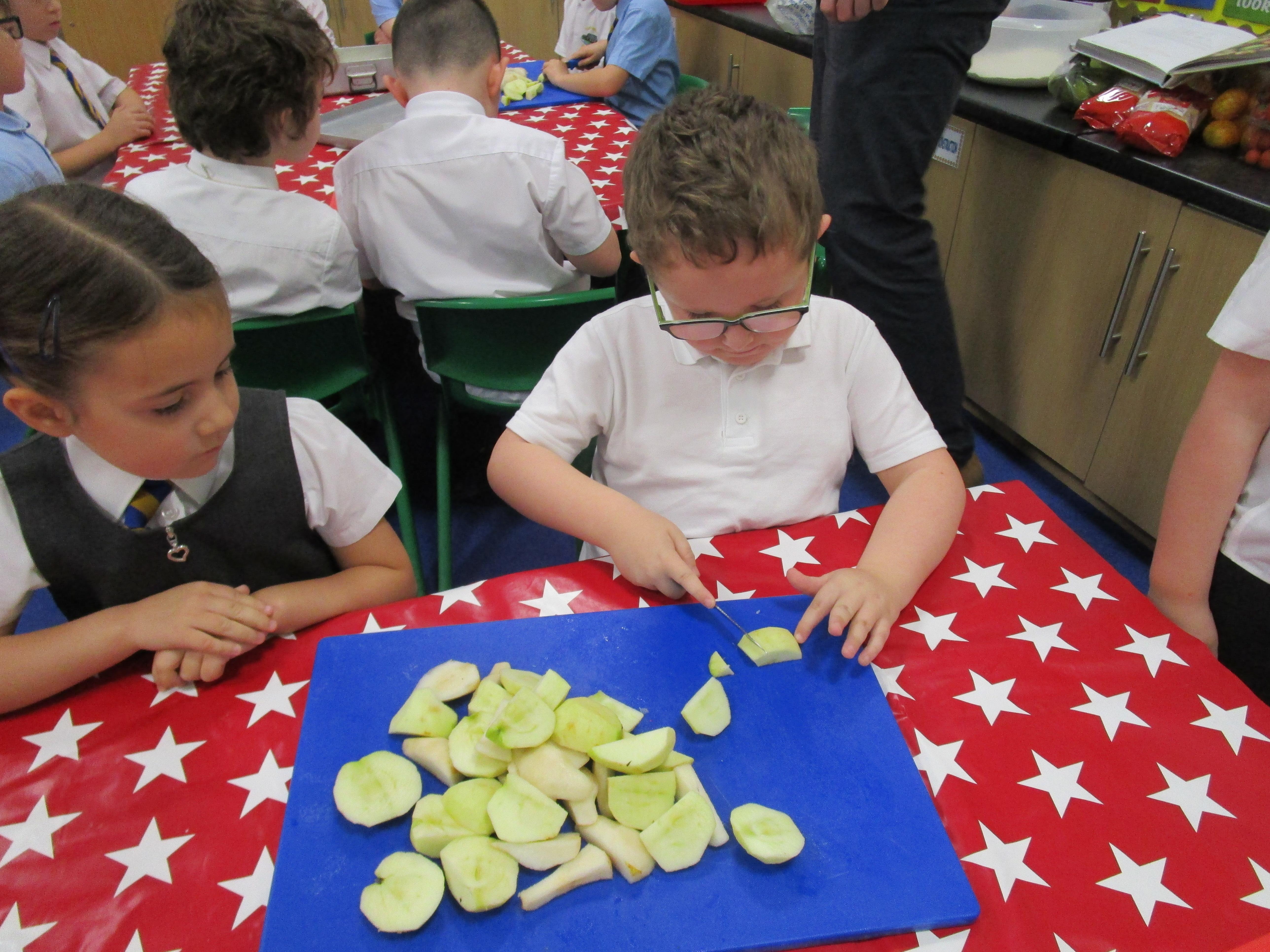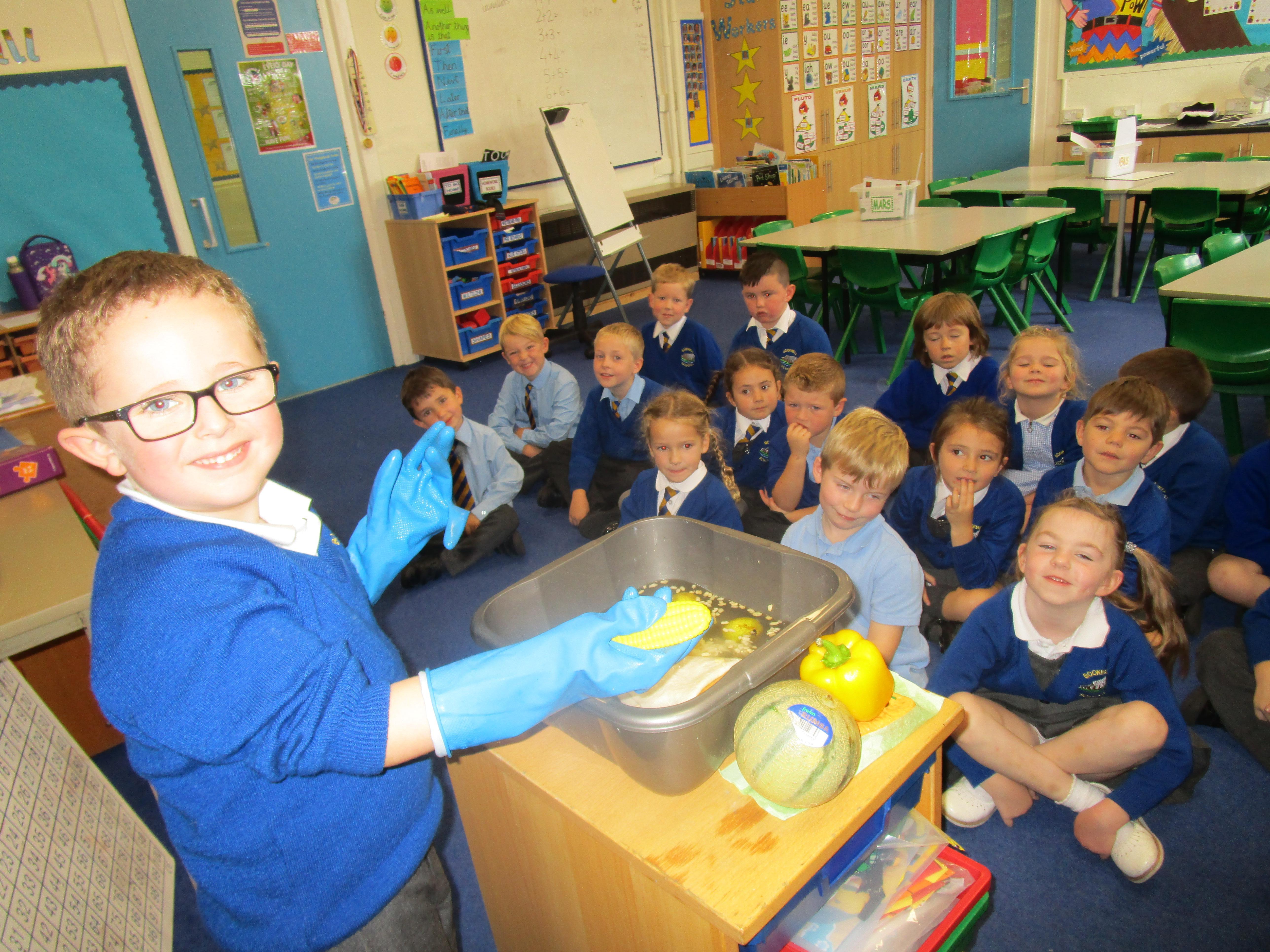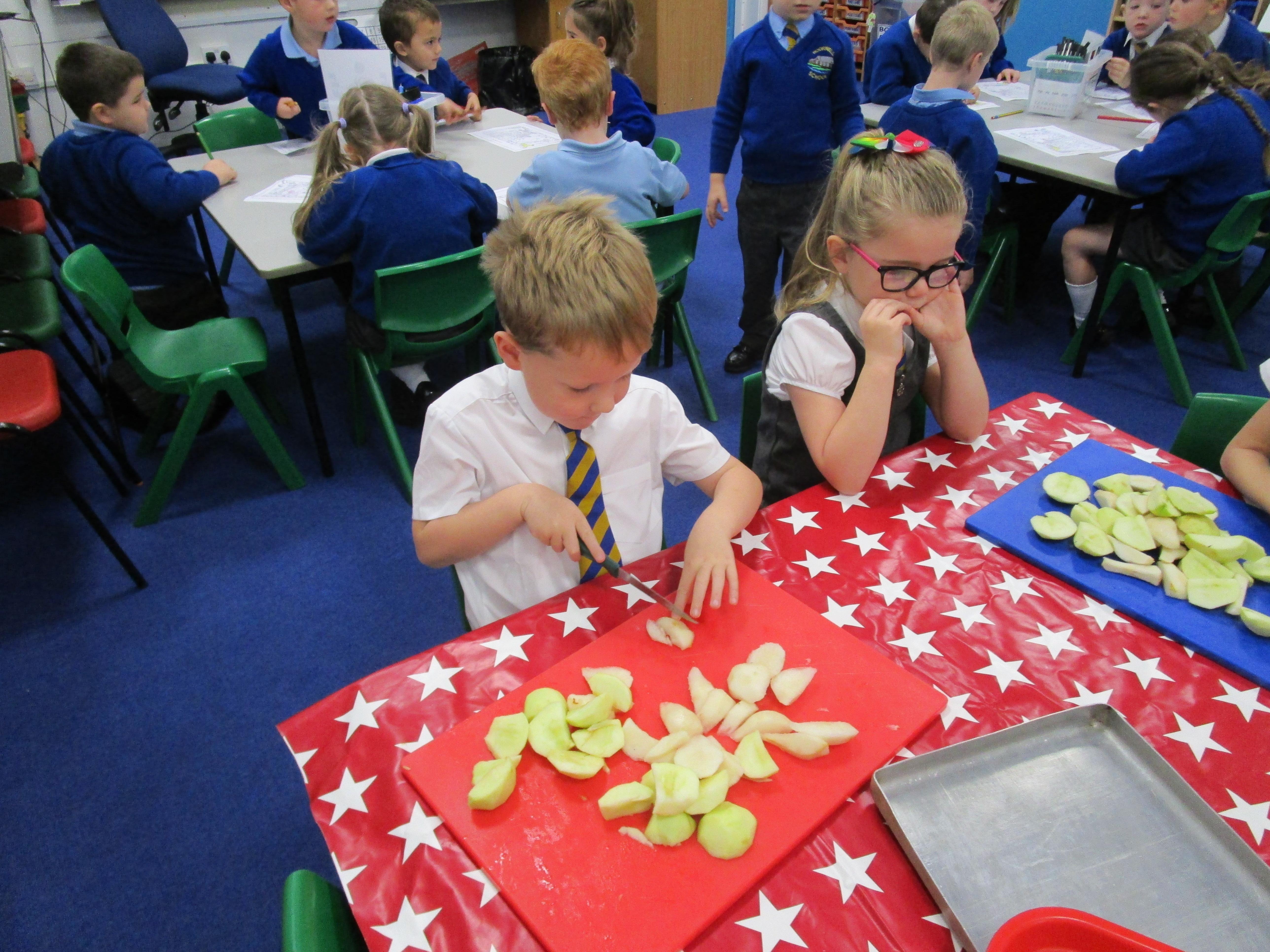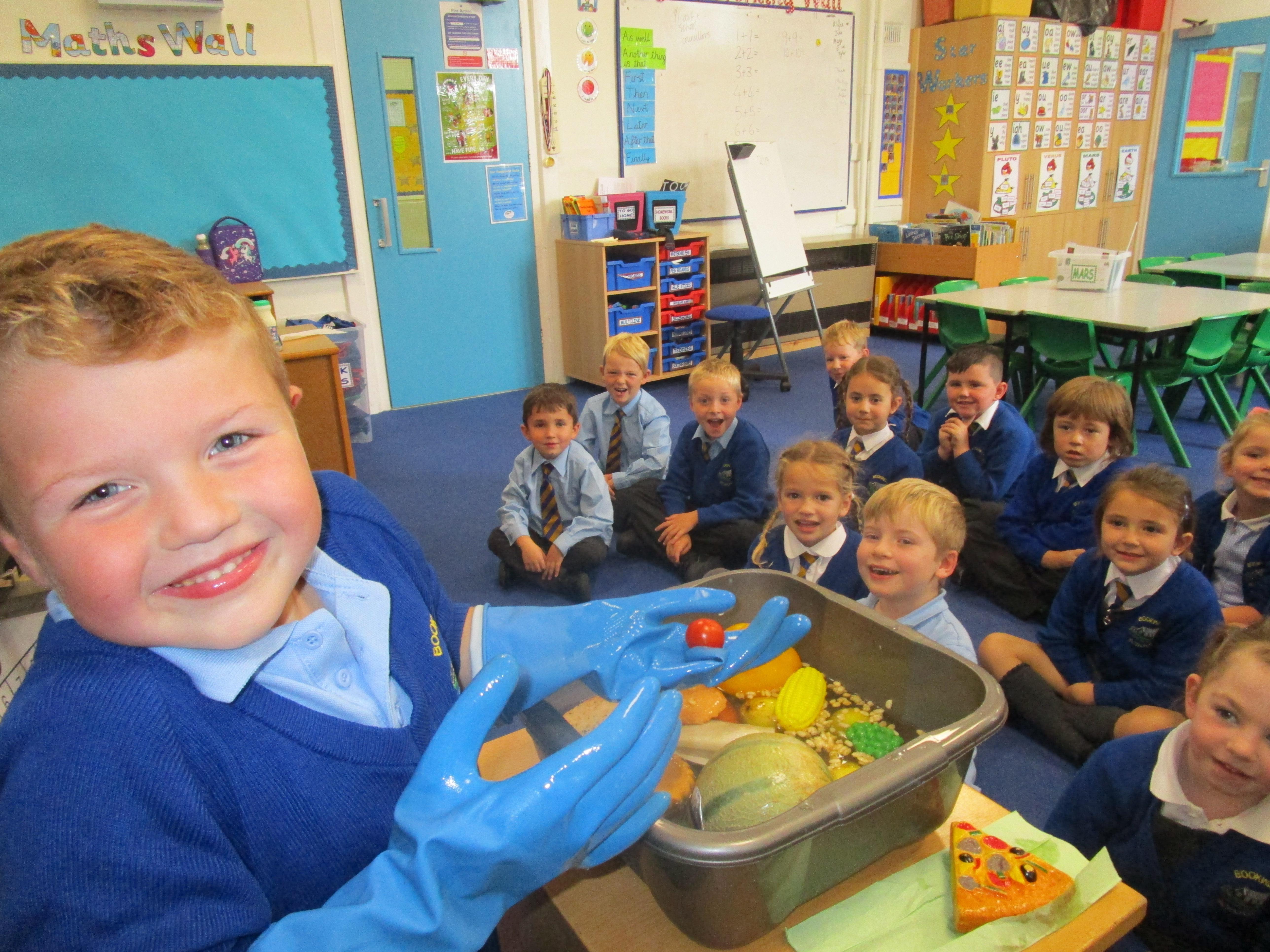 Every week some of the children in class bake in the Rainbow Room with Mrs Morton and prepare food for the other class to eat on Friday afternoon. Every child in class will get the chance to bake several times during the year.