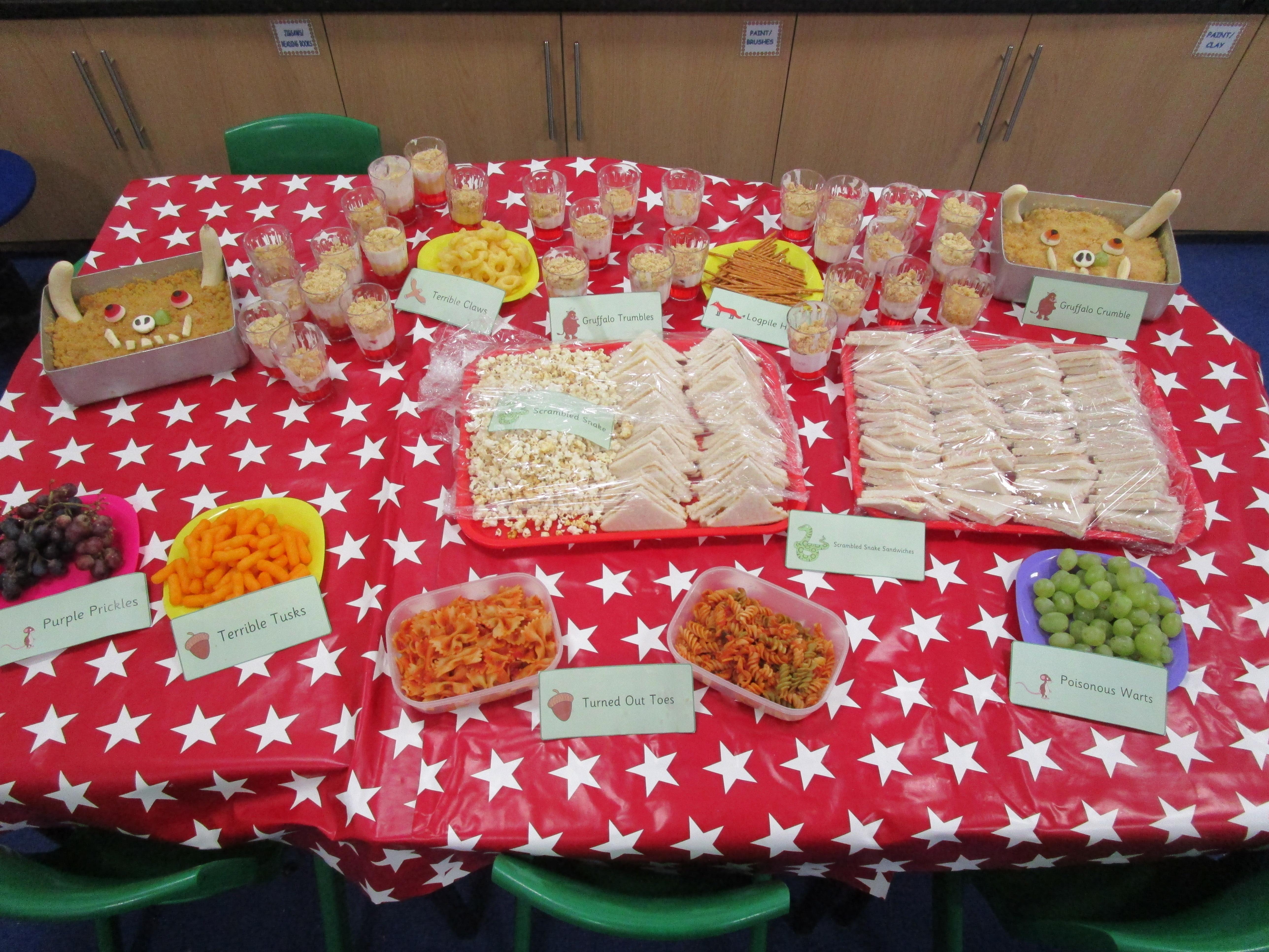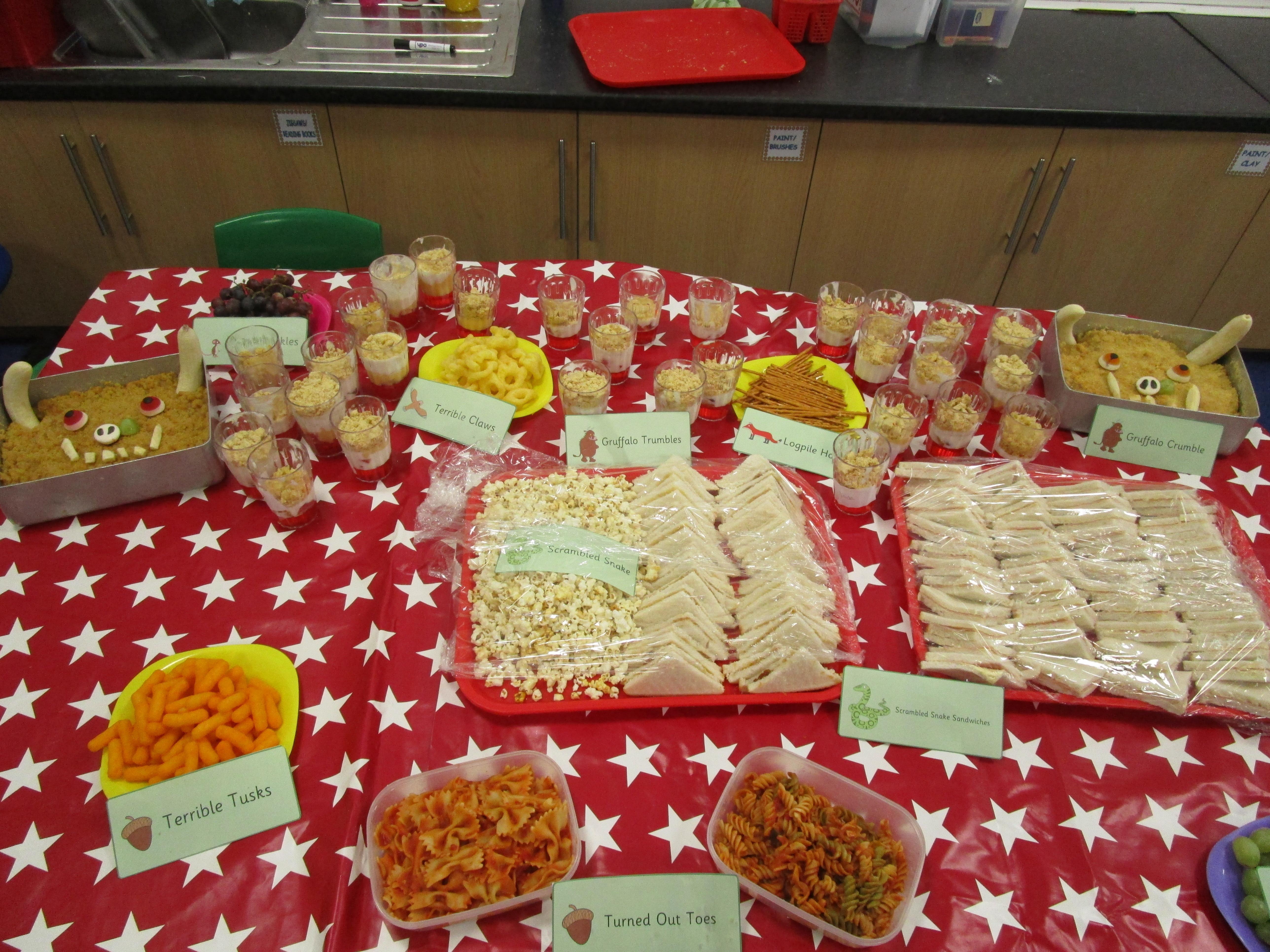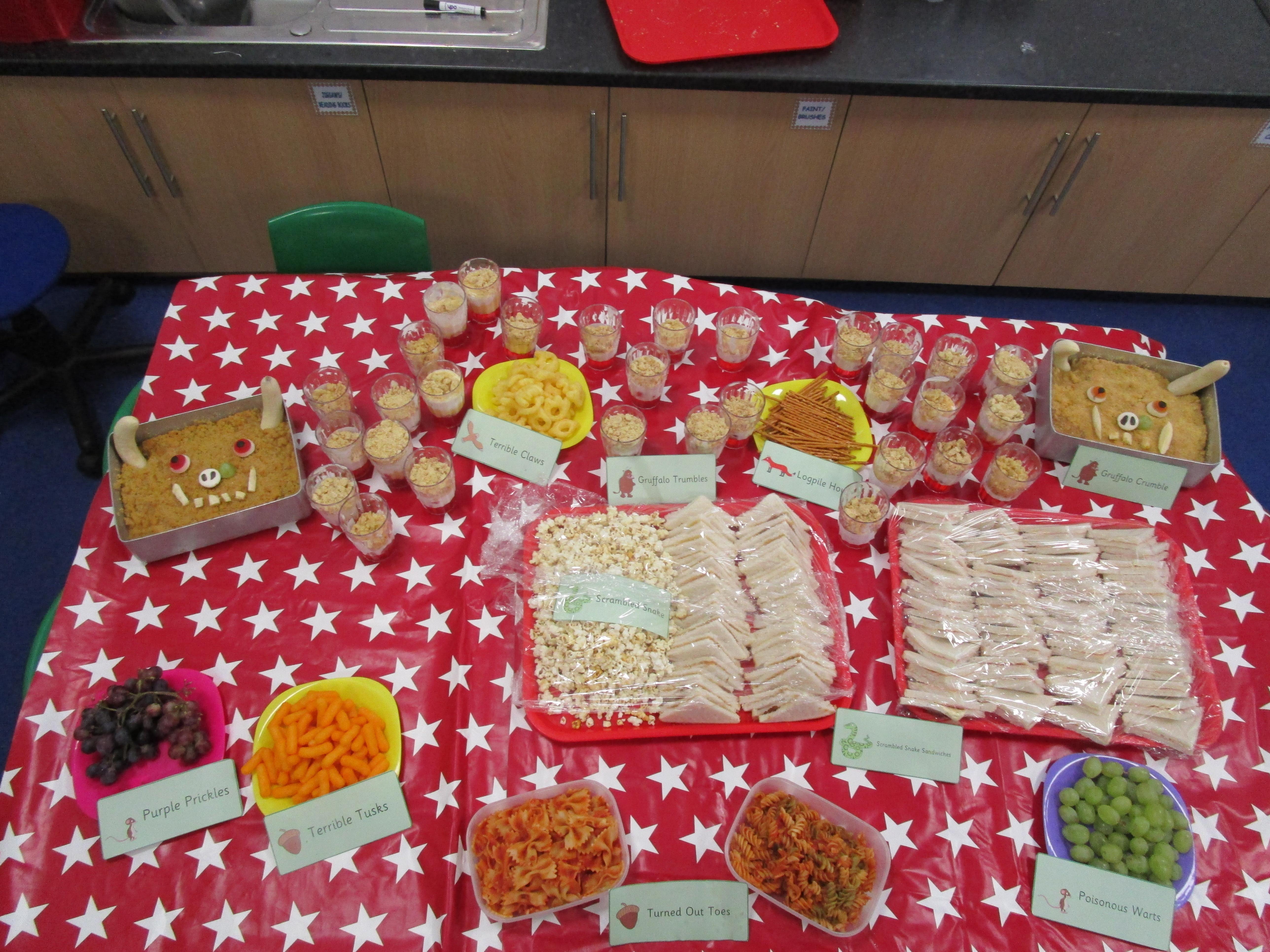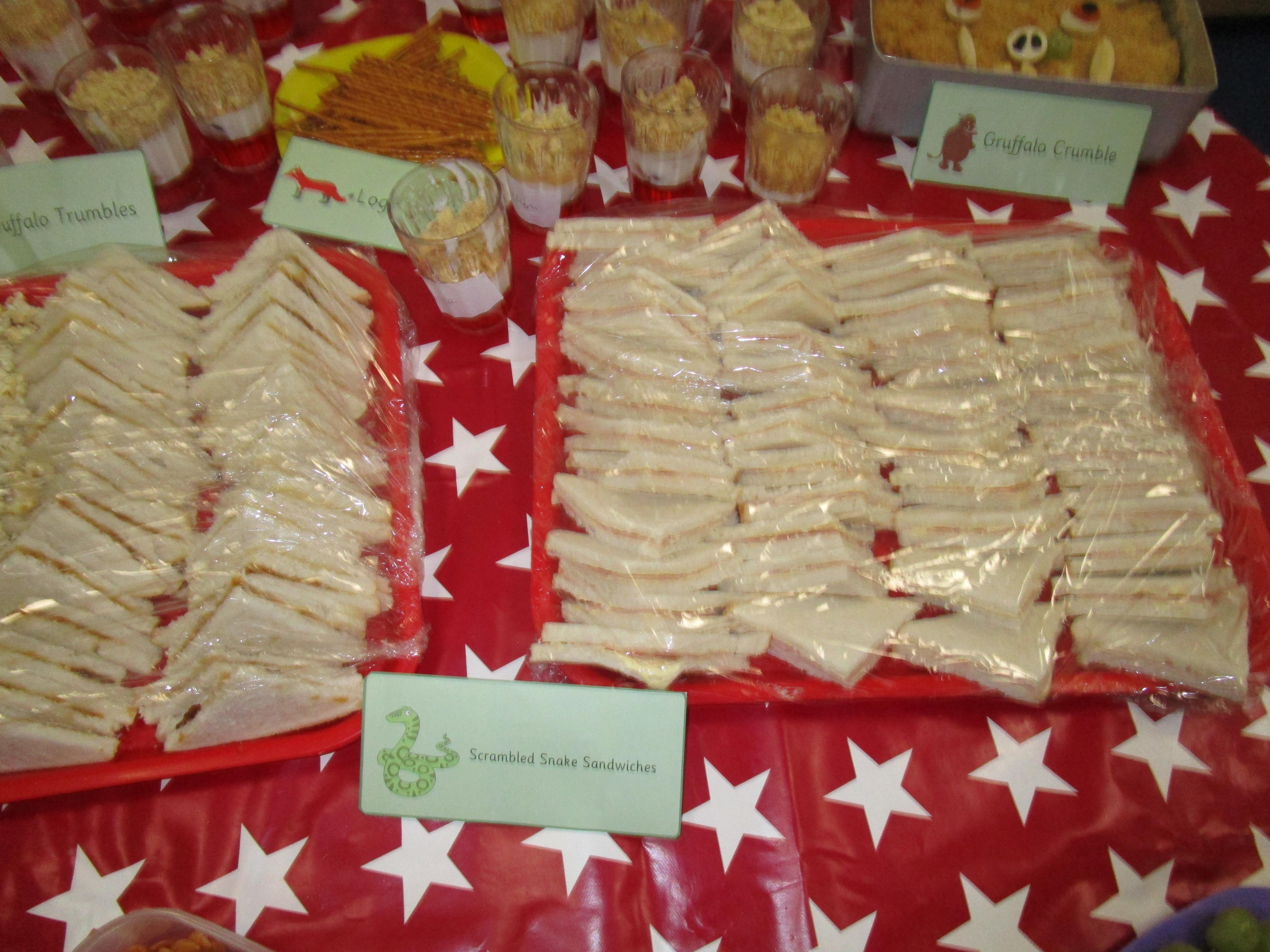 For our school cooking competition this year we have made a Gruffalo picnic. In the morning we made Gruffalo crumble and some sandwiches for our picnic. Then each child made a 'Gruffalo Trumble' which was a mix between a traditional trifle and a crumble. It tasted delicious!