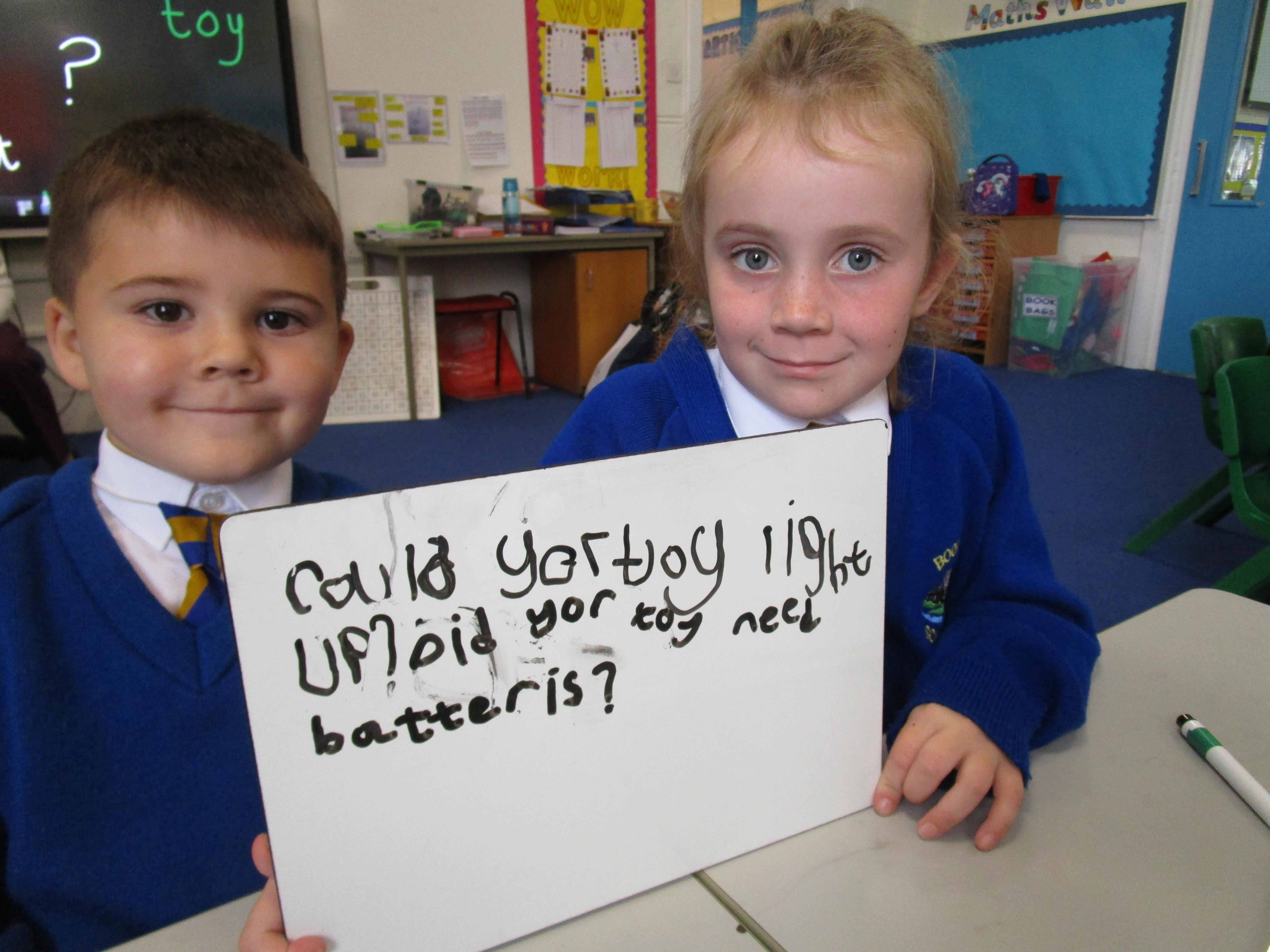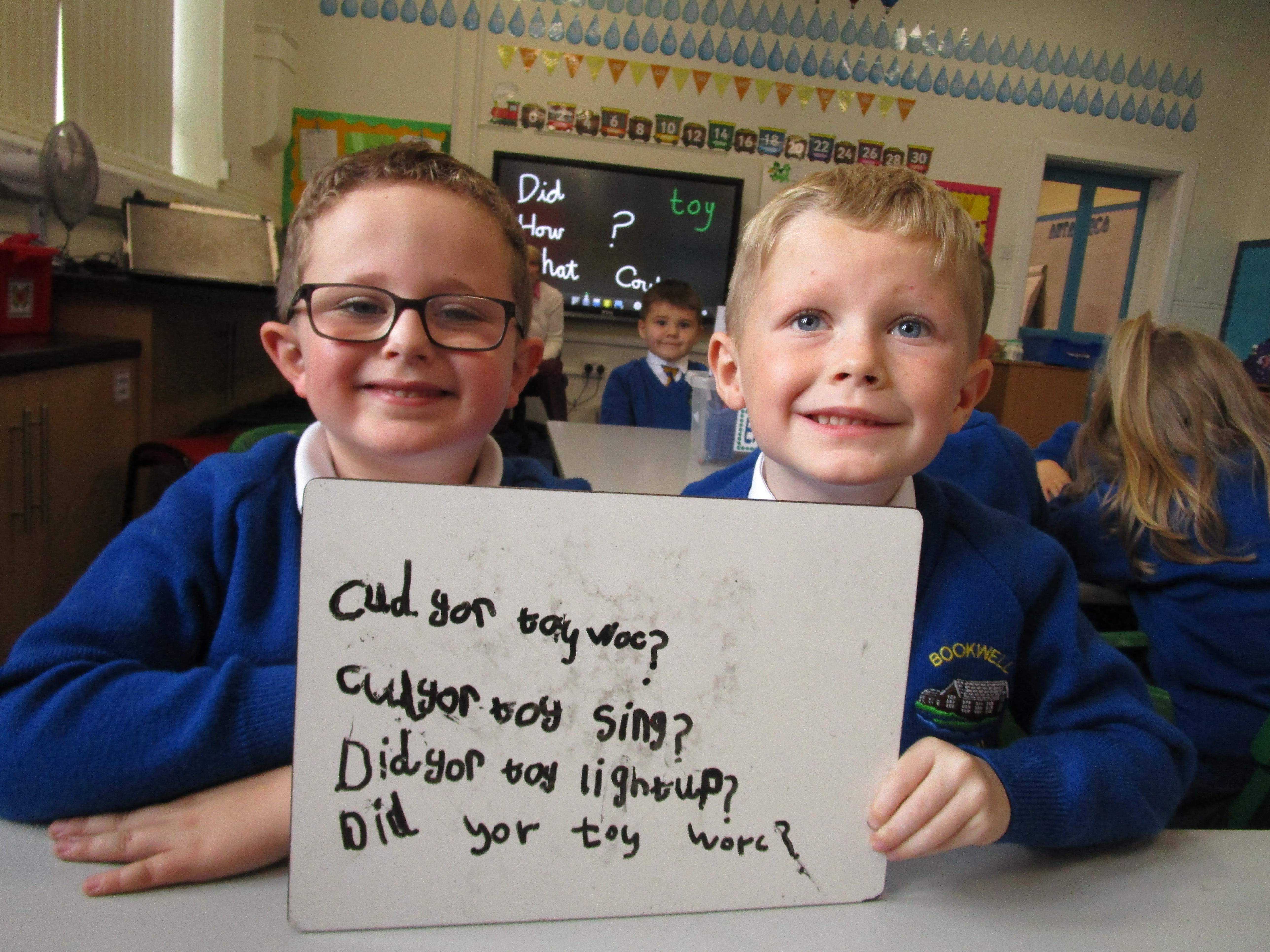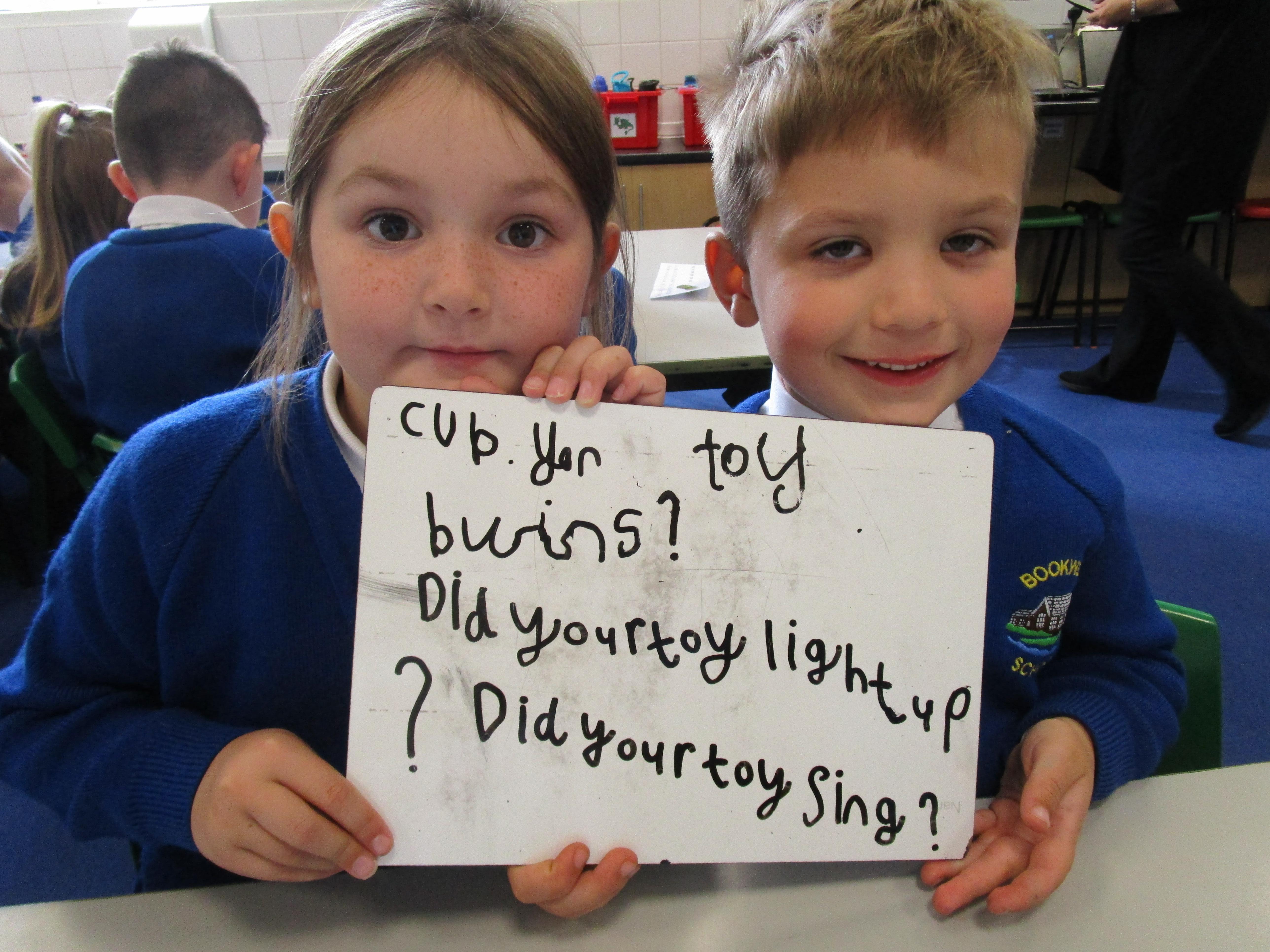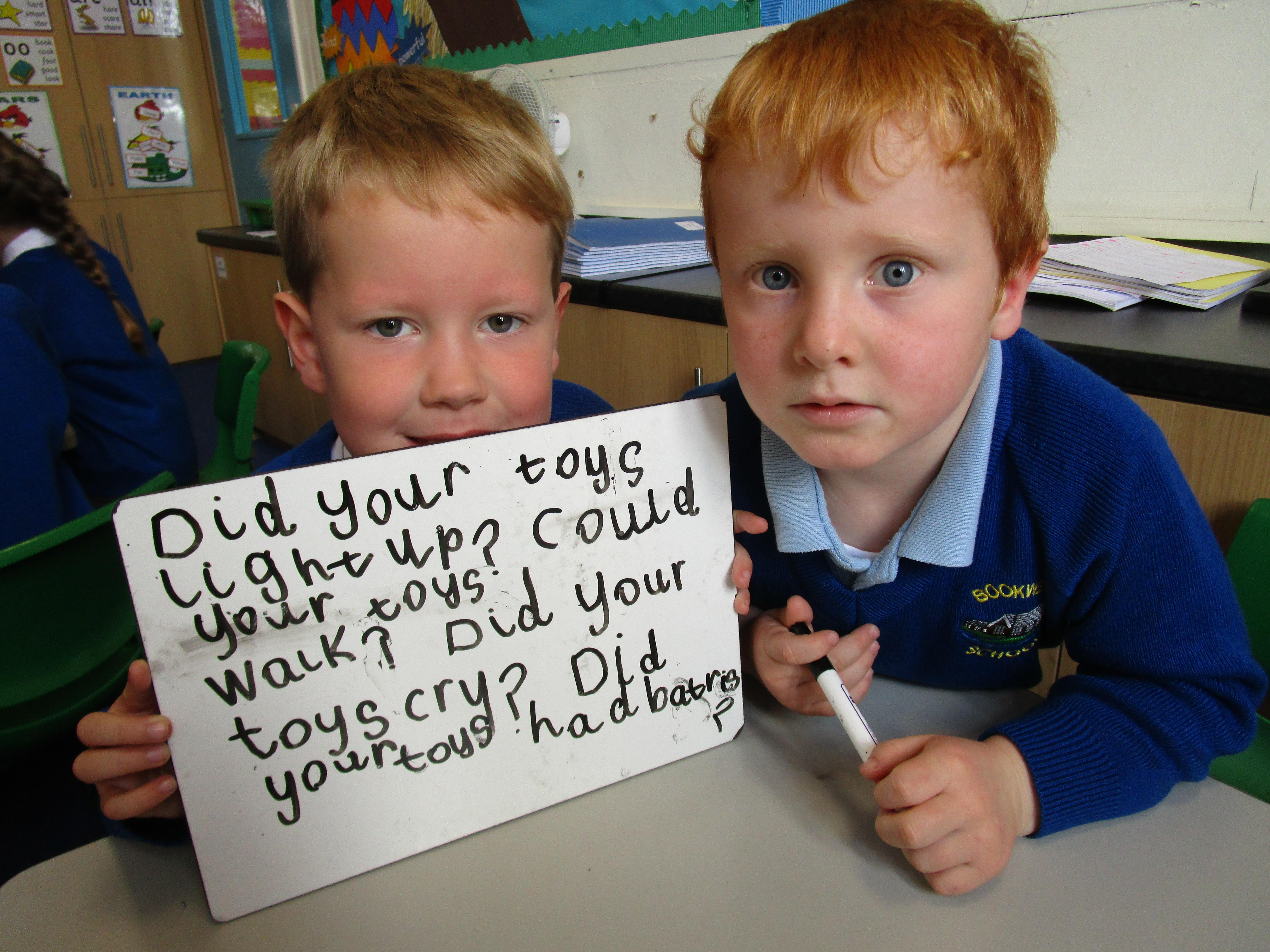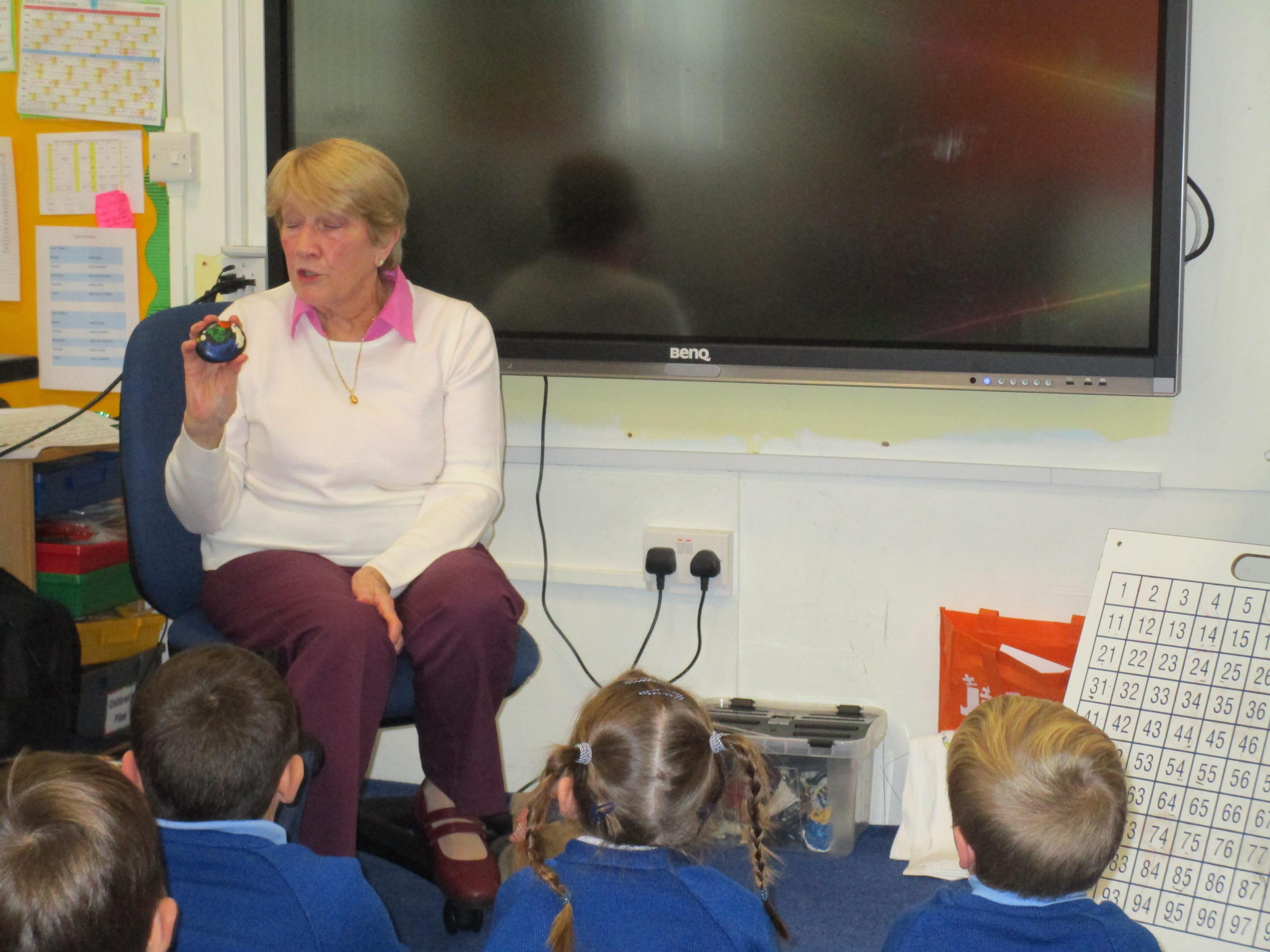 To consolidate the children's learning about old and new toys today in class both myself and our visitor Mrs Forrester brought in a toy. One of the toys was an old toy and one of the toys was a new one and the children had to think of questions to ask so that they could try and predict whether the toys were old or new. They asked some fantastic questions and made excellent predictions! They really enjoyed hearing Woody talk and were amazed that Mrs Forrester's doll was over 100 years old!