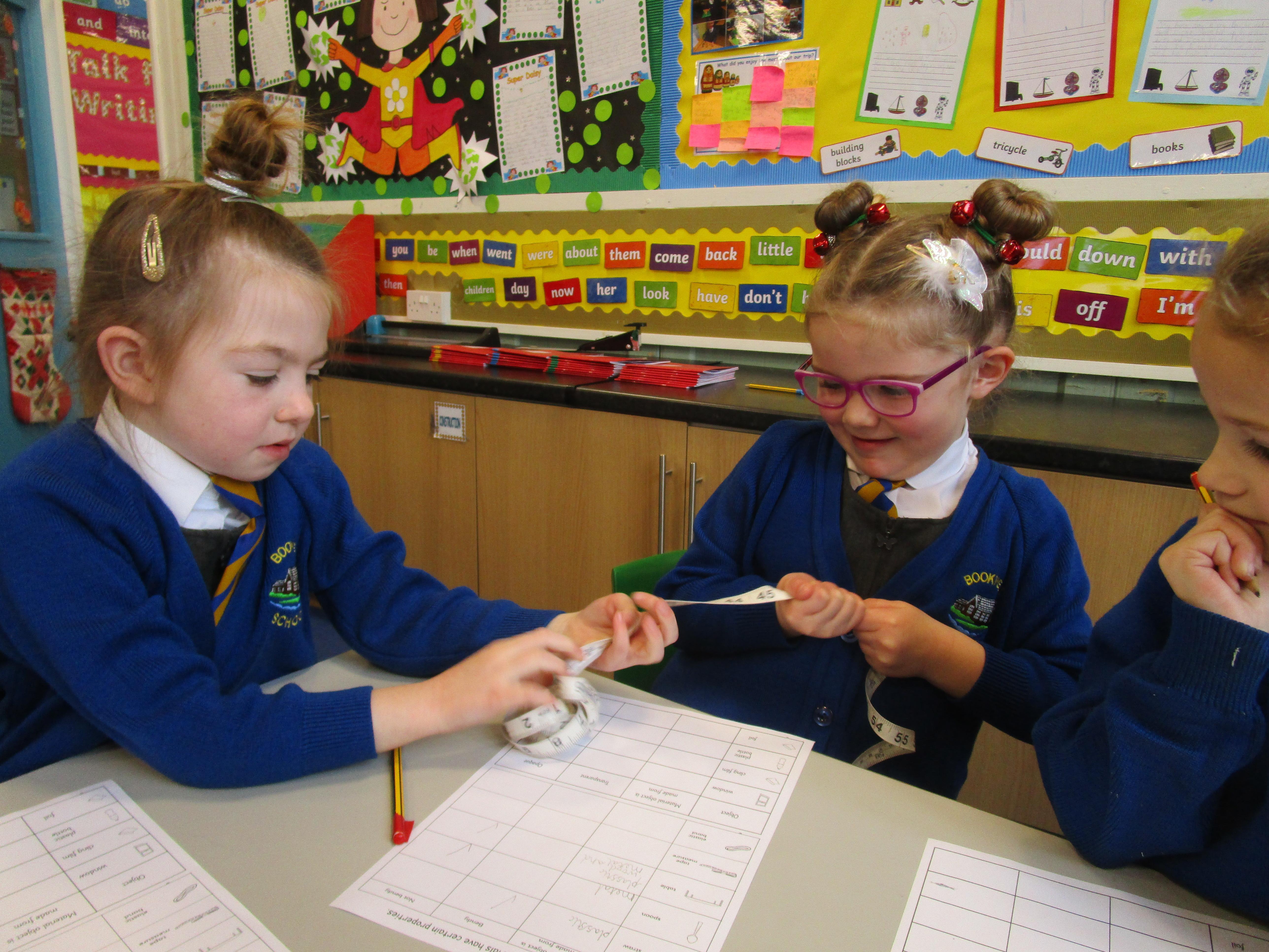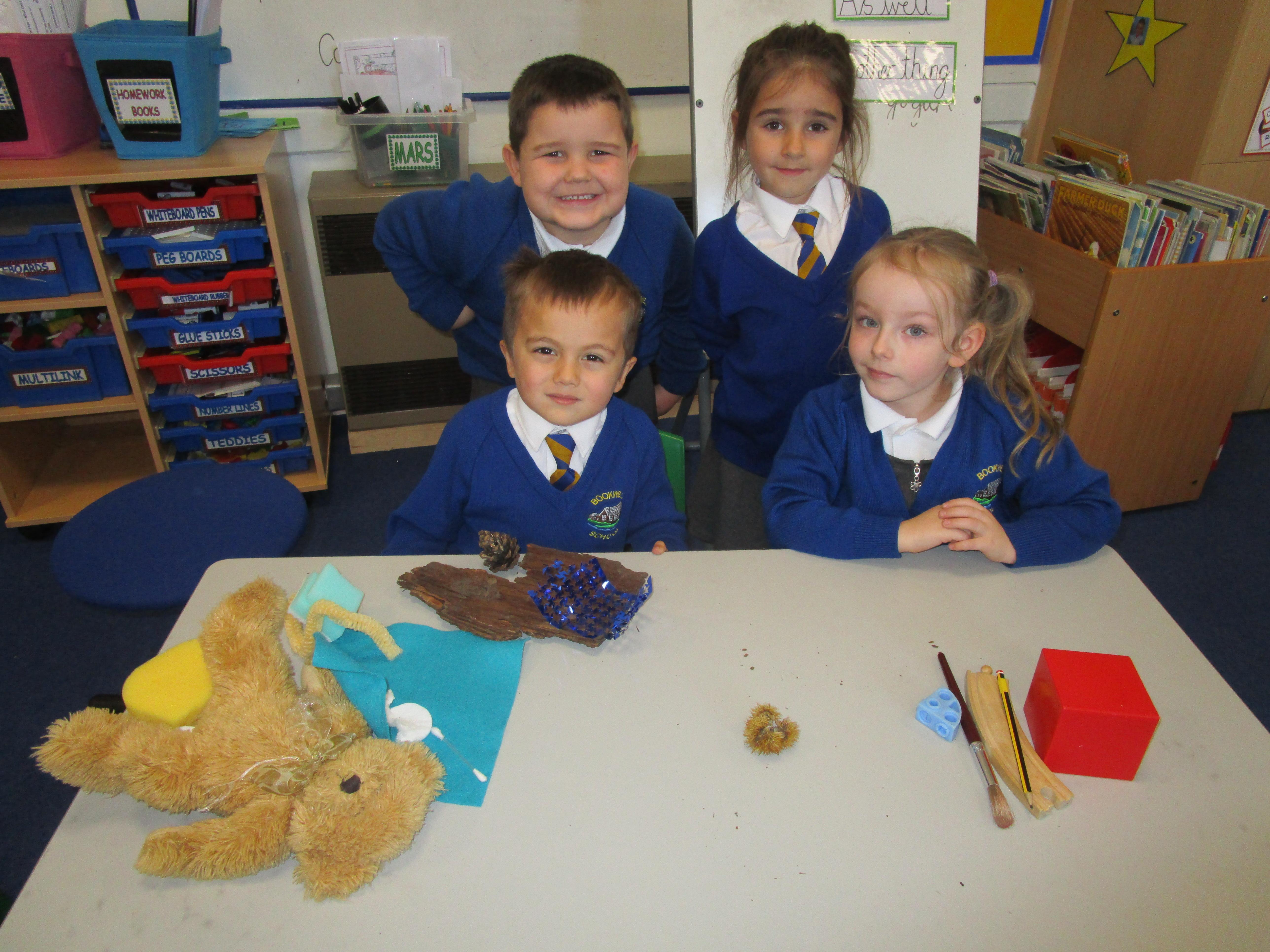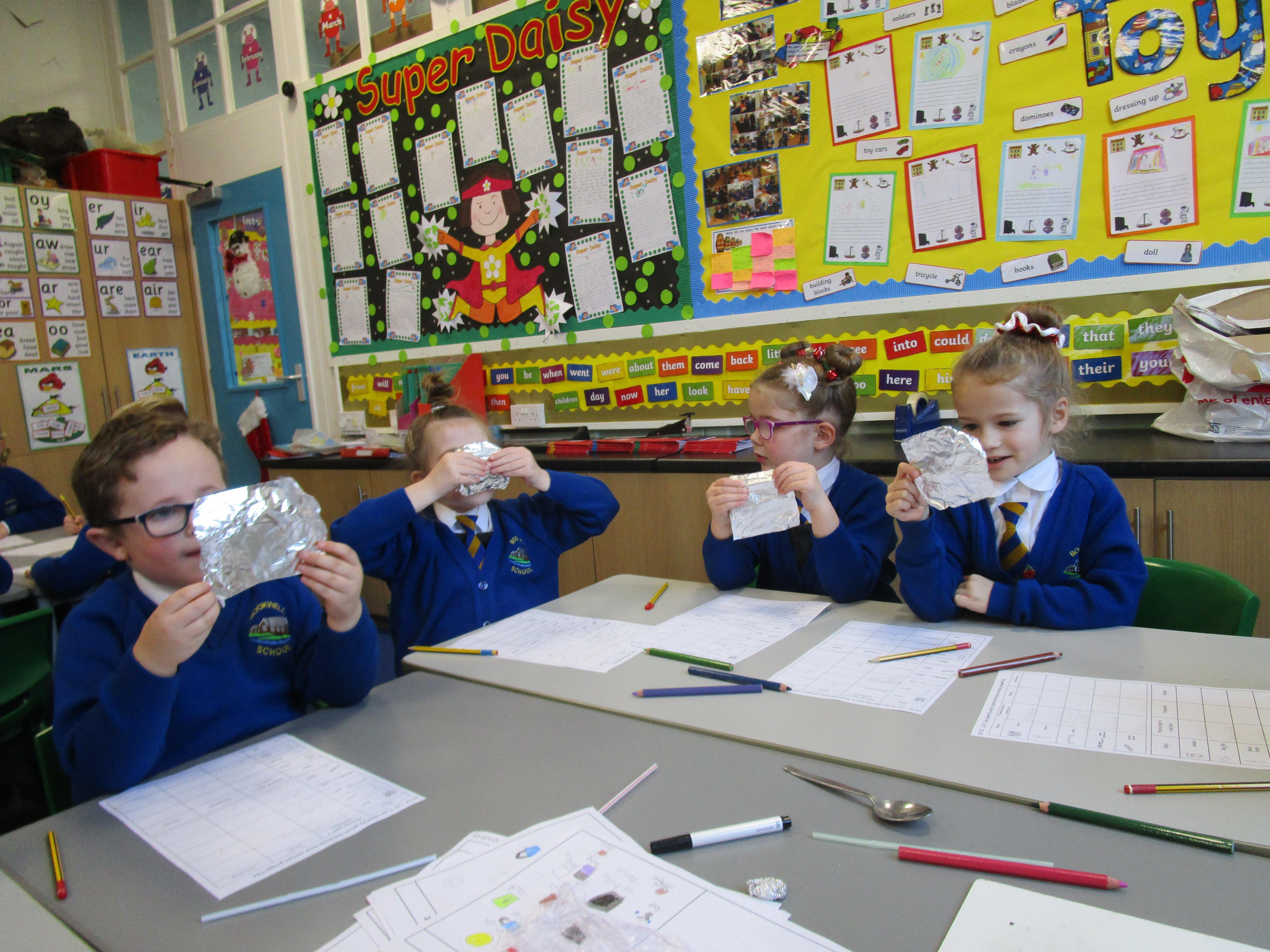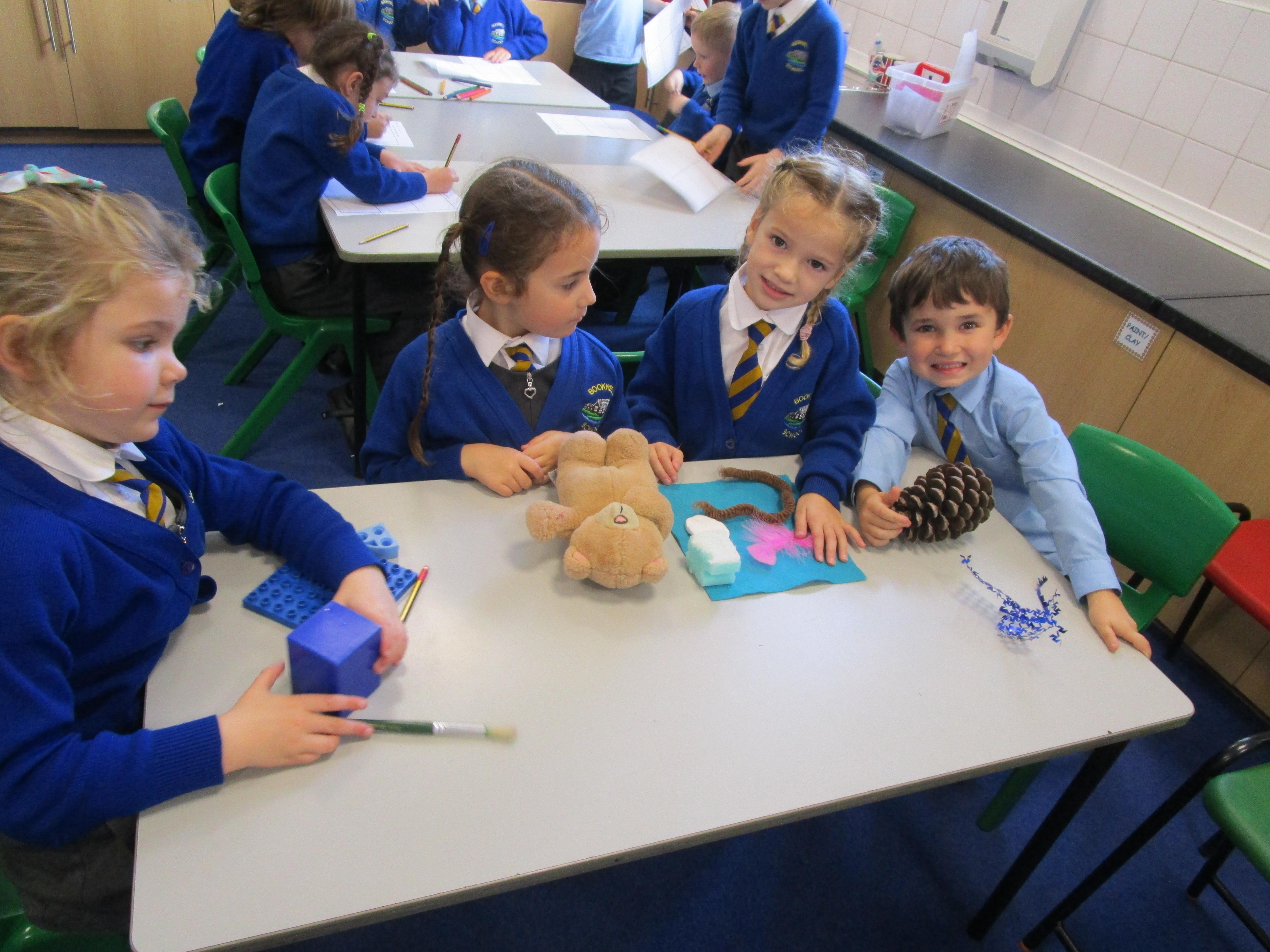 The children have been sorting and grouping materials according to their properties.