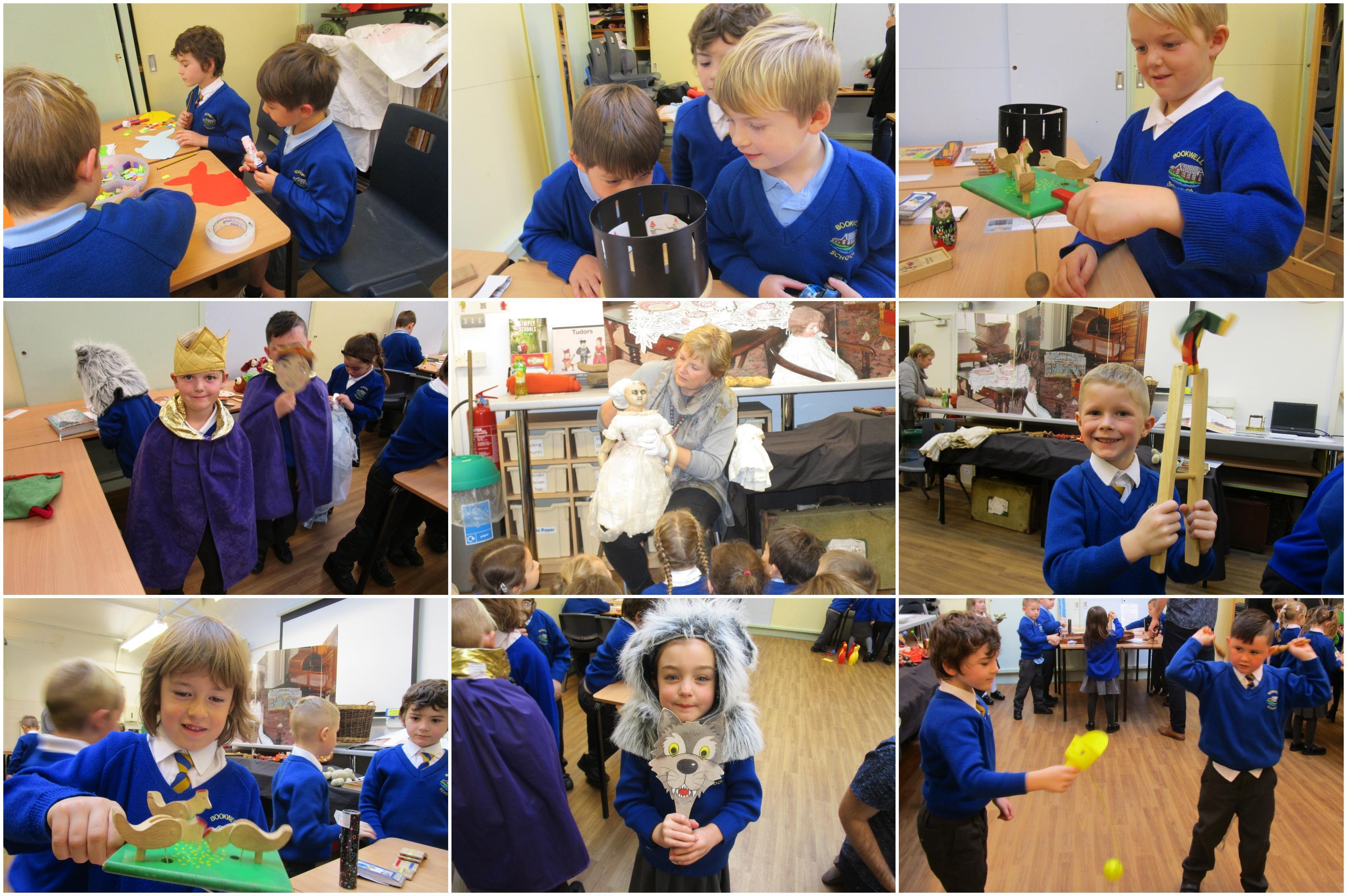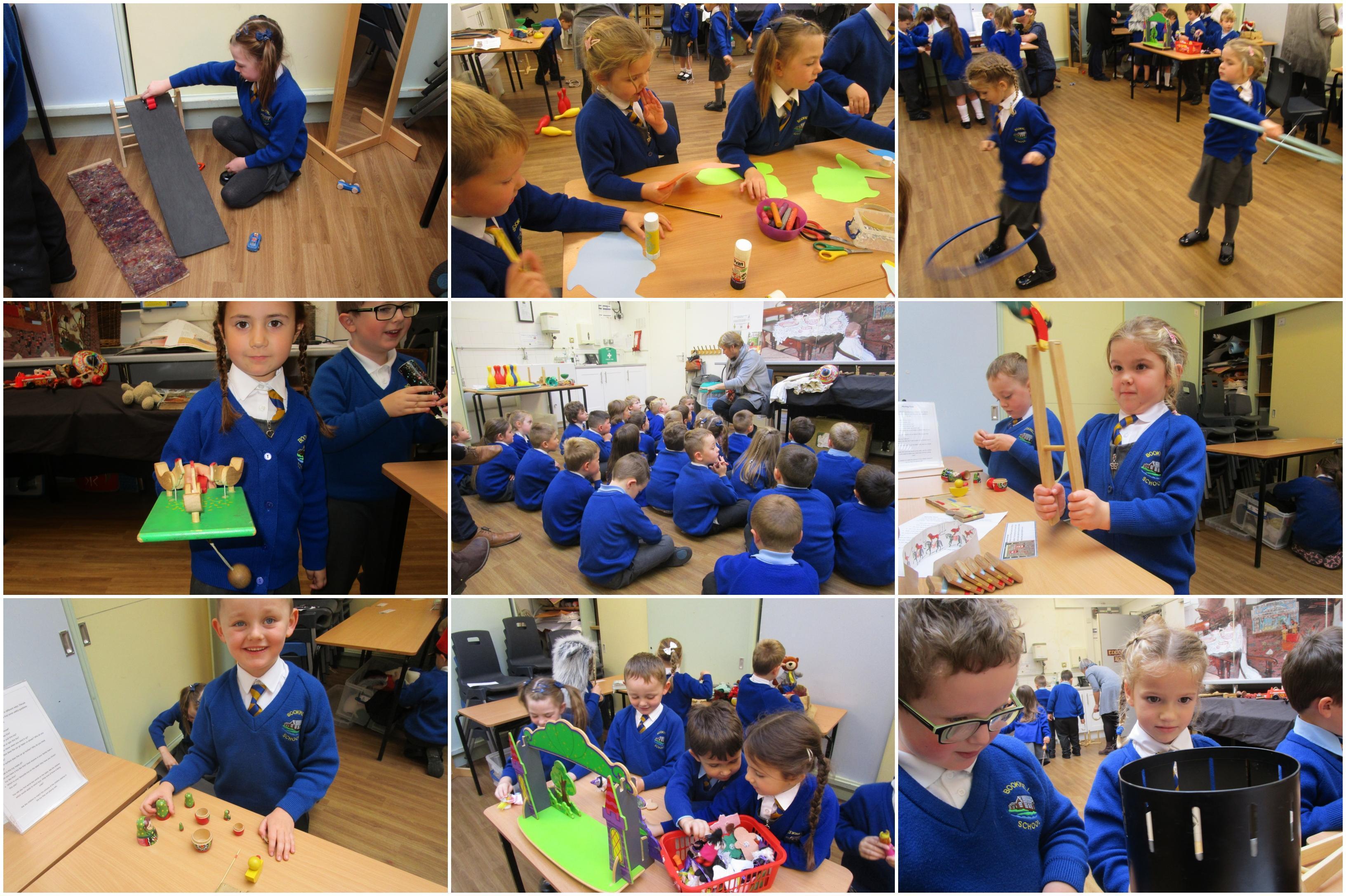 The children all really enjoyed our trip to Tullie House today, where we learnt about old toys. First the children were shown some old toys by our guide. Then they got the chance to play with outside toys from the past and to explore toys from the past that require a push or a pull movement to work. The children also got the opportunity to play with dress up toys as well as creating some toys of their own.