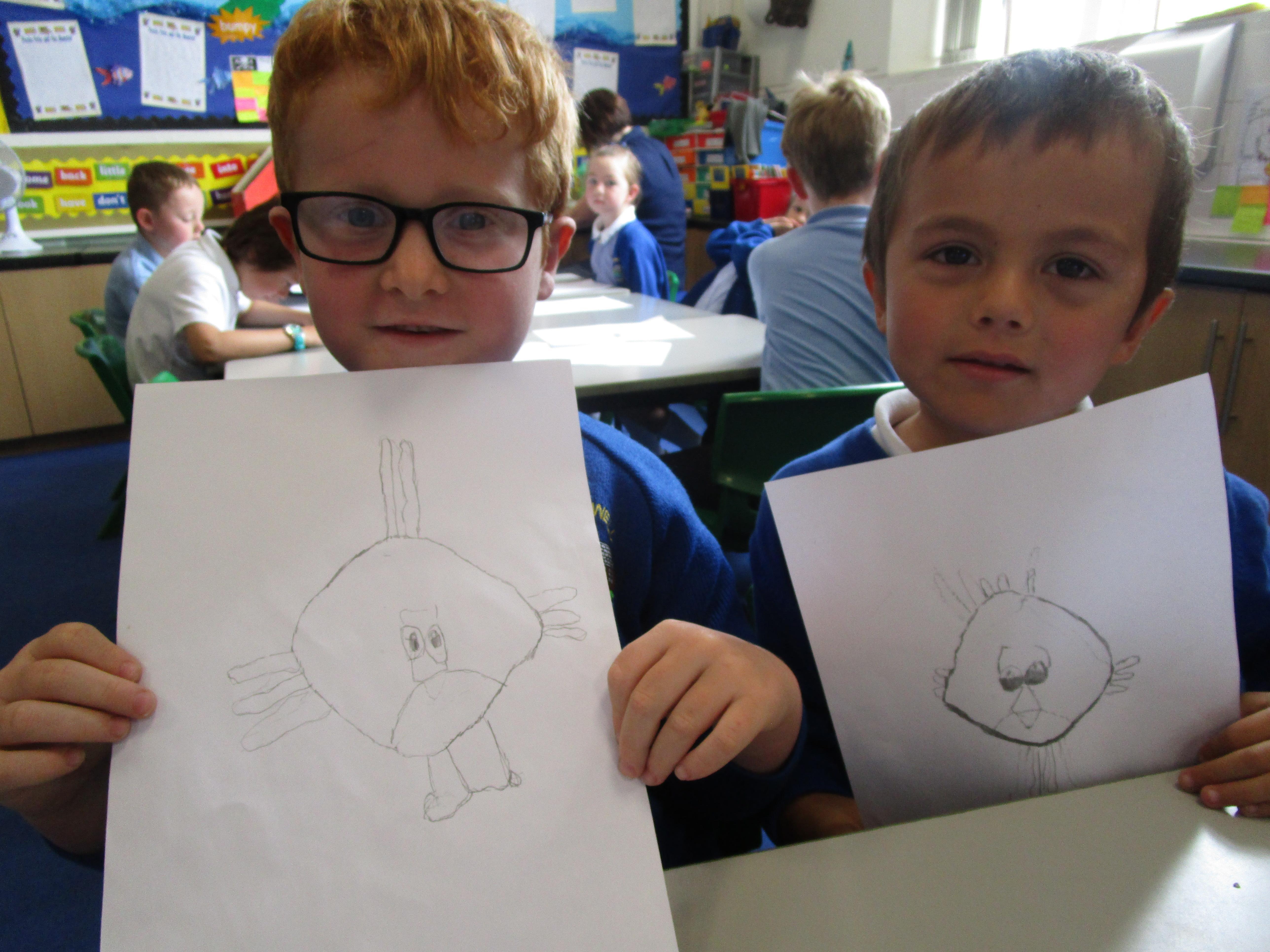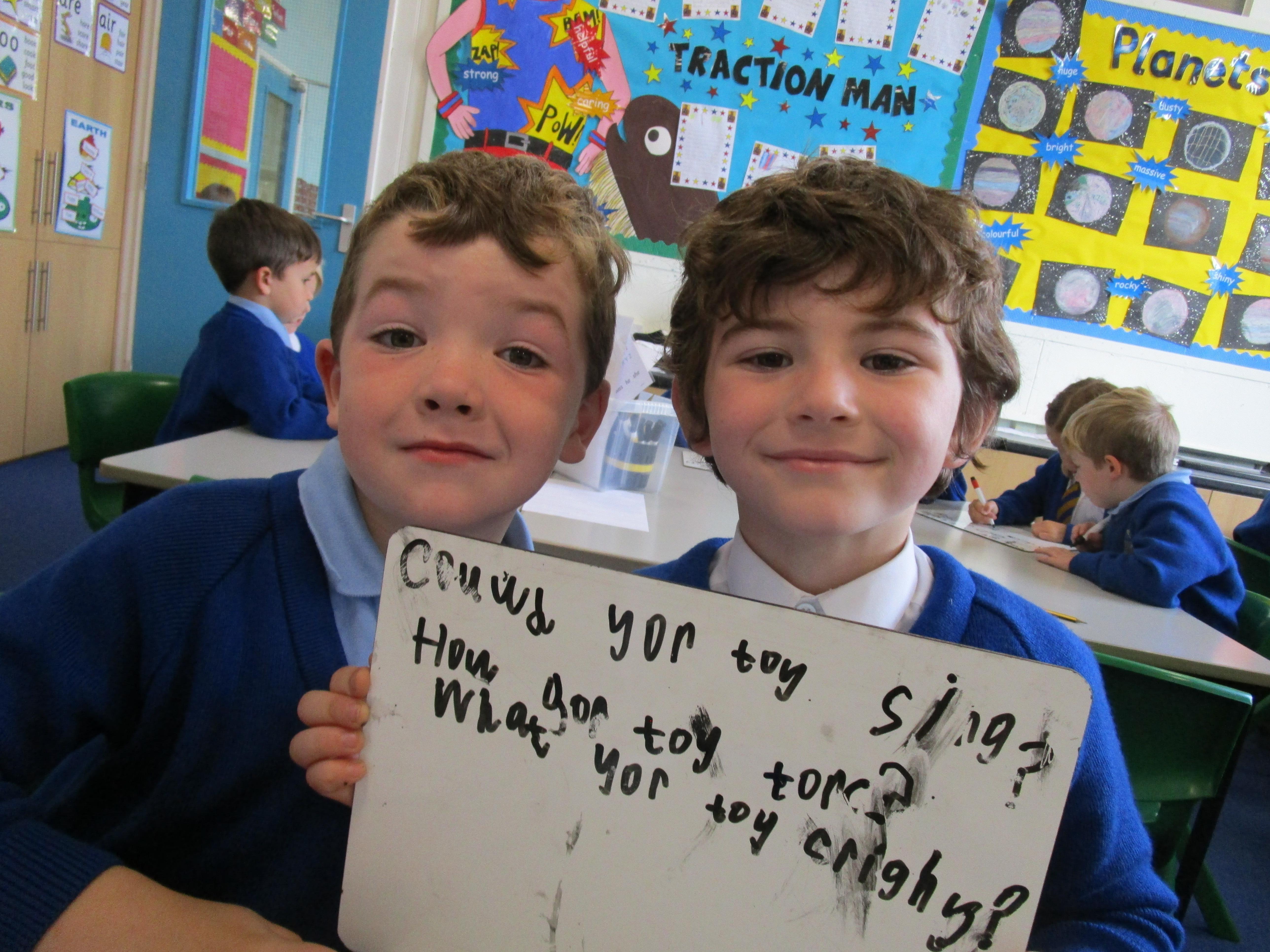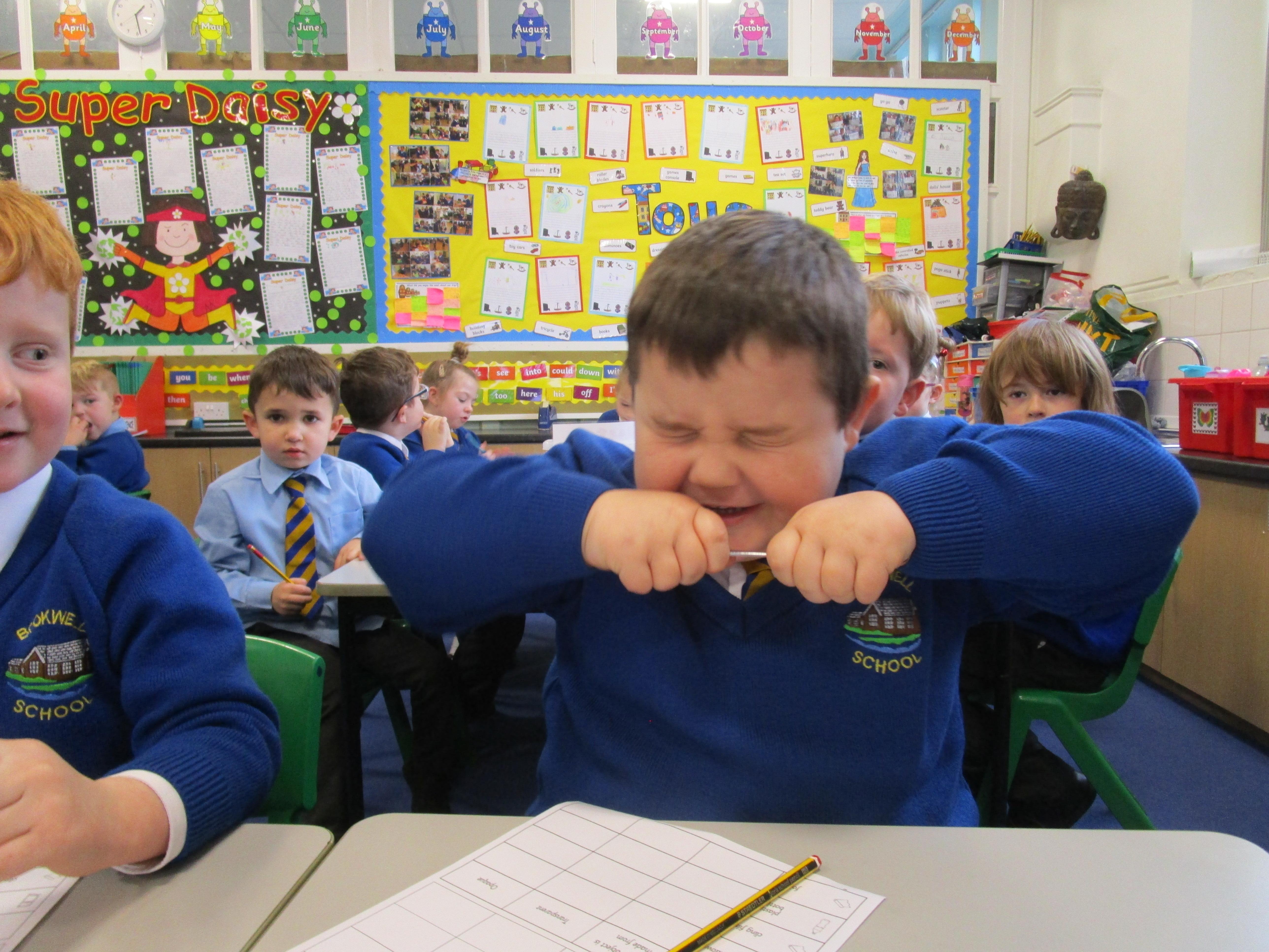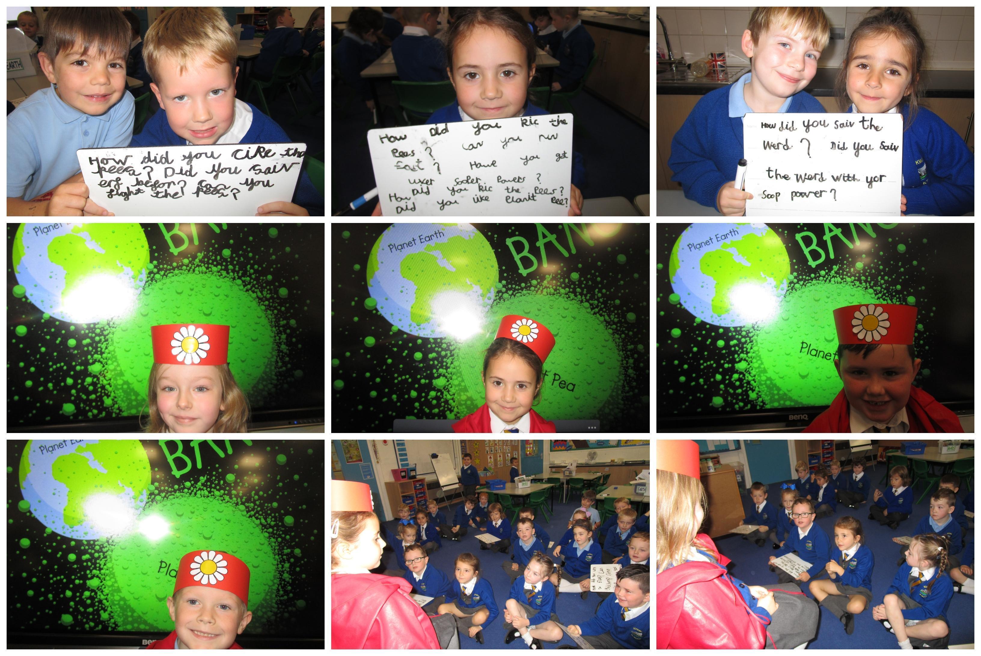 Today in class we have been reading ‘Super Daisy And the Peril of Planet Pea’. In pairs the children had to write questions that they would like to ask Super Daisy. Then some of the children sat in the hot seat and answered the questions in role as Super Daisy.