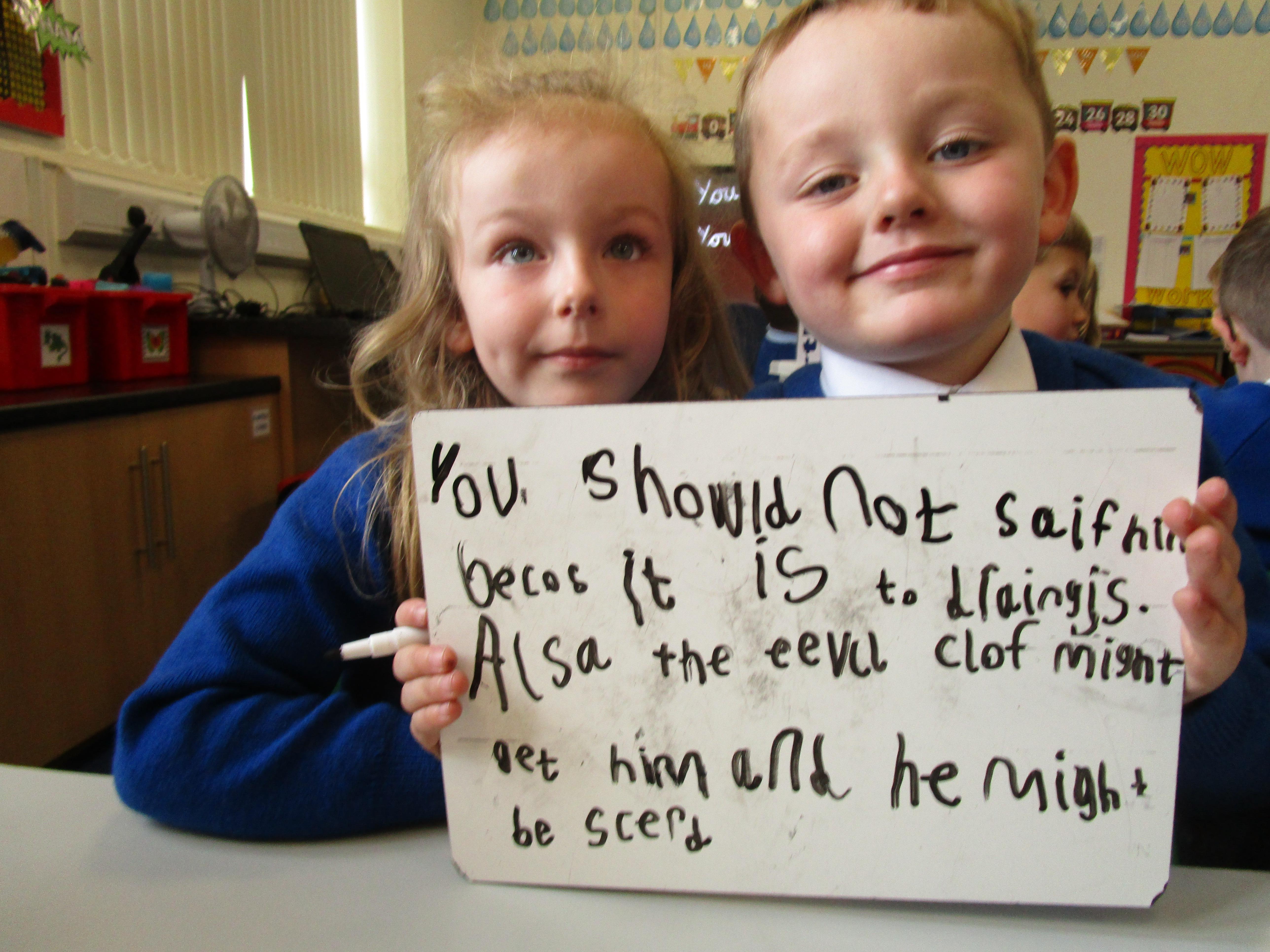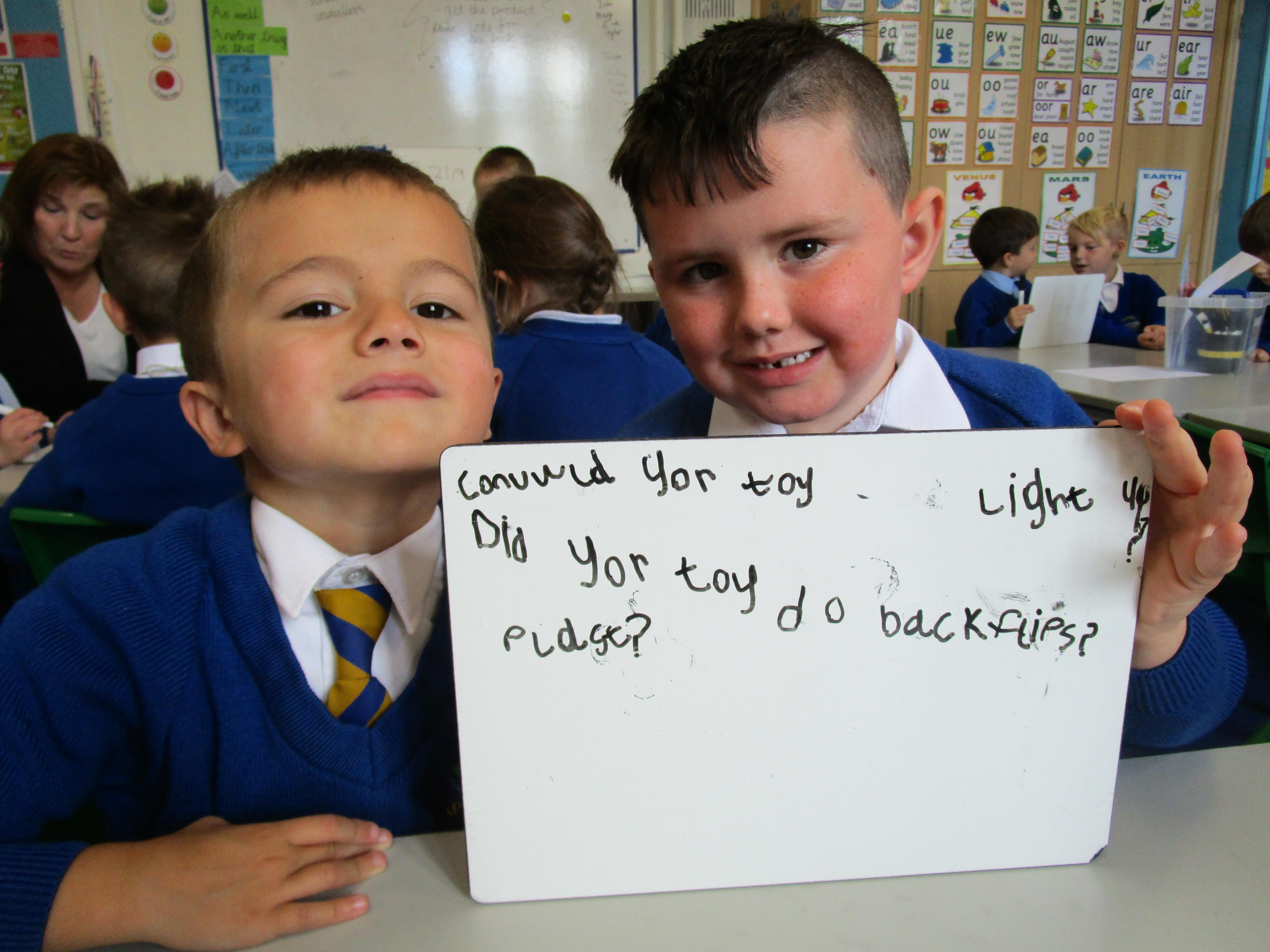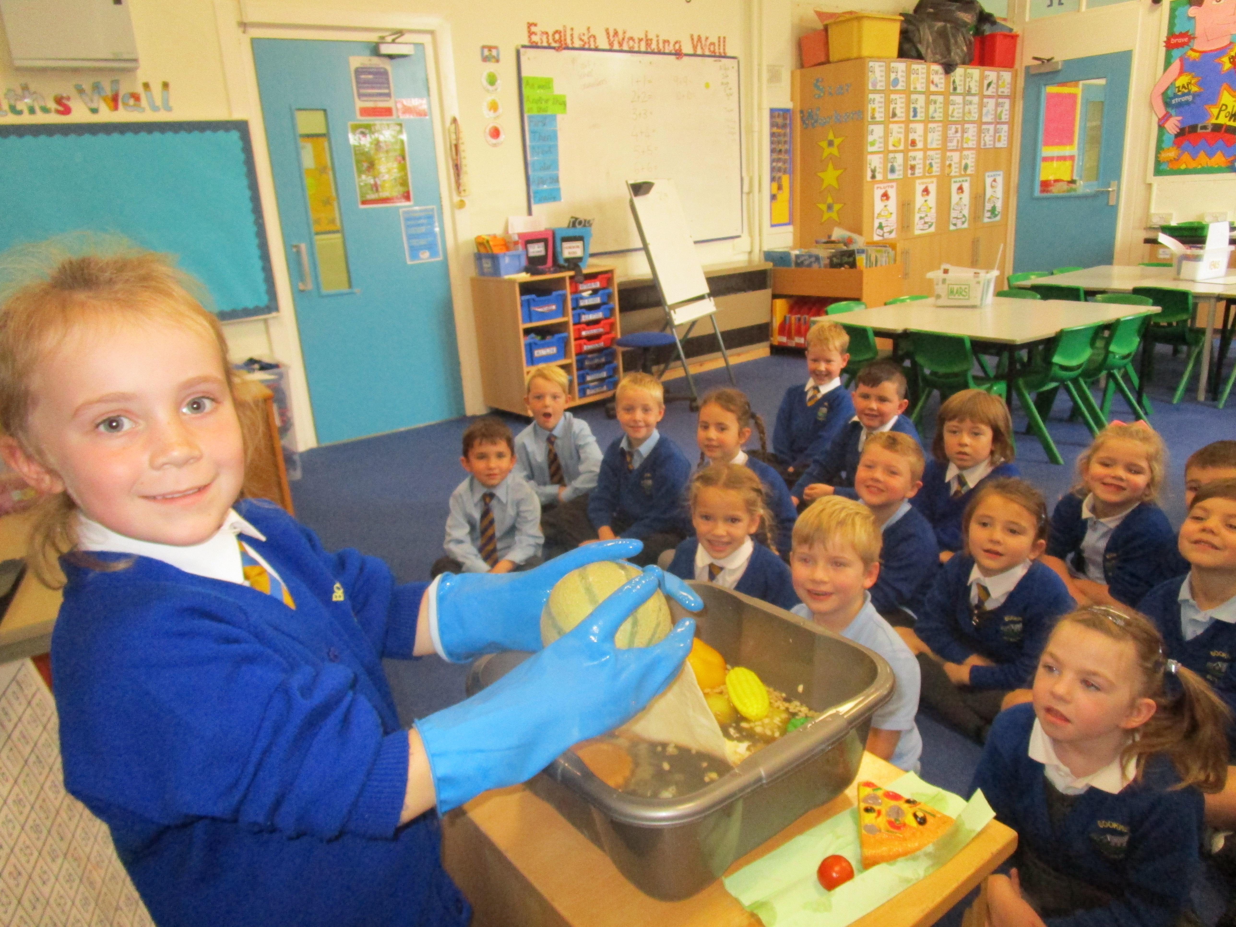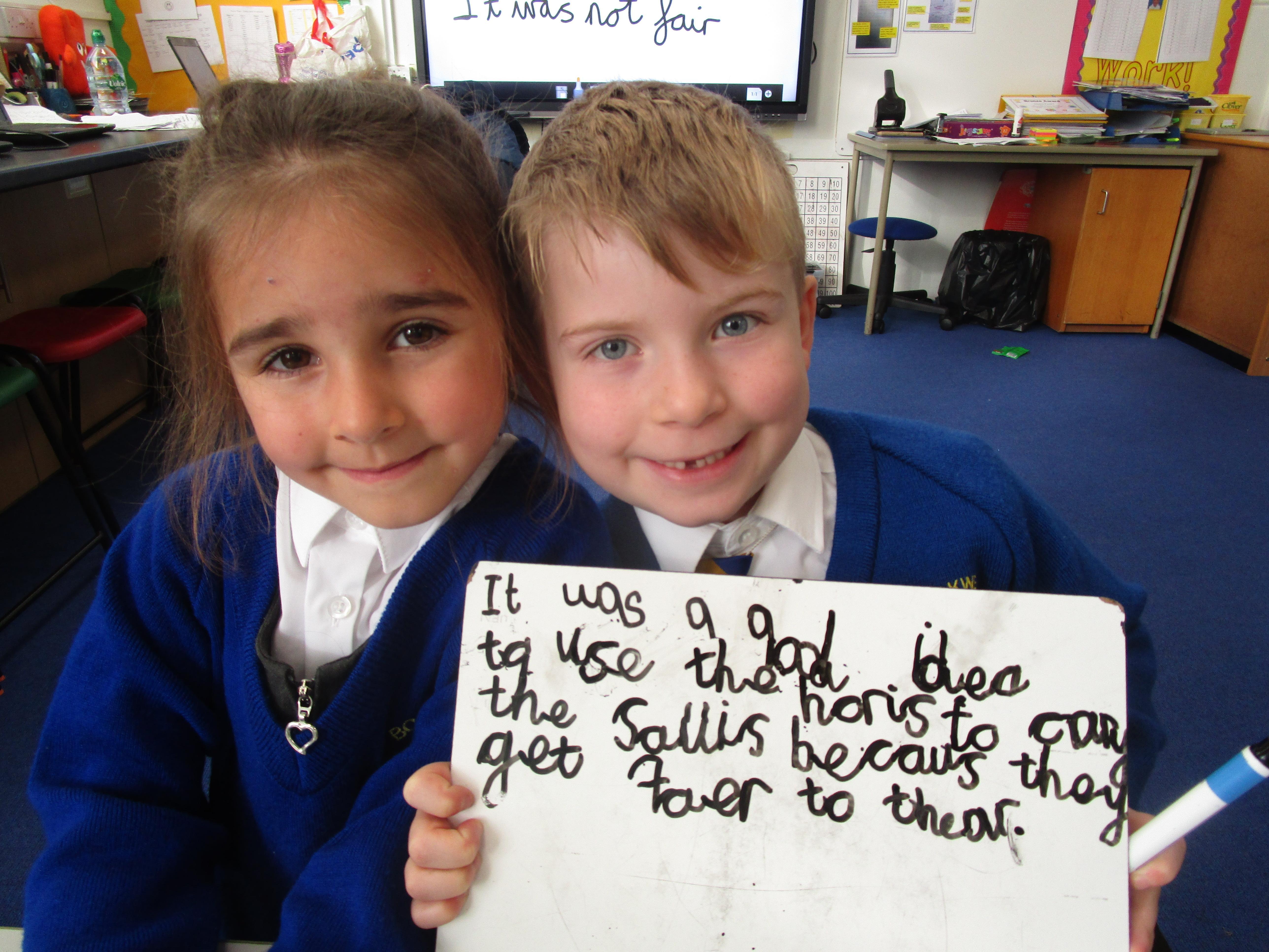 Today in class we have been reading ‘Super Daisy And the Peril of Planet Pea’. In pairs the children had to write questions that they would like to ask Super Daisy. Then some of the children sat in the hot seat and answered the questions in role as Super Daisy.