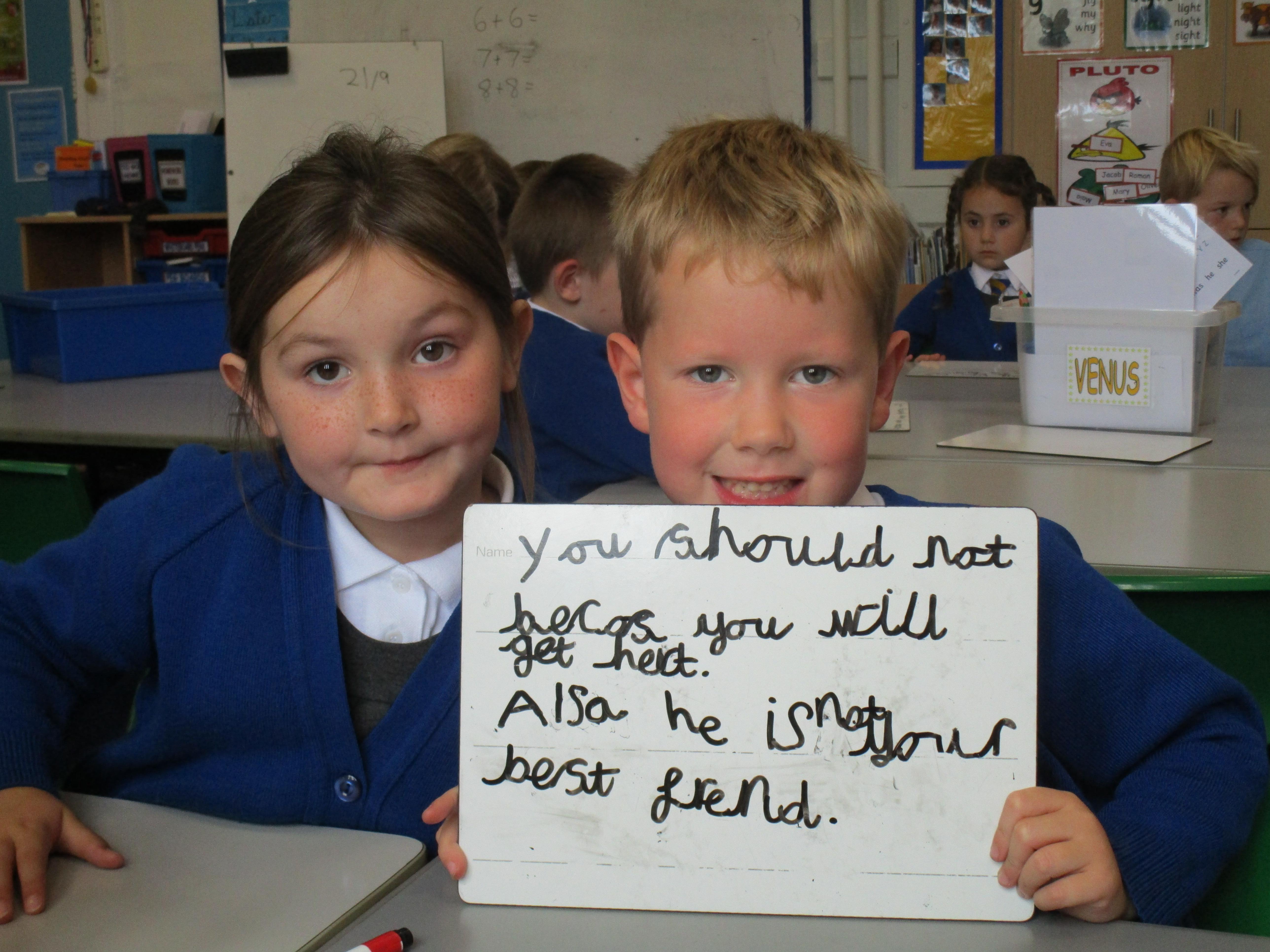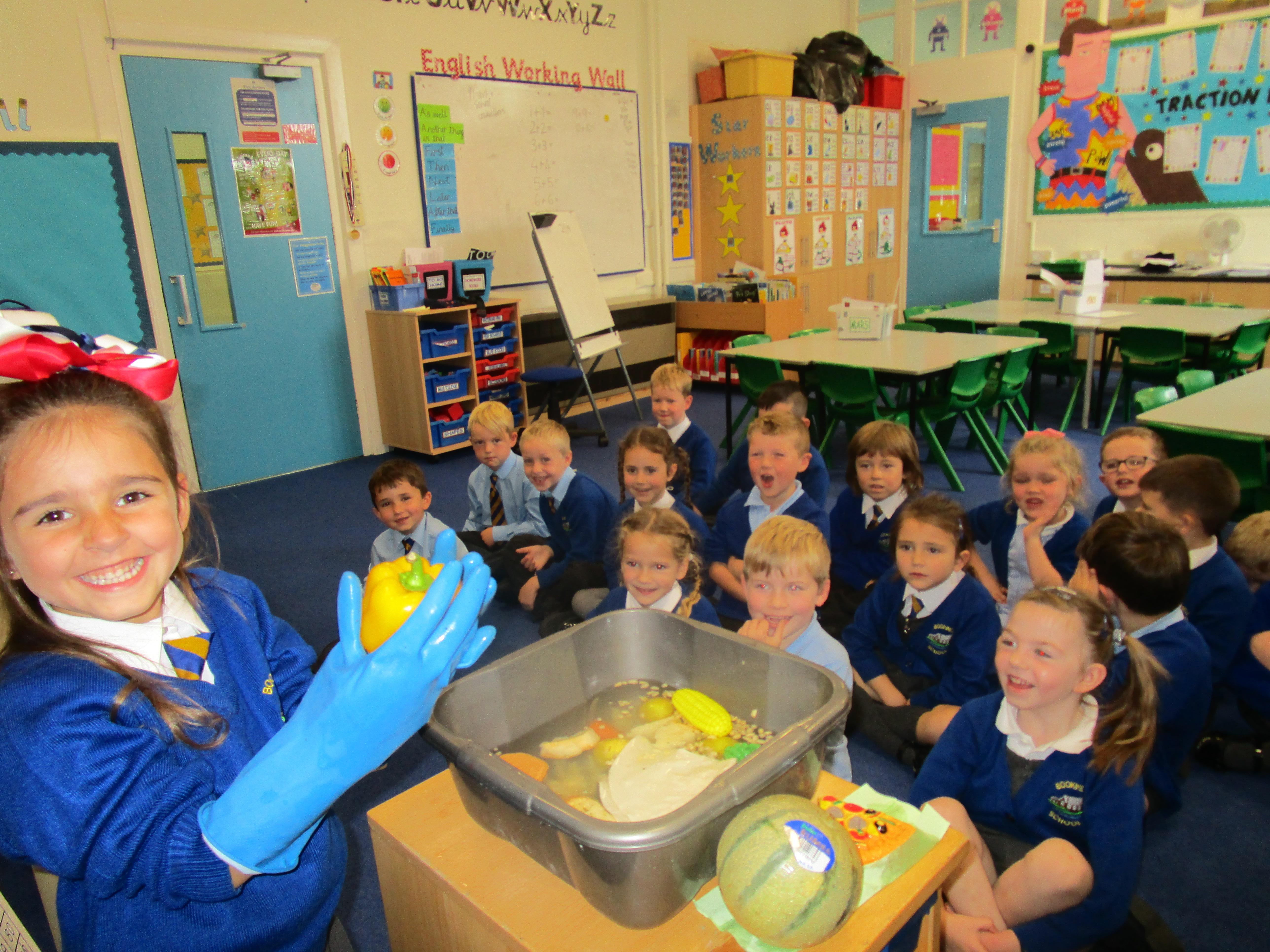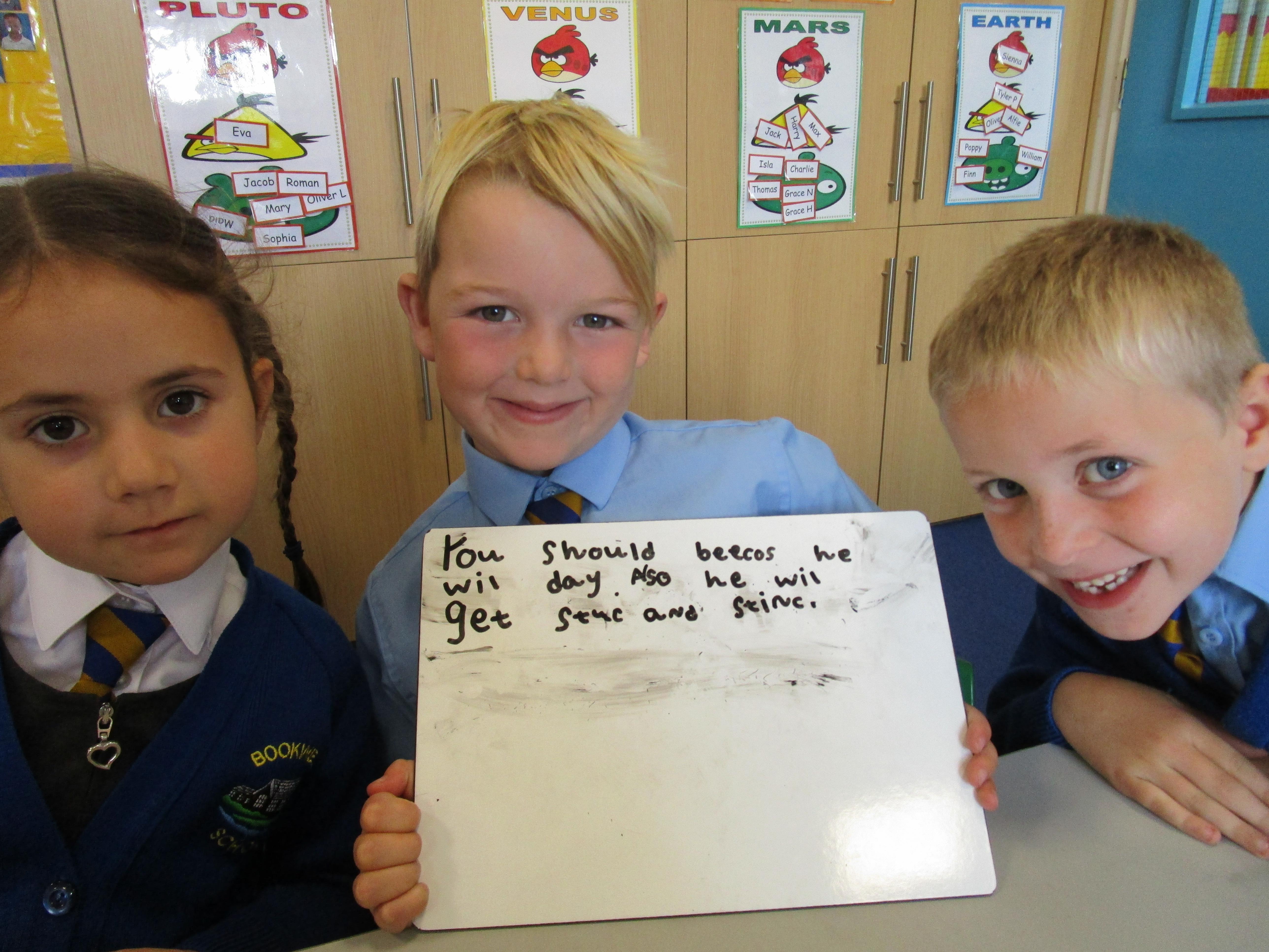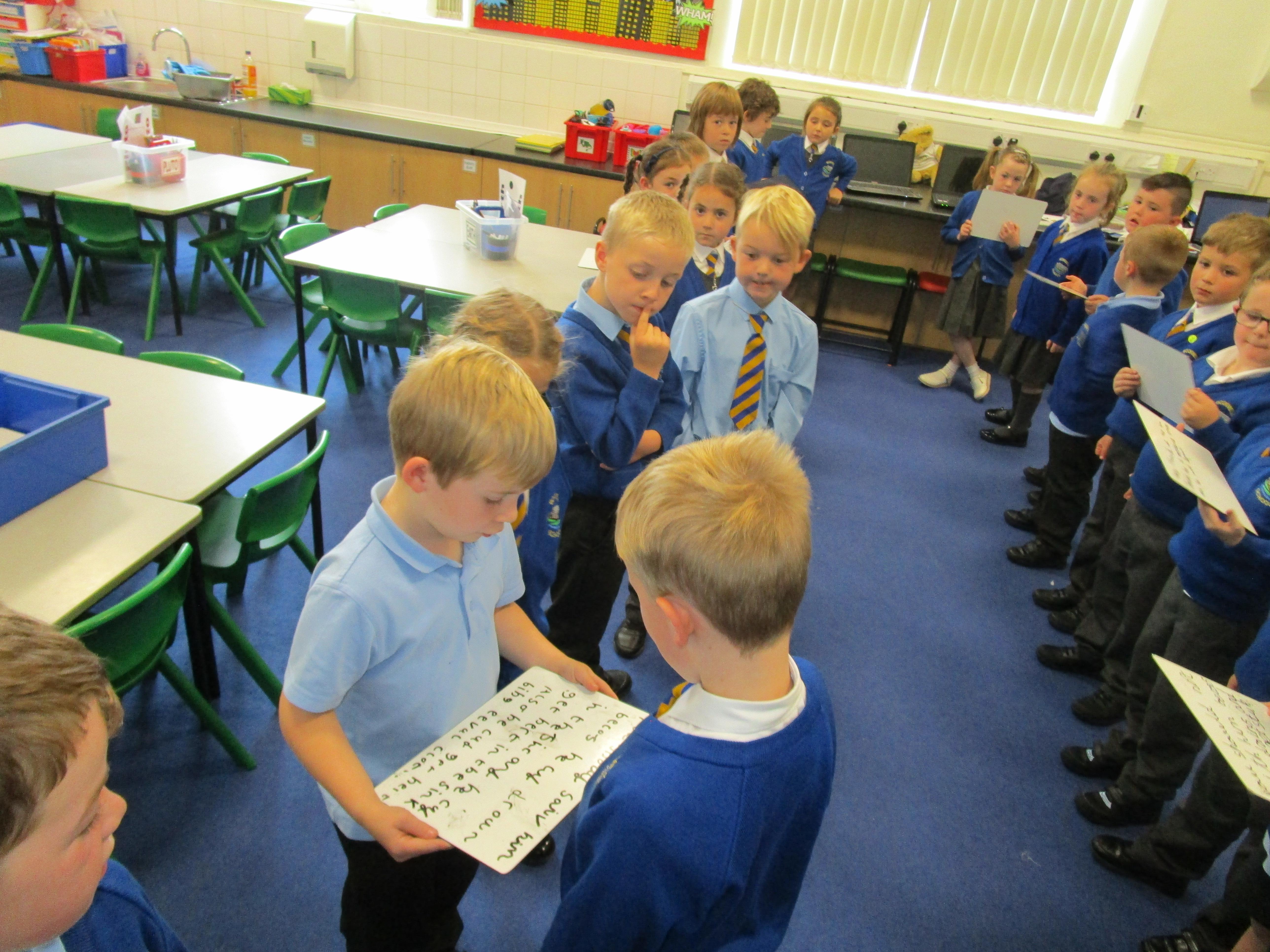 Today in class we have been reading ‘Super Daisy And the Peril of Planet Pea’. In pairs the children had to write questions that they would like to ask Super Daisy. Then some of the children sat in the hot seat and answered the questions in role as Super Daisy.