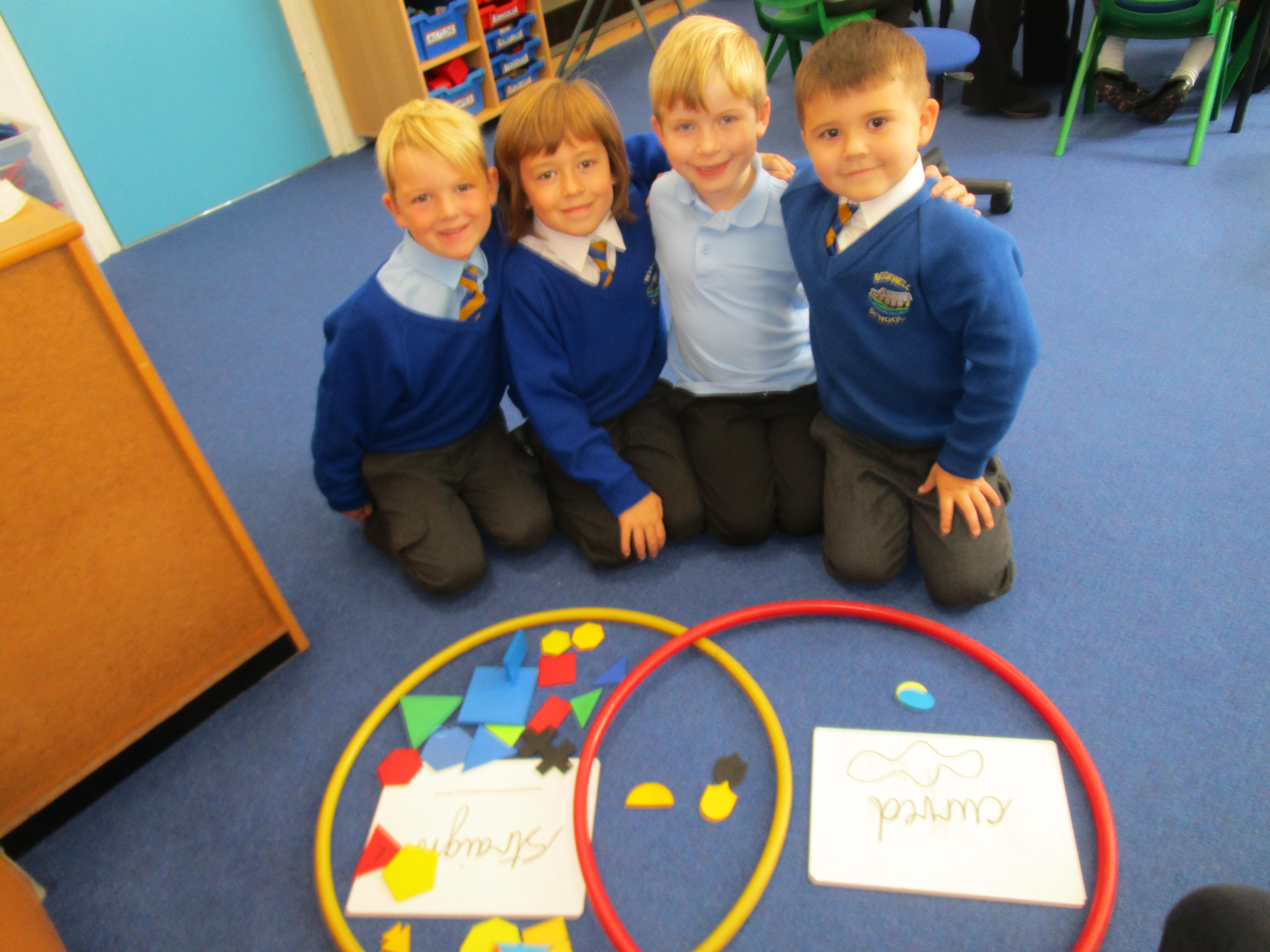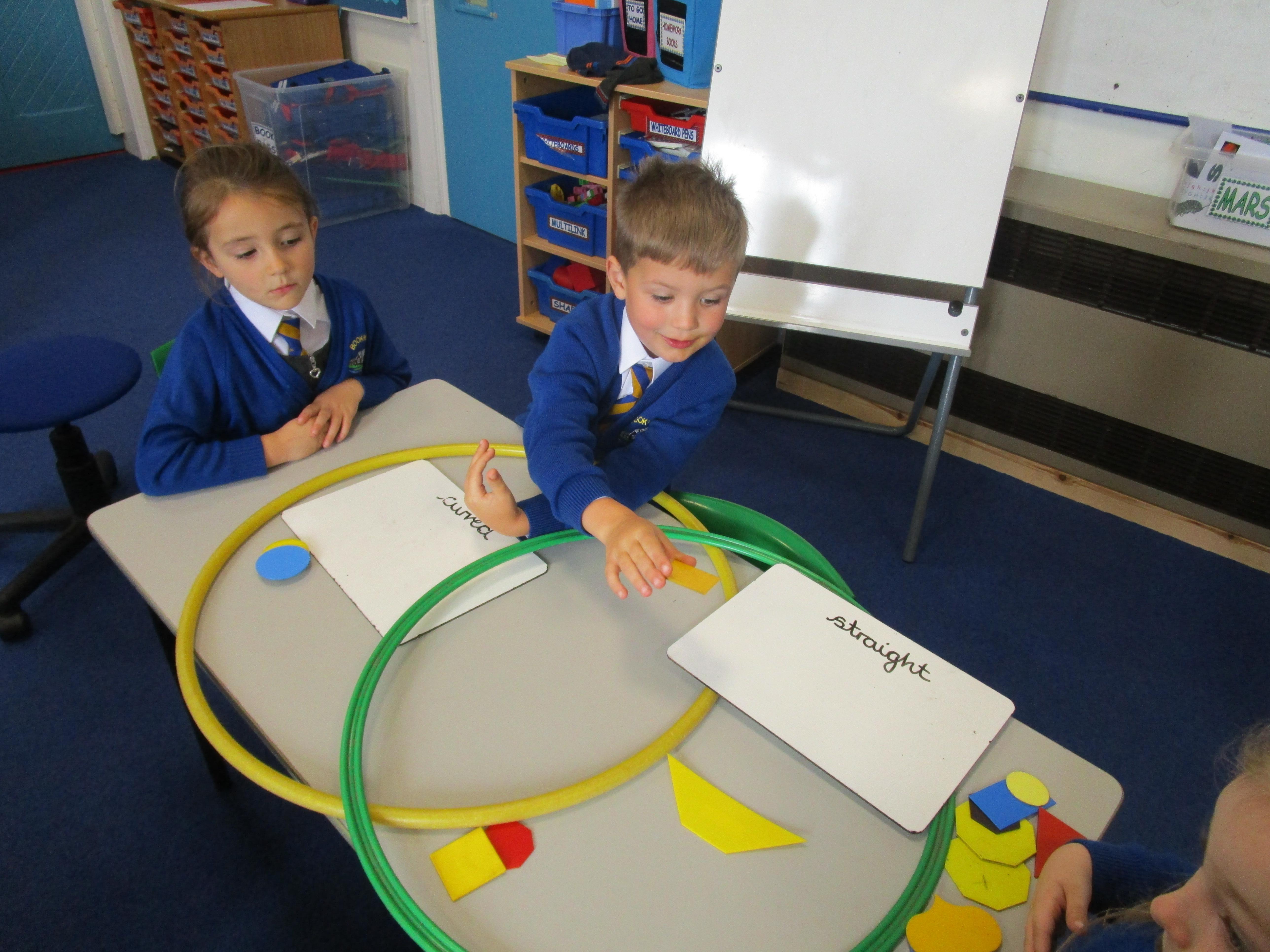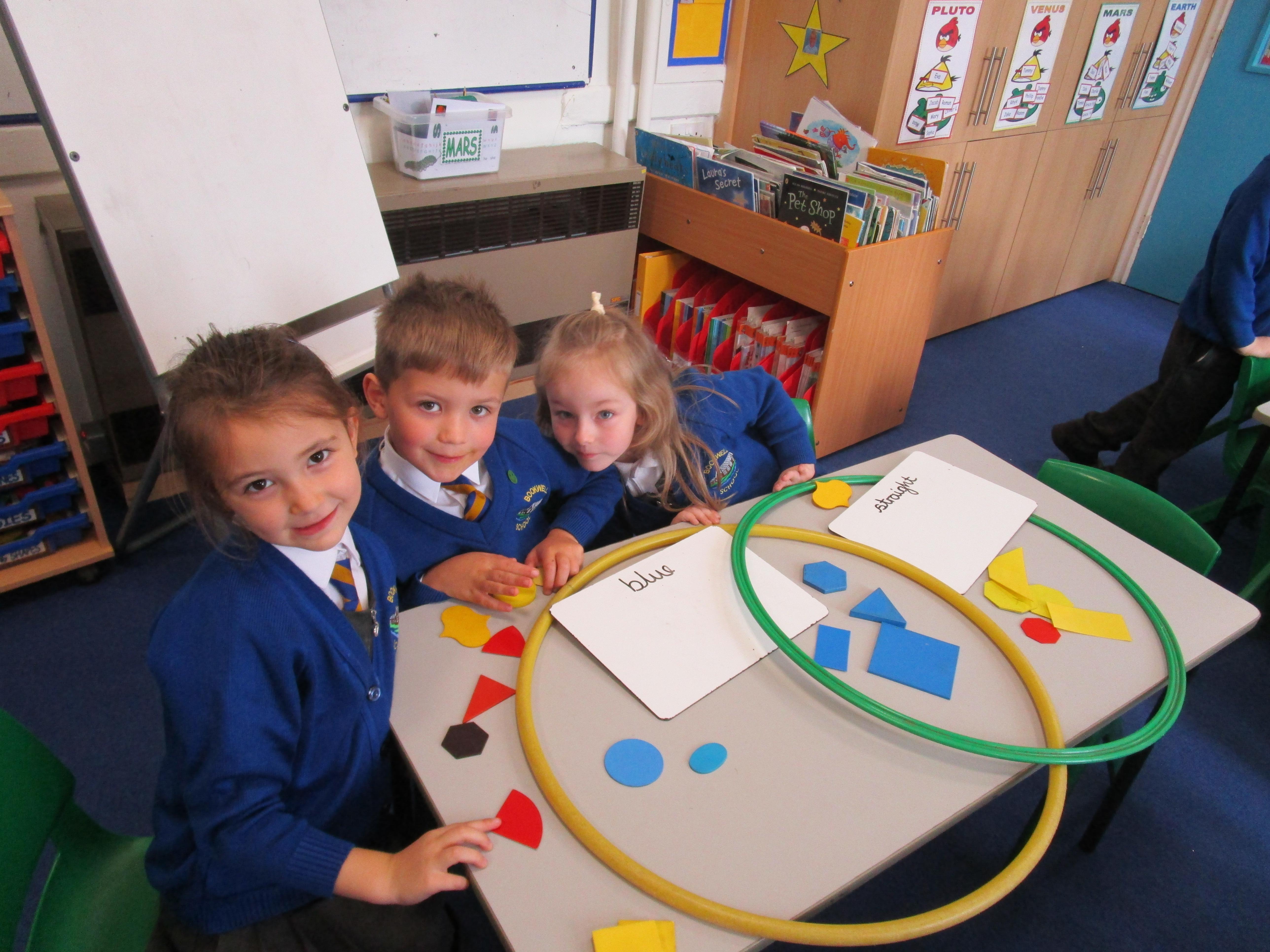 The children have been sorting shapes into Venn diagrams this week. It got gradually more tricky but the children did very well and really enjoyed this activity!