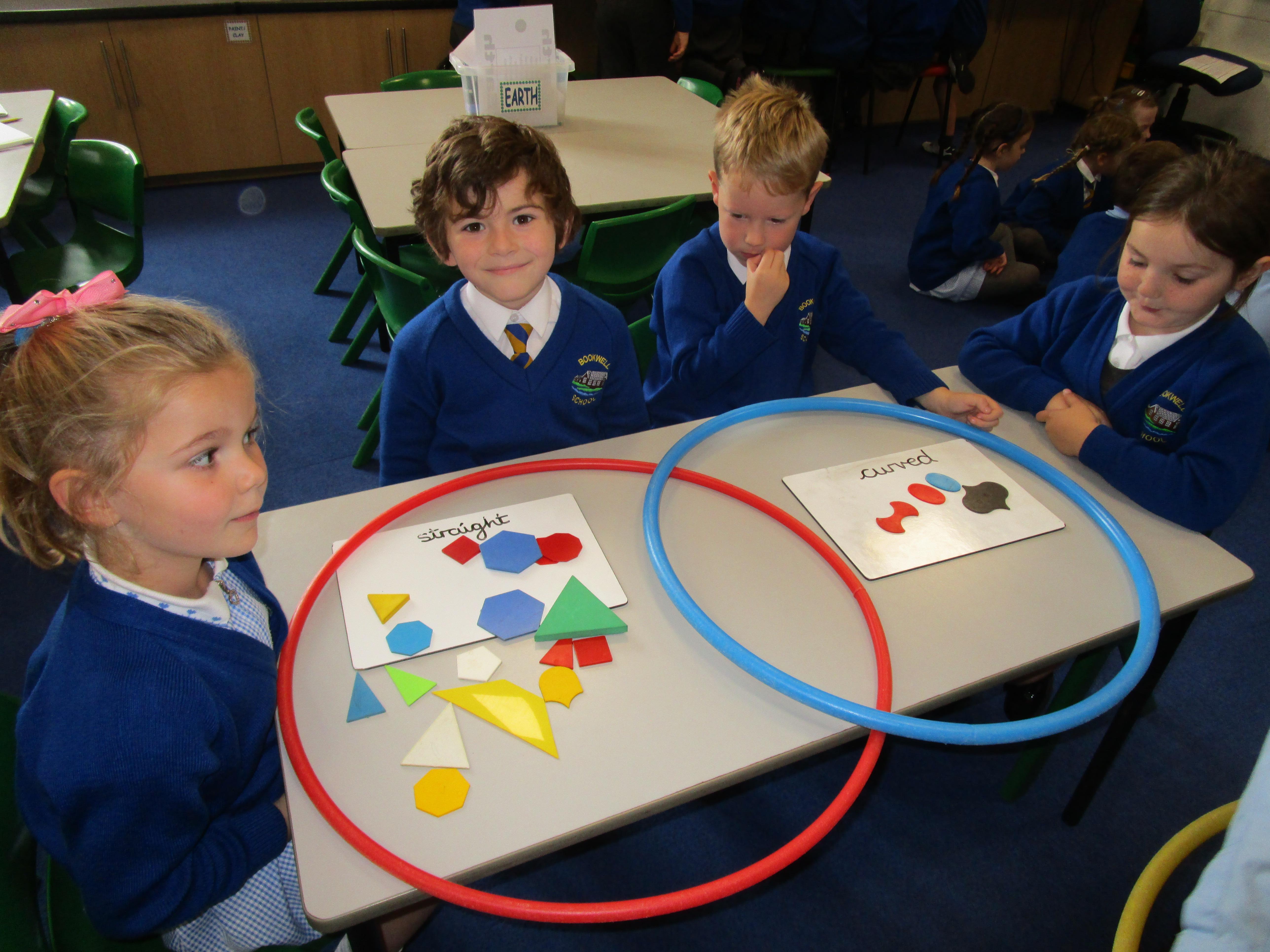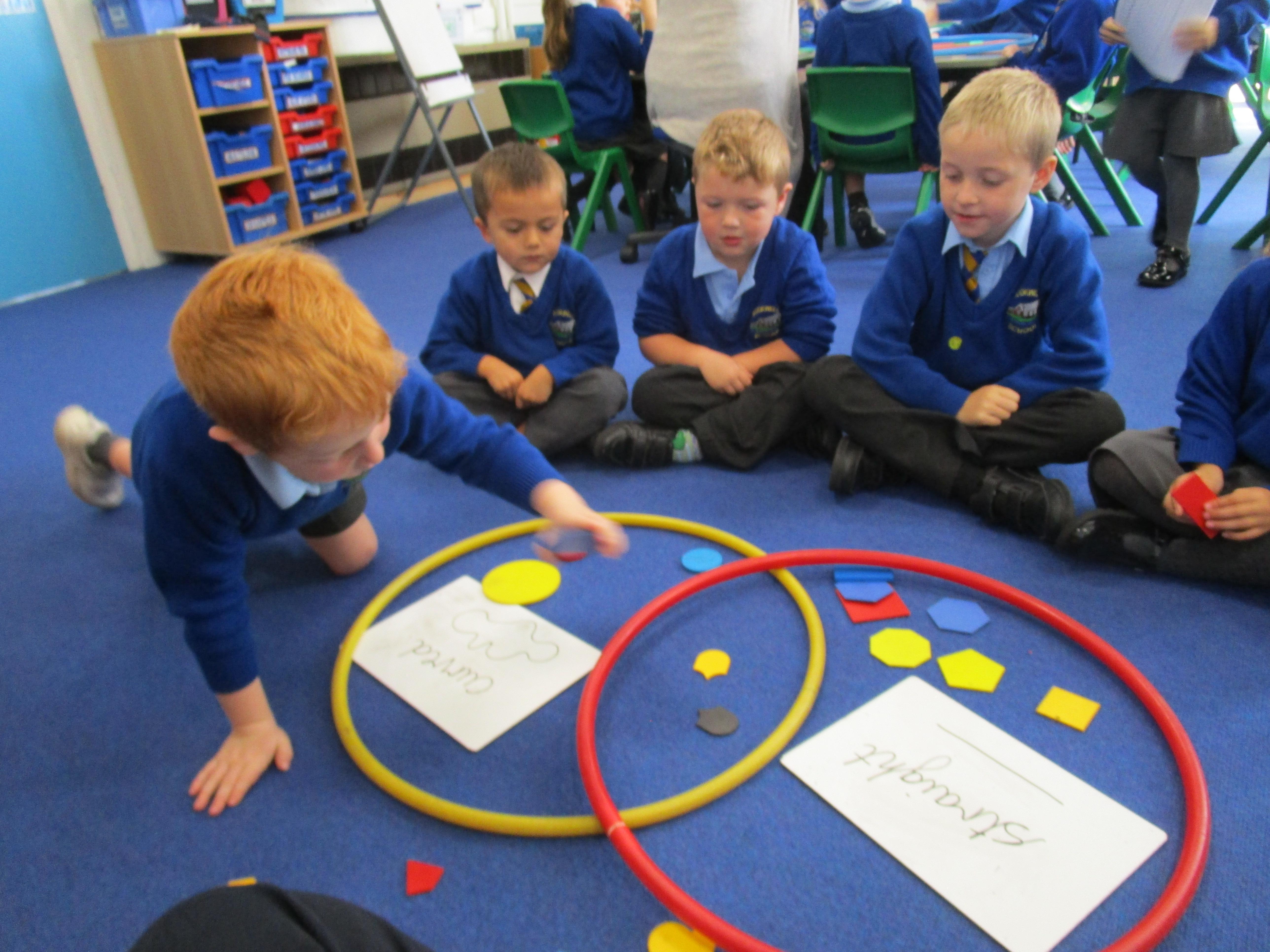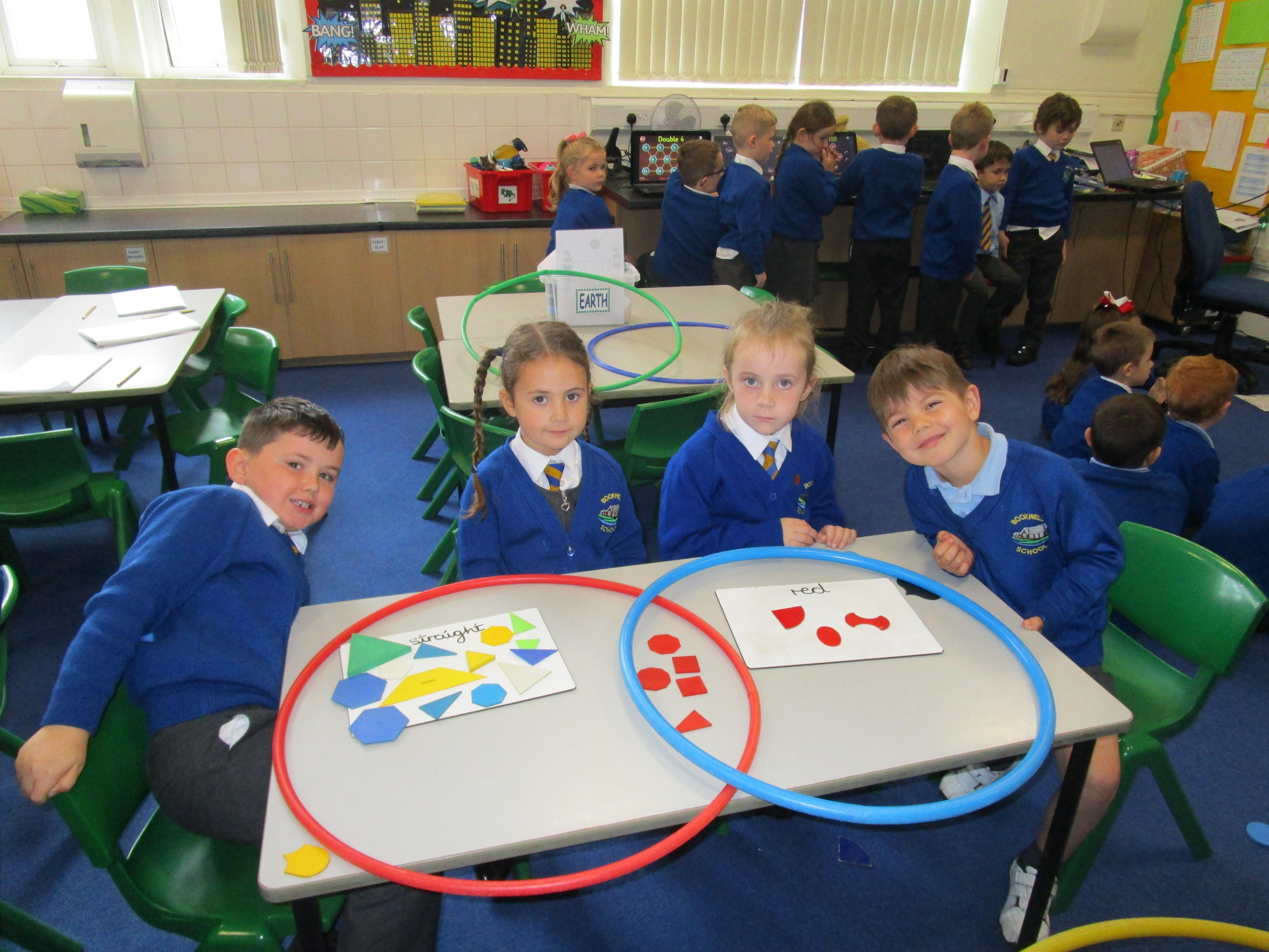 The children have been sorting shapes into Venn diagrams this week. It got gradually more tricky but the children did very well and really enjoyed this activity!