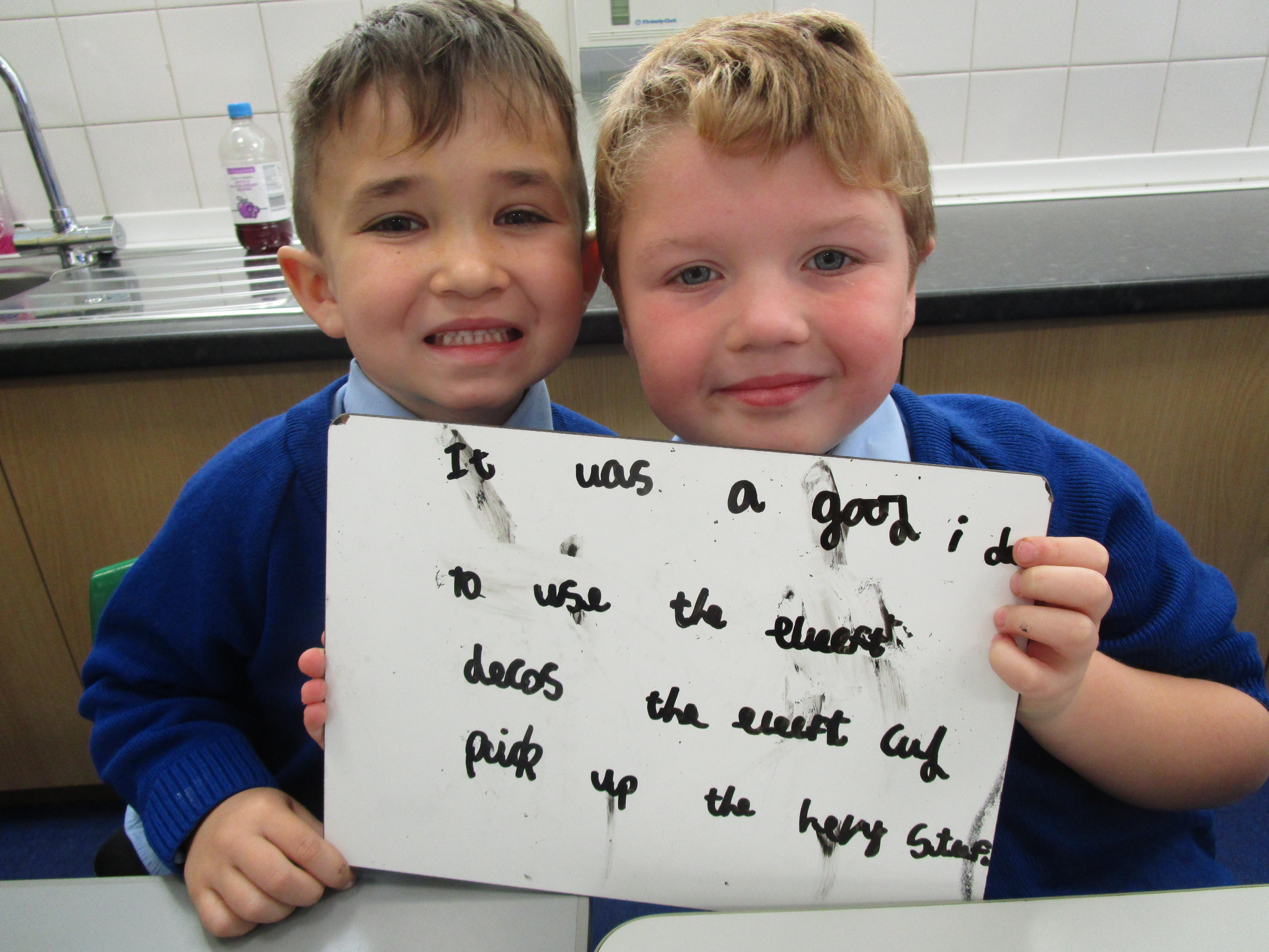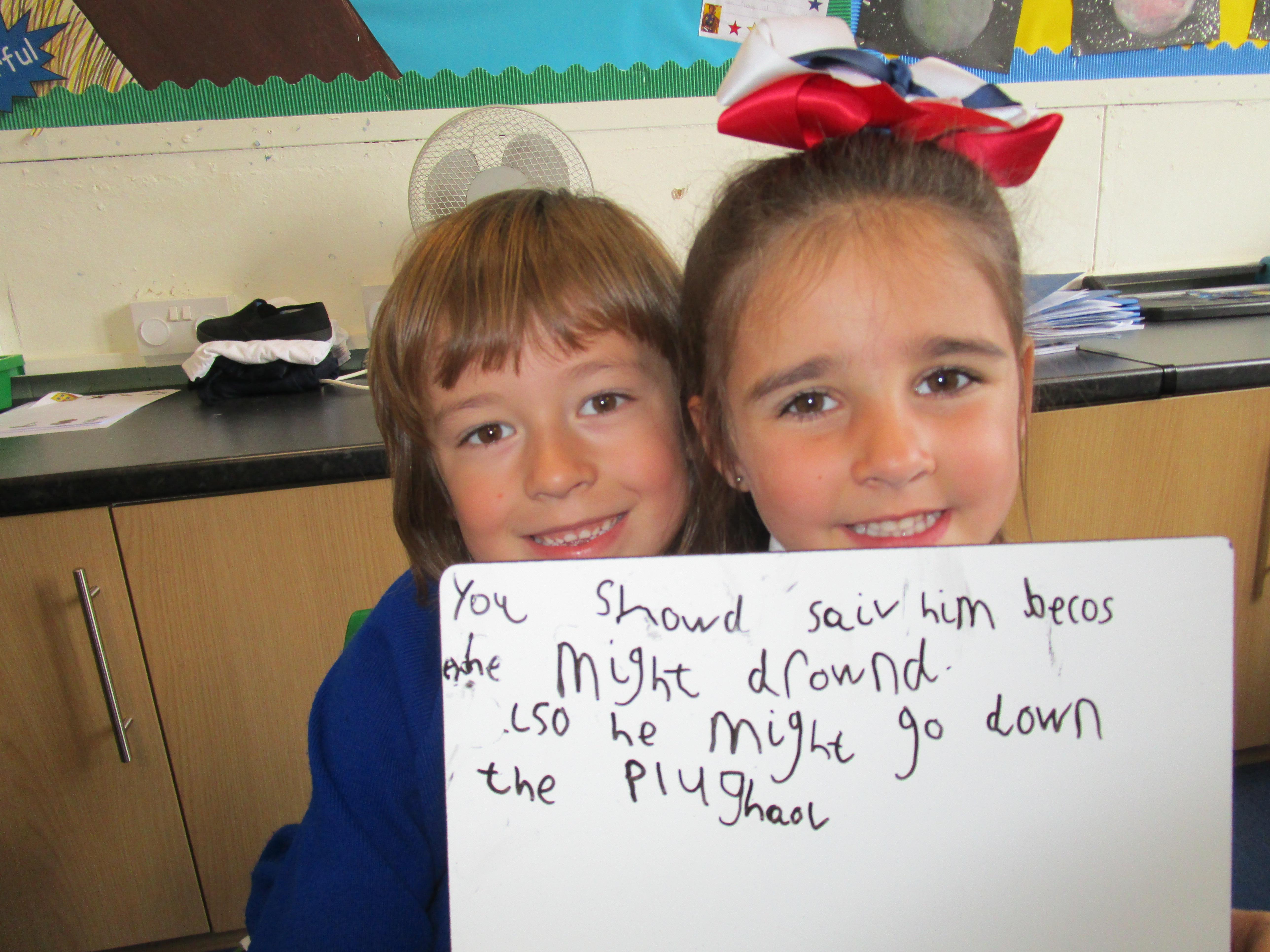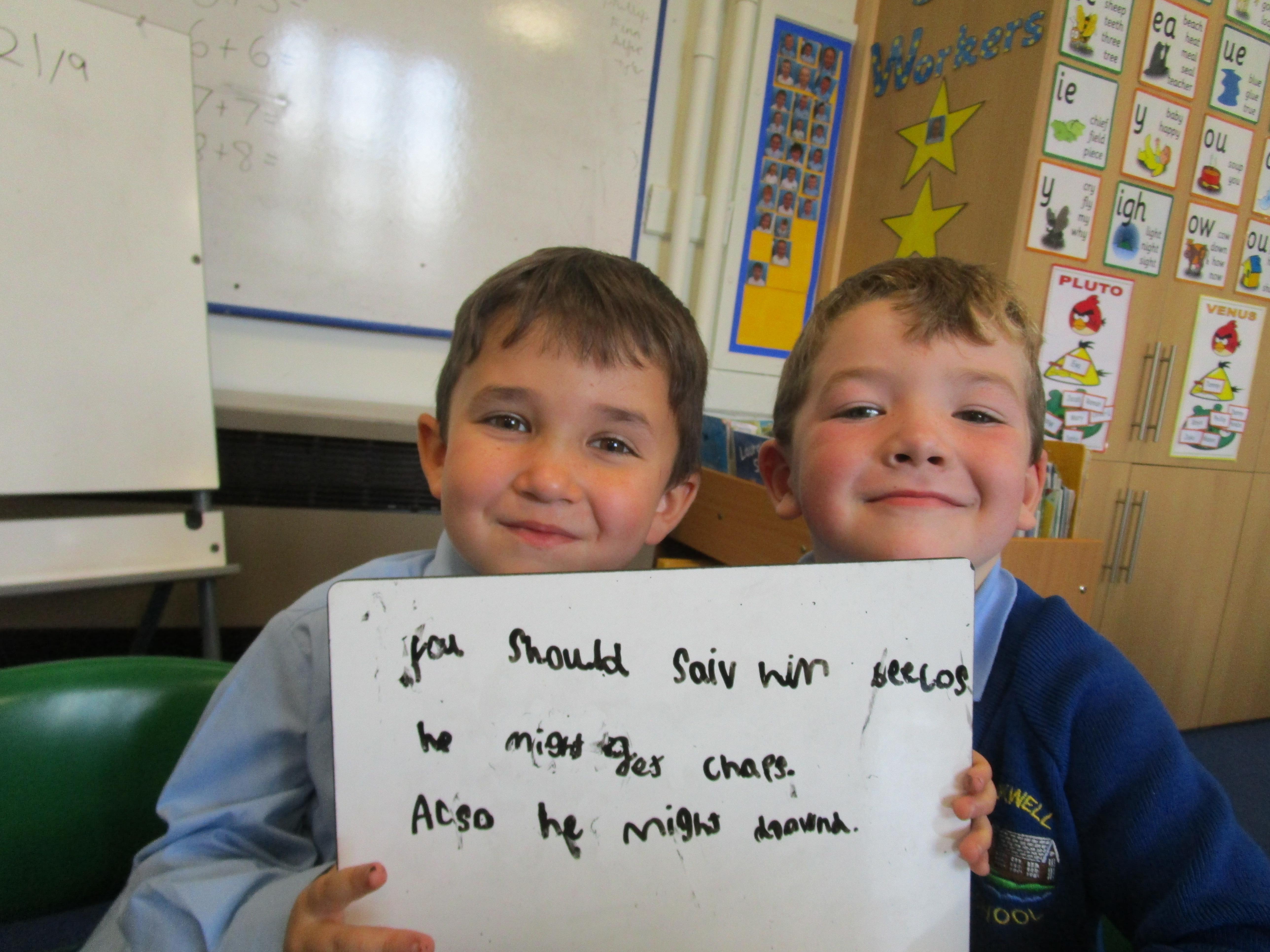 Today in class we have started reading, 'Traction Man is Here' and then the children took part in a conscience alley activity. They had to work in pairs to think of reasons for and against Traction Man going into the sink to rescue his friend Scrubbing Brush from Evil Cloth, using the word 'because' to support their ideas. In the end 'Traction Man' decided to rescue Scrubbing Brush because he wanted to save his friend.