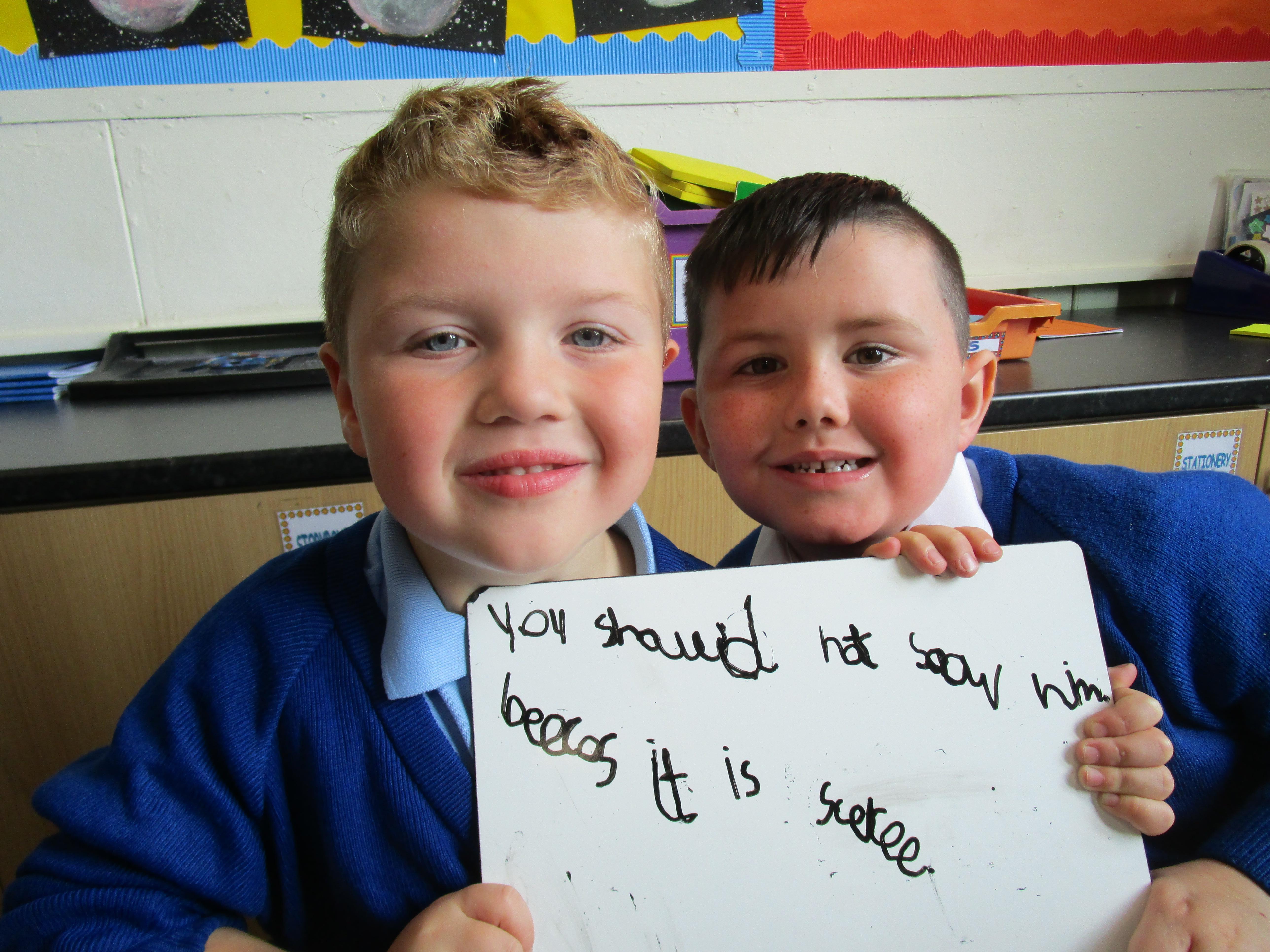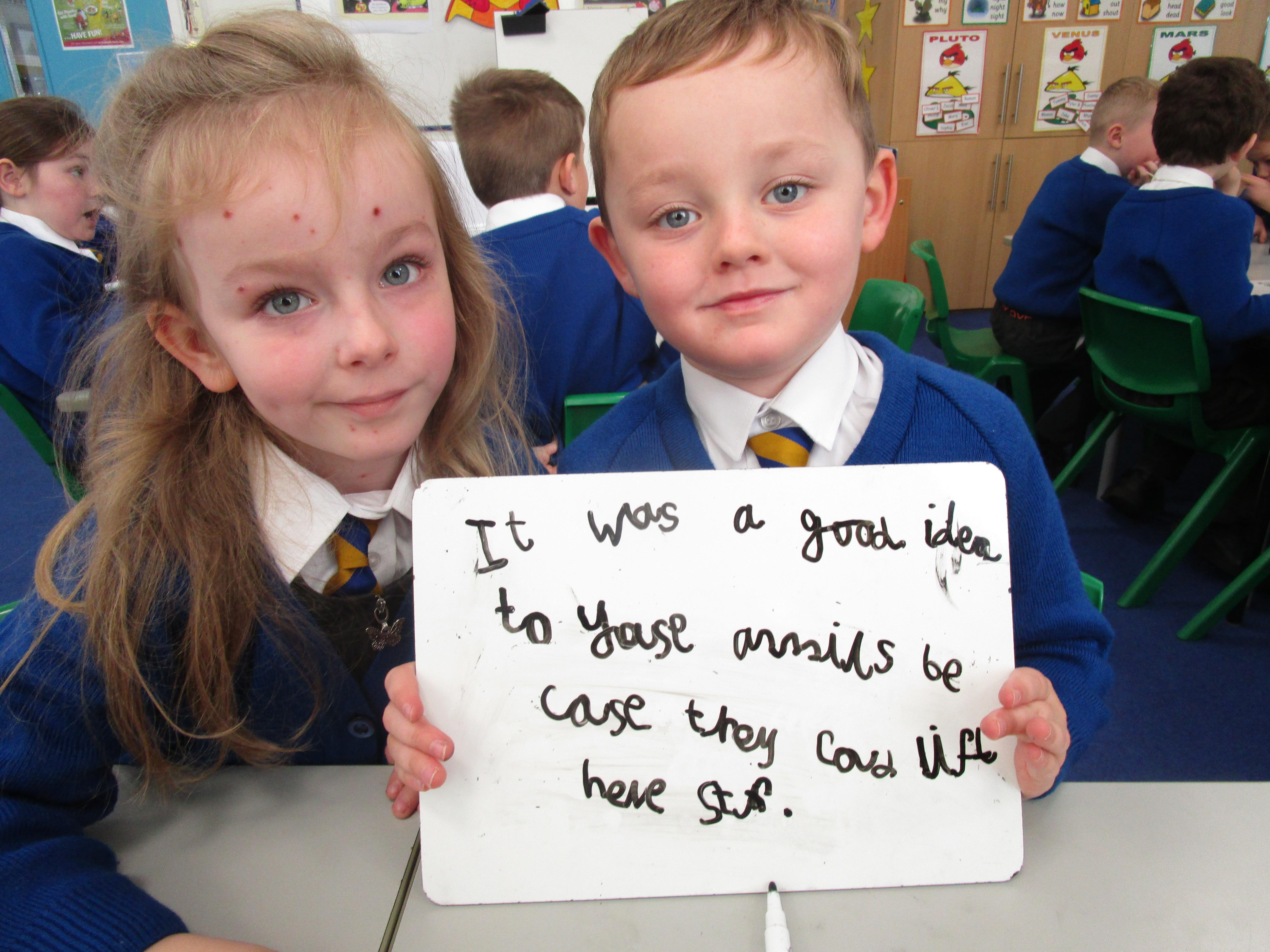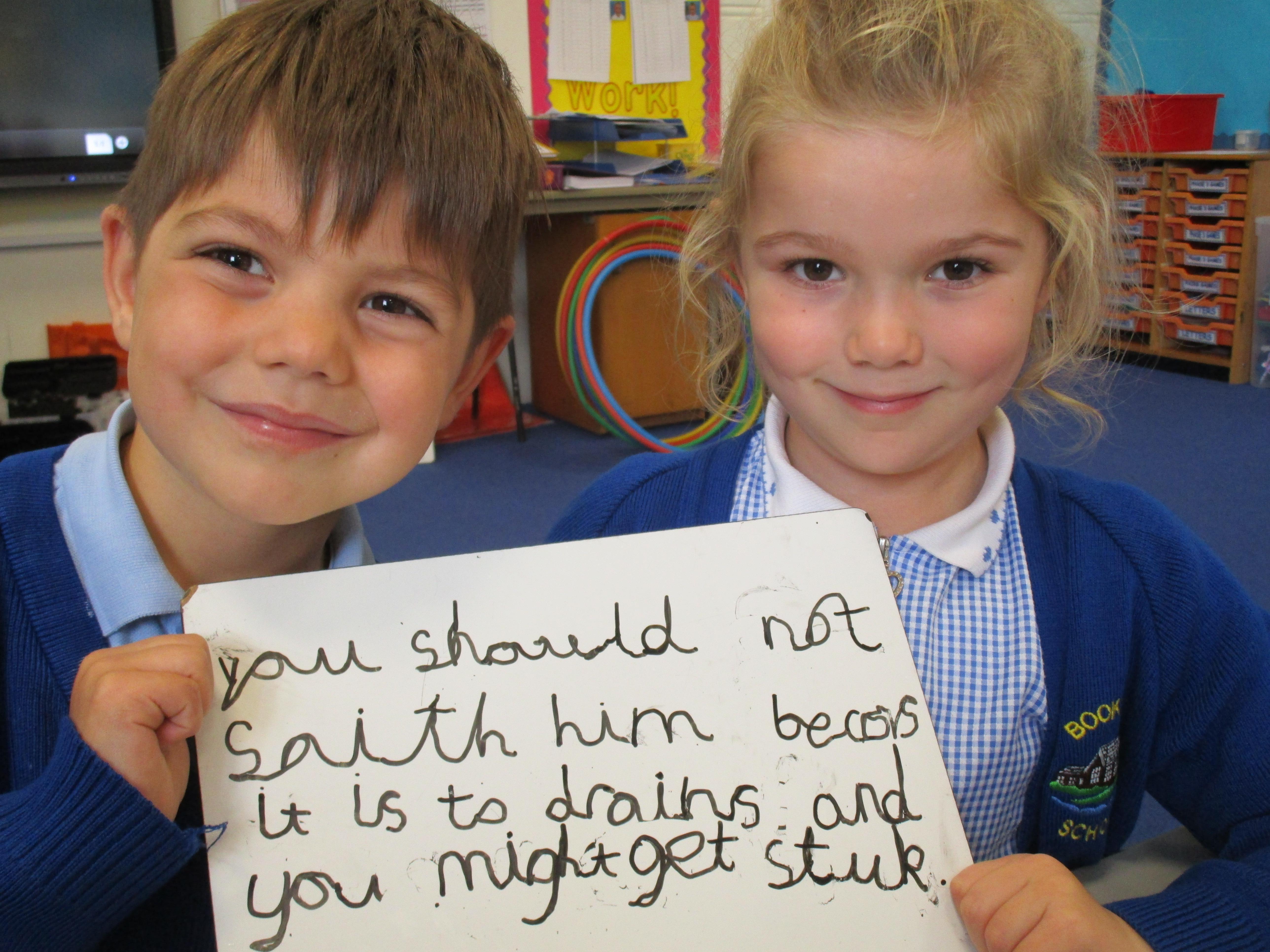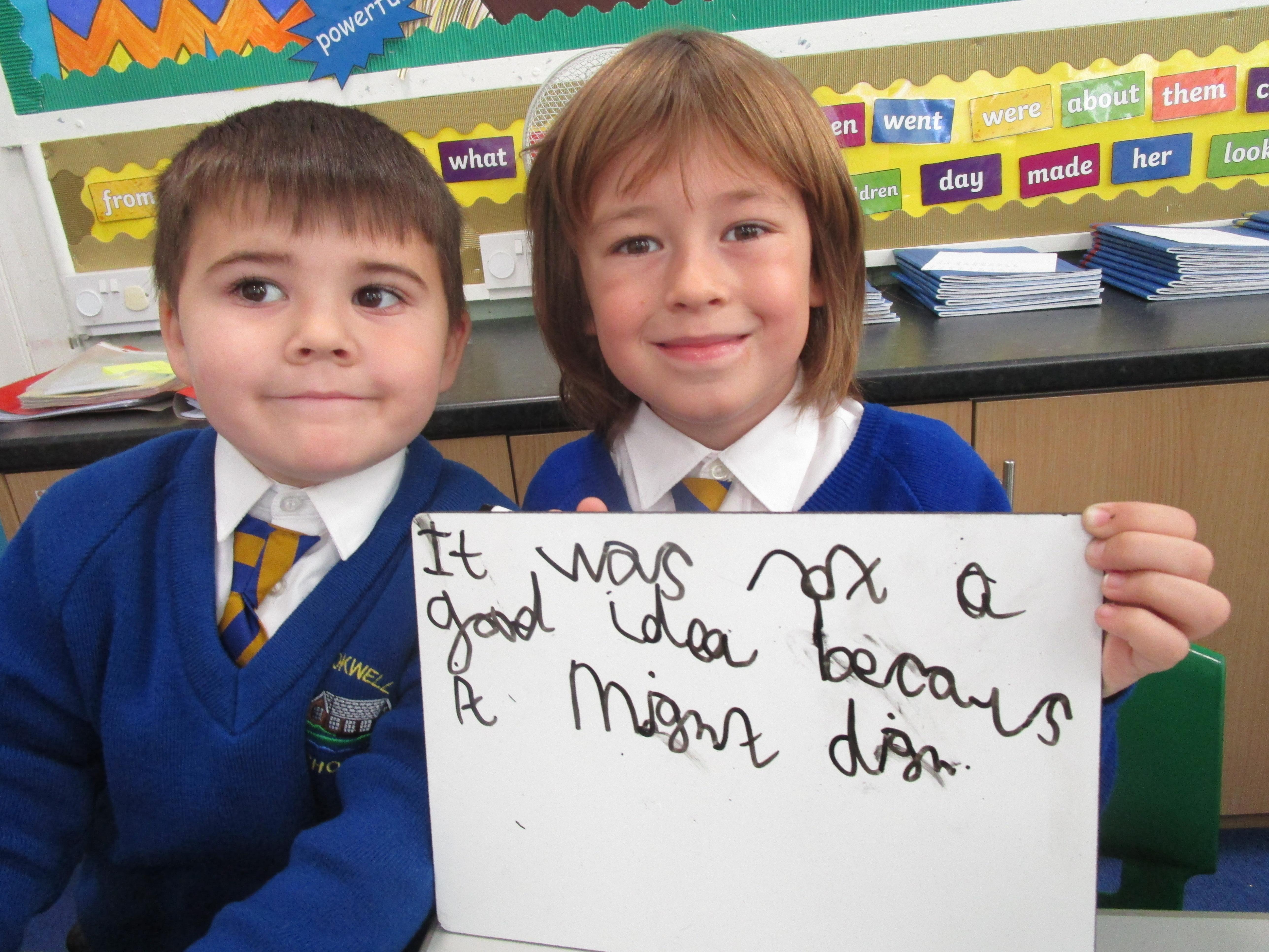 Today in class we have started reading, 'Traction Man is Here' and then the children took part in a conscience alley activity. They had to work in pairs to think of reasons for and against Traction Man going into the sink to rescue his friend Scrubbing Brush from Evil Cloth, using the word 'because' to support their ideas. In the end 'Traction Man' decided to rescue Scrubbing Brush because he wanted to save his friend.