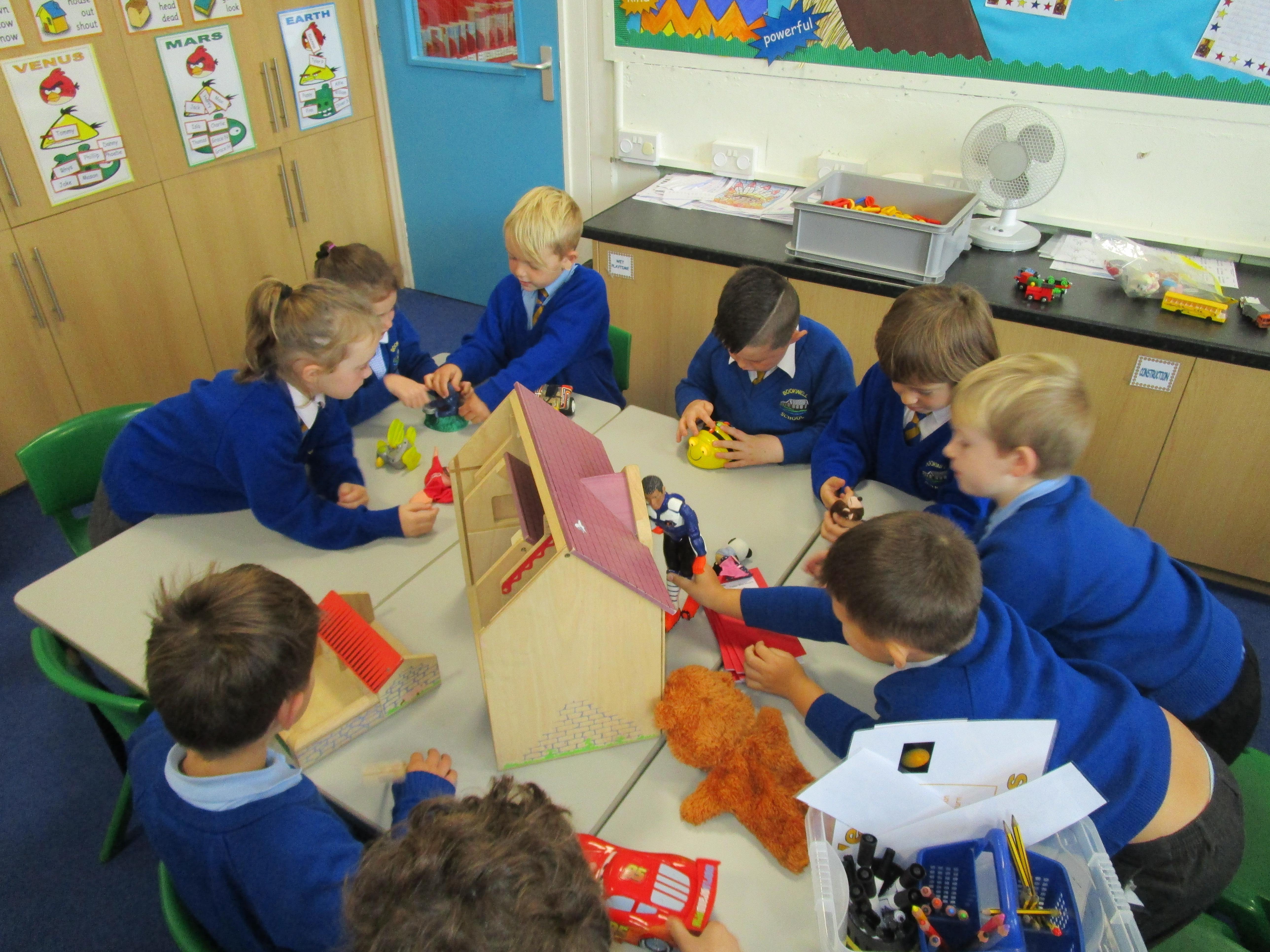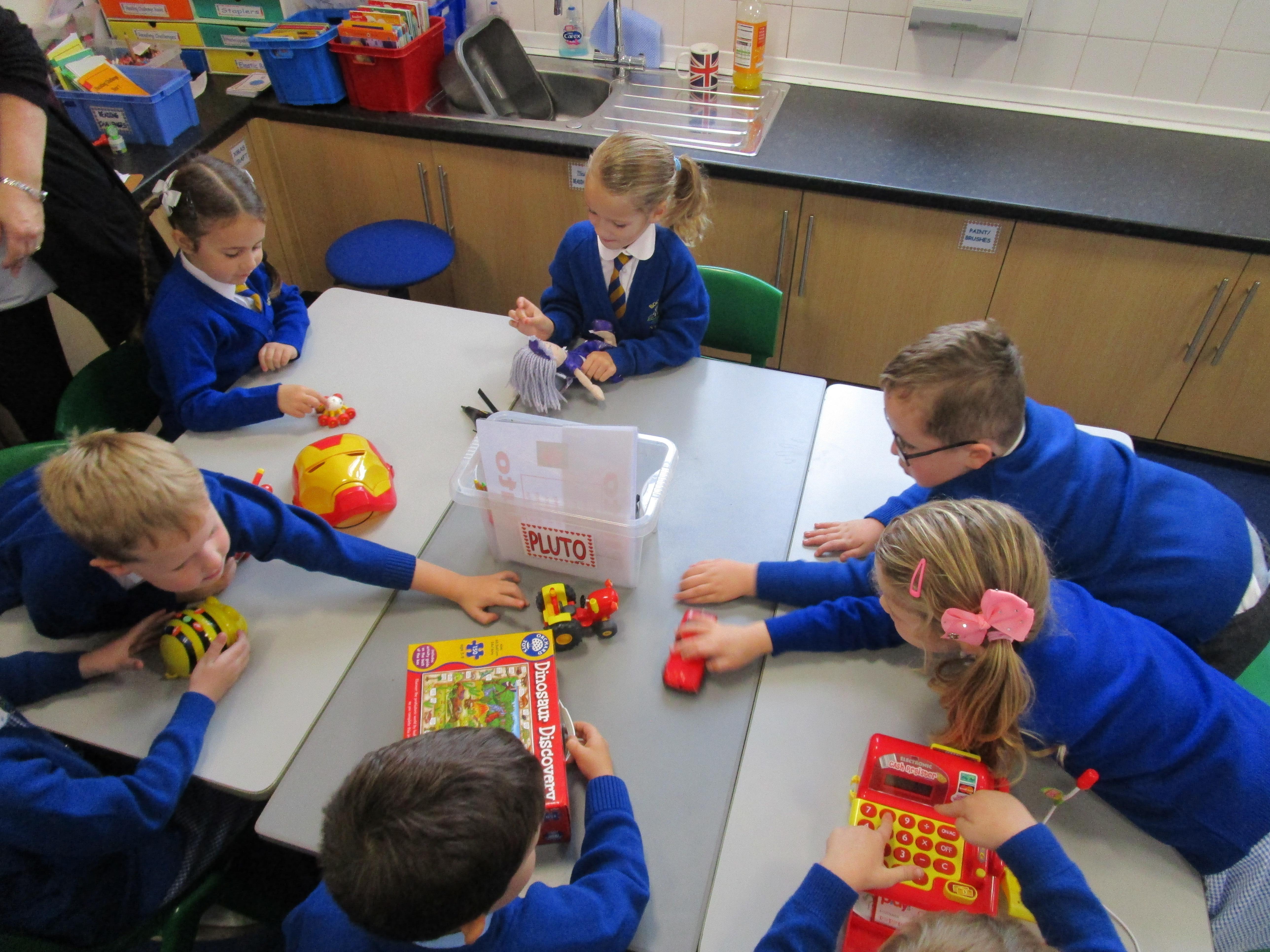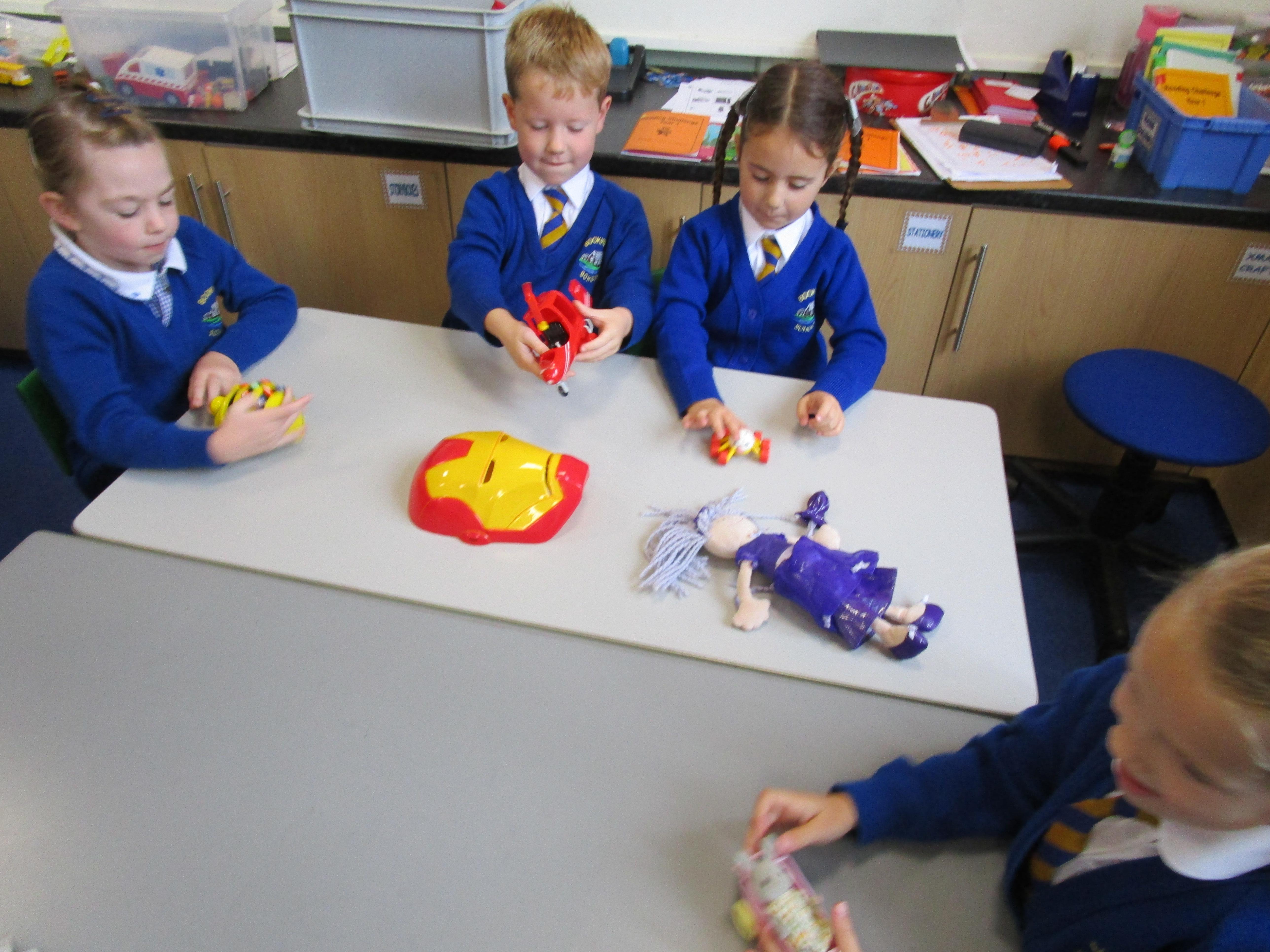 Today in class we started our 'Toys' topic. The children has a range of different toys on their table and they had to work together to answer a range of questions. Each group had a different toy on their table and they had to try and work out: what their toy was made from, how it worked, what it can do and how they could play with it. The children then had to write about their favourite toy, explaining what it can do and what it is made from.