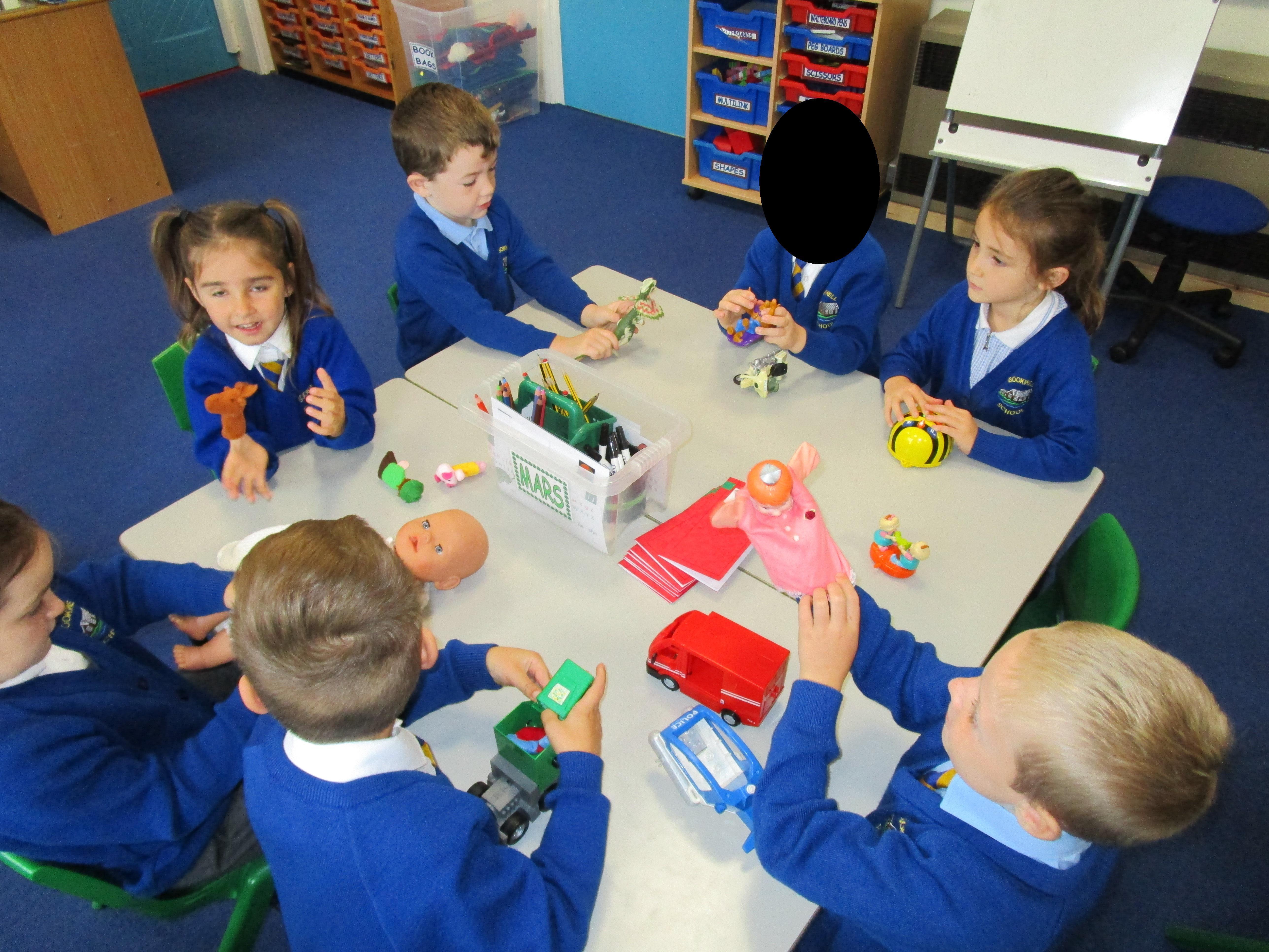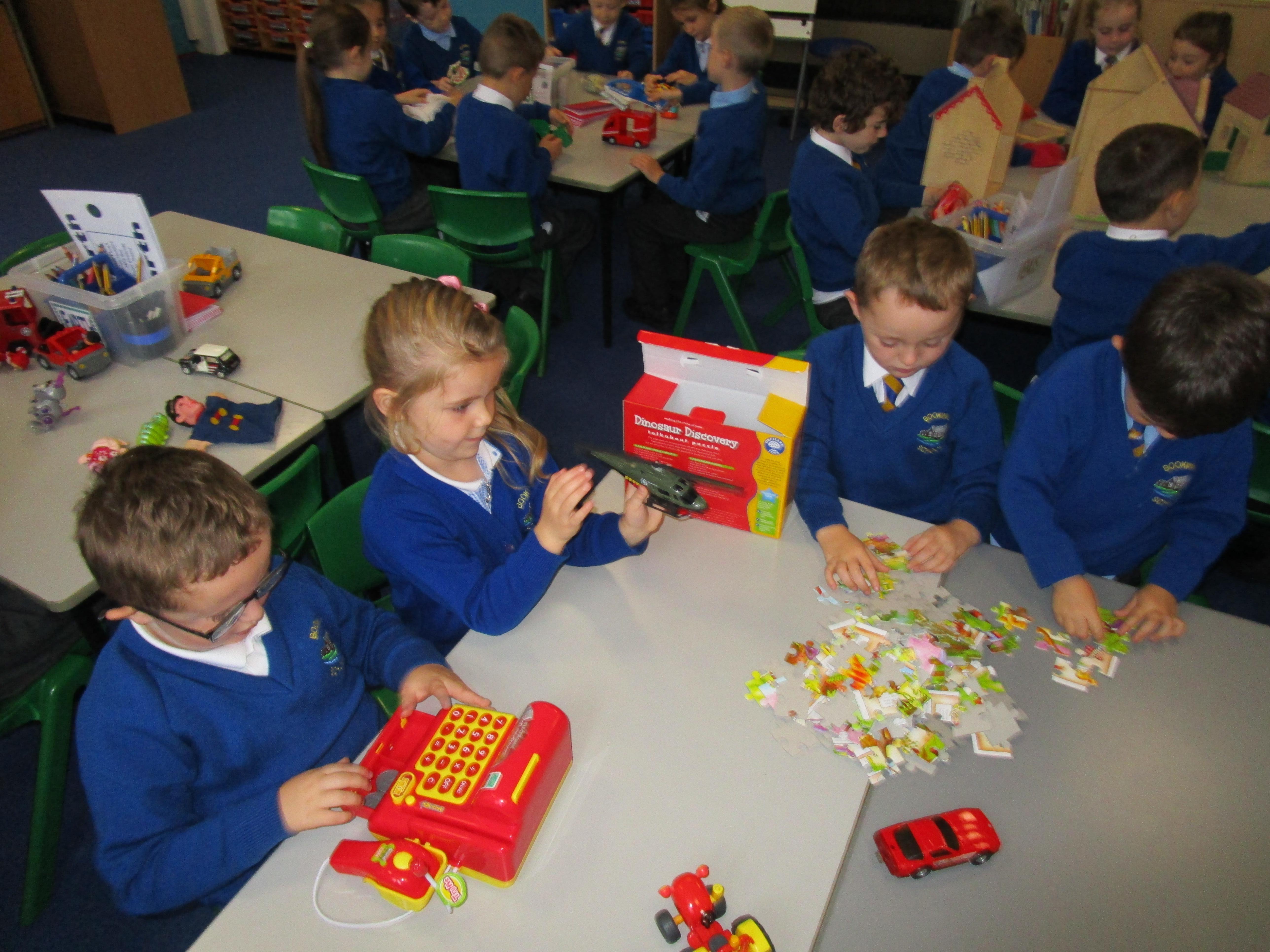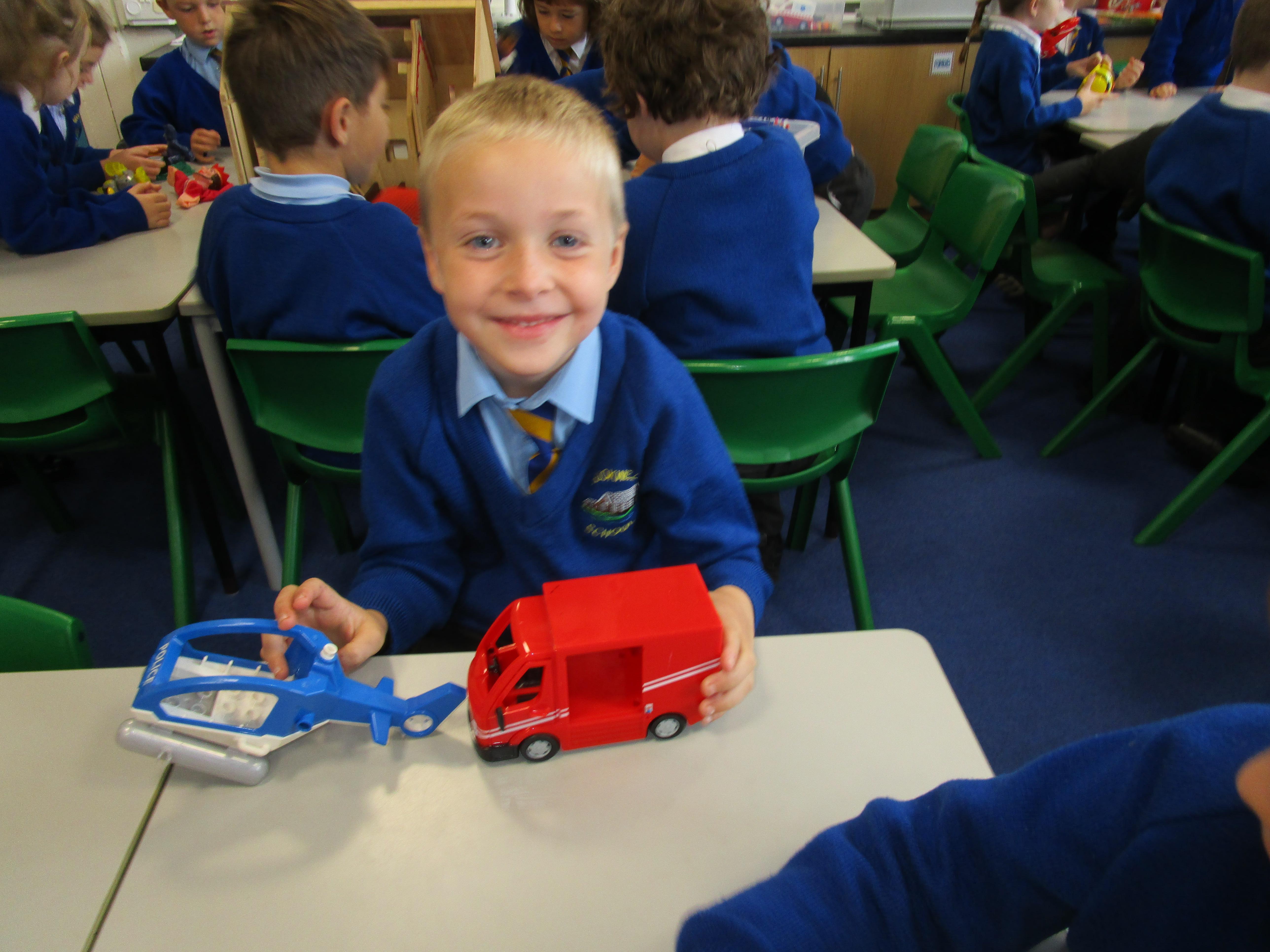 Today in class we started our 'Toys' topic. The children has a range of different toys on their table and they had to work together to answer a range of questions. Each group had a different toy on their table and they had to try and work out: what their toy was made from, how it worked, what it can do and how they could play with it. The children then had to write about their favourite toy, explaining what it can do and what it is made from.
