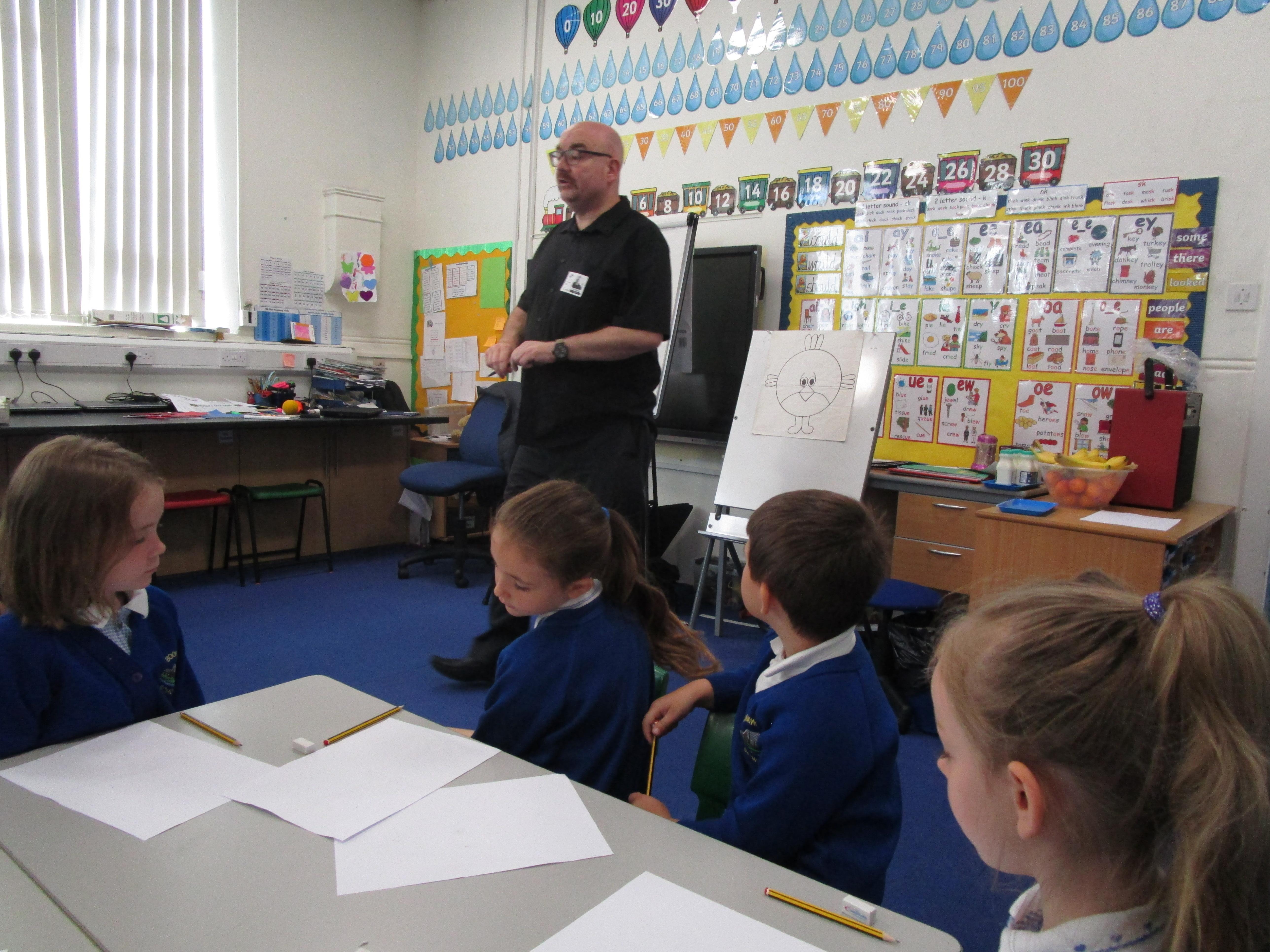 Today we were really lucky to have Ian from Doodlebugs come and teach us how to draw something to scale using dots and guidelines. The reason Ian came in was to inspire the children to be resilient and to persevere when they find something difficult! They had a great time and really listened well and learnt to keep on trying when they found it difficult.