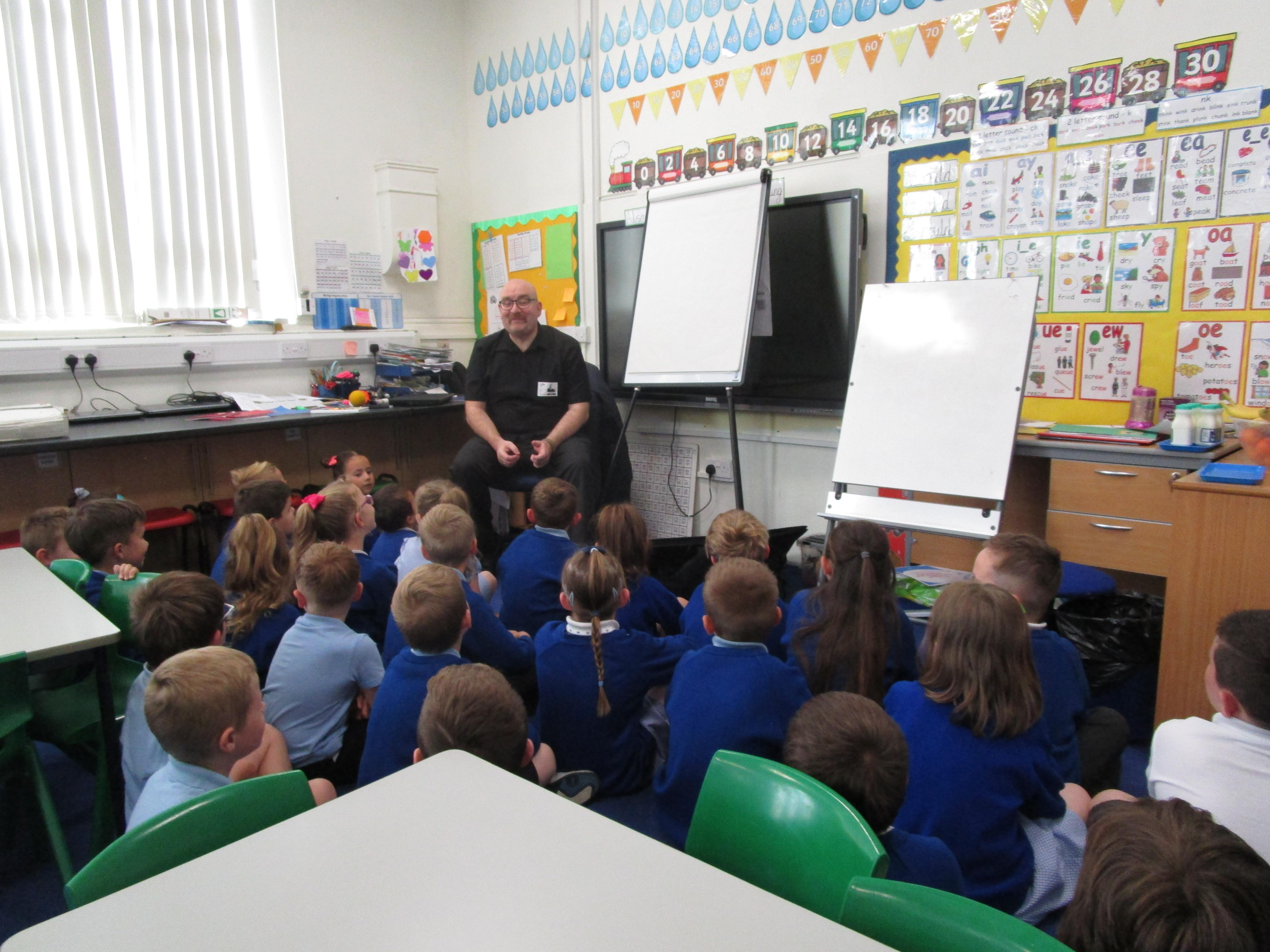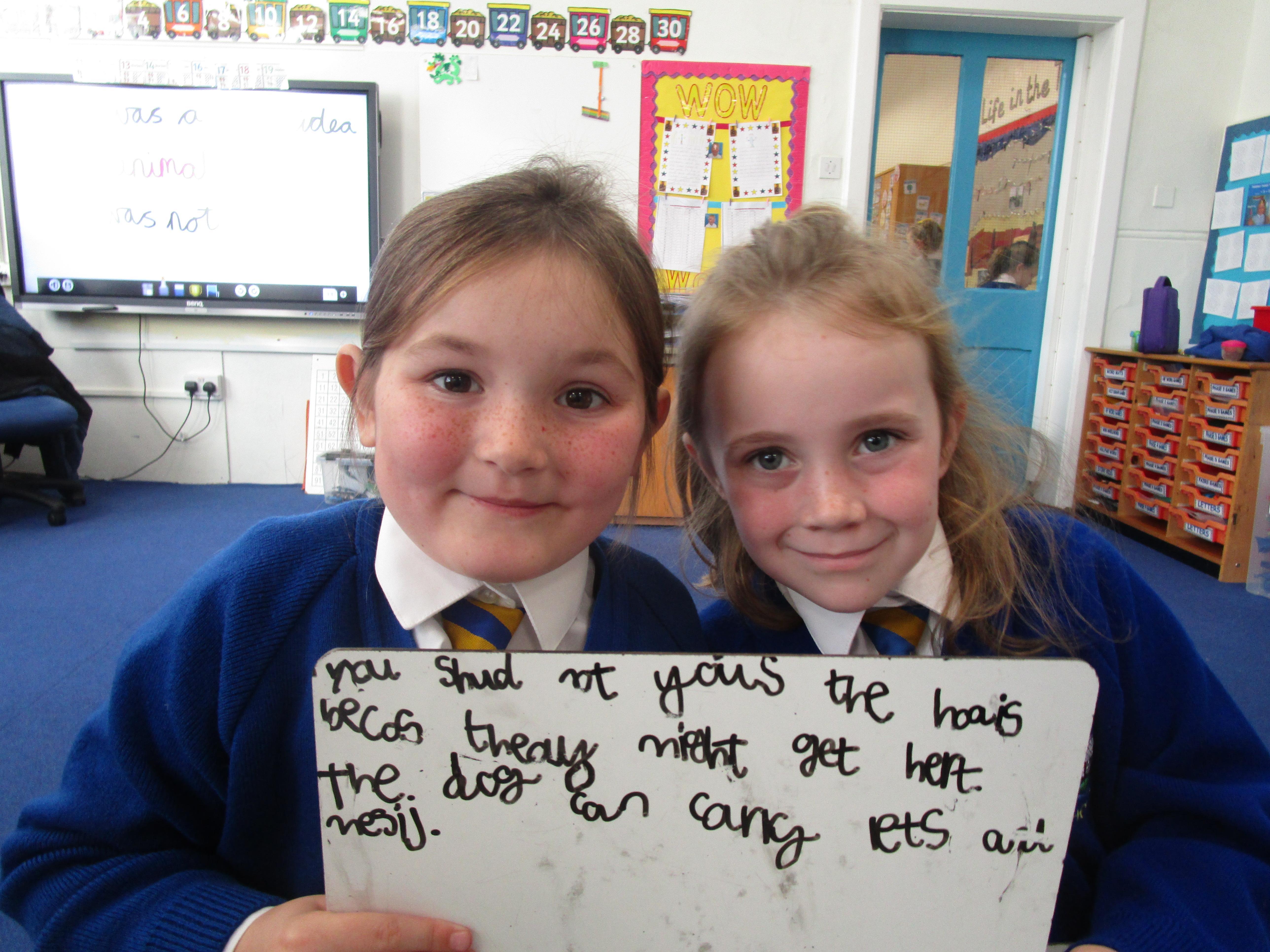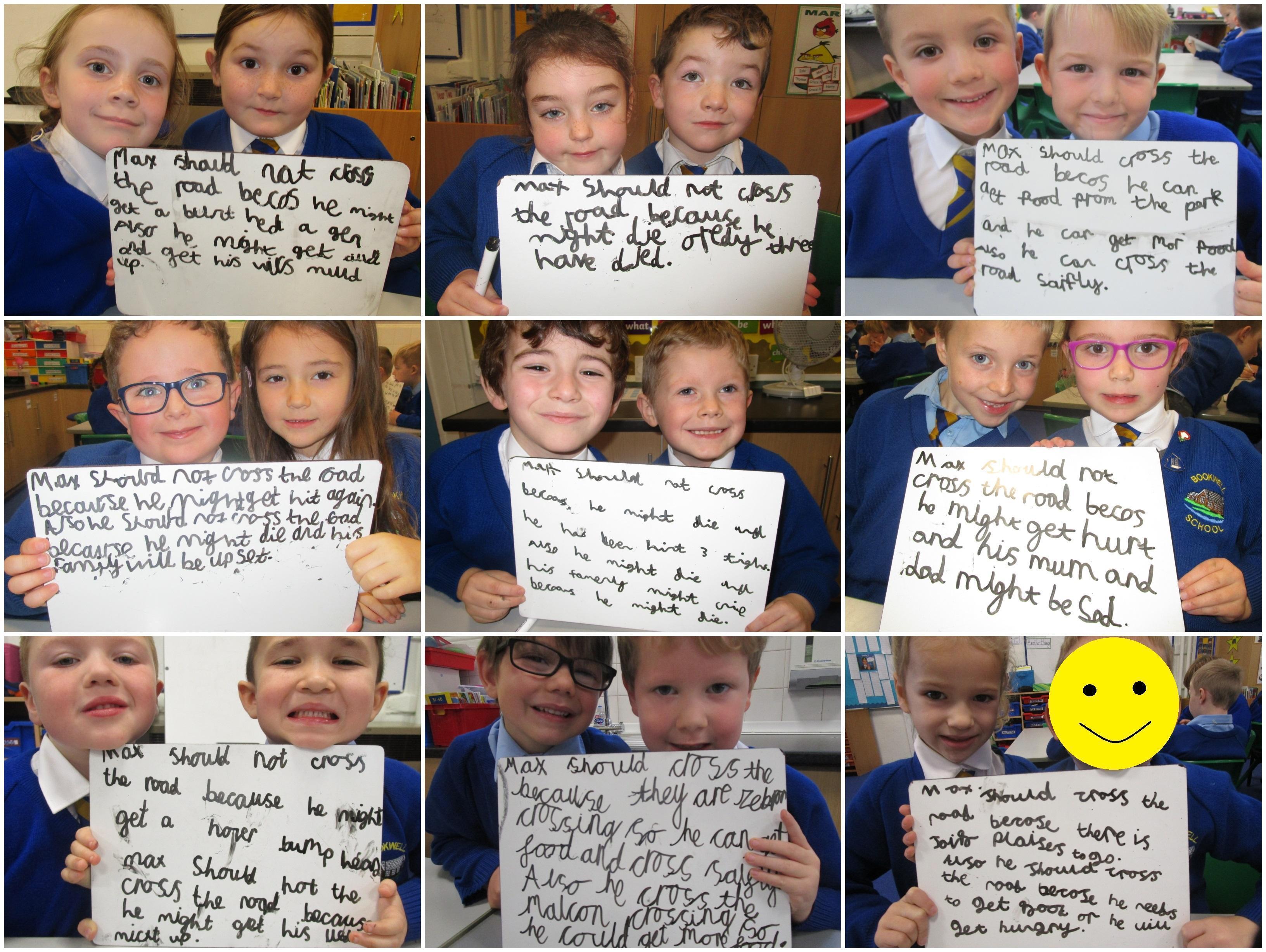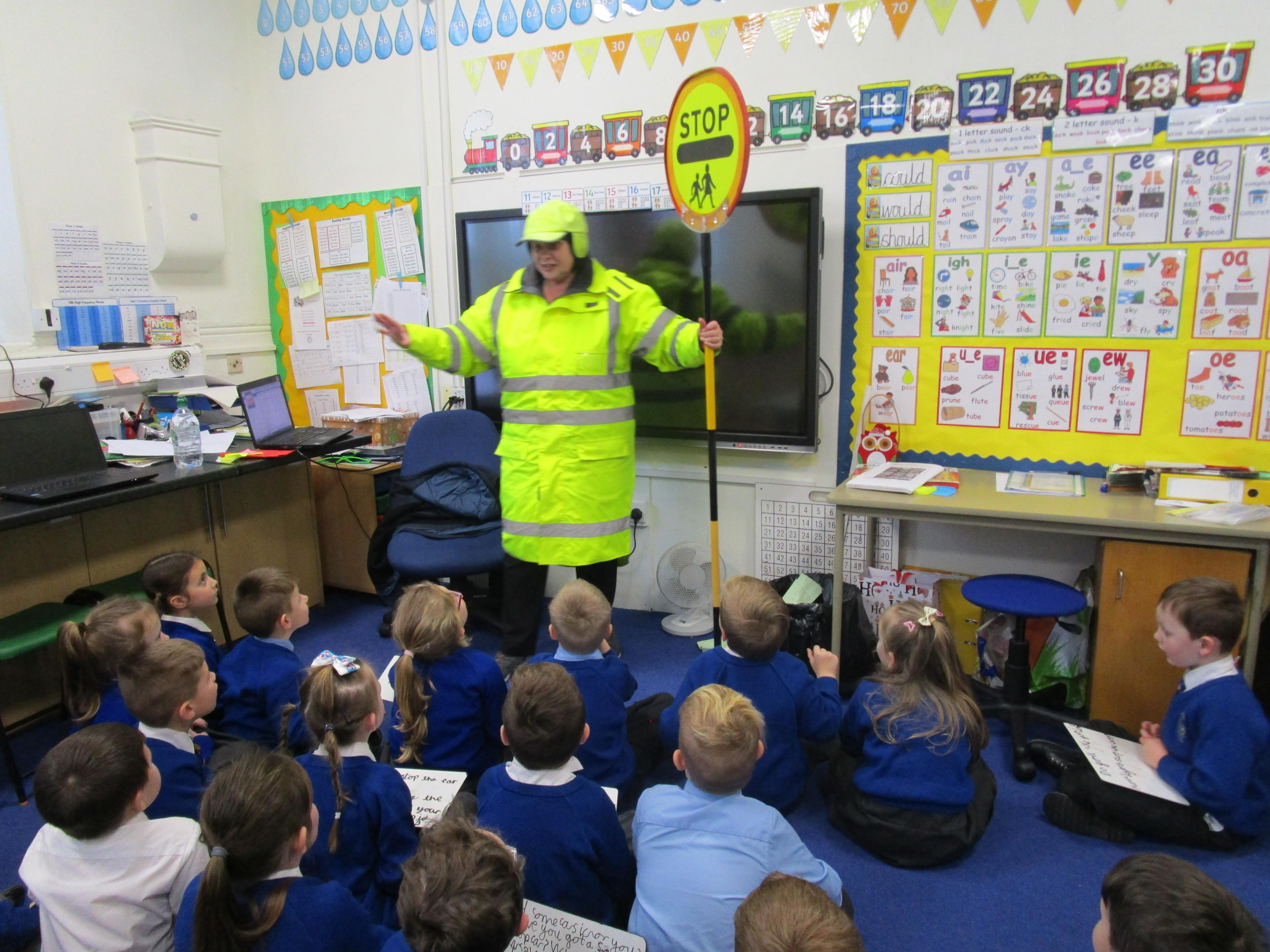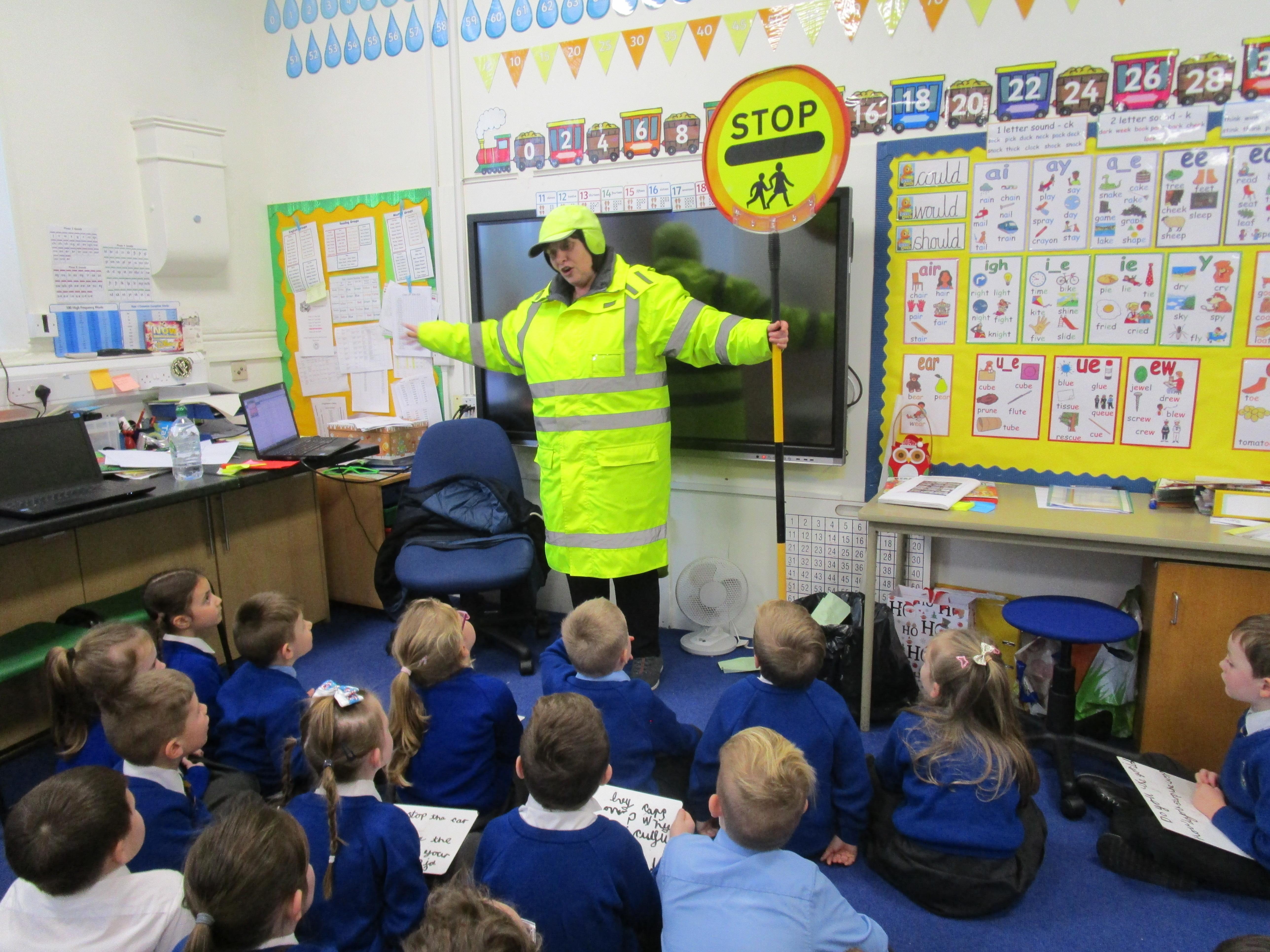 Today the children have been asking questions to our school lollipop lady. They had to work in pairs to write down the questions that they wanted to ask her, making sure they started their sentence with a capital letter and ended it with a question mark.