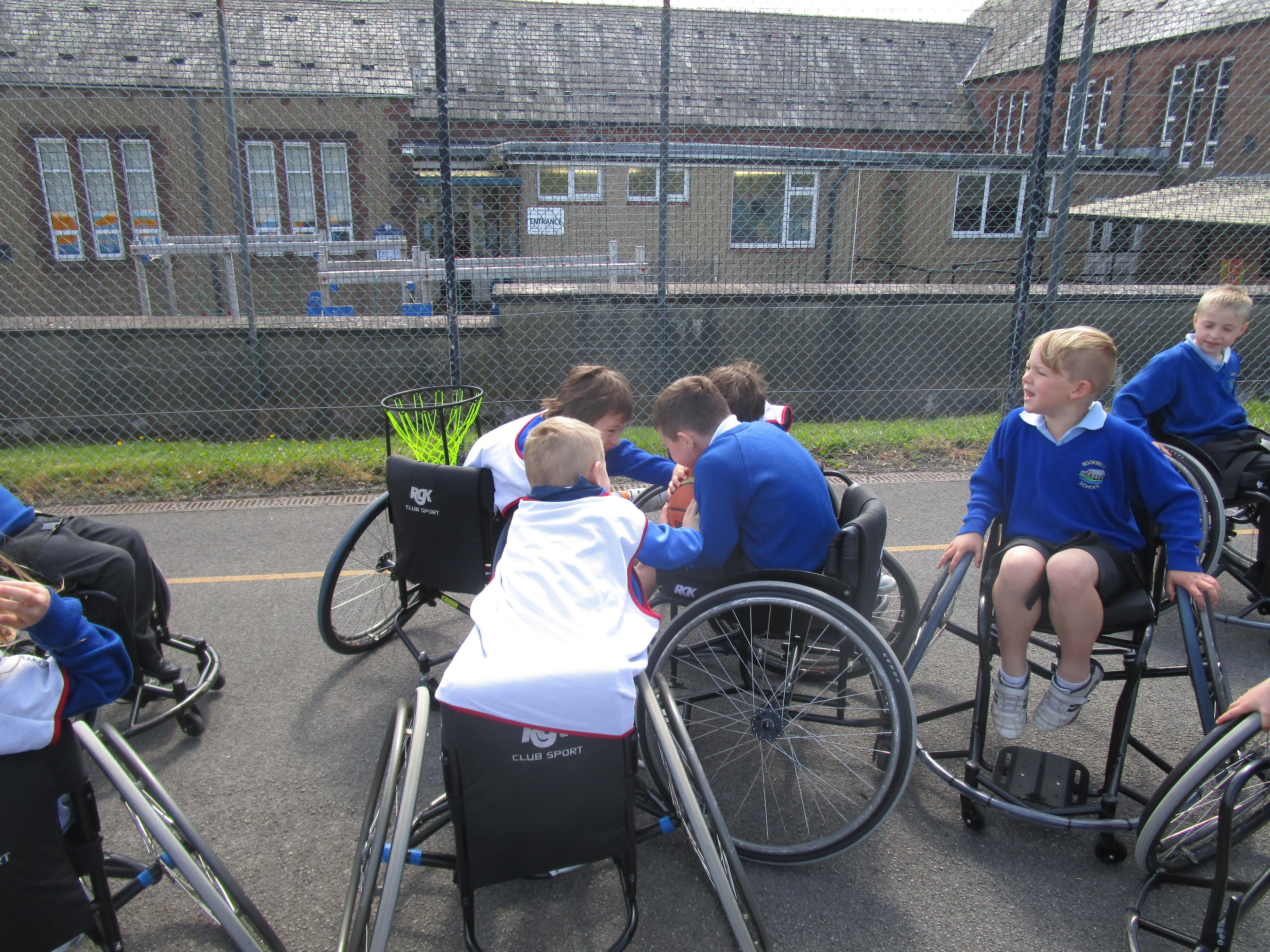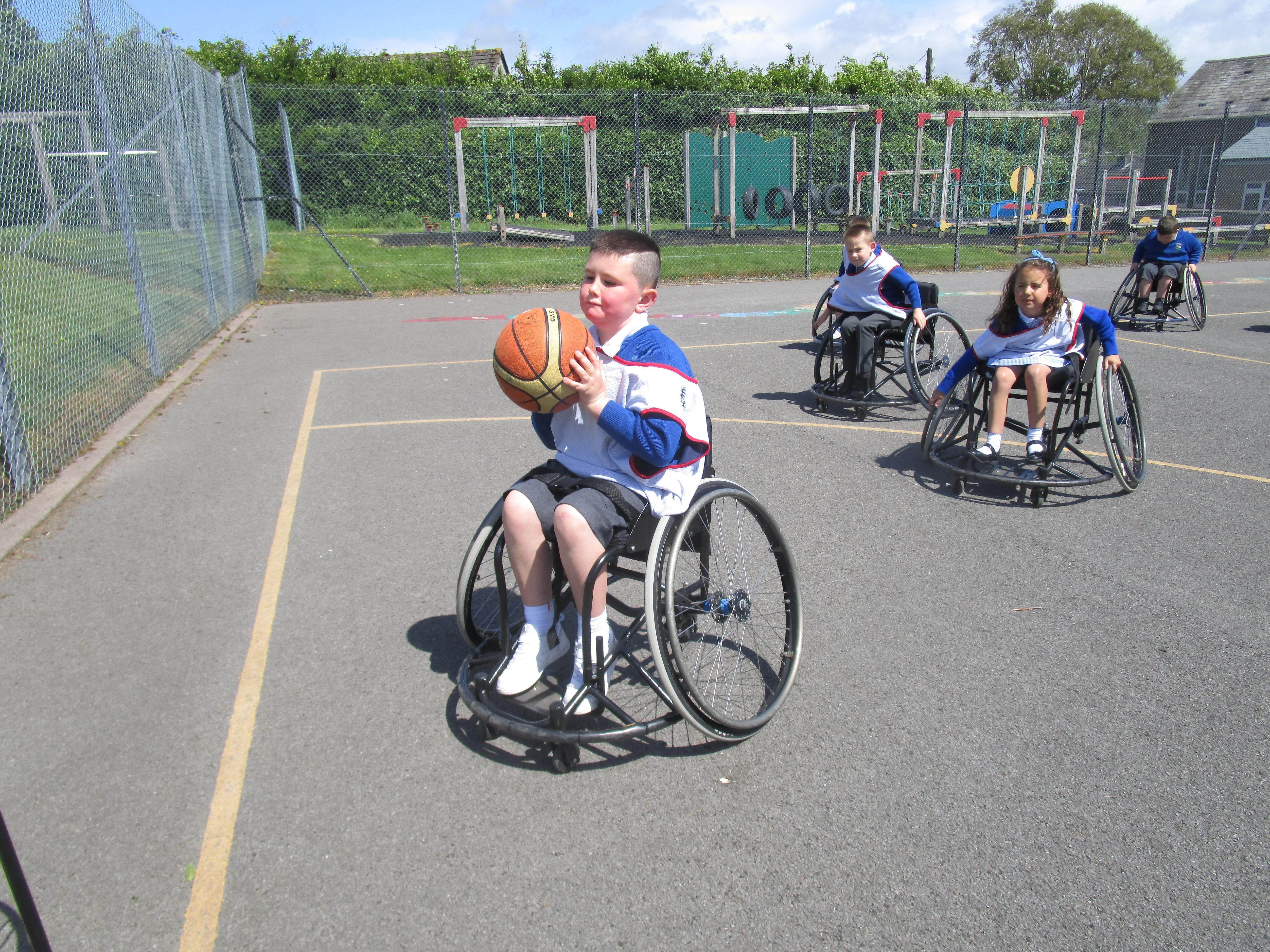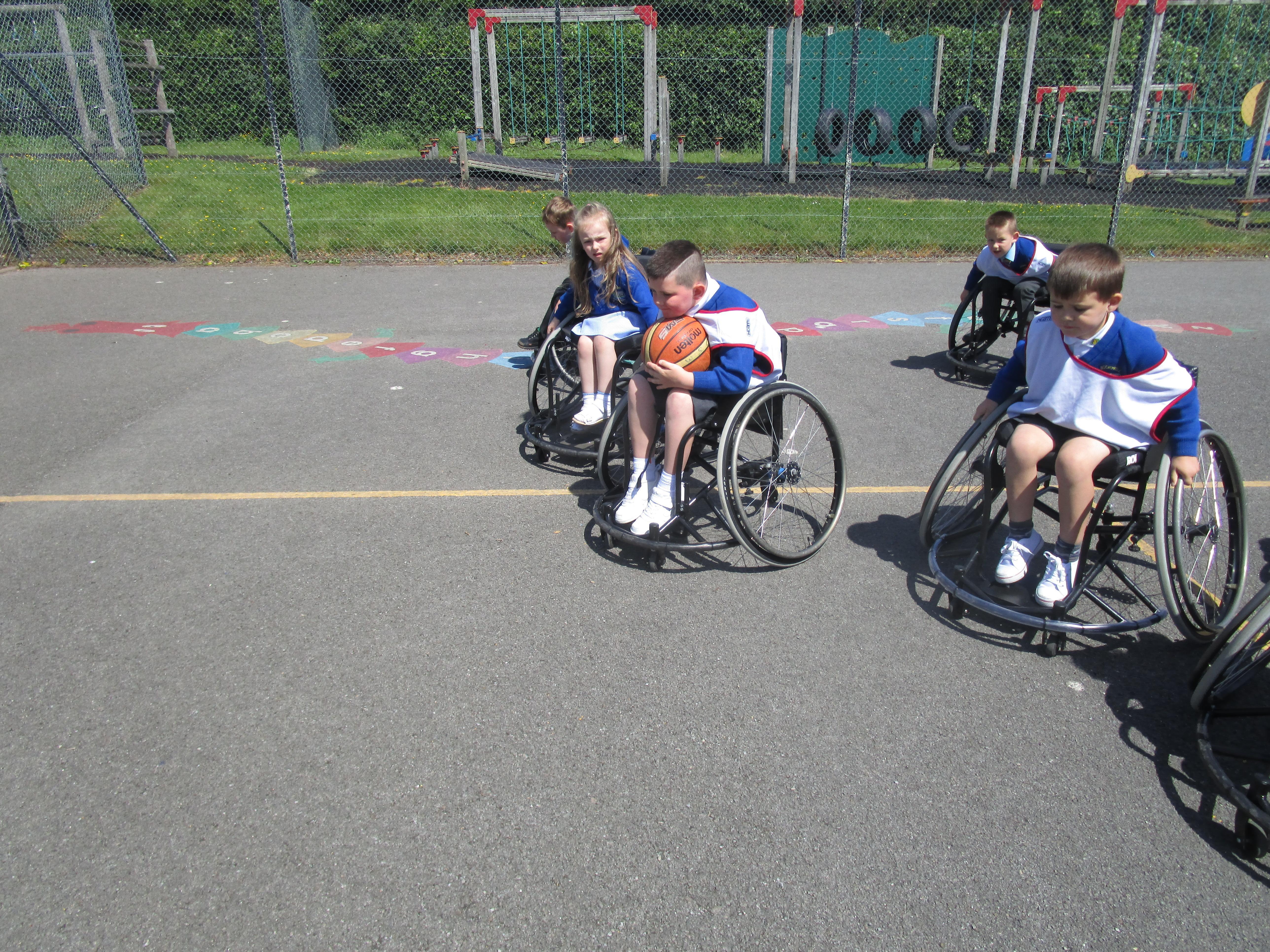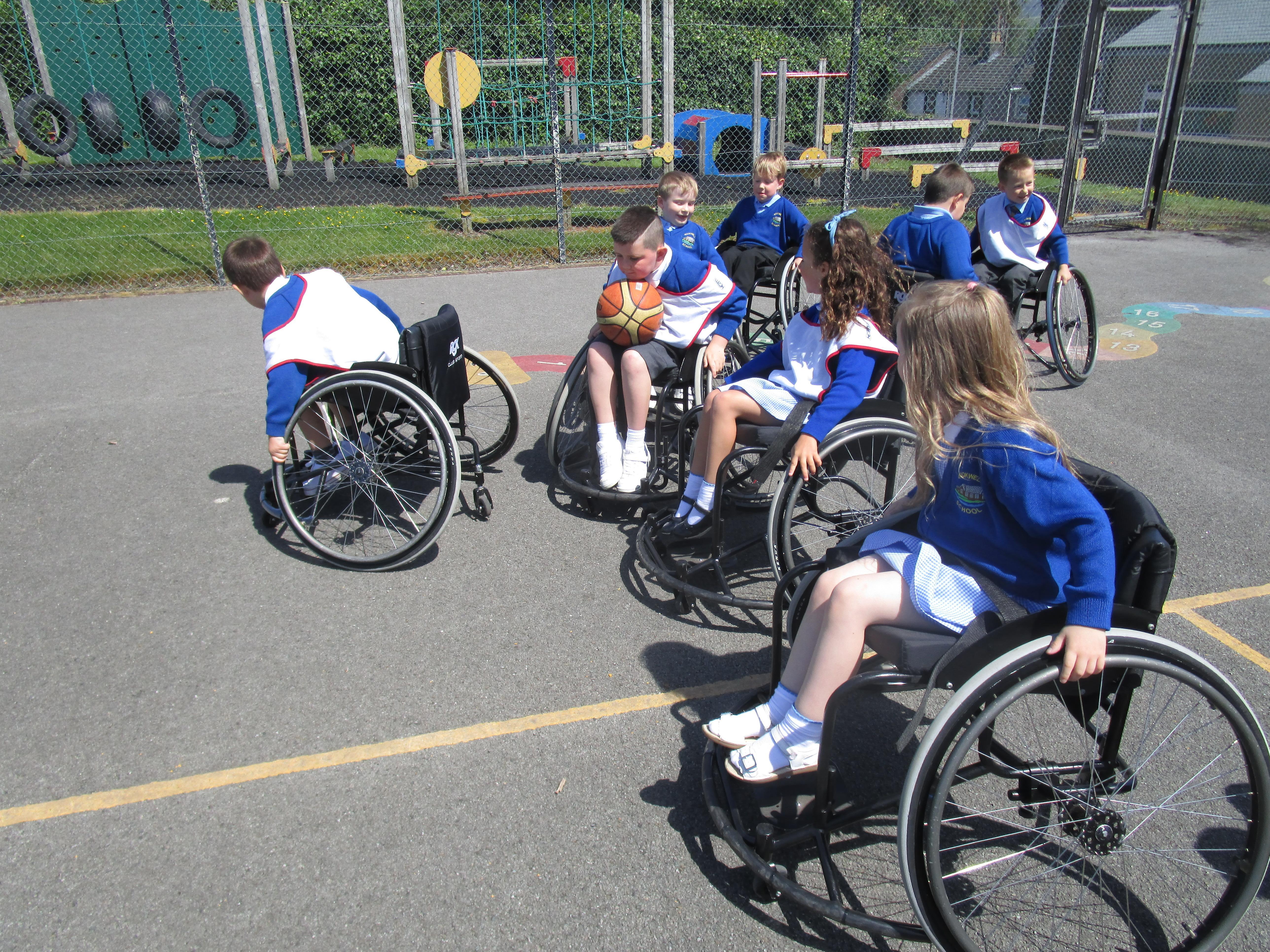 The children has a go at Wheelchair Basketball this week with their coach Nat. They found it really exciting and enjoyed taking part!