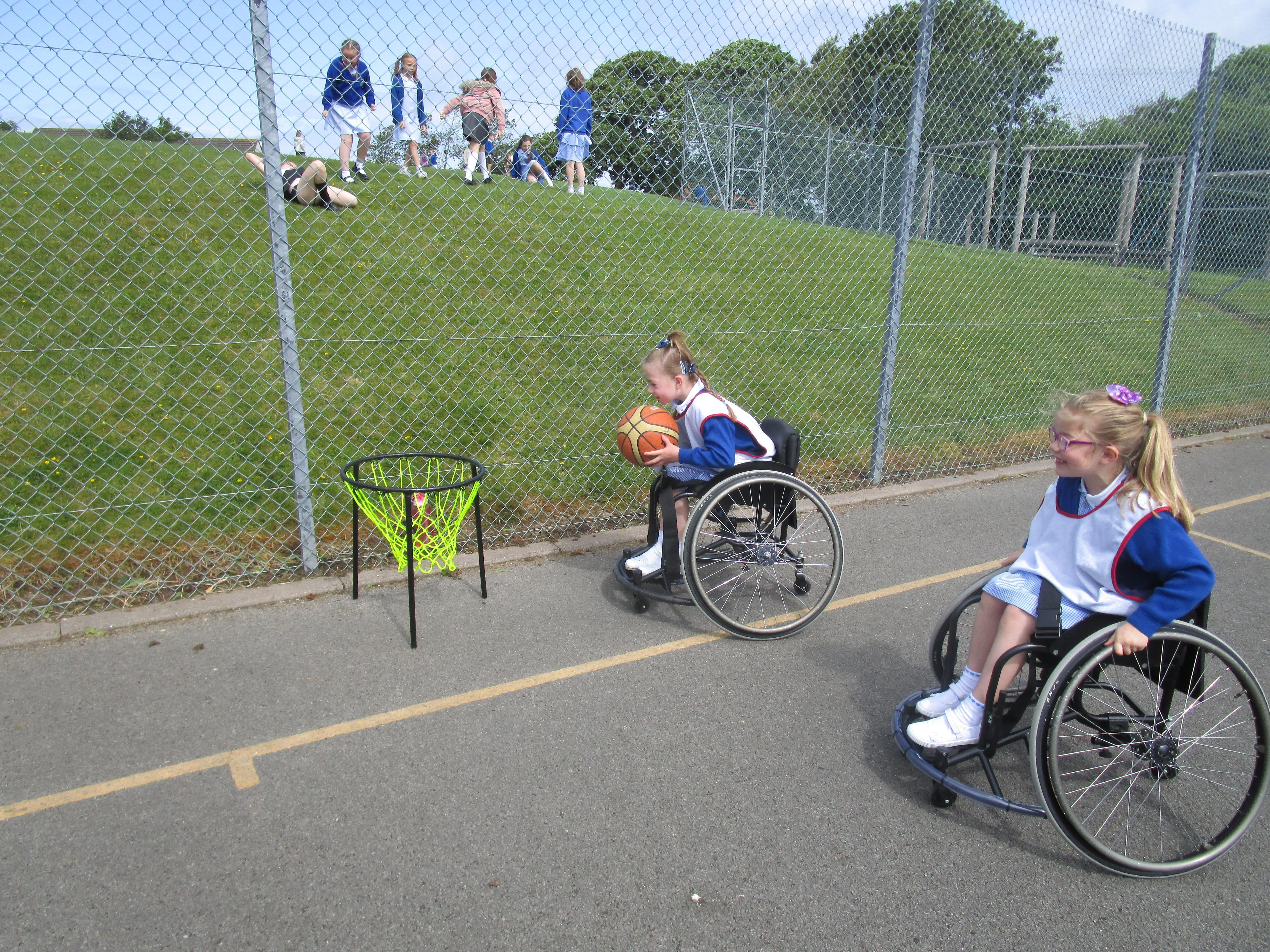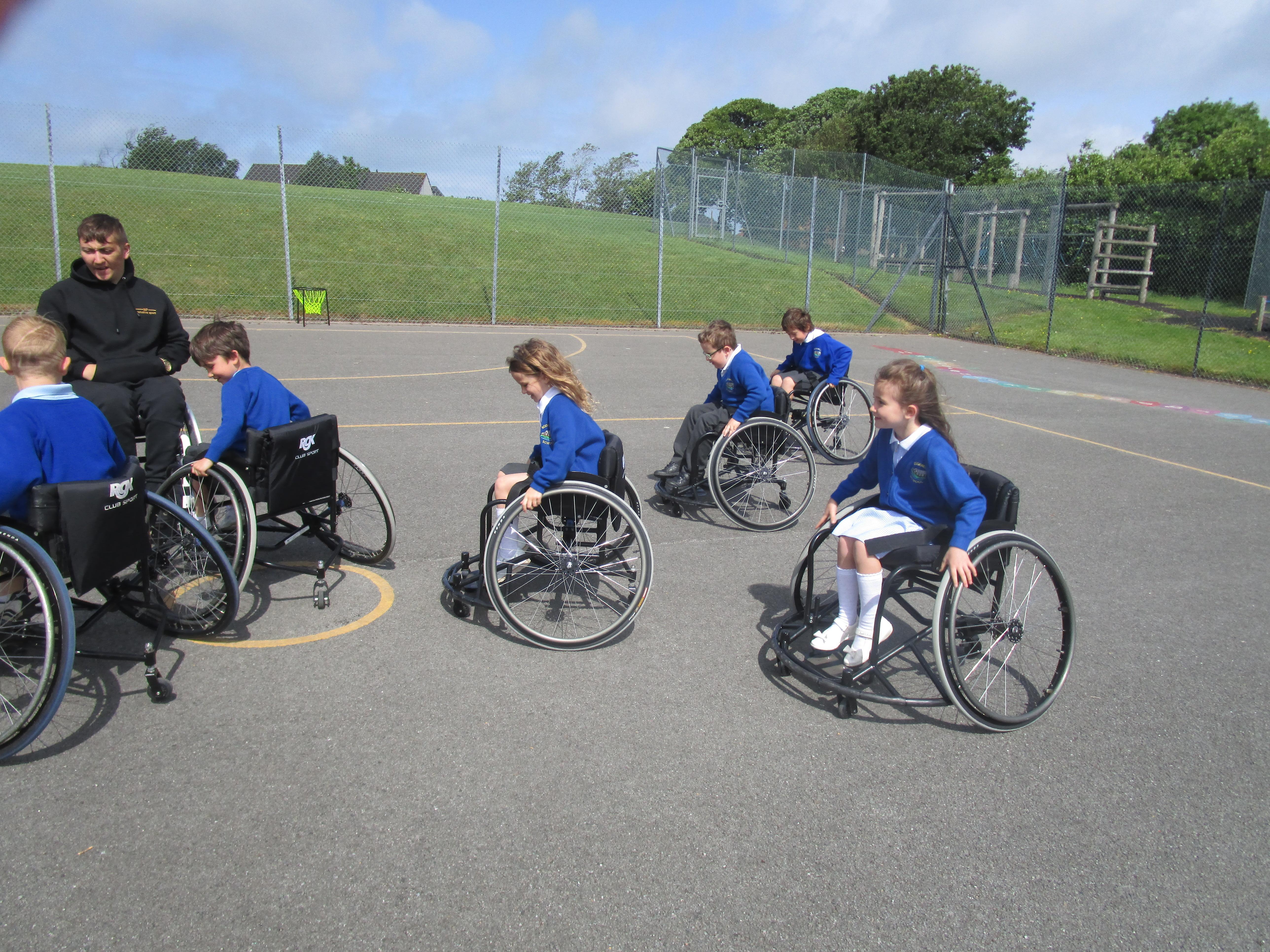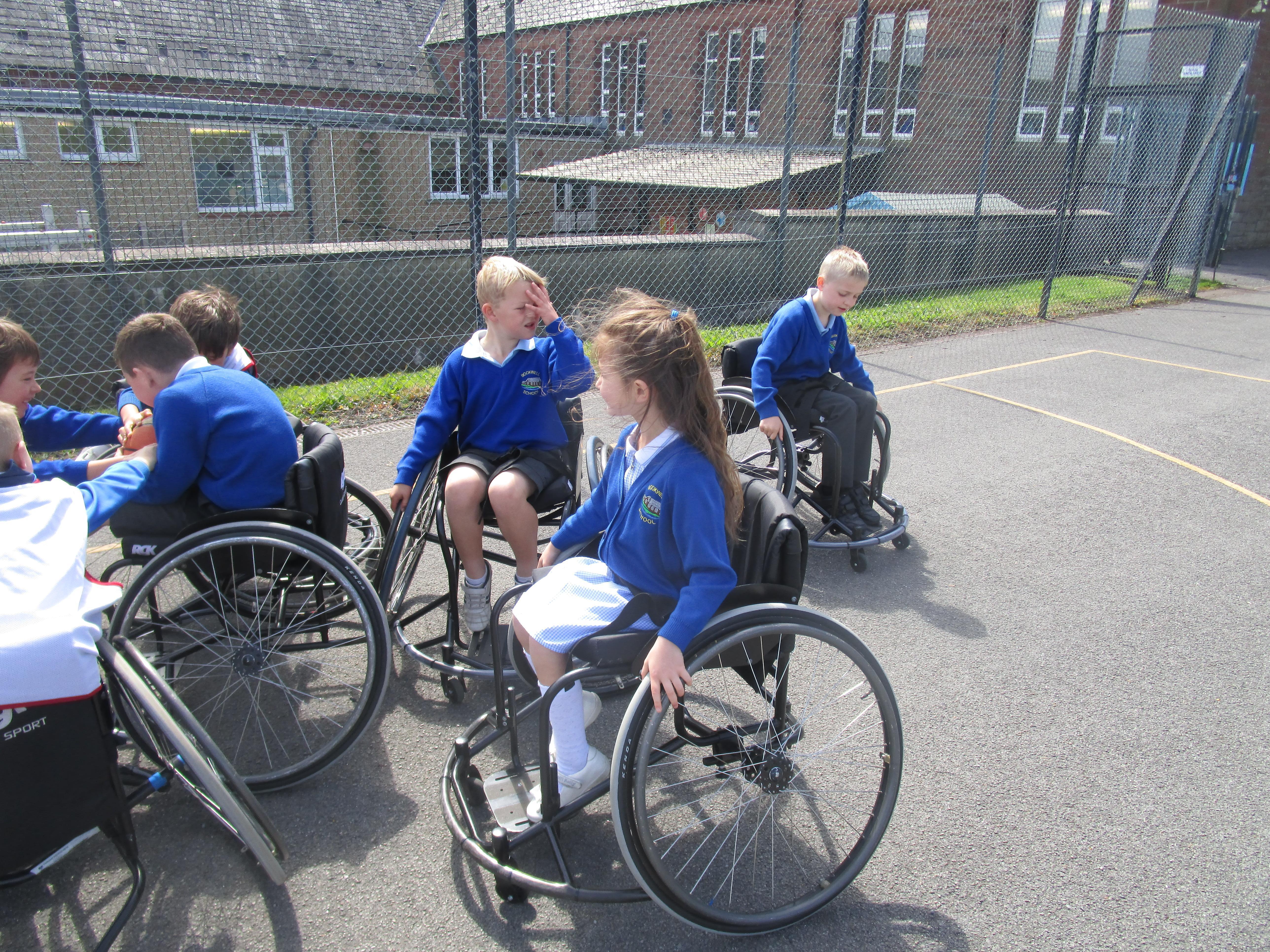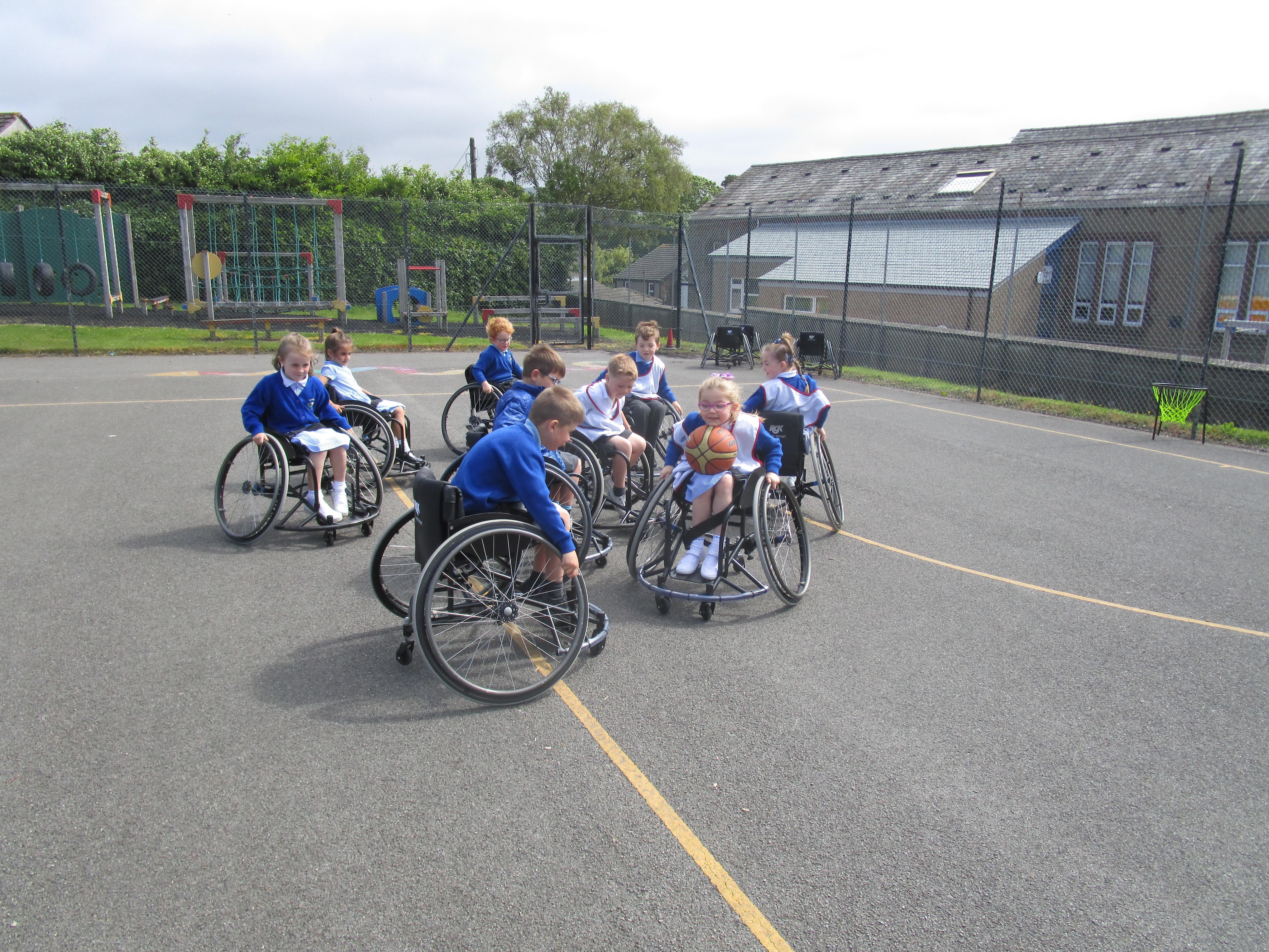 The children has a go at Wheelchair Basketball this week with their coach Nat. They found it really exciting and enjoyed taking part!