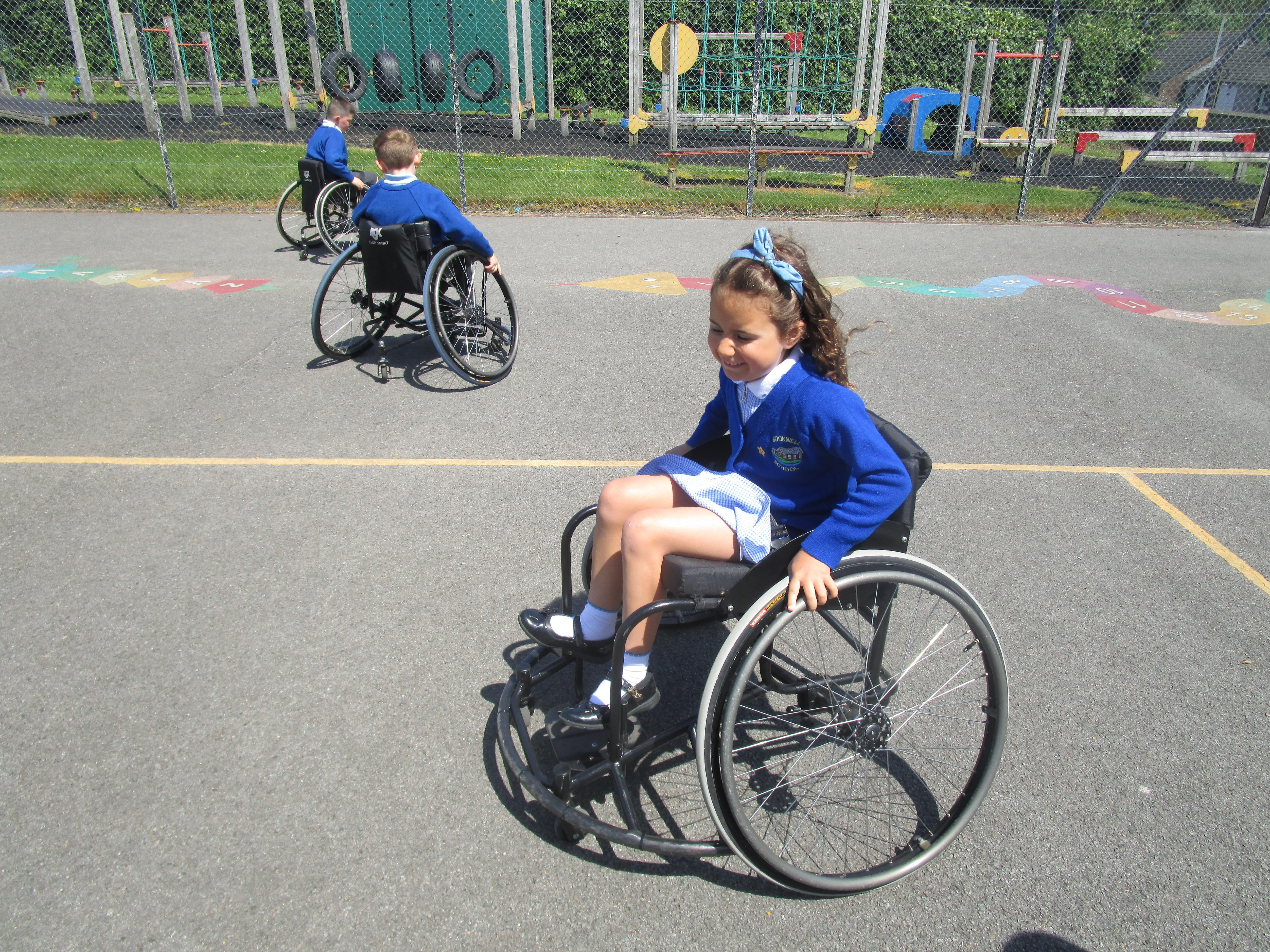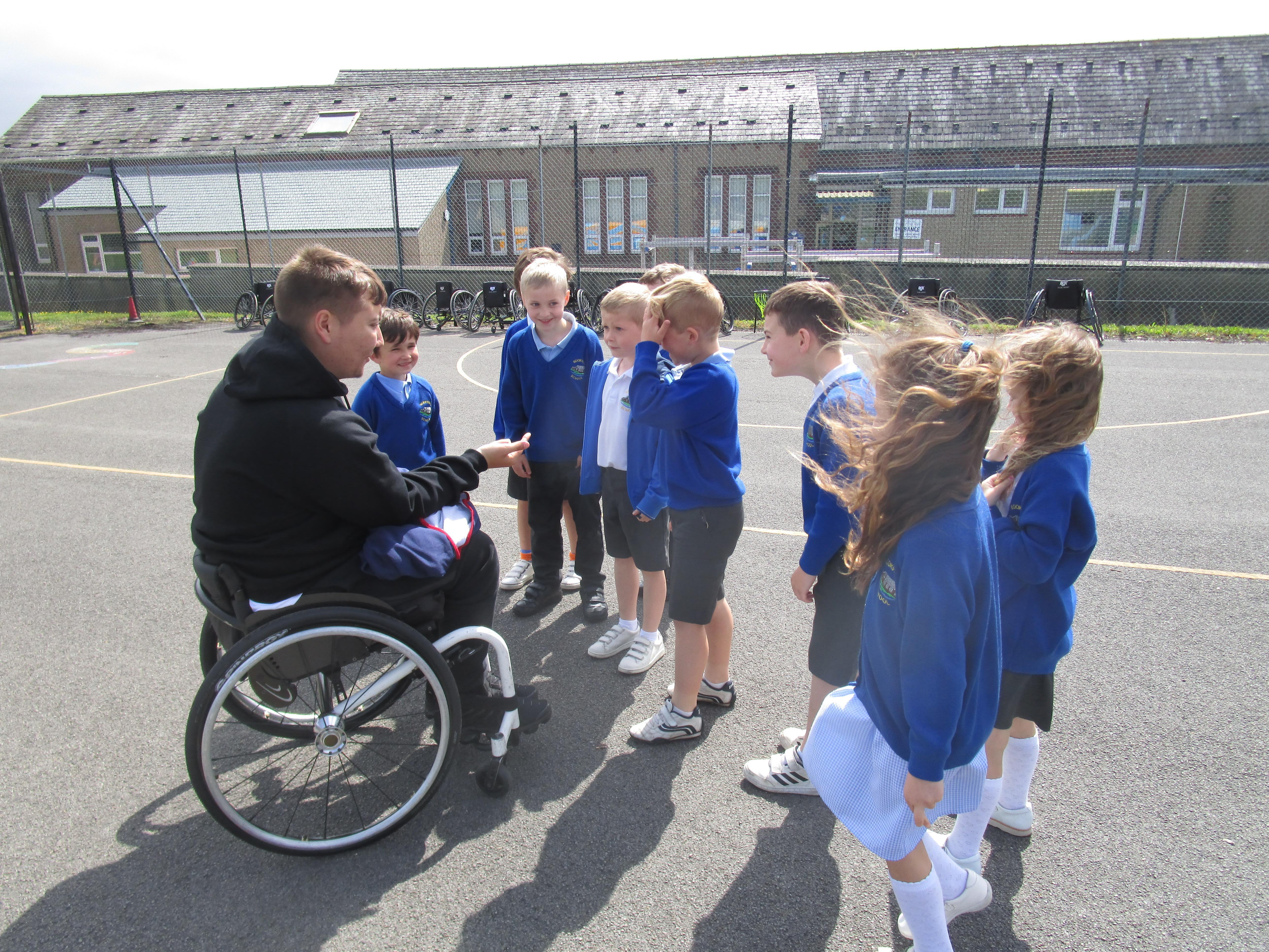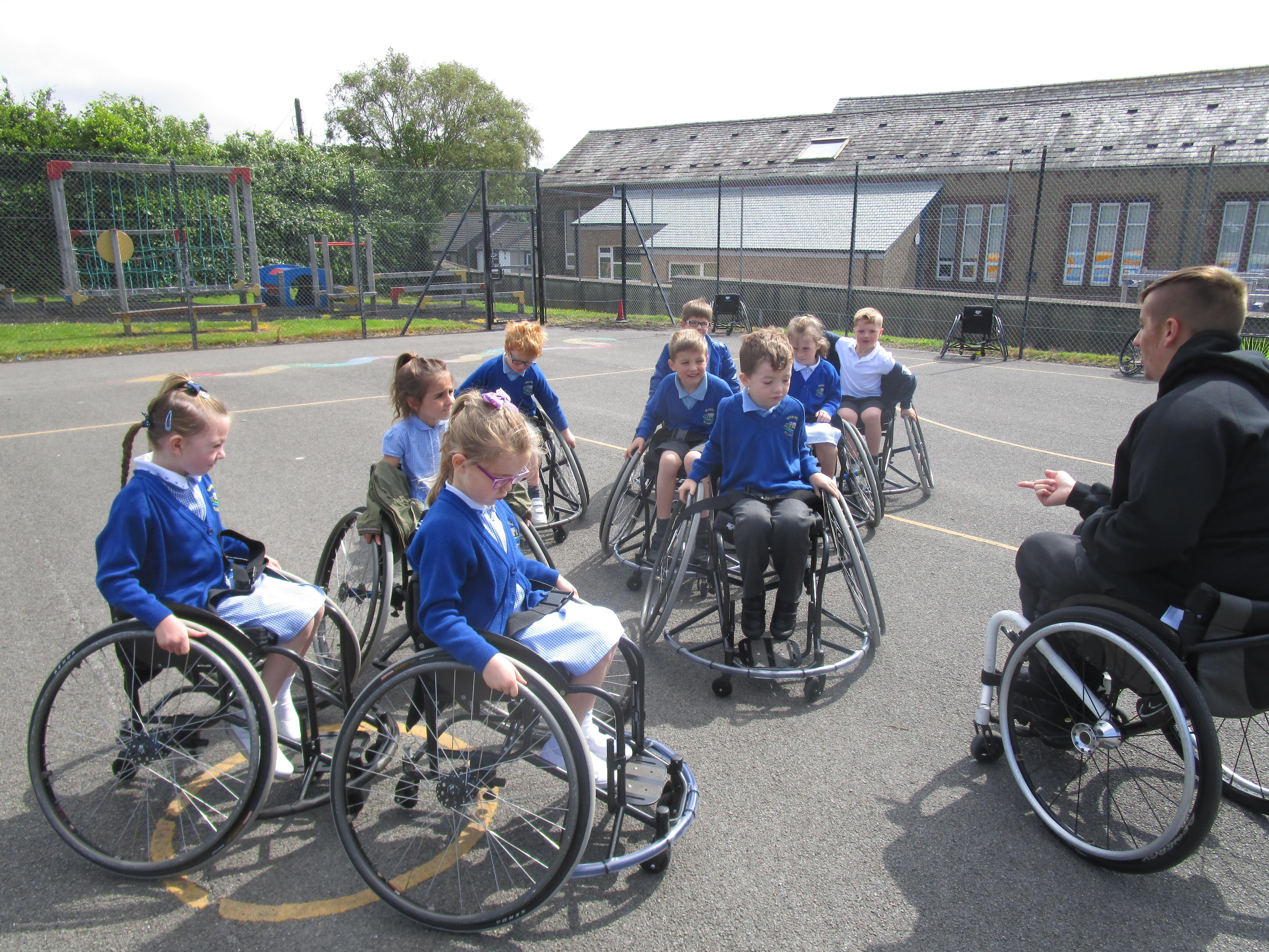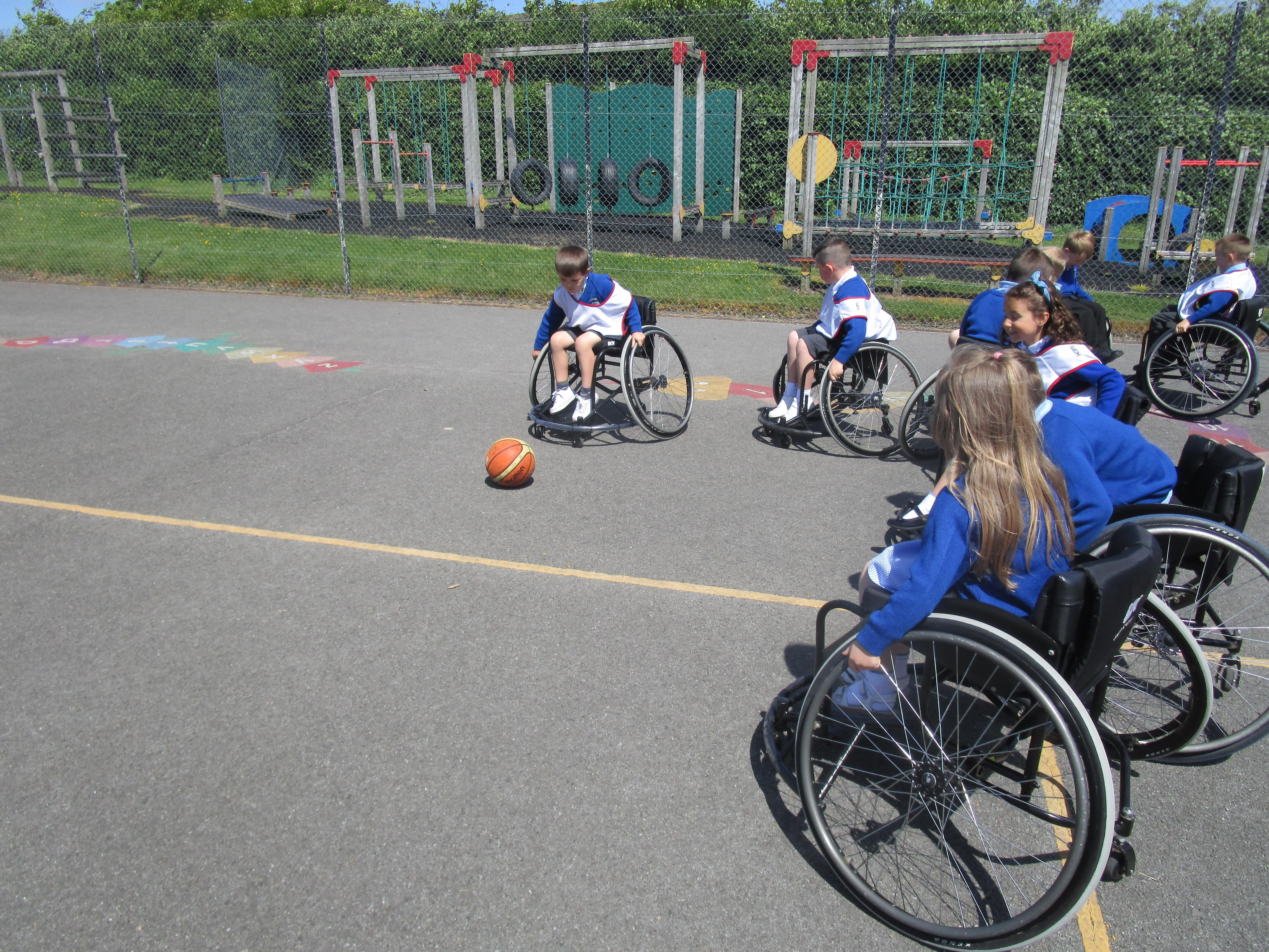 The children has a go at Wheelchair Basketball this week with their coach Nat. They found it really exciting and enjoyed taking part!