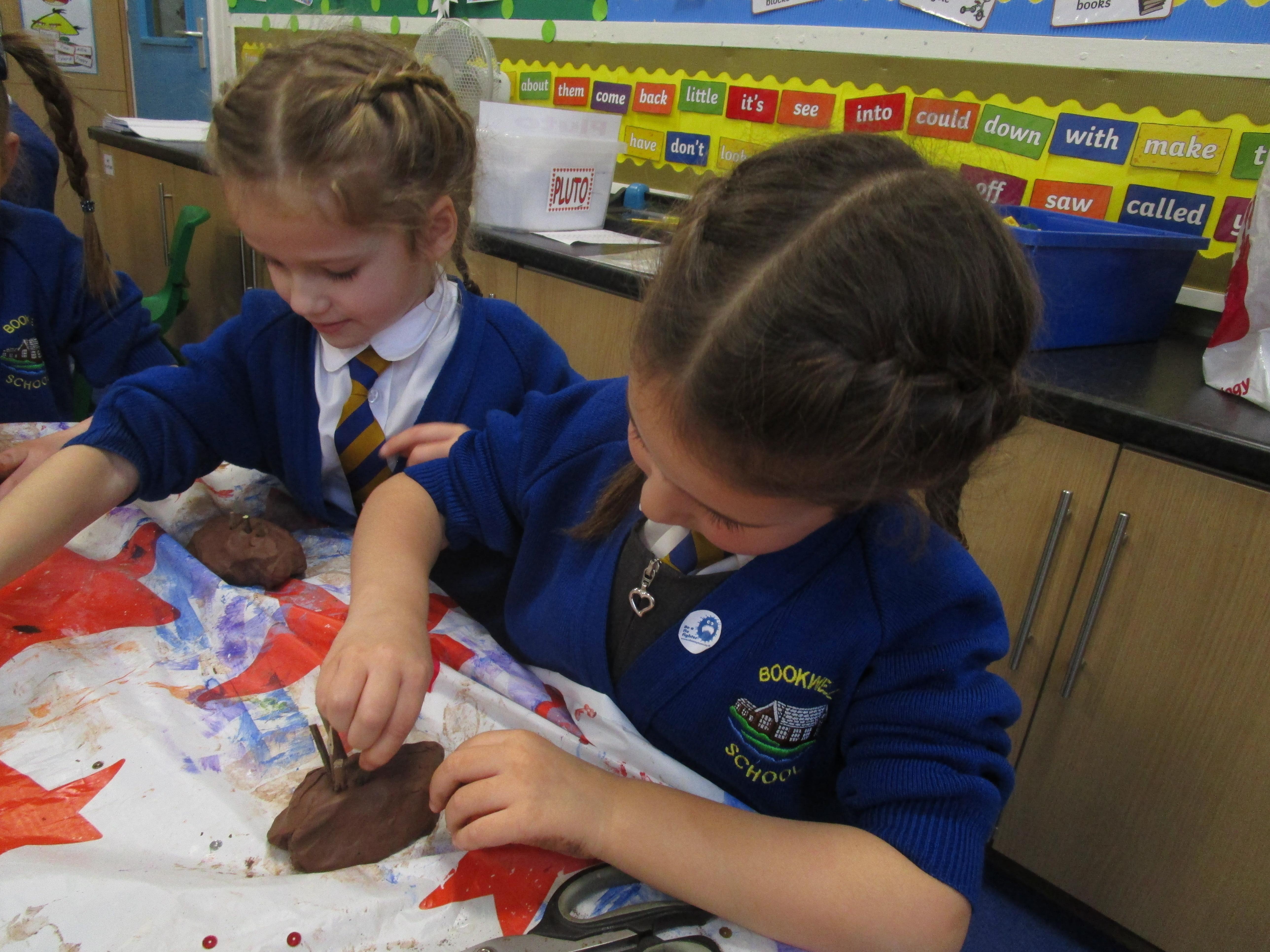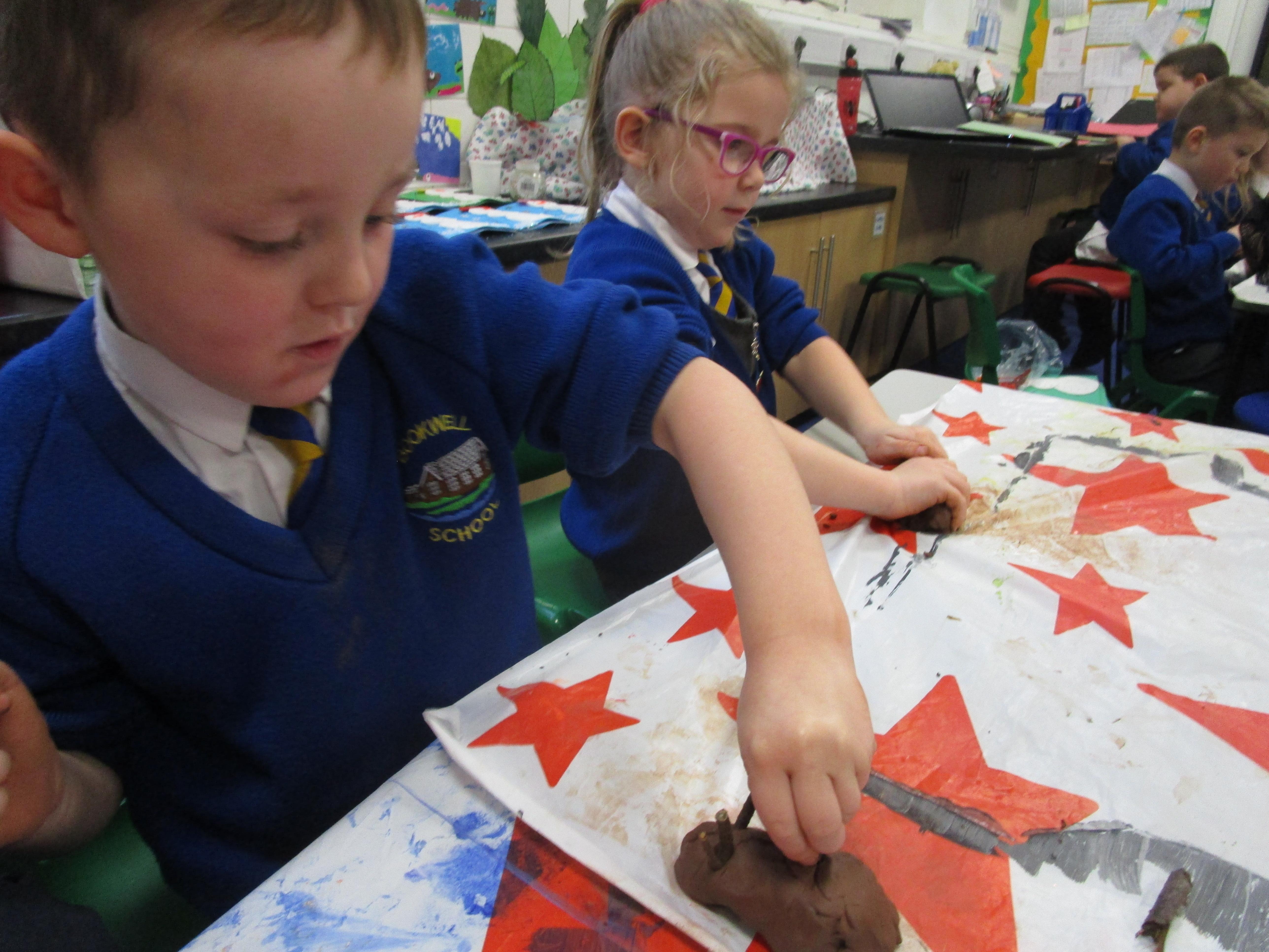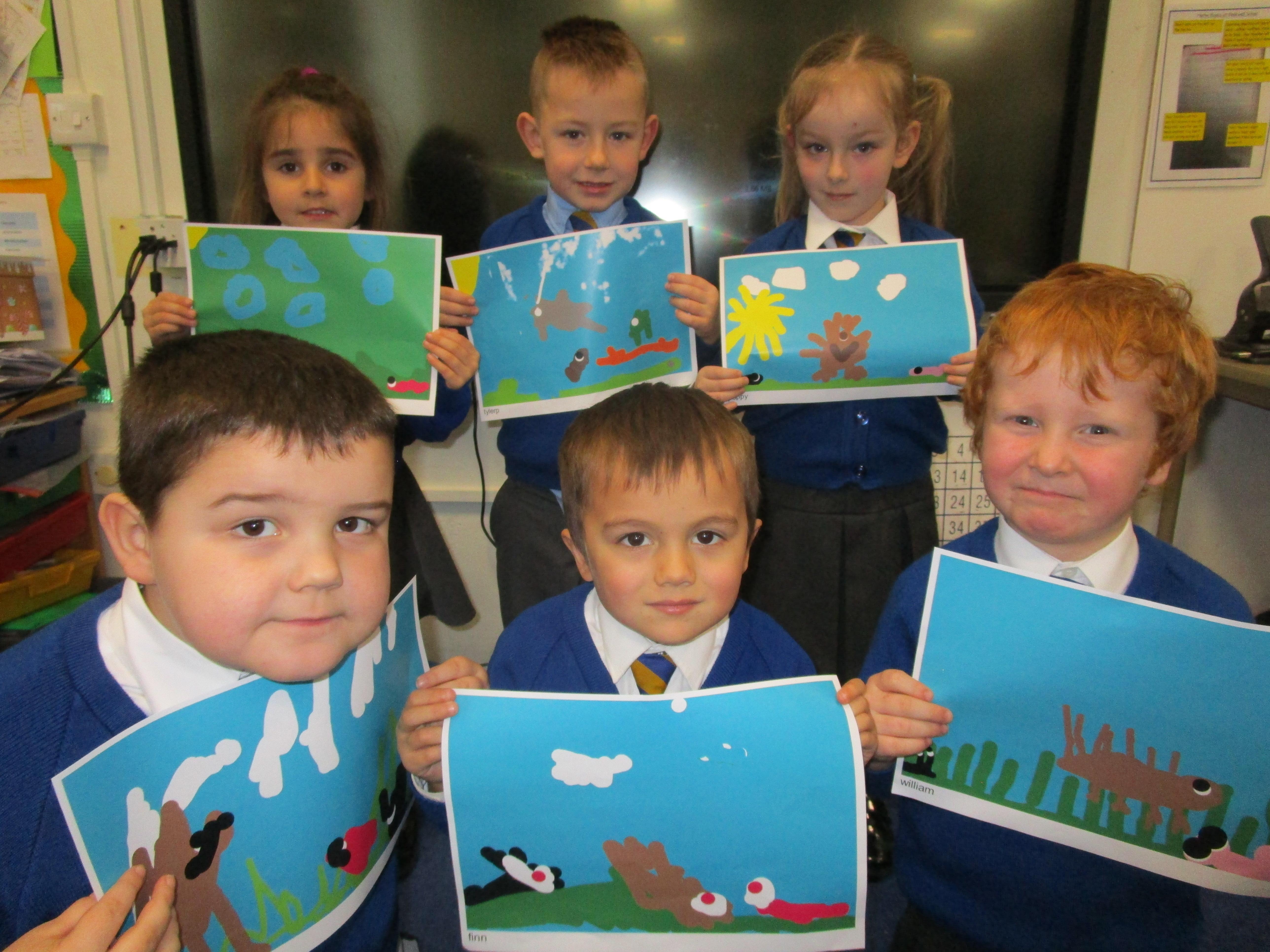 The children have had a fantastically messy time making their very own hedgehog! They made the body out of clay and used sticks for the hedgehog's spines. They were very proud of their what they'd made!