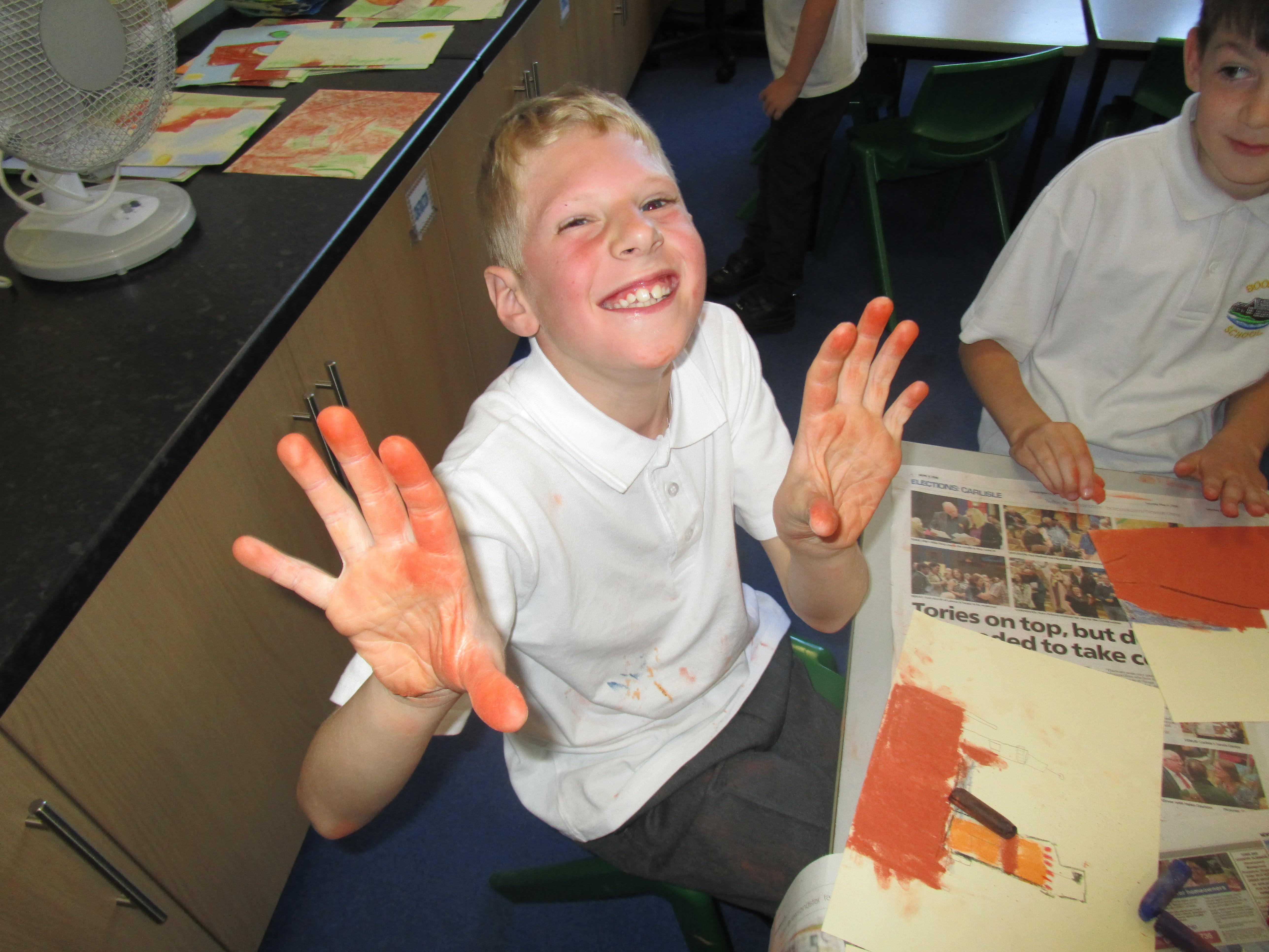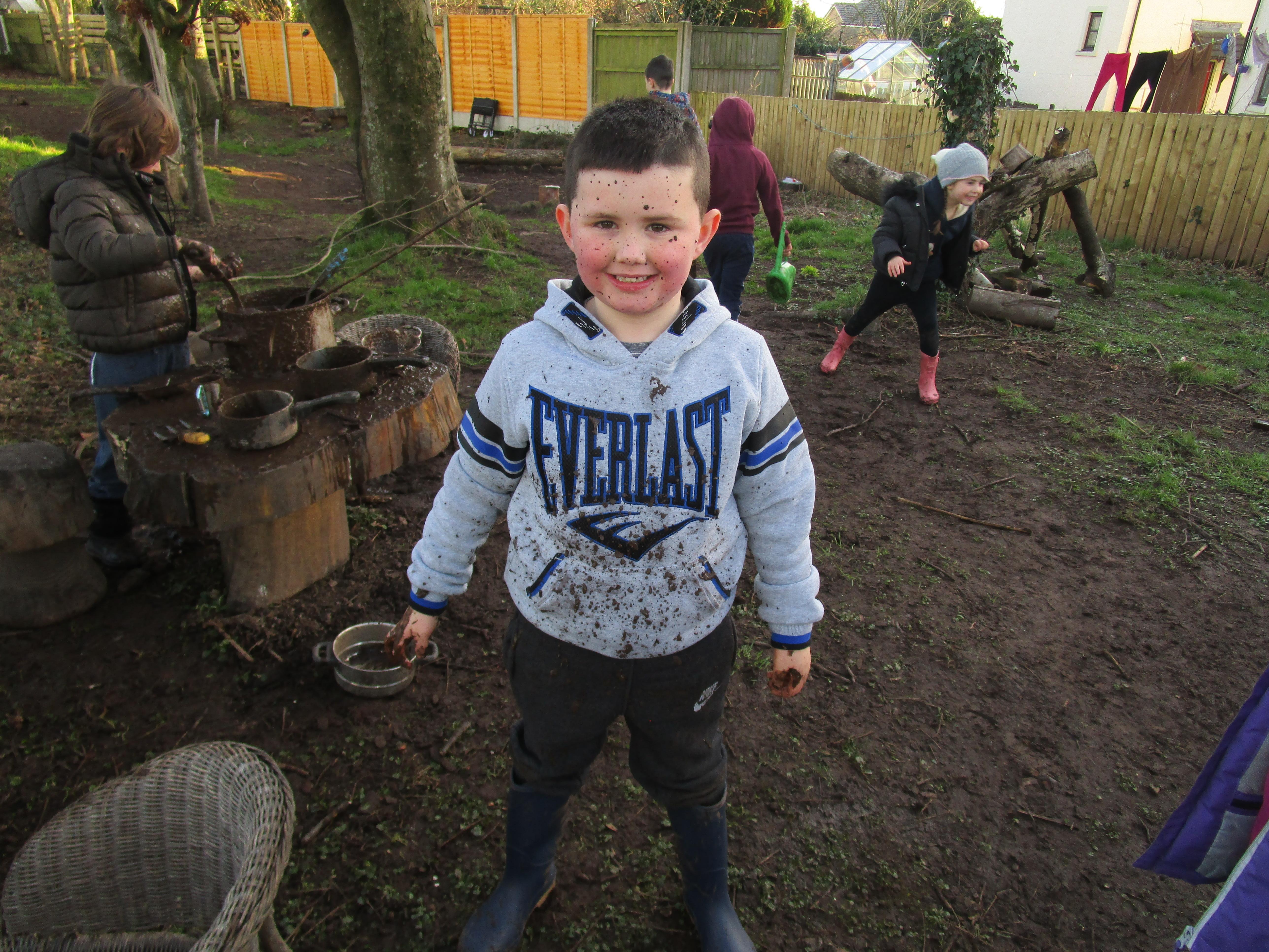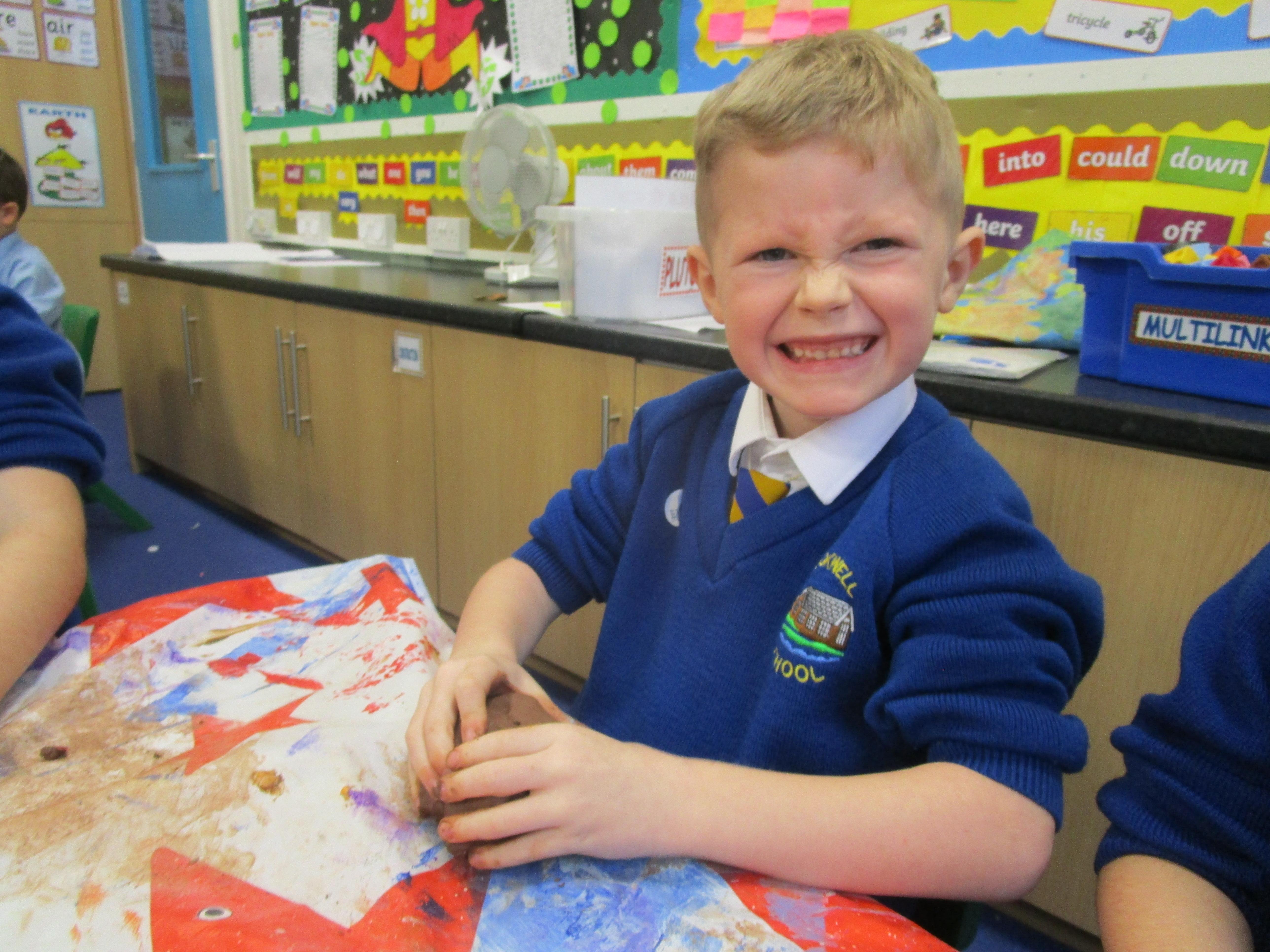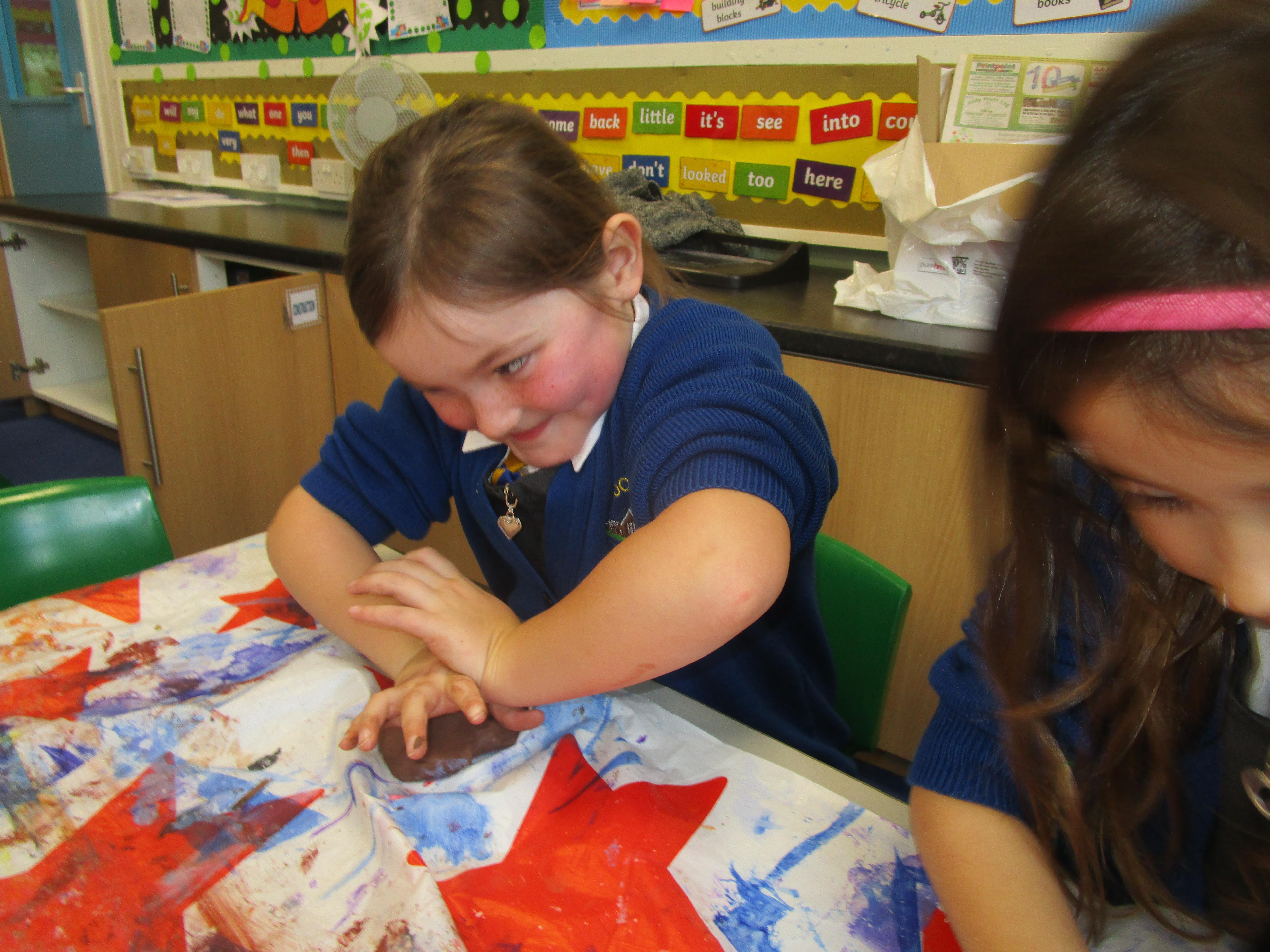 The children have had a fantastically messy time making their very own hedgehog! They made the body out of clay and used sticks for the hedgehog's spines. They were very proud of their what they'd made!