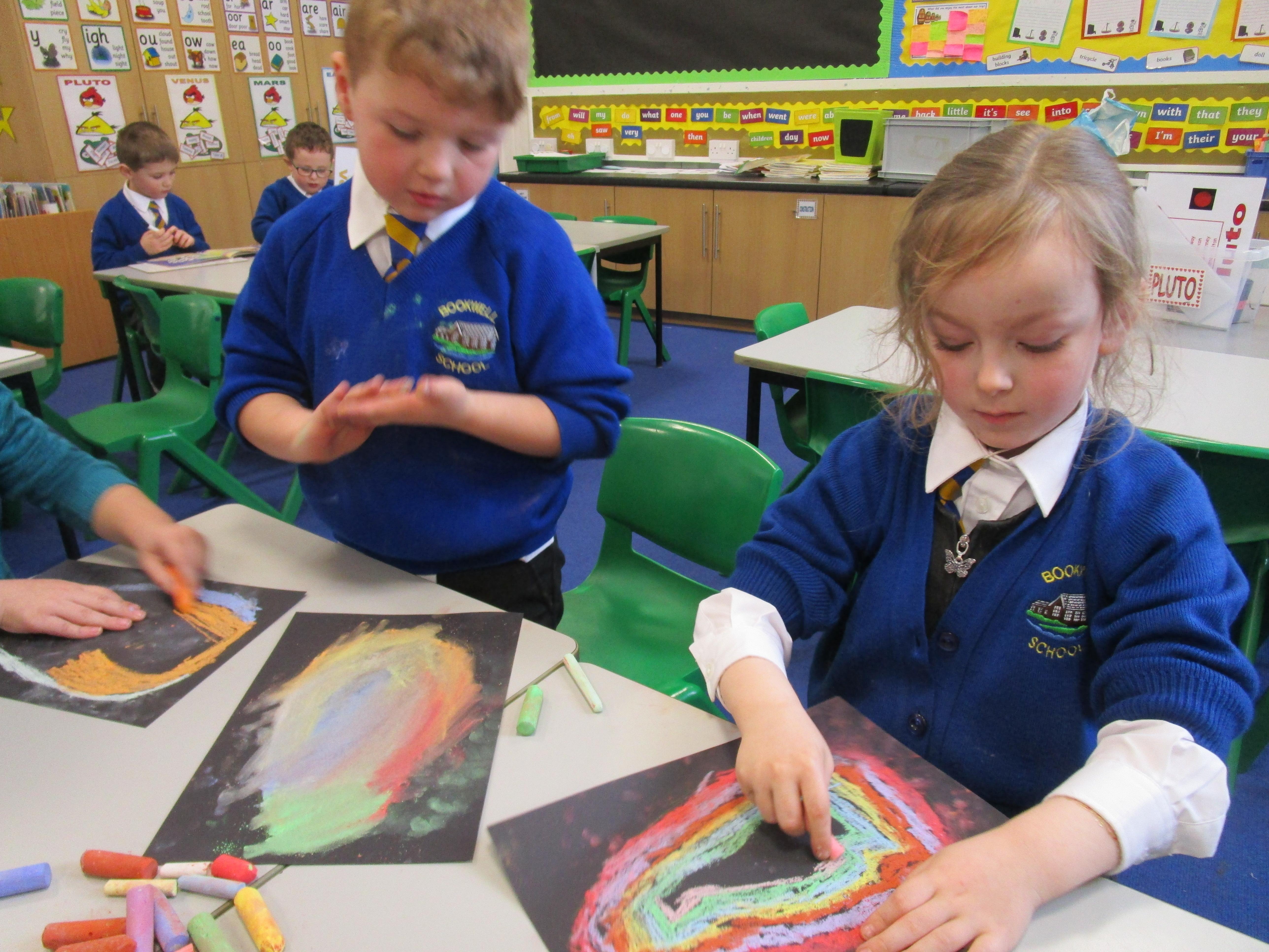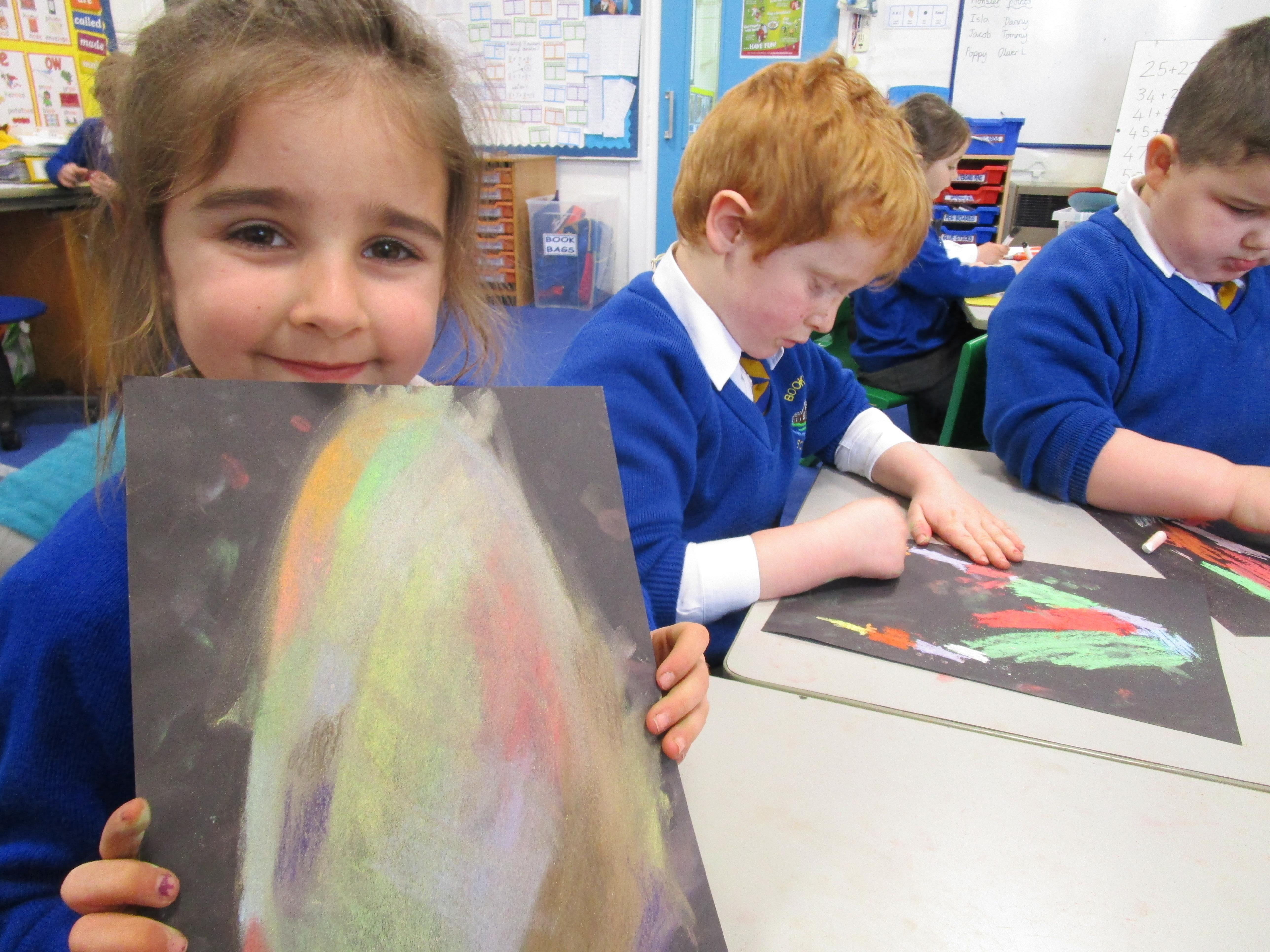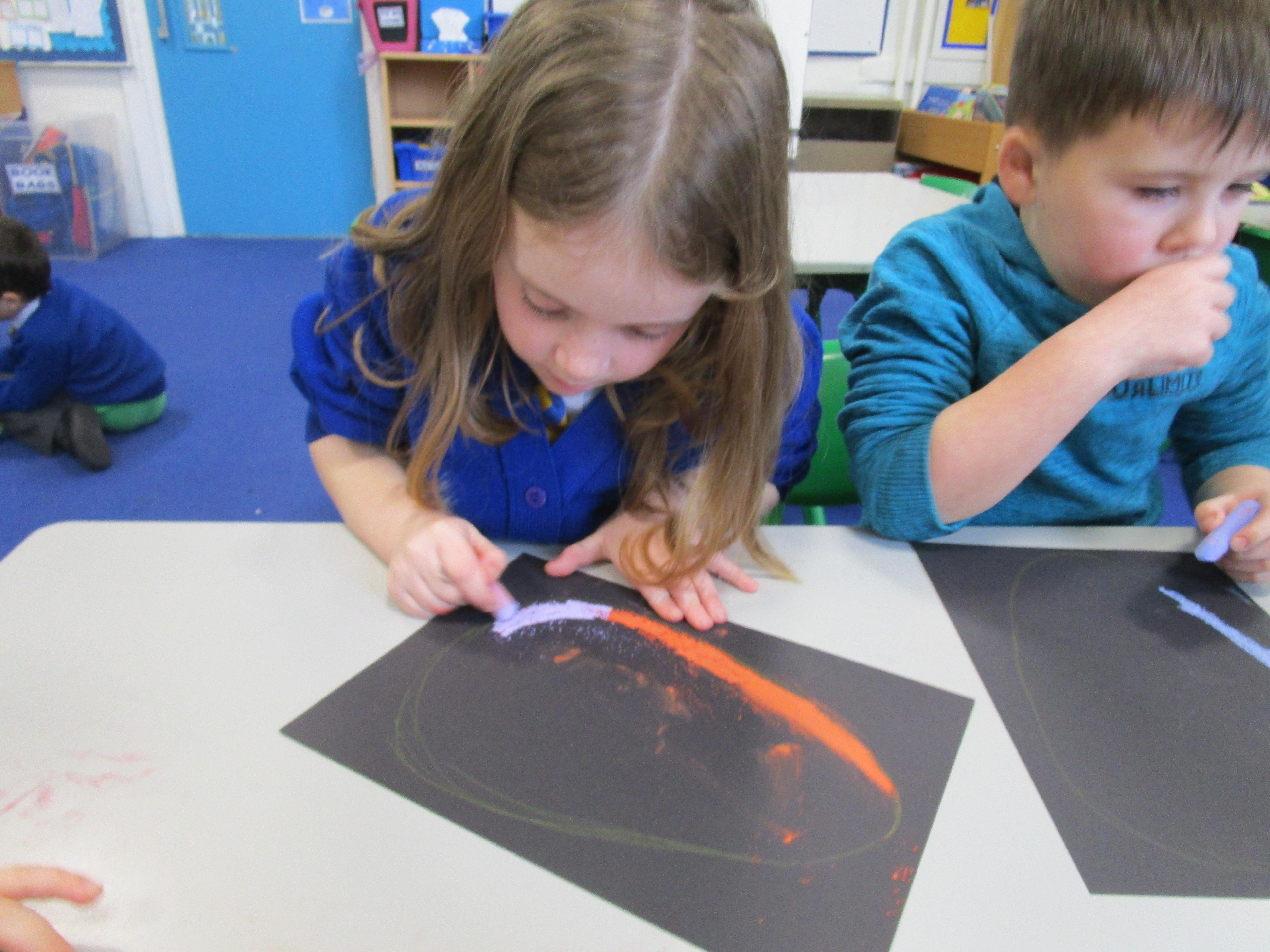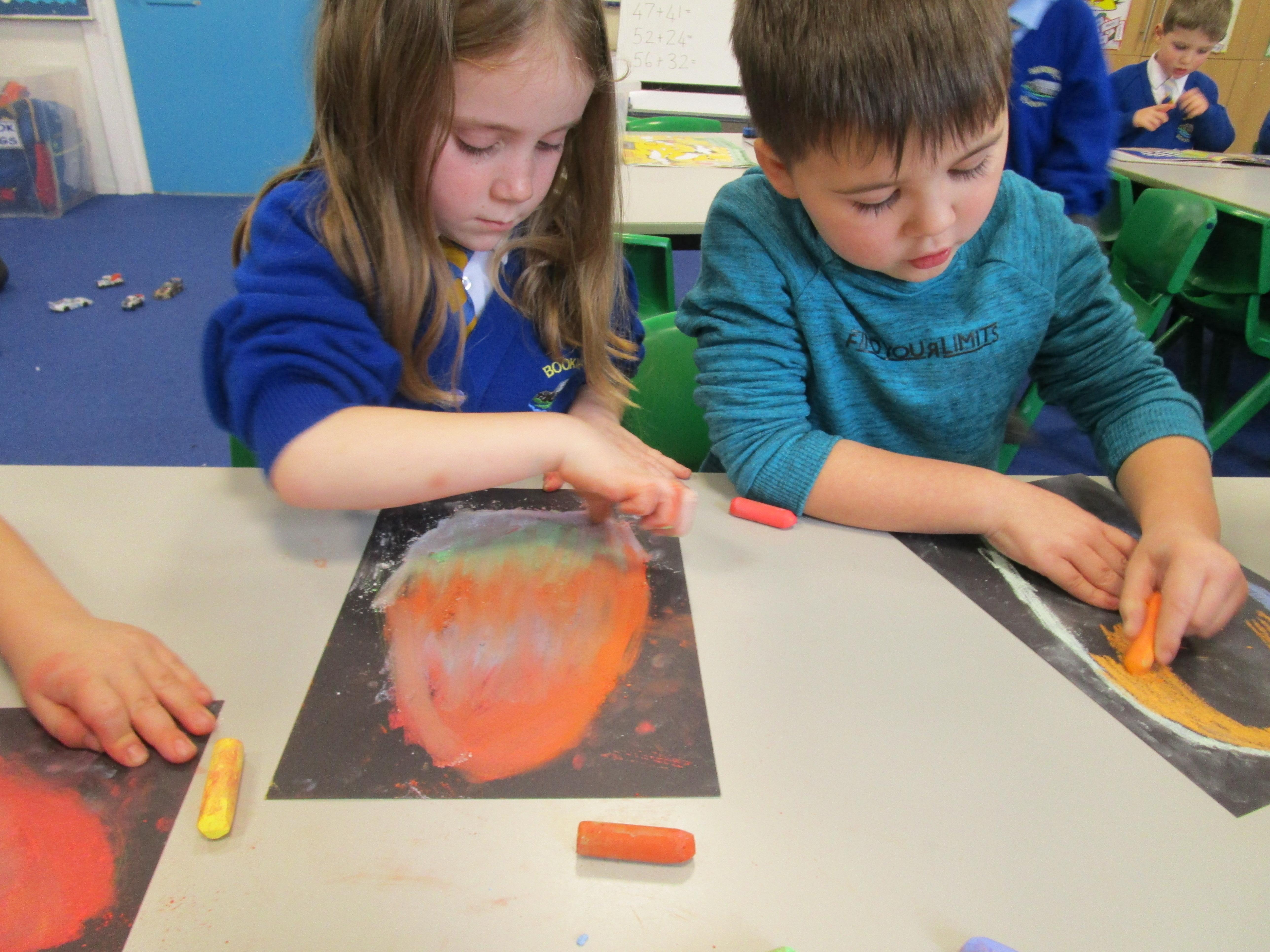 The children have been using chalks to create some fantastic dragon eggs. They looked really effective!