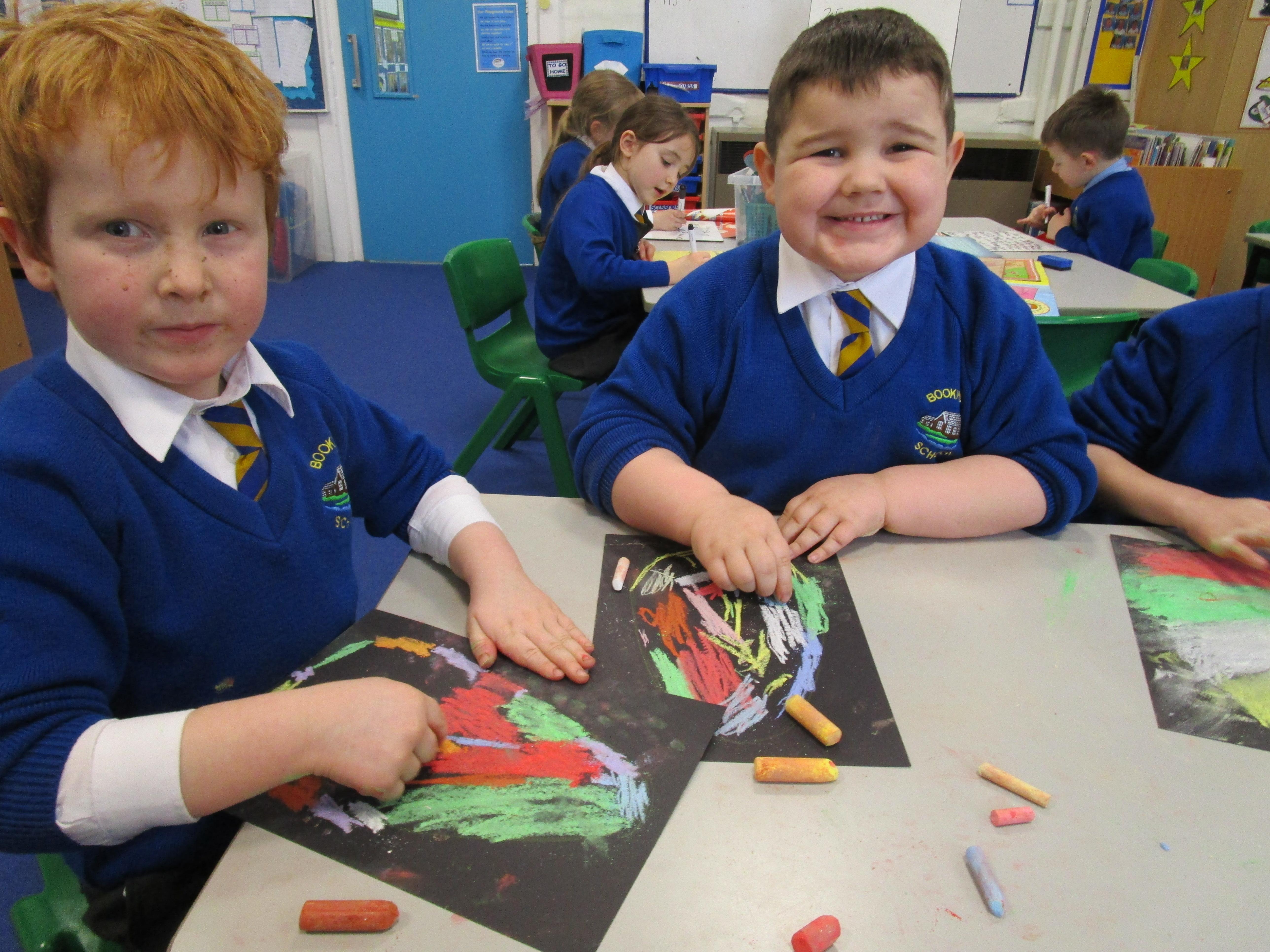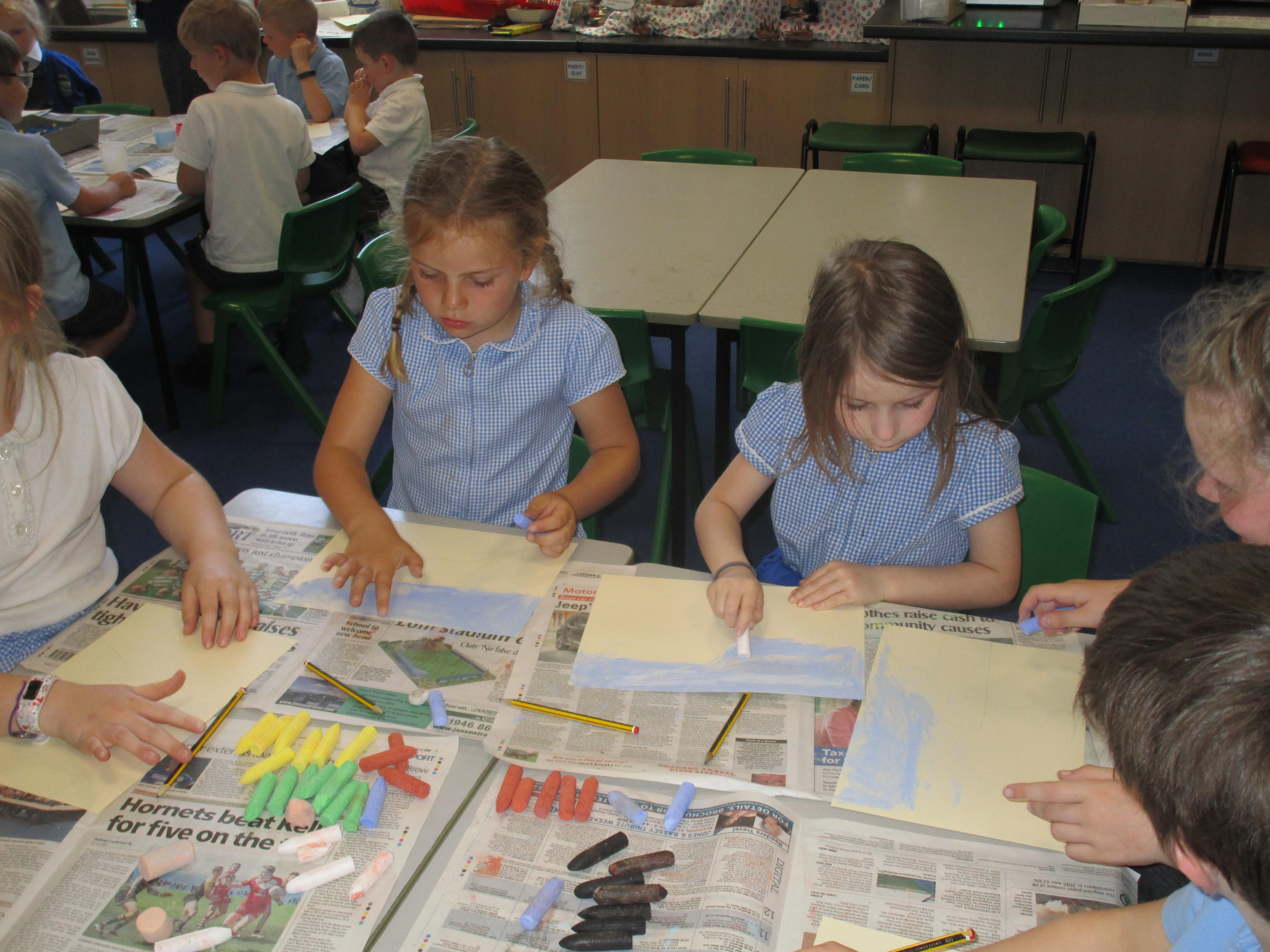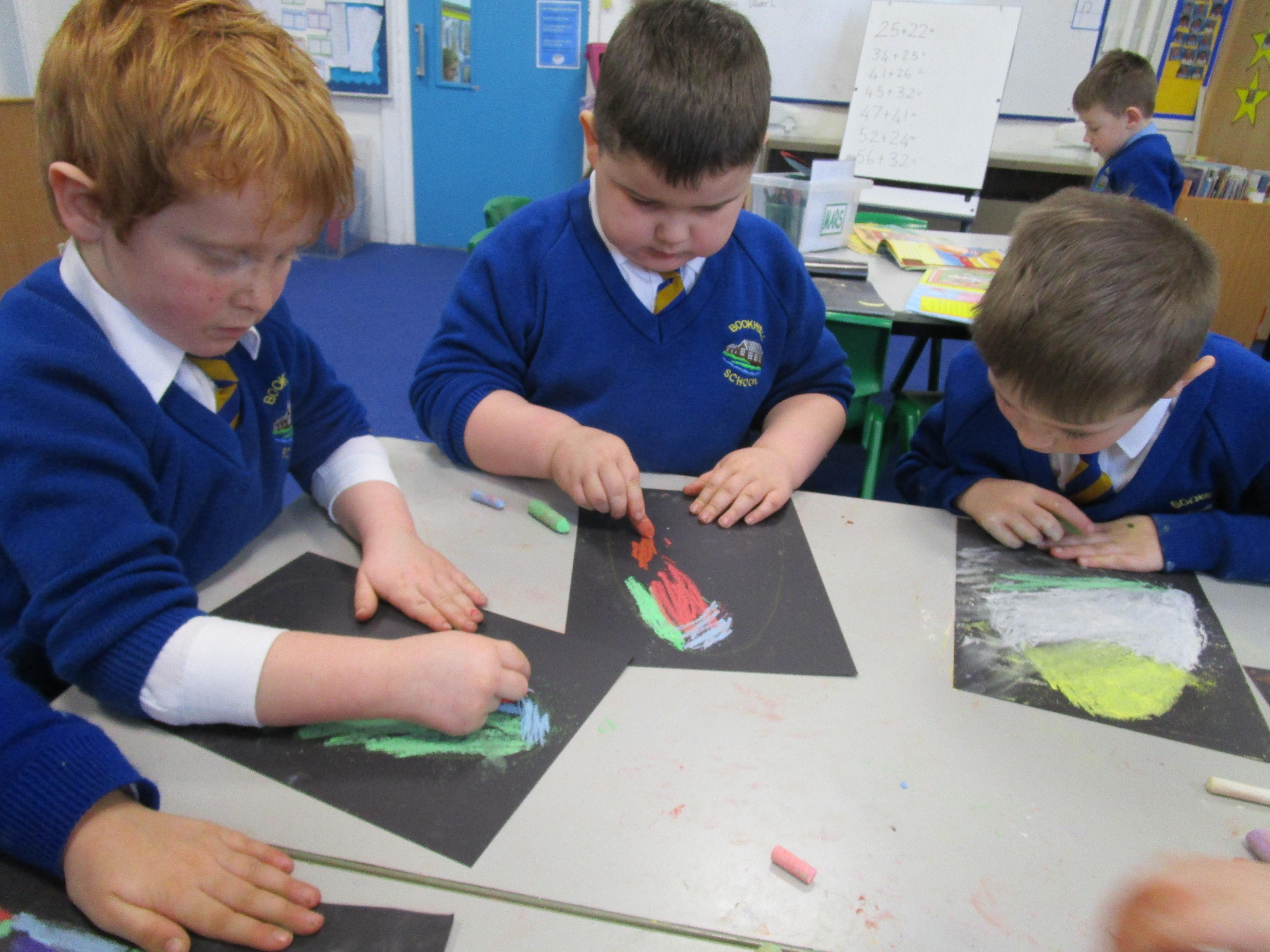 The children have been using chalks to create some fantastic dragon eggs. They looked really effective!