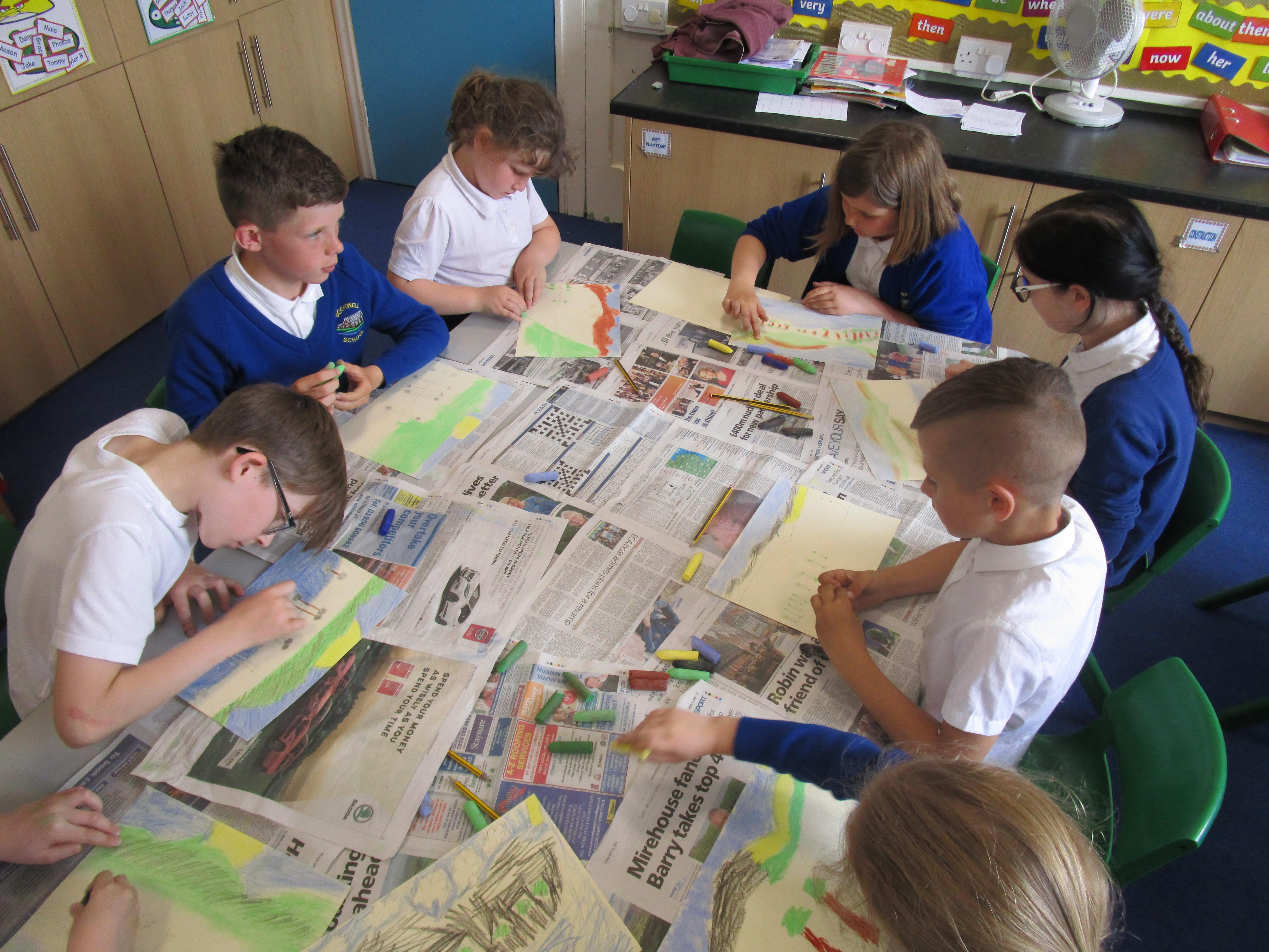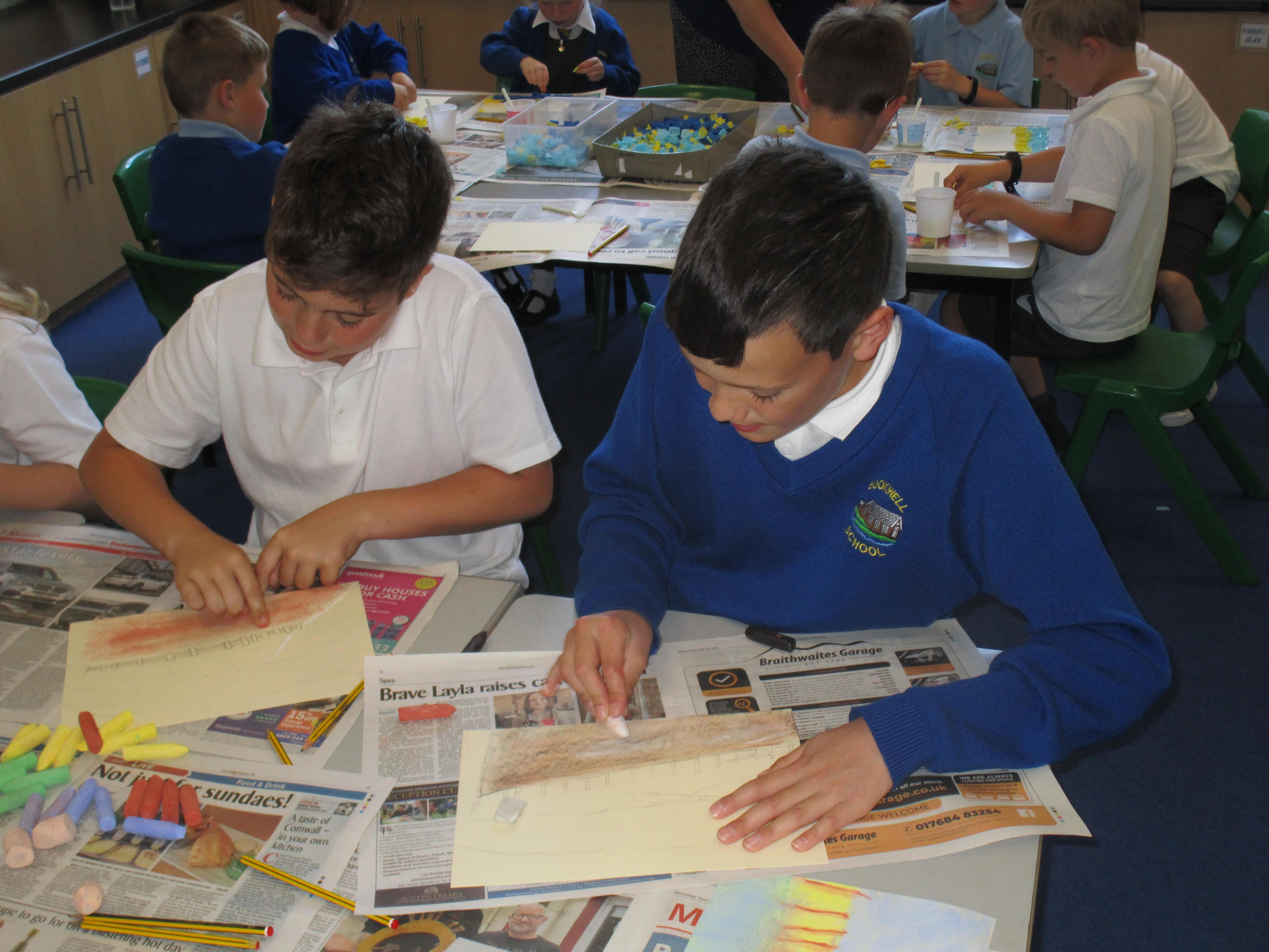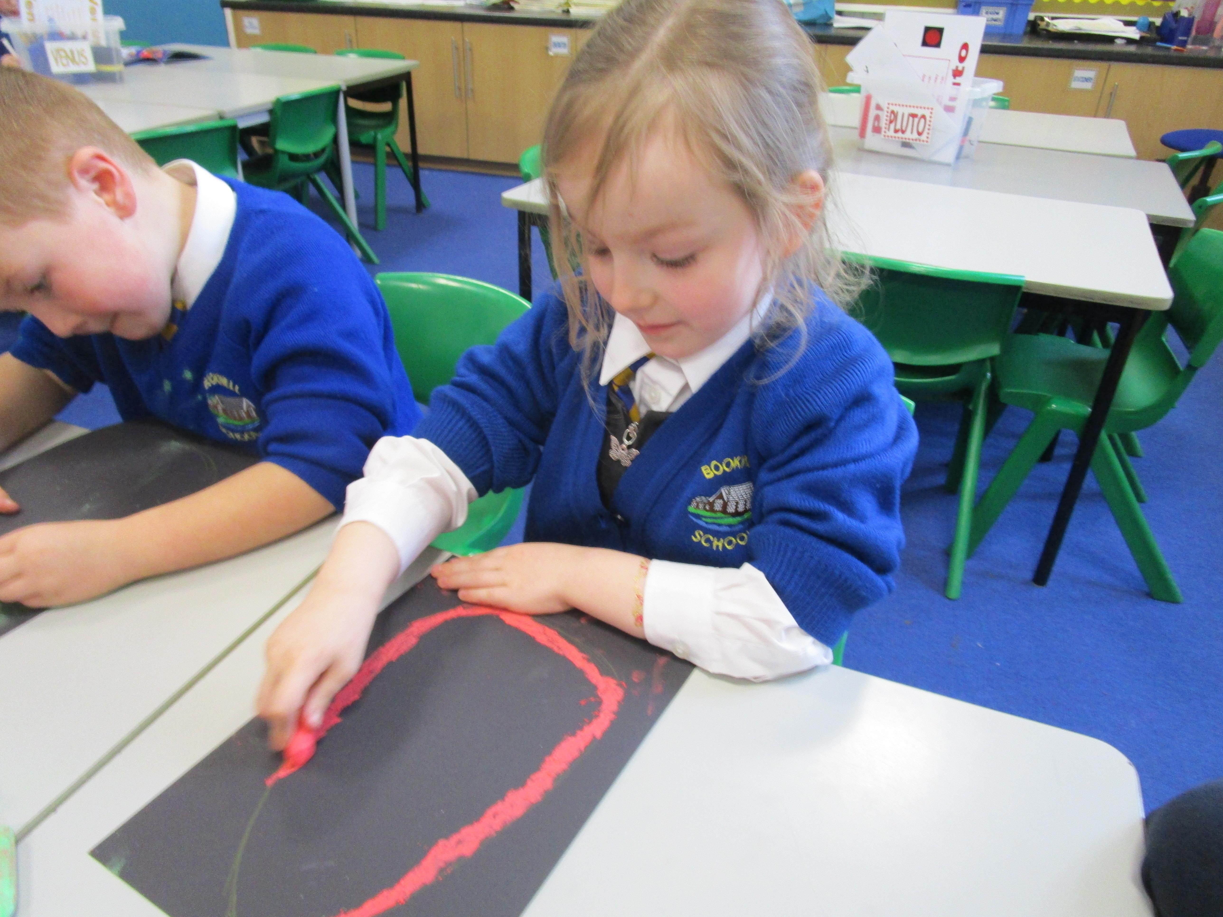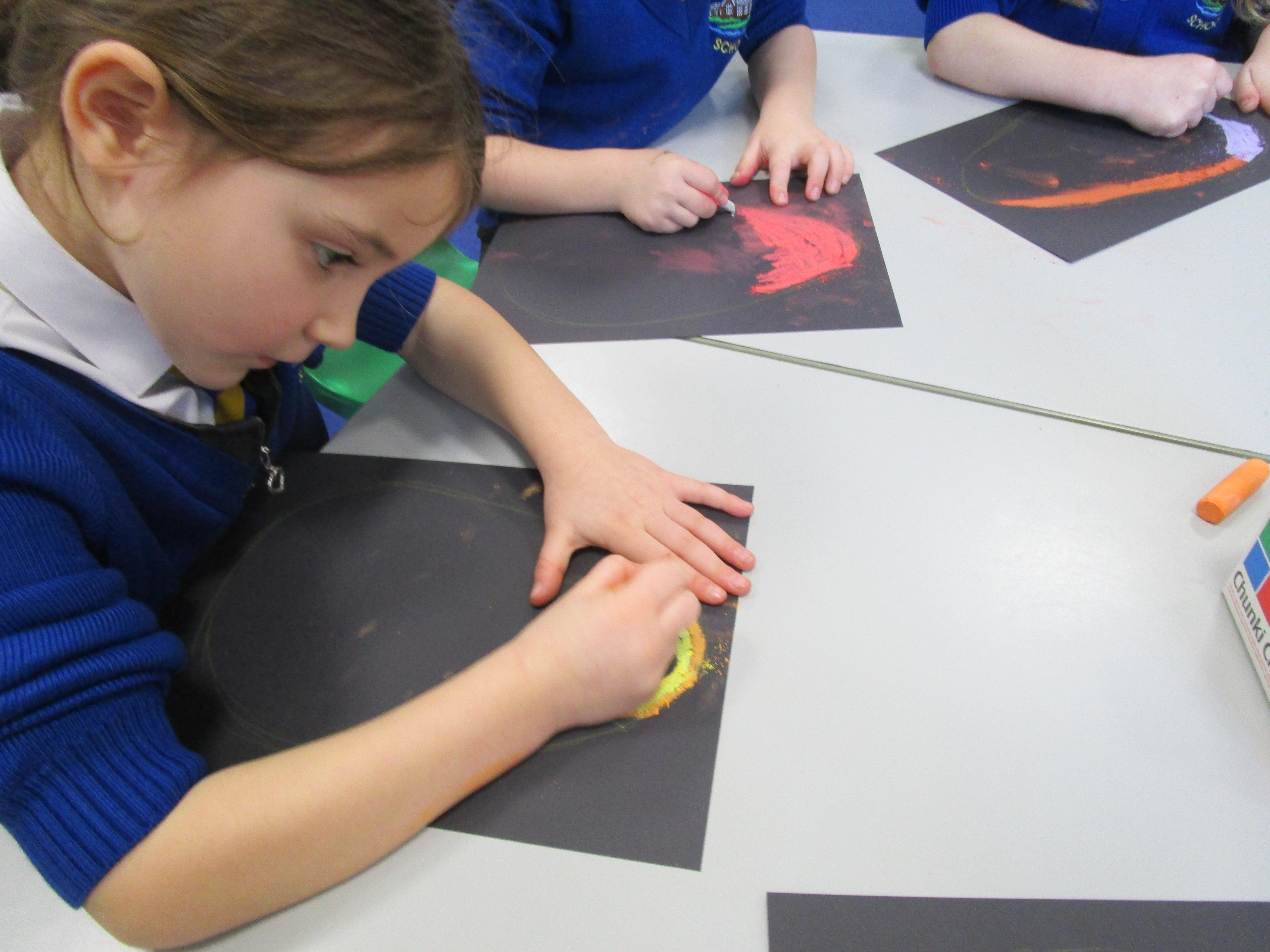 The children have been using chalks to create some fantastic dragon eggs. They looked really effective!