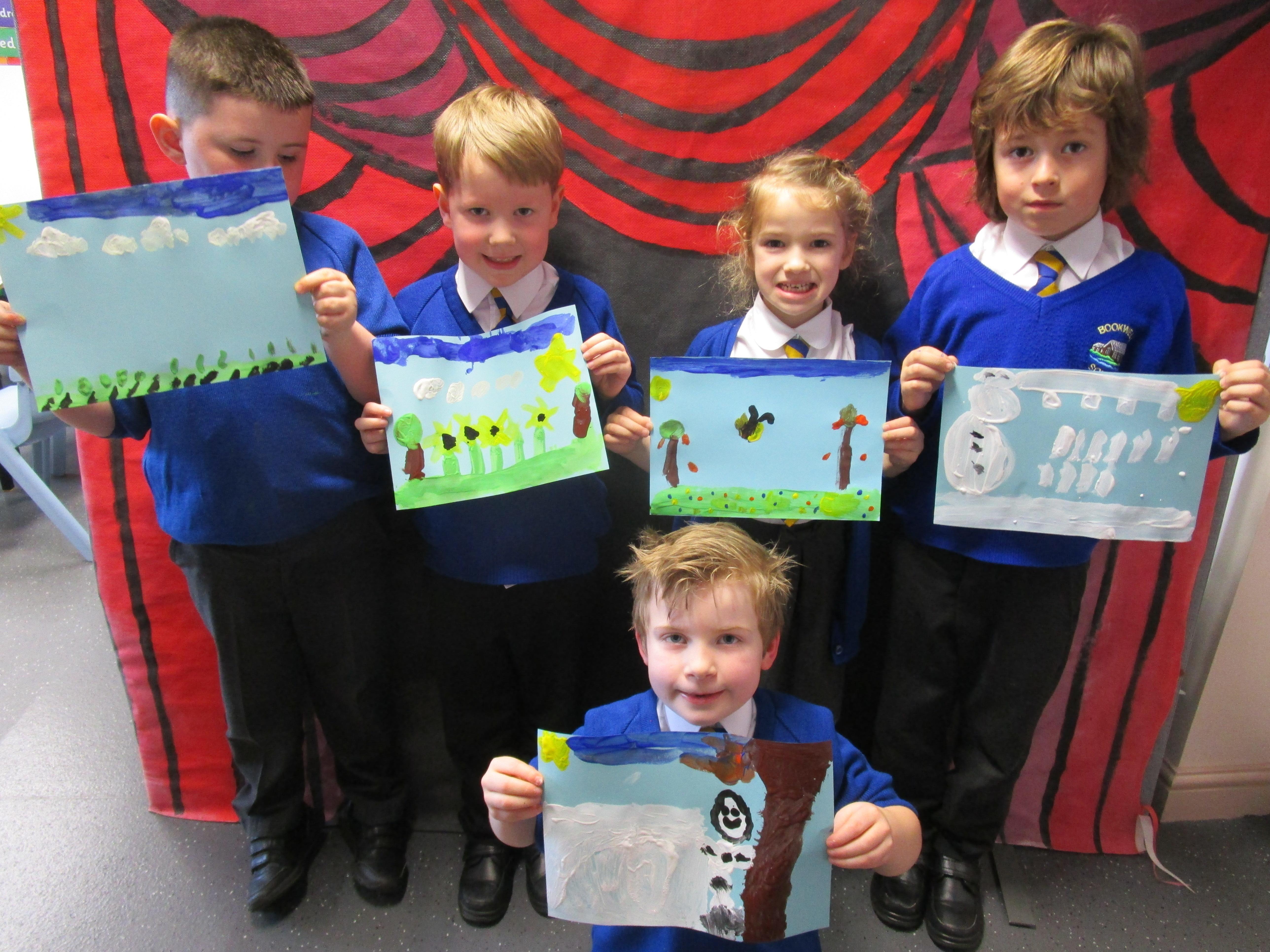 Today the children have been exploring how many of the great artists painted the weather - choice of colour, texture and brush strokes used. The all the children got the opportunity to go into the Rainbow Room and paint their very own picture of the weather.