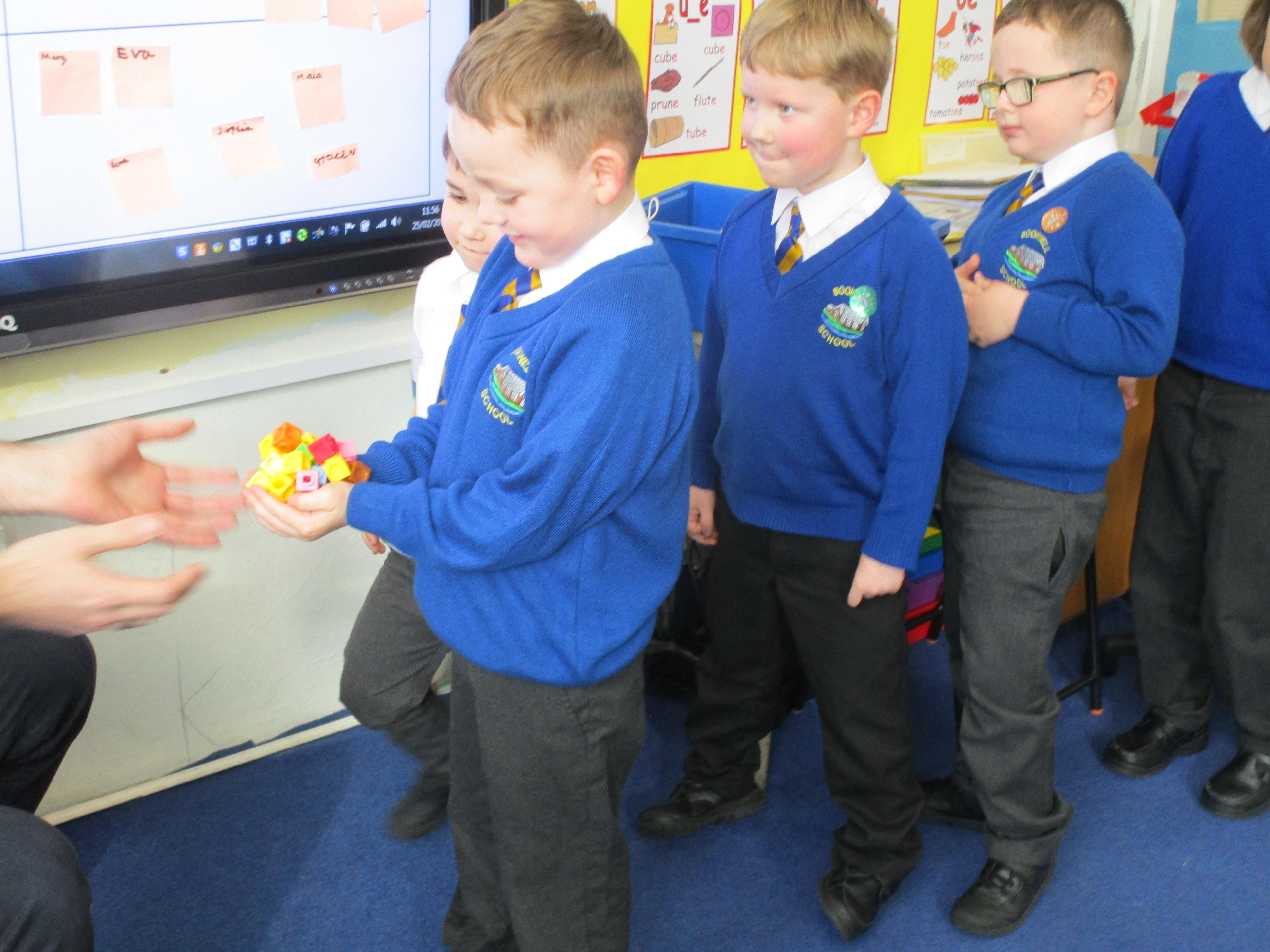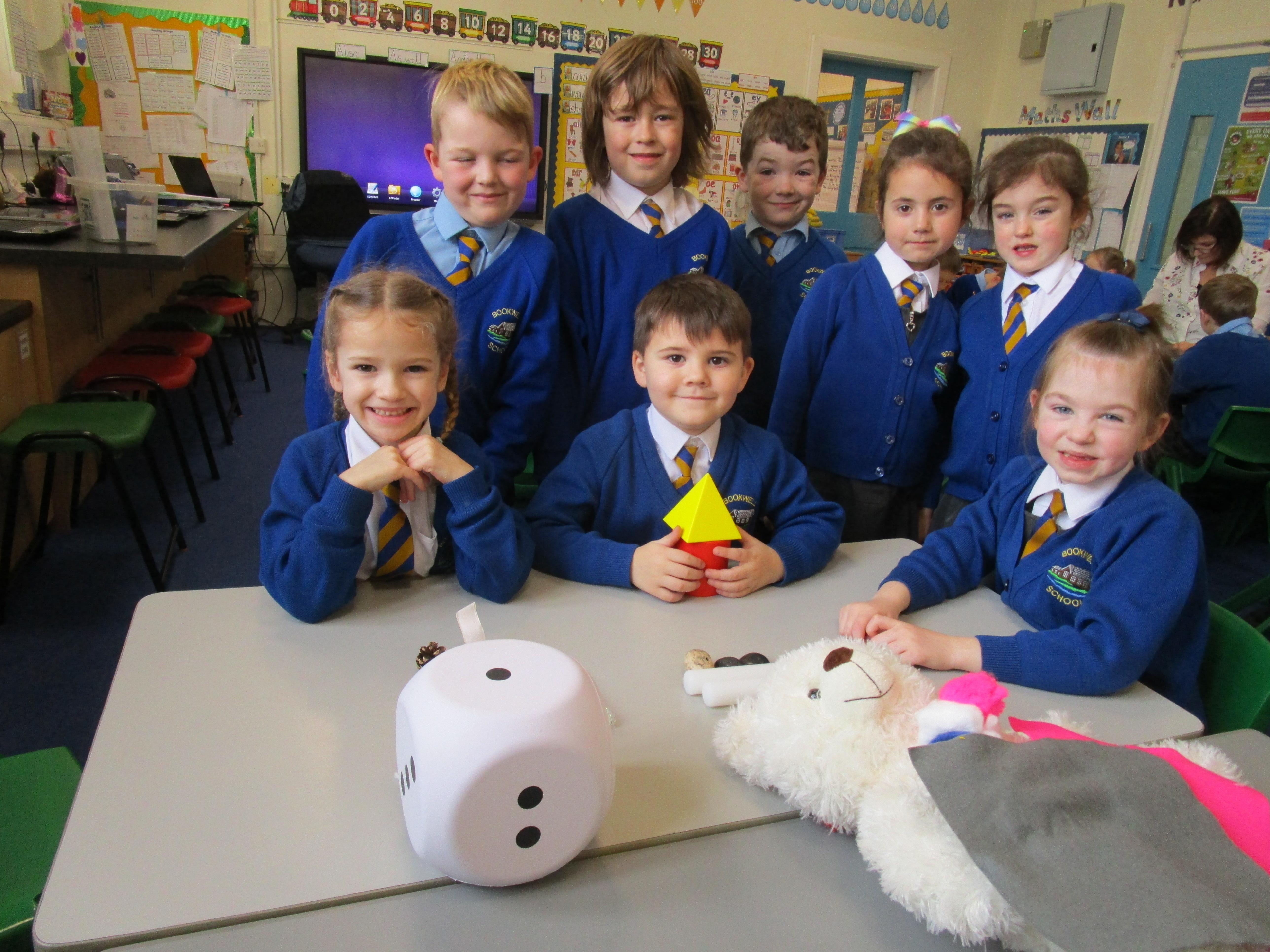 The children got the opportunity to go on a 3D shape hunt around school today. They were shocked by just how many 3D shapes there actually are in our environment.
