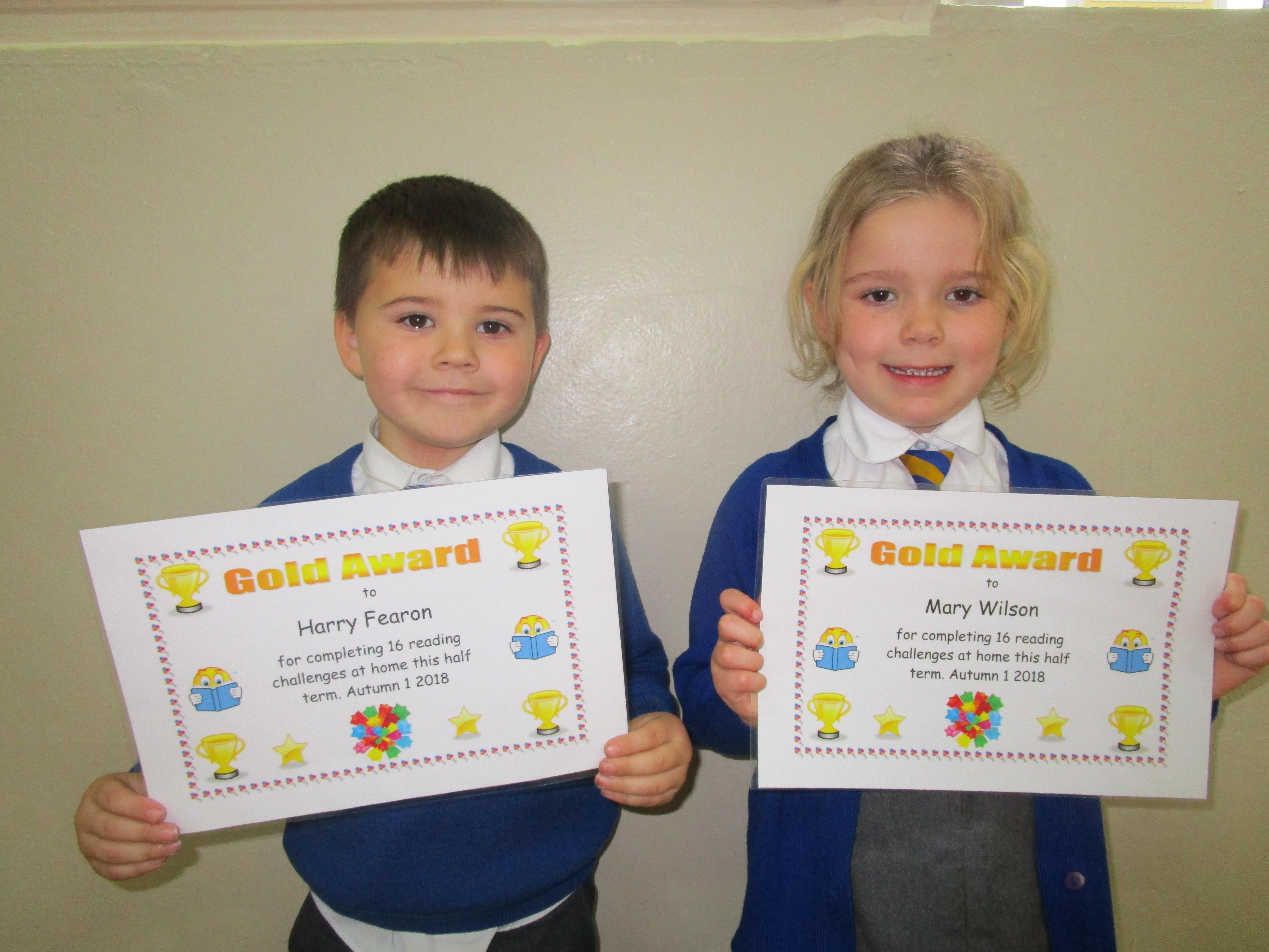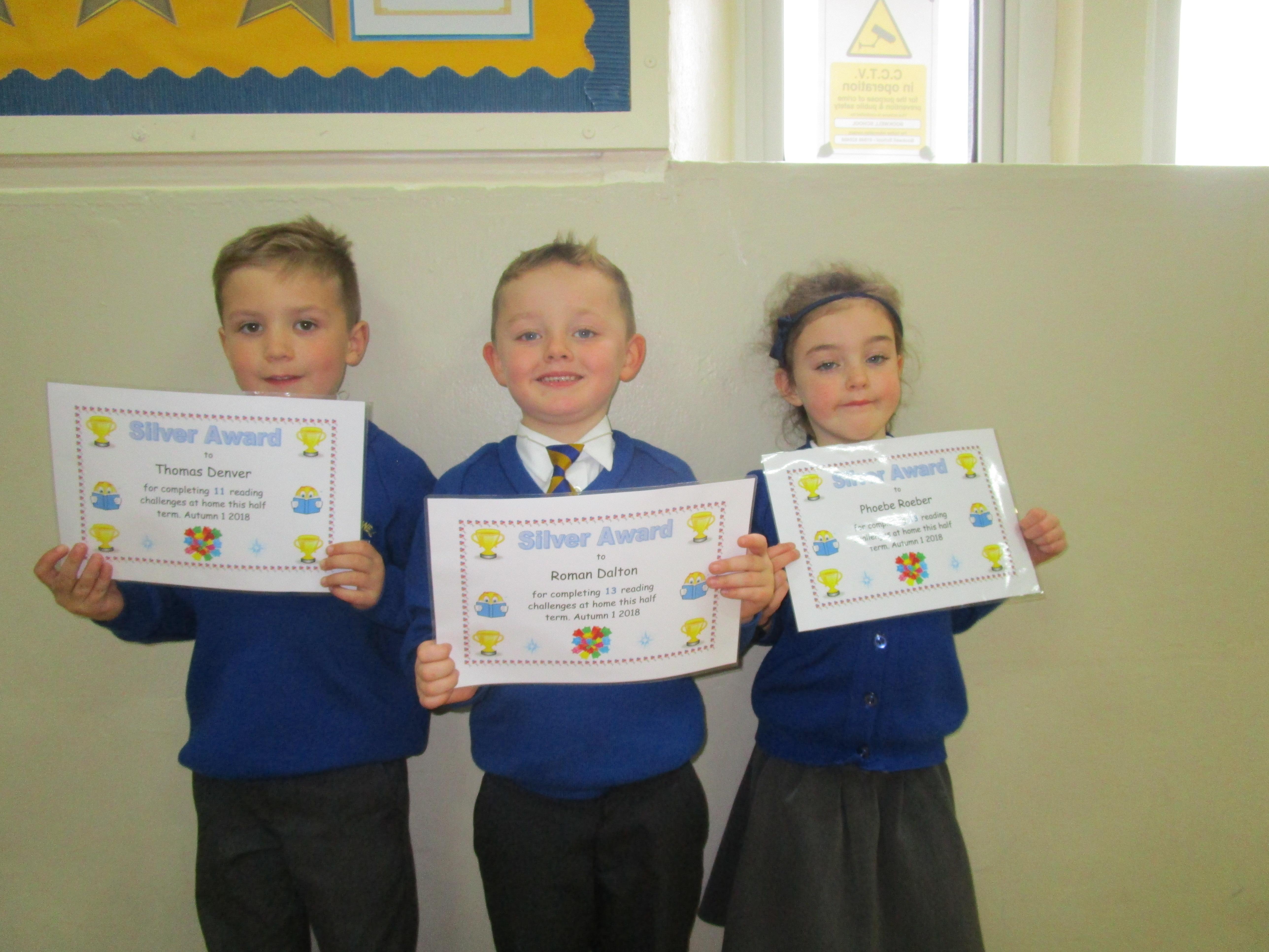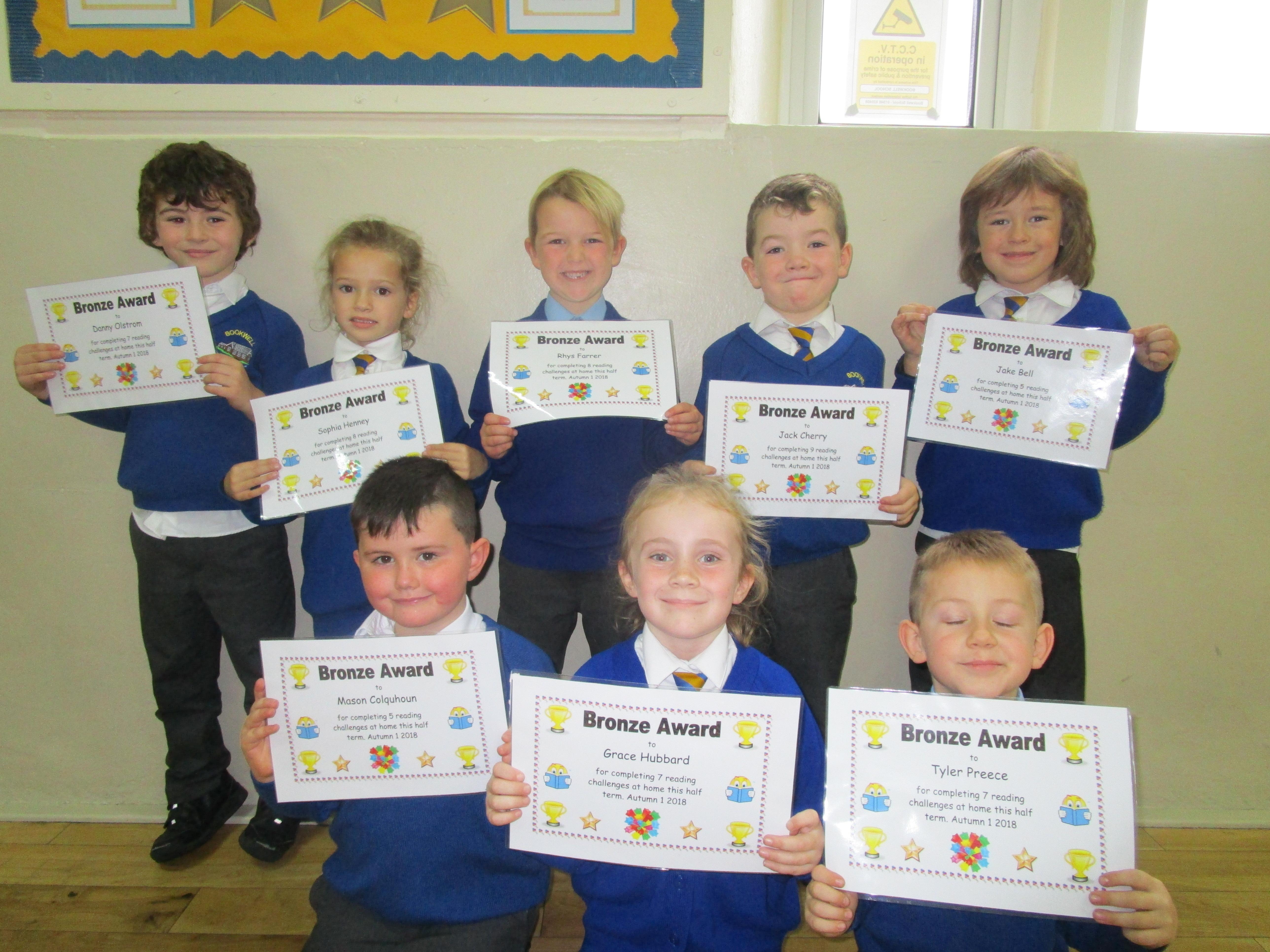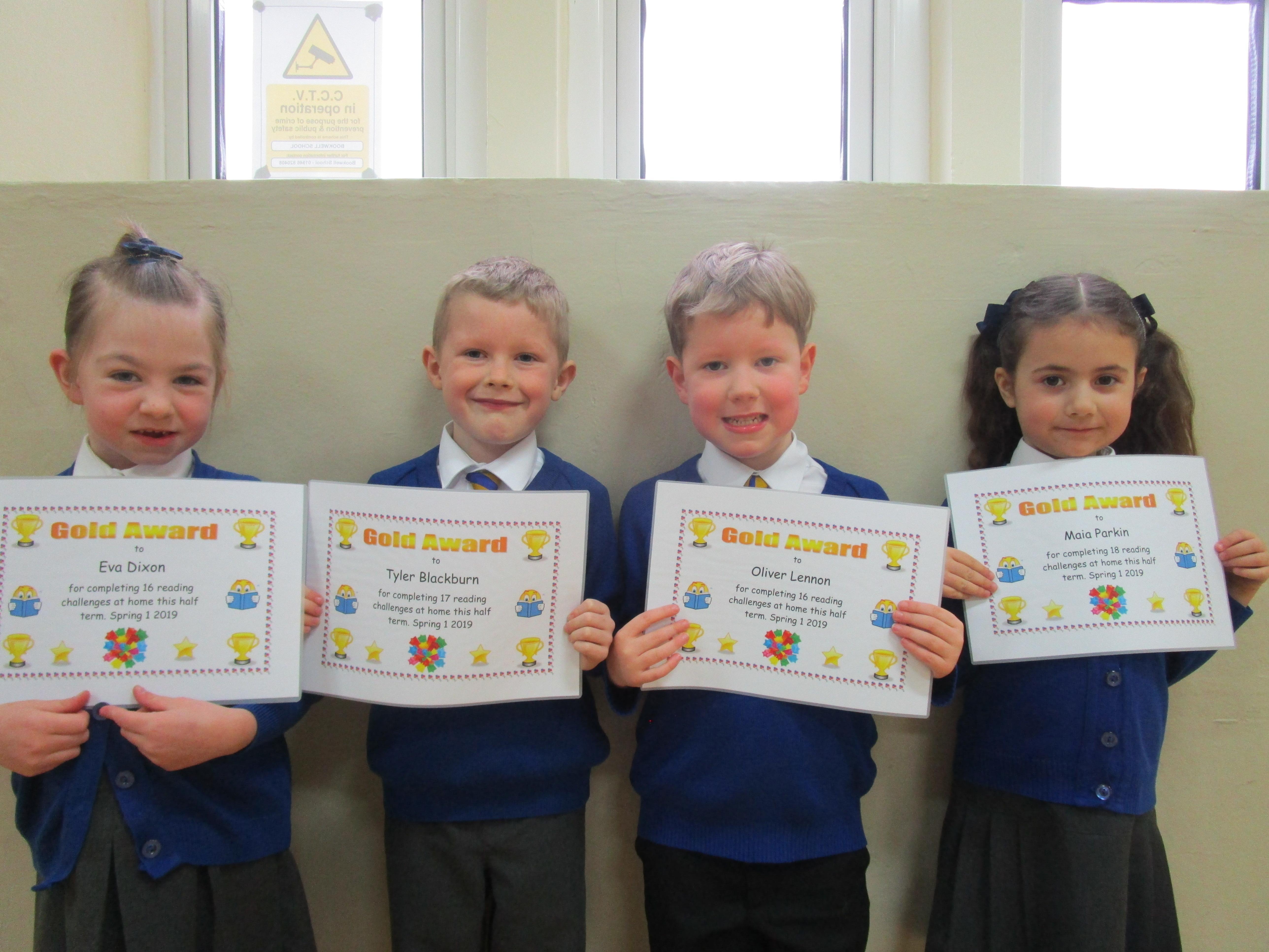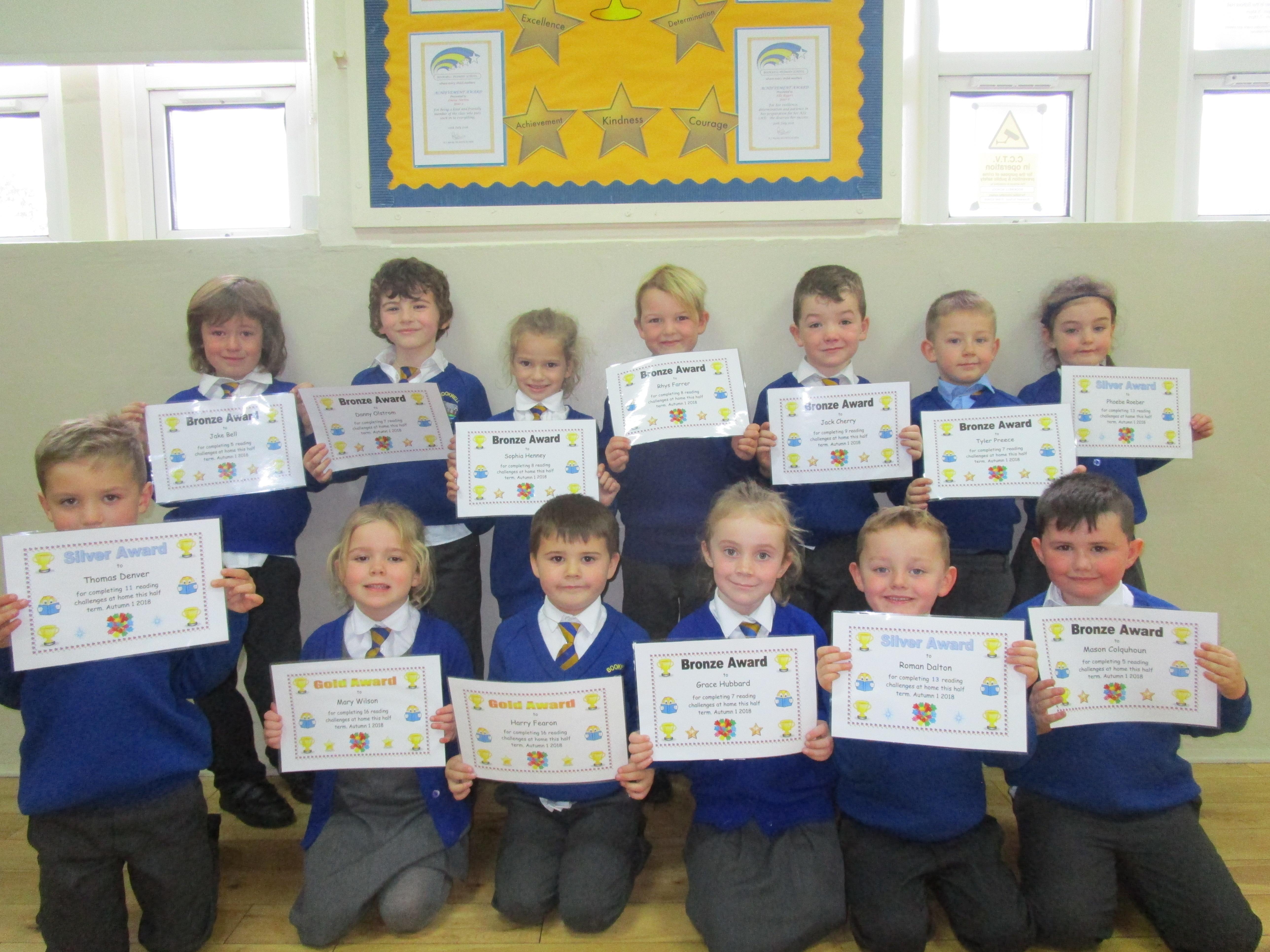 Each half-term Year 1 are set extra reading challenges to complete at home. Here are this half-term's Bronze, Silver and Gold certificate winners.