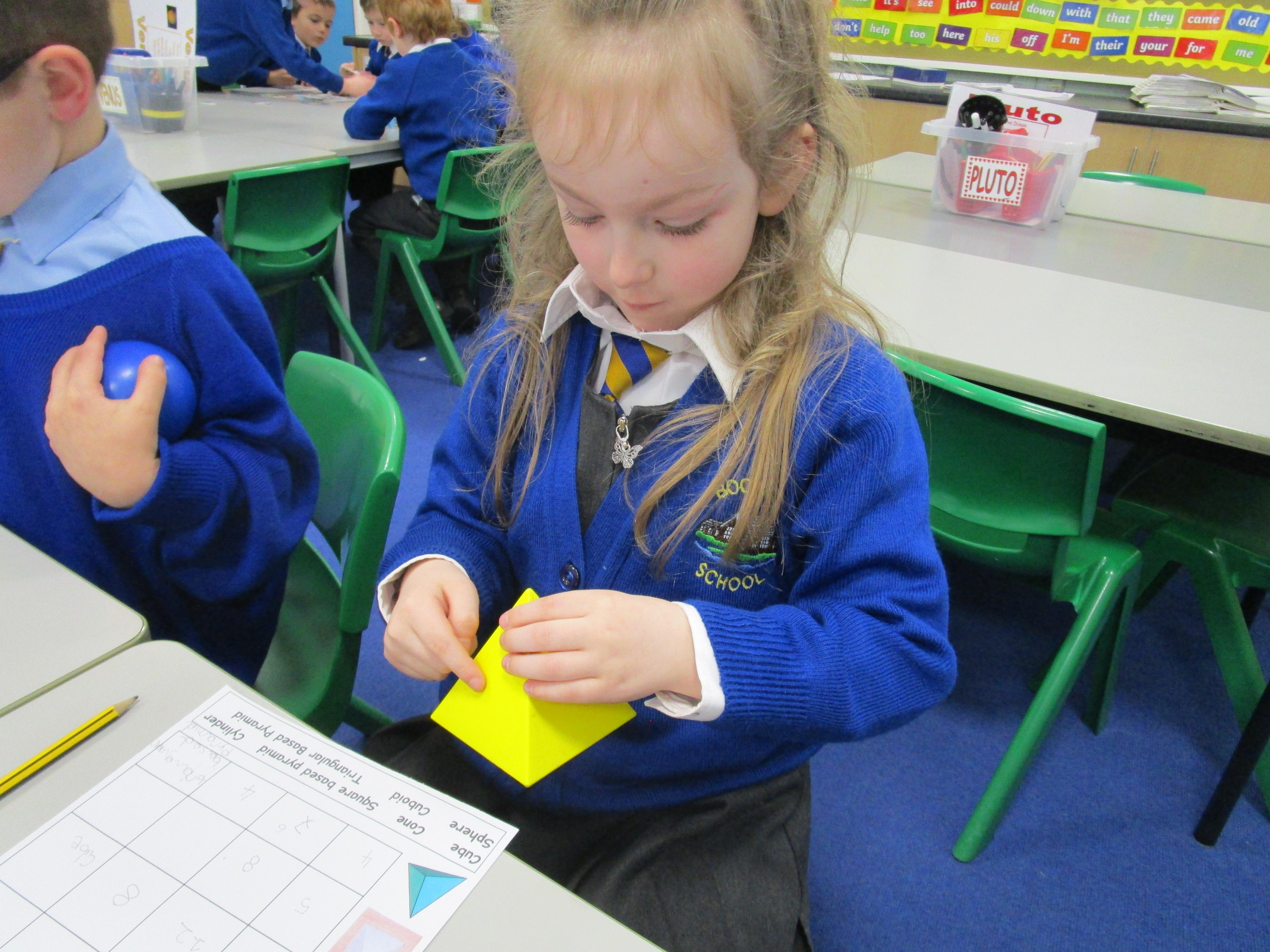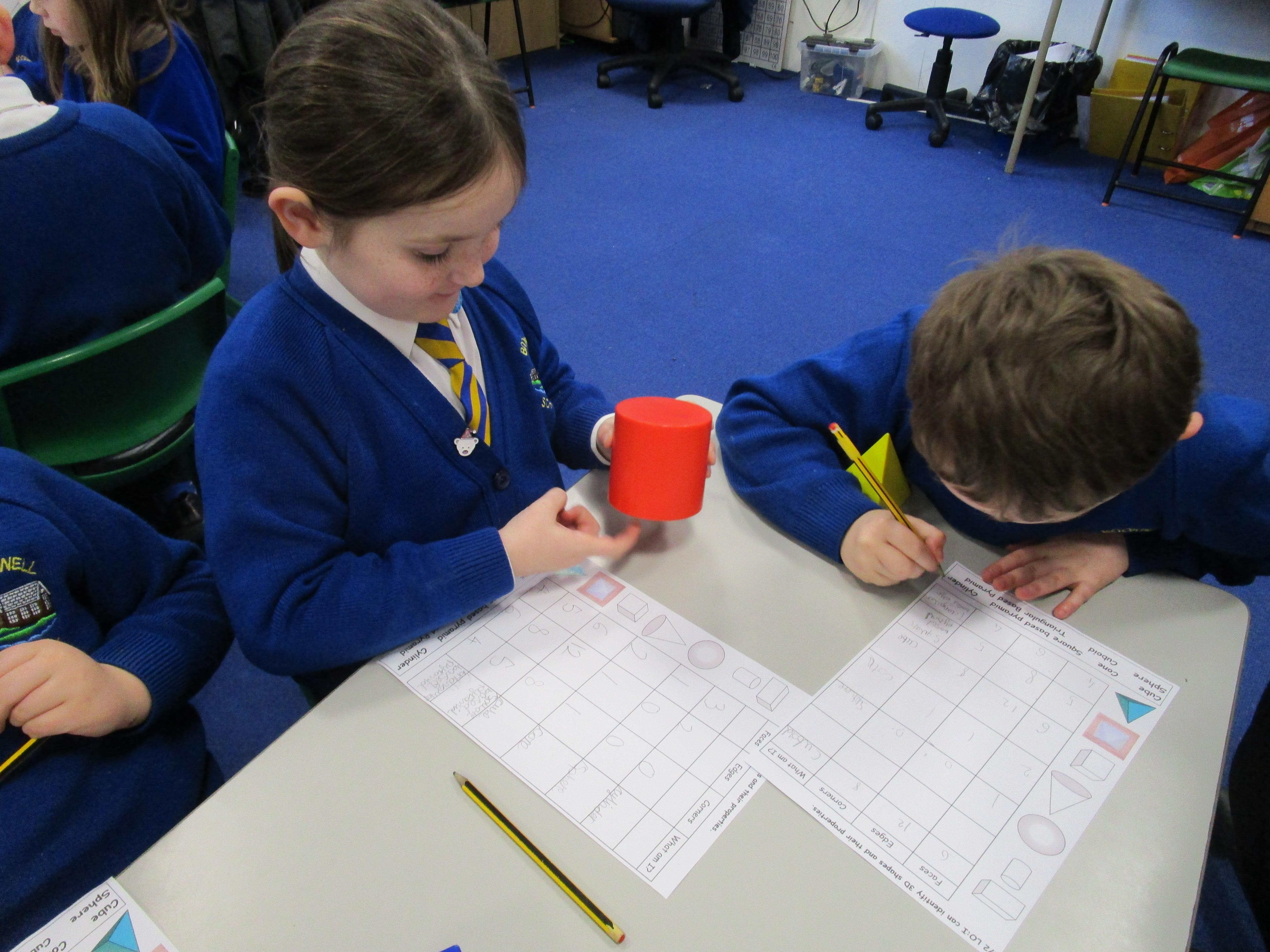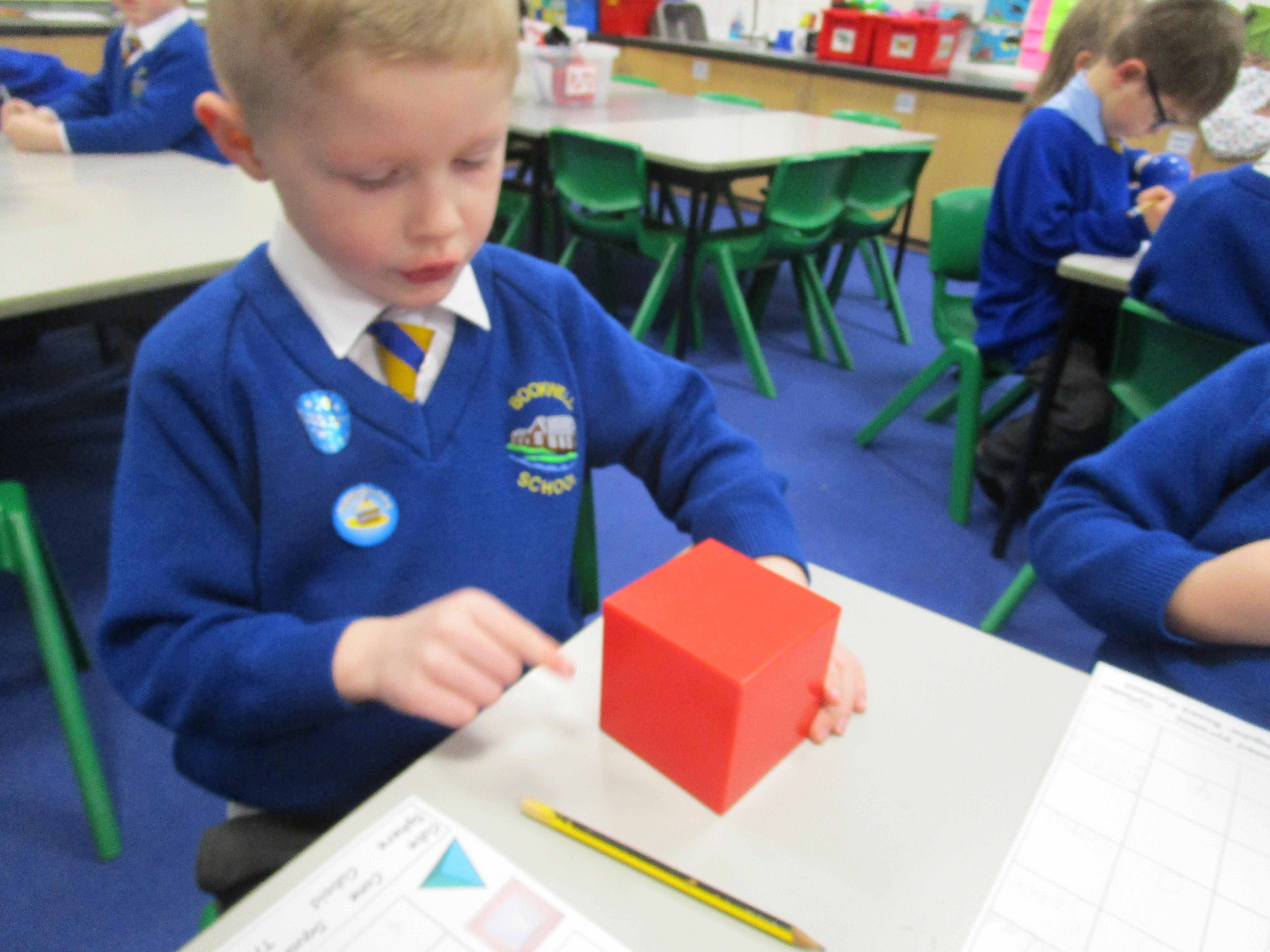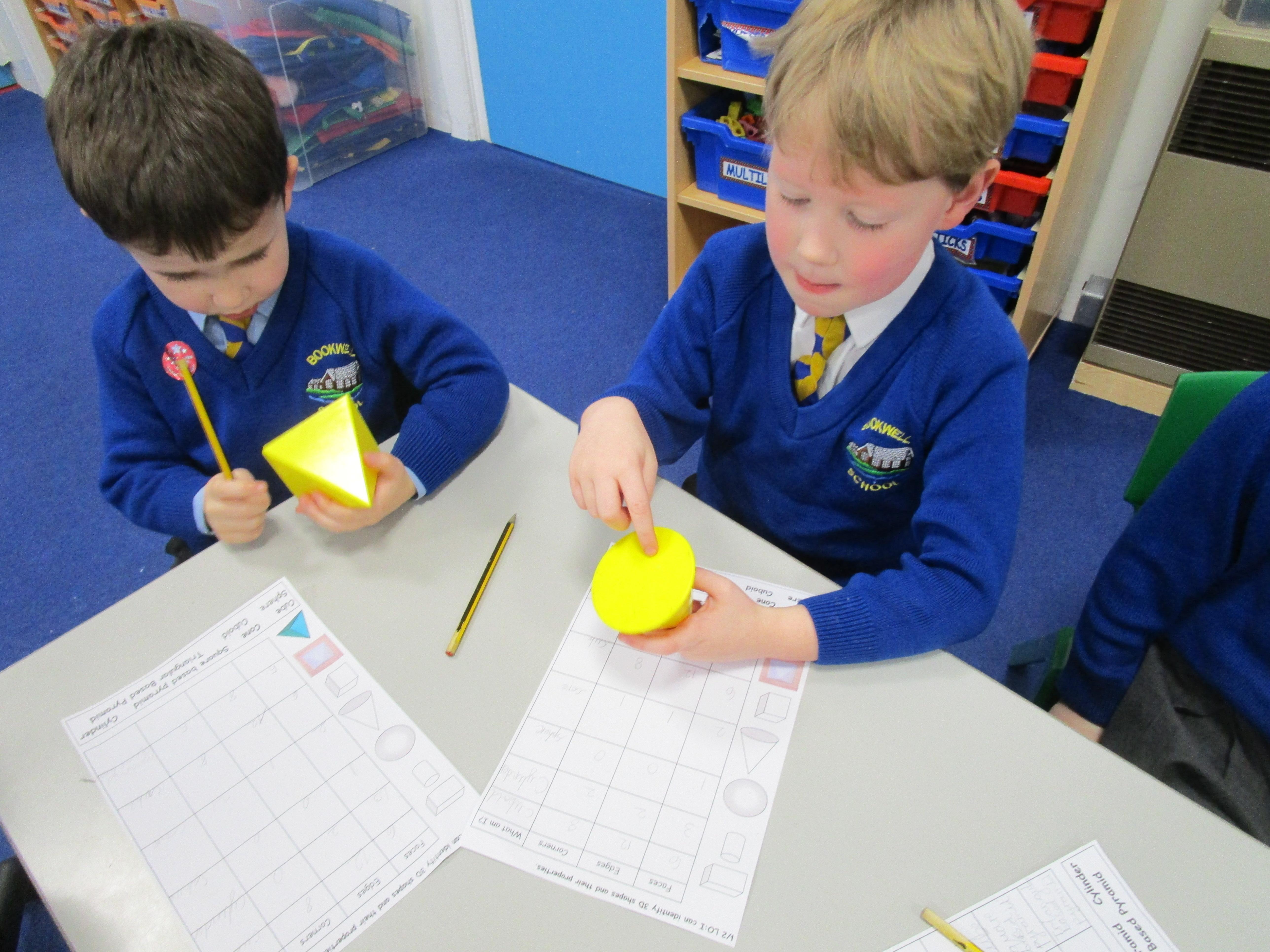Today the children have been learning about 3D shapes and were investigating how many corners, sides and faces each shape has.