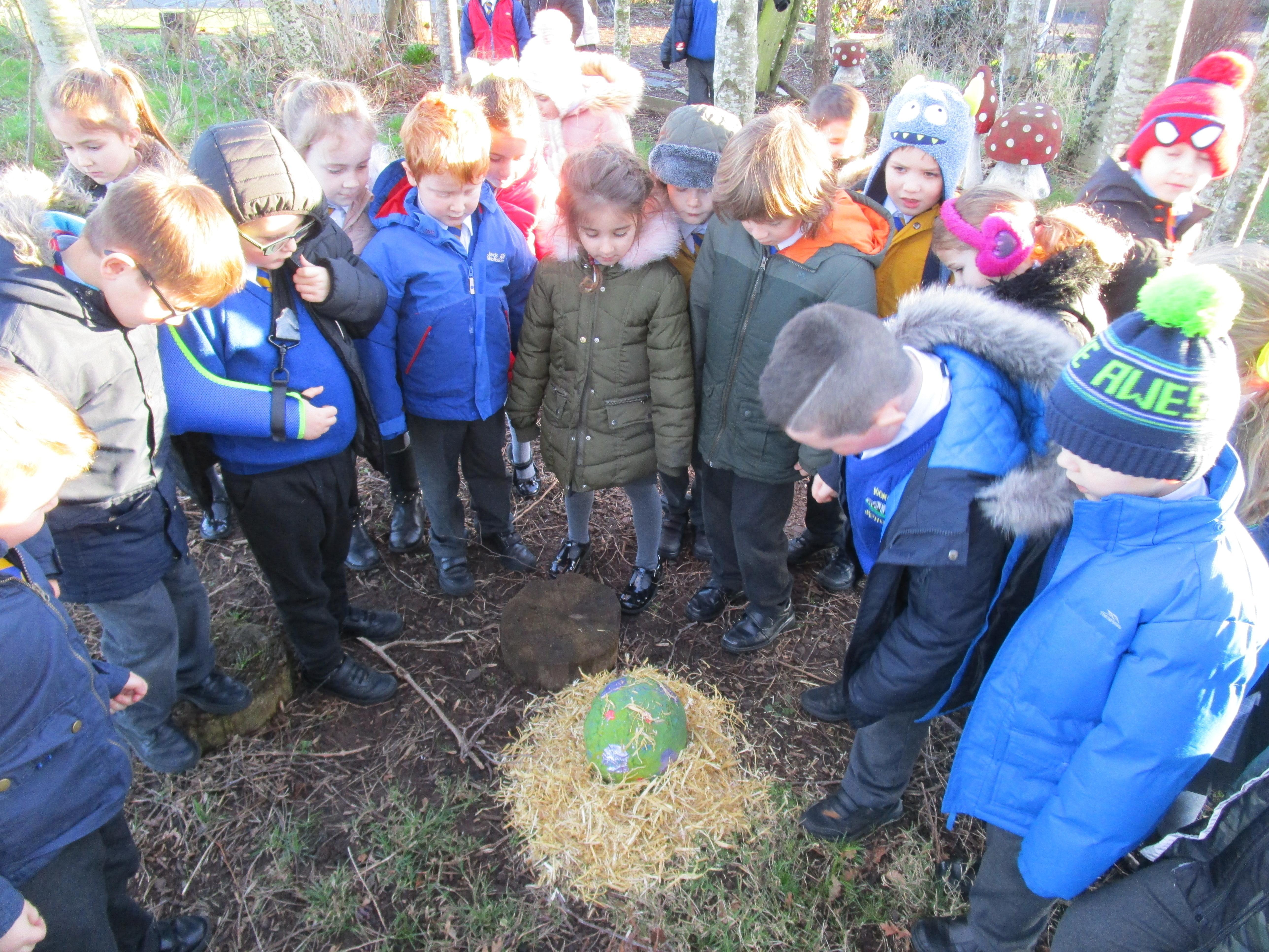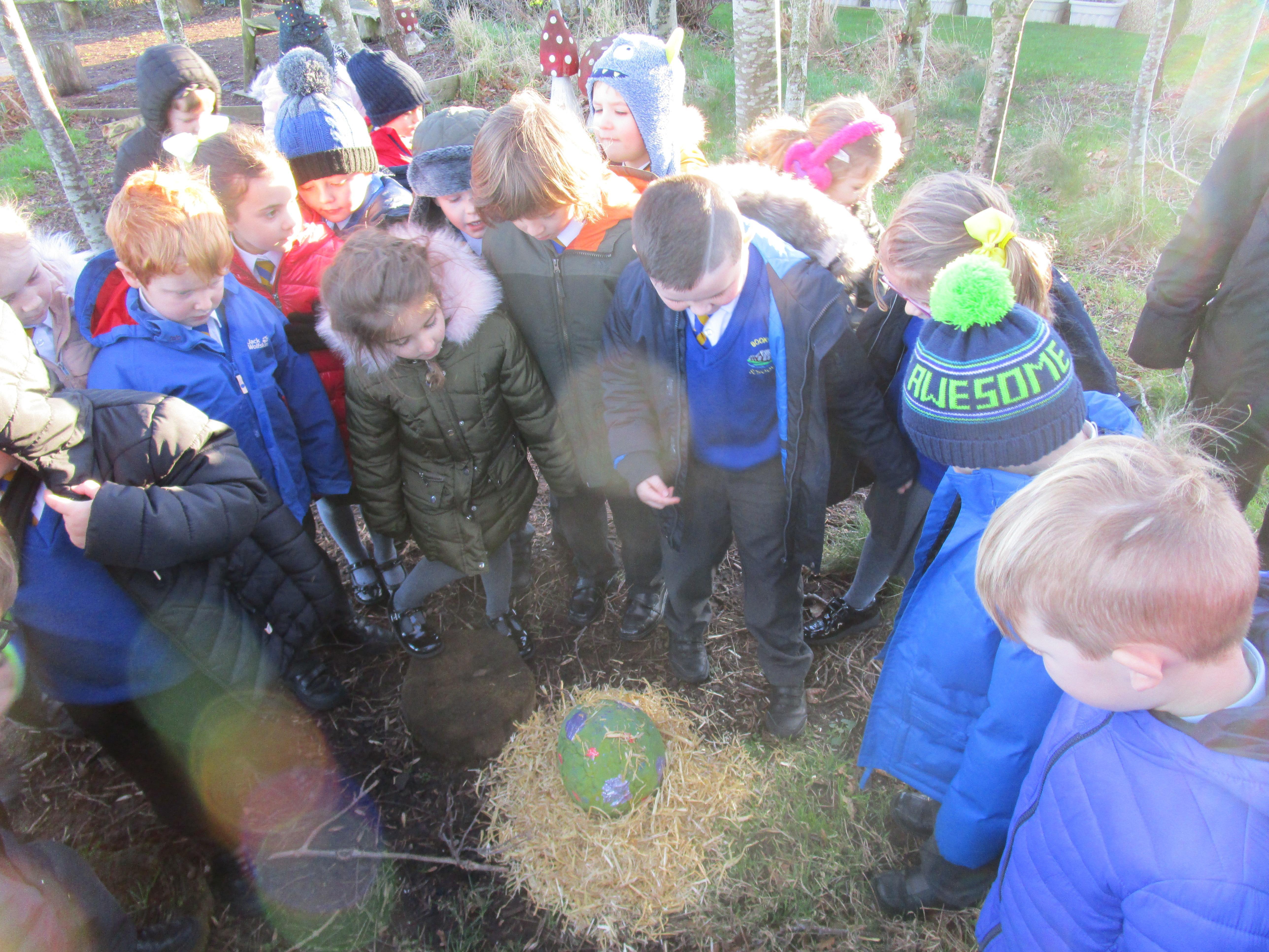 Today the children found some podberries in our school forest. This was unusual as we had just been reading about them in our class story, 'Bob and the Moontree'. The children had to decide whether we should open them or not and in the end it was decided that we should just leave them as there might be an alien inside and it could take over Egremont.