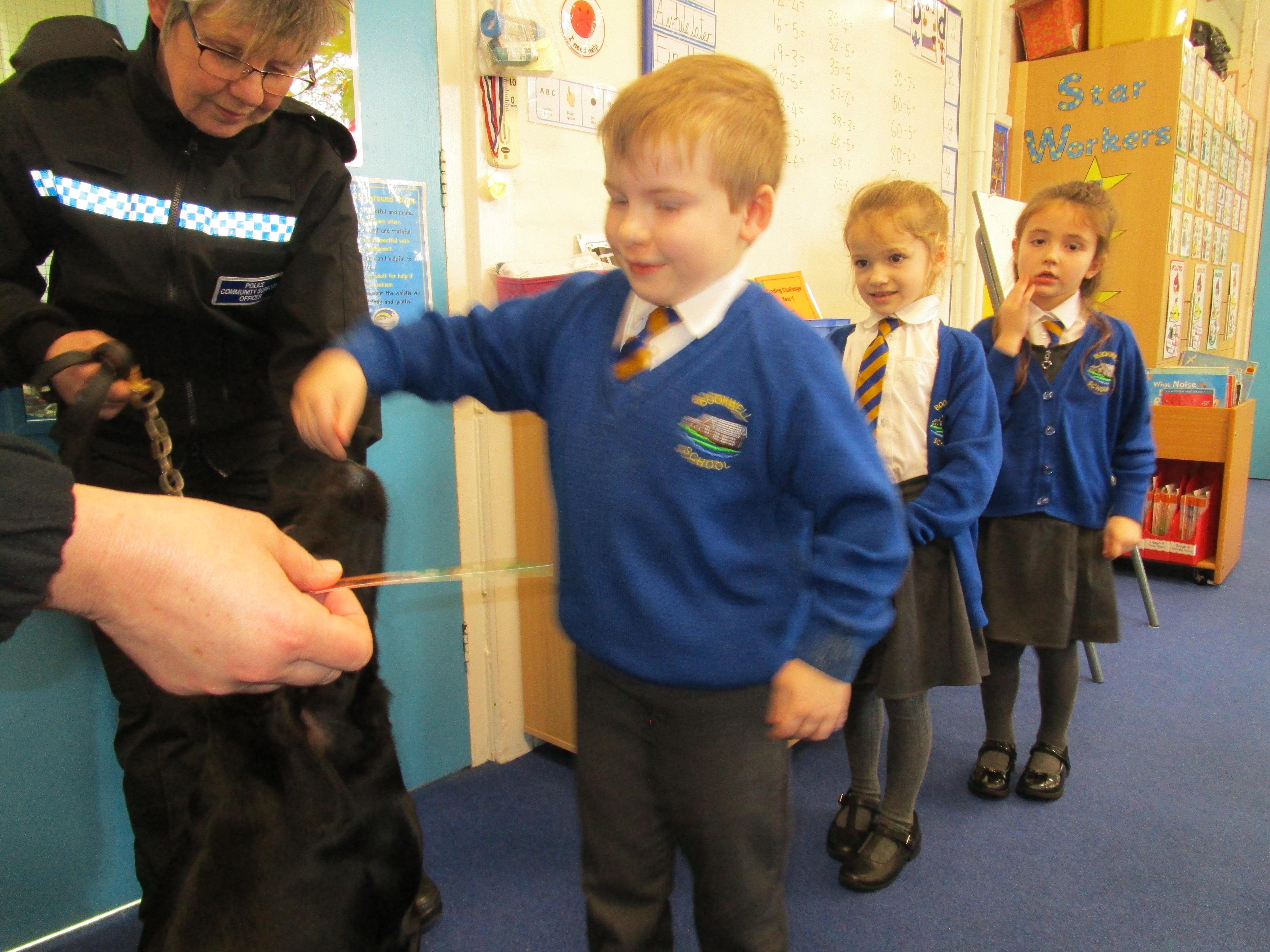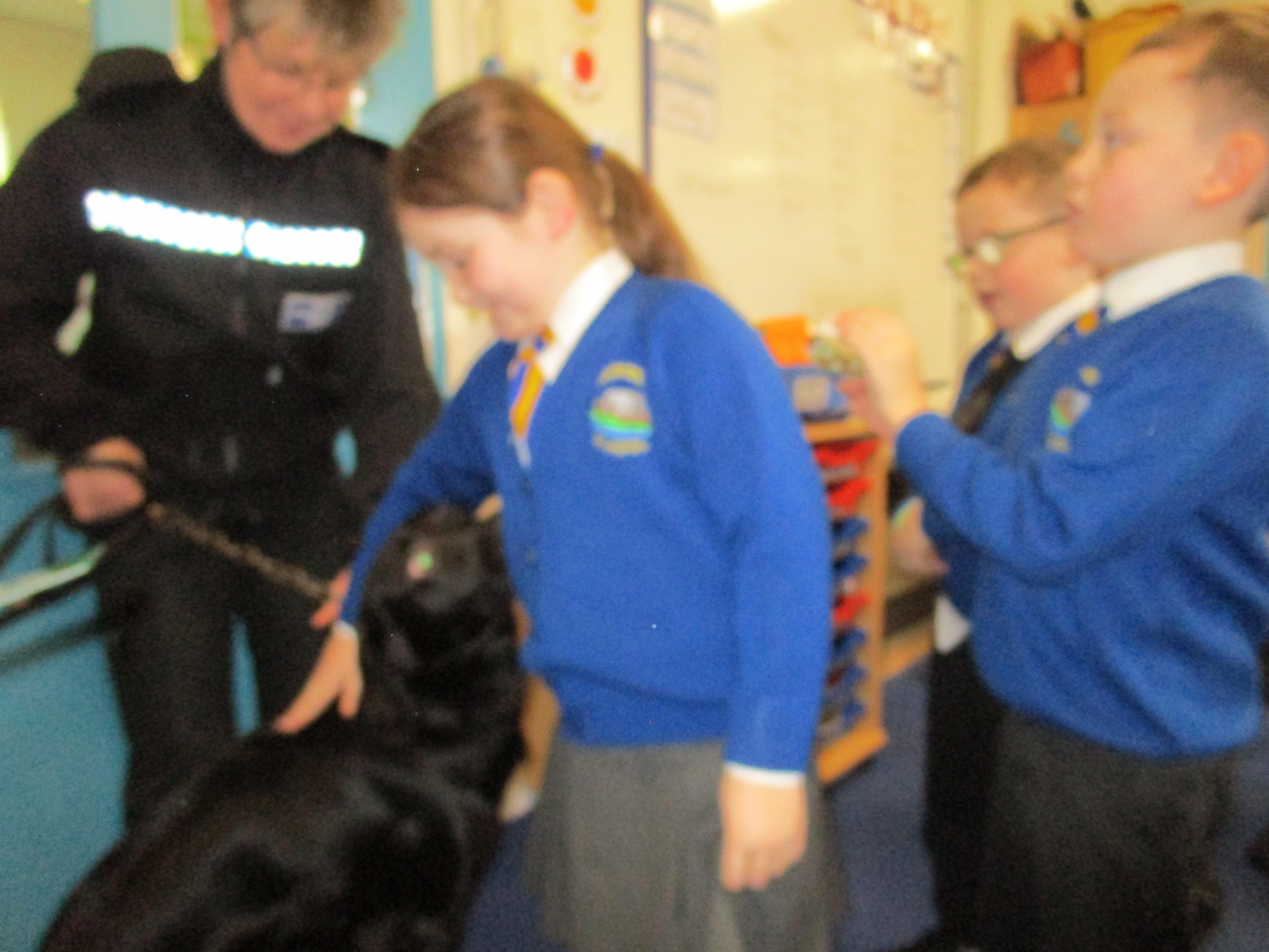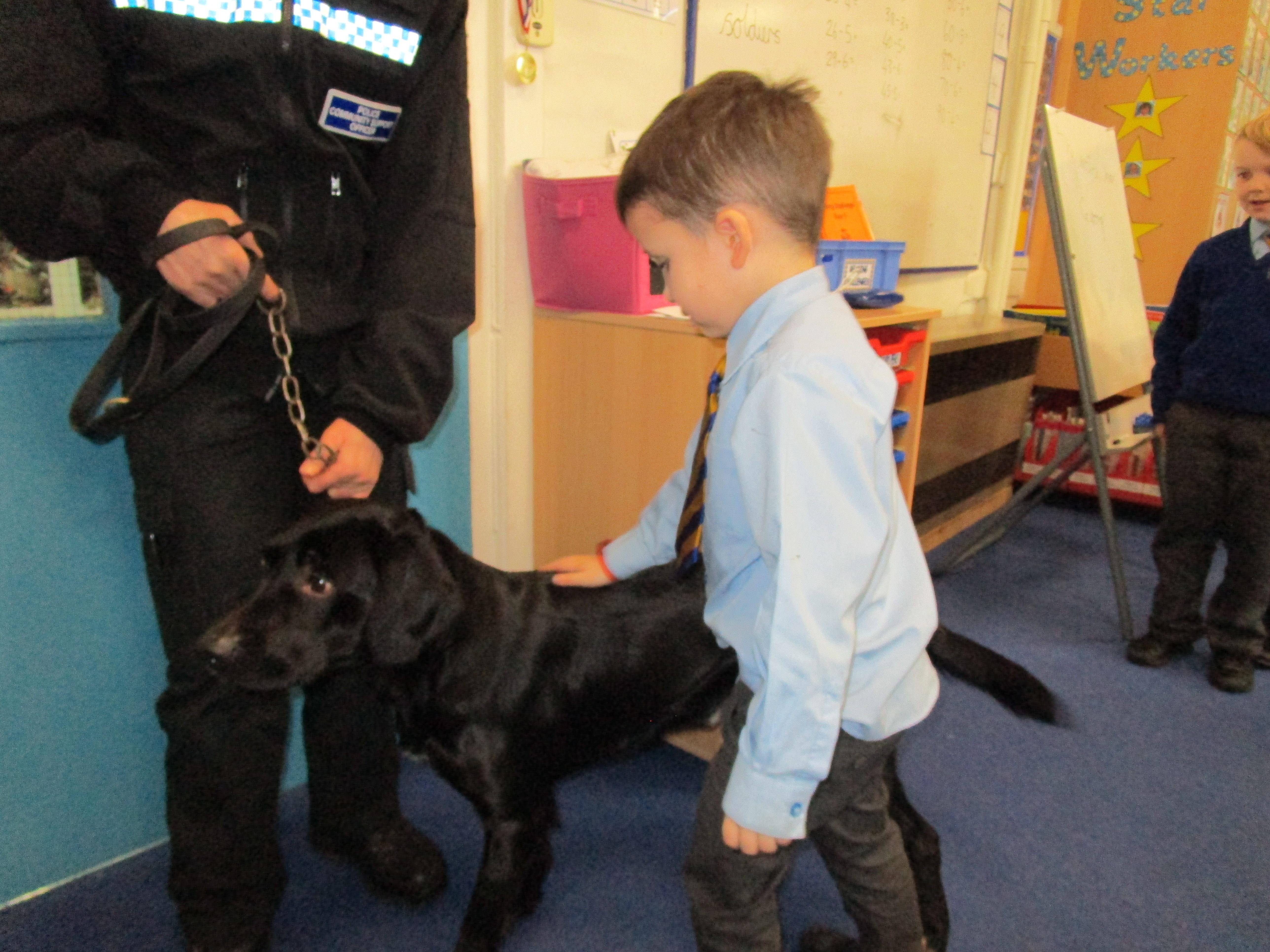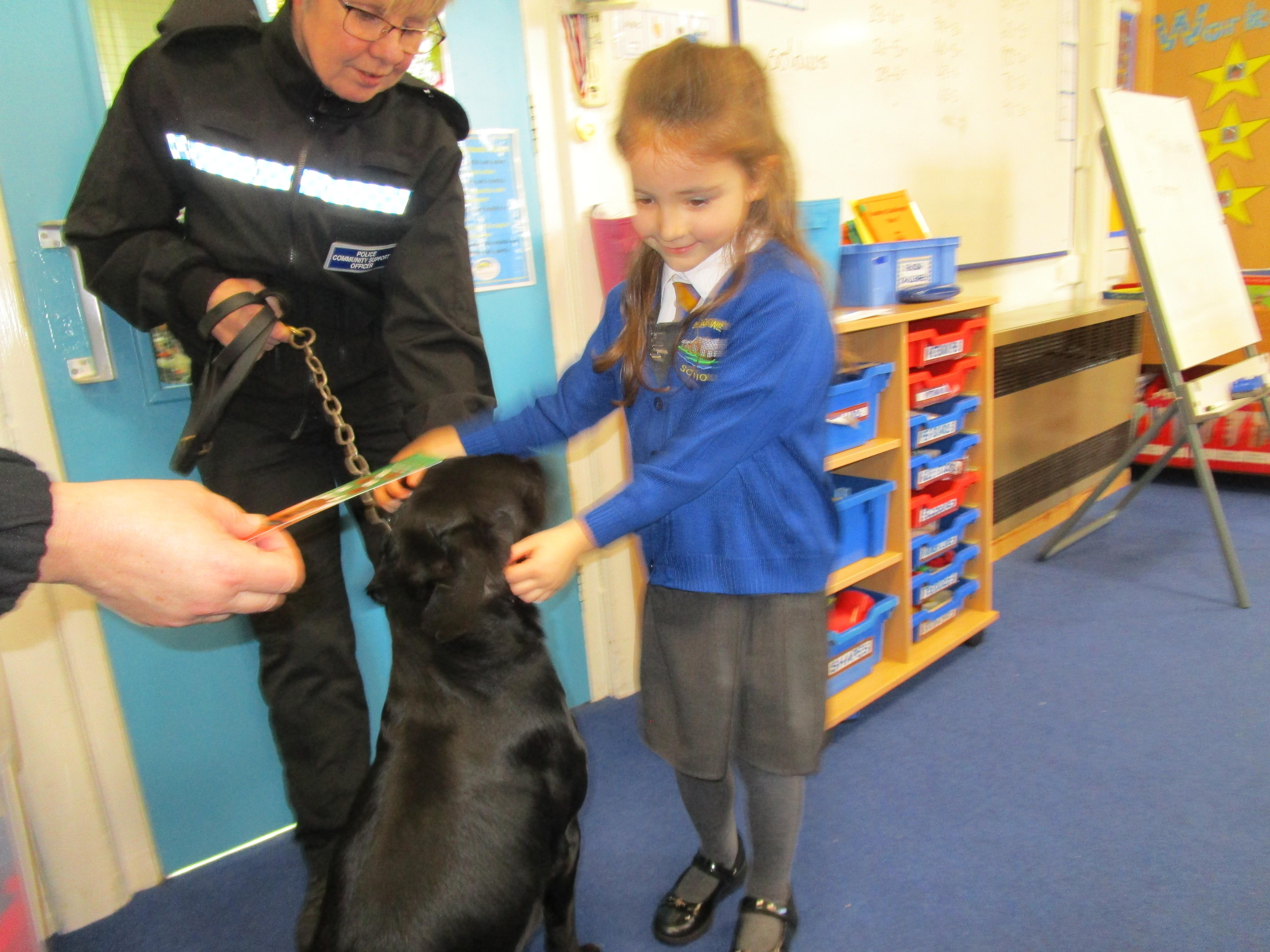 Today we were really lucky as we were visited by some PCSO's and they brought their police dog to meet the children.