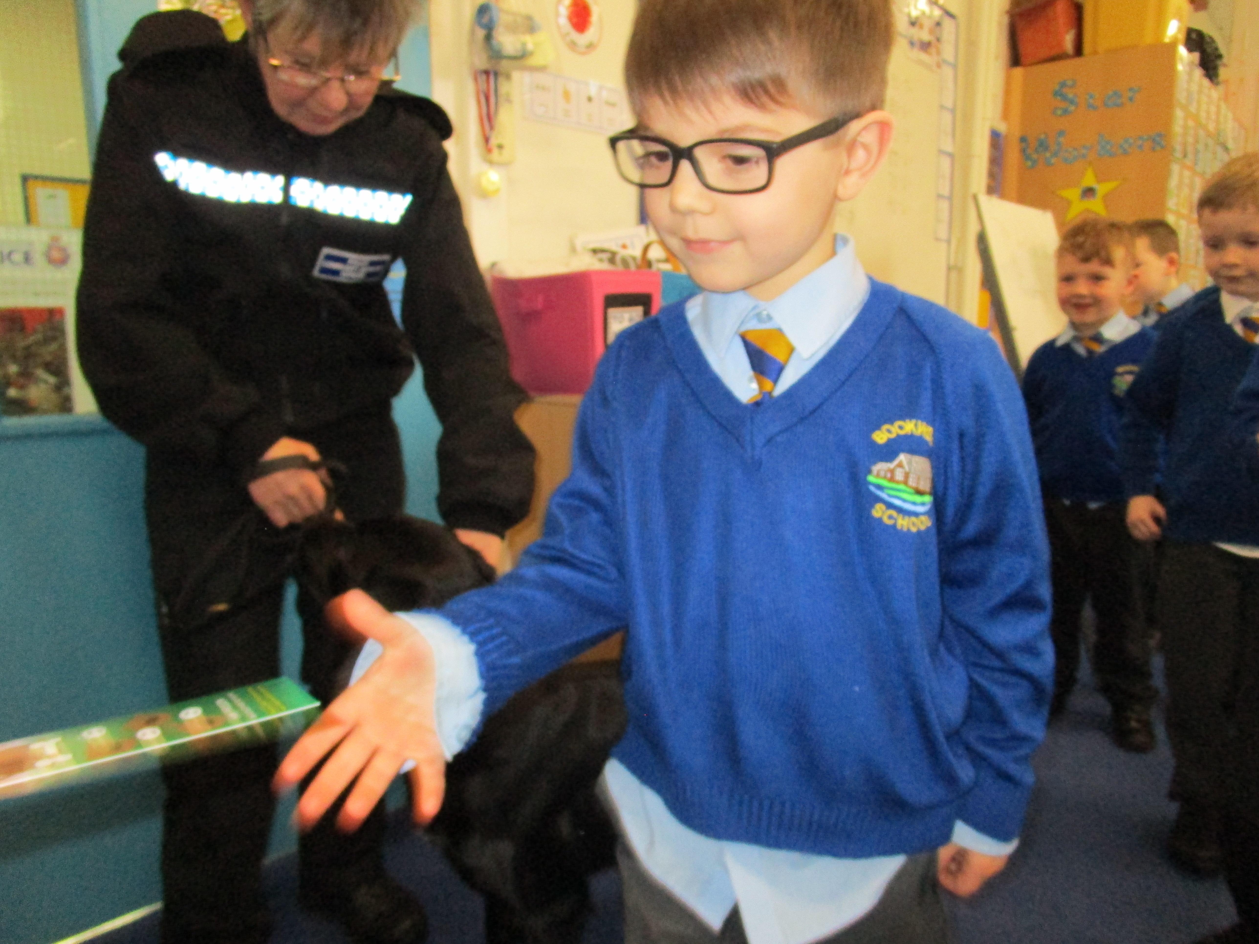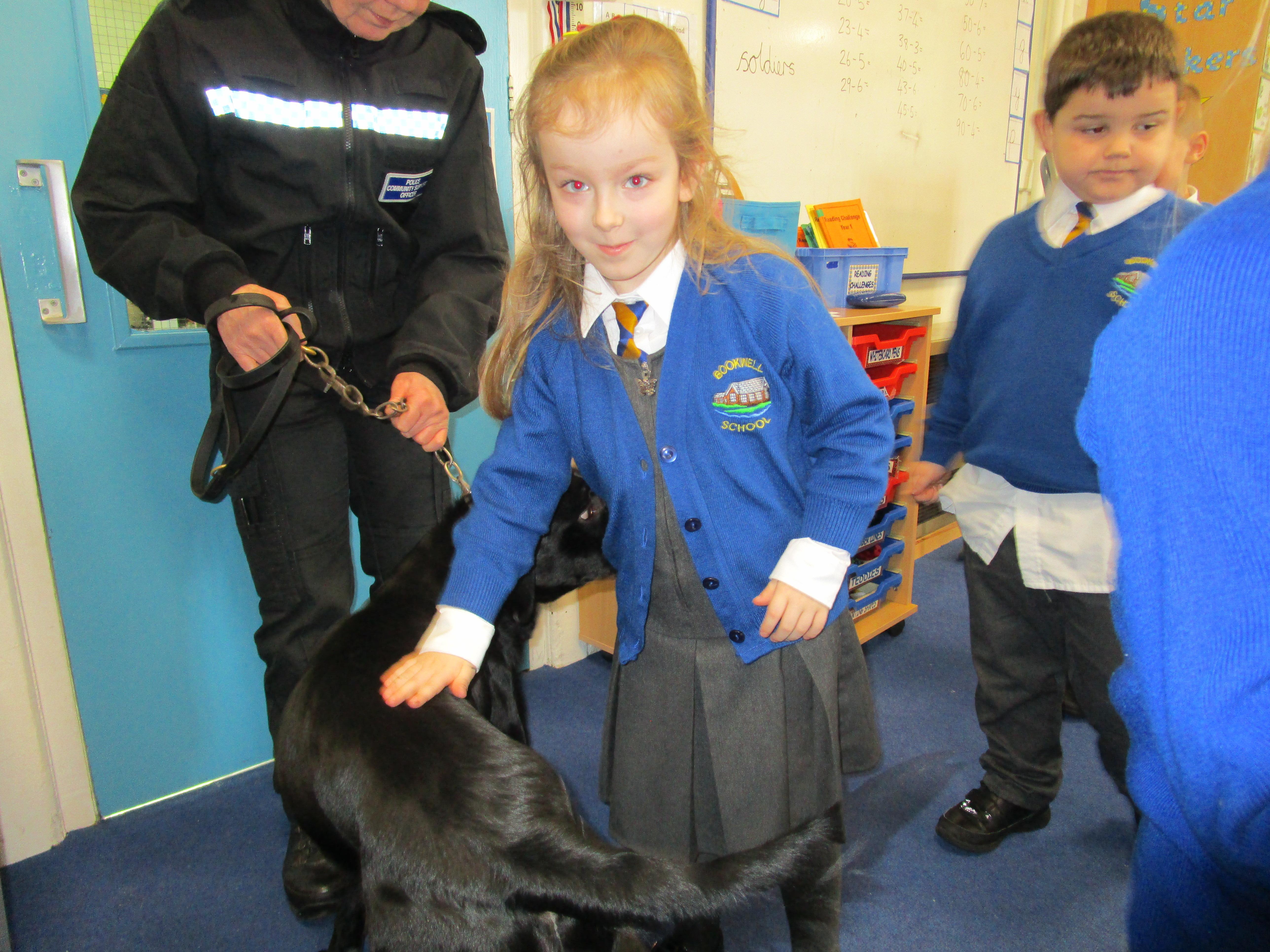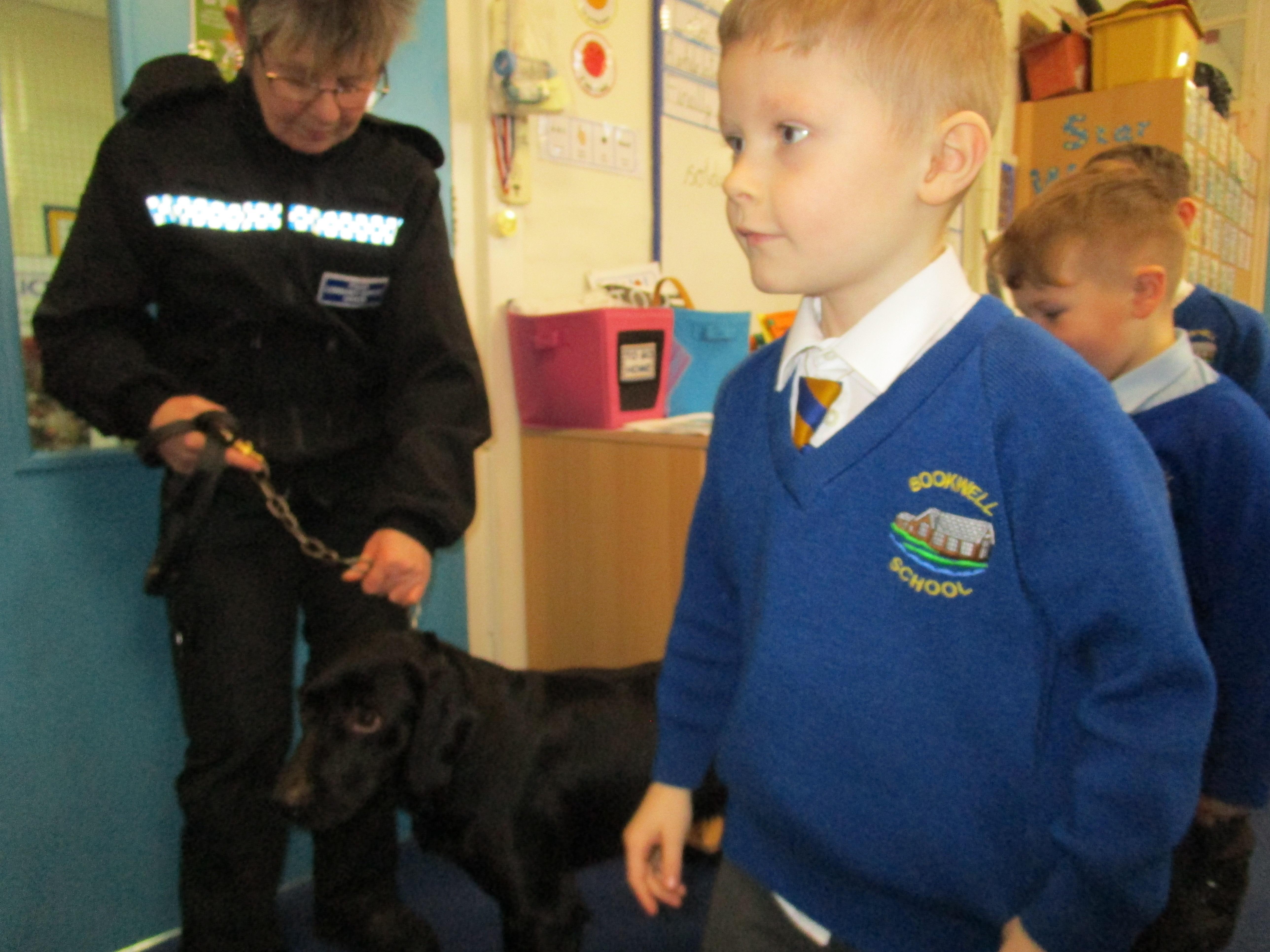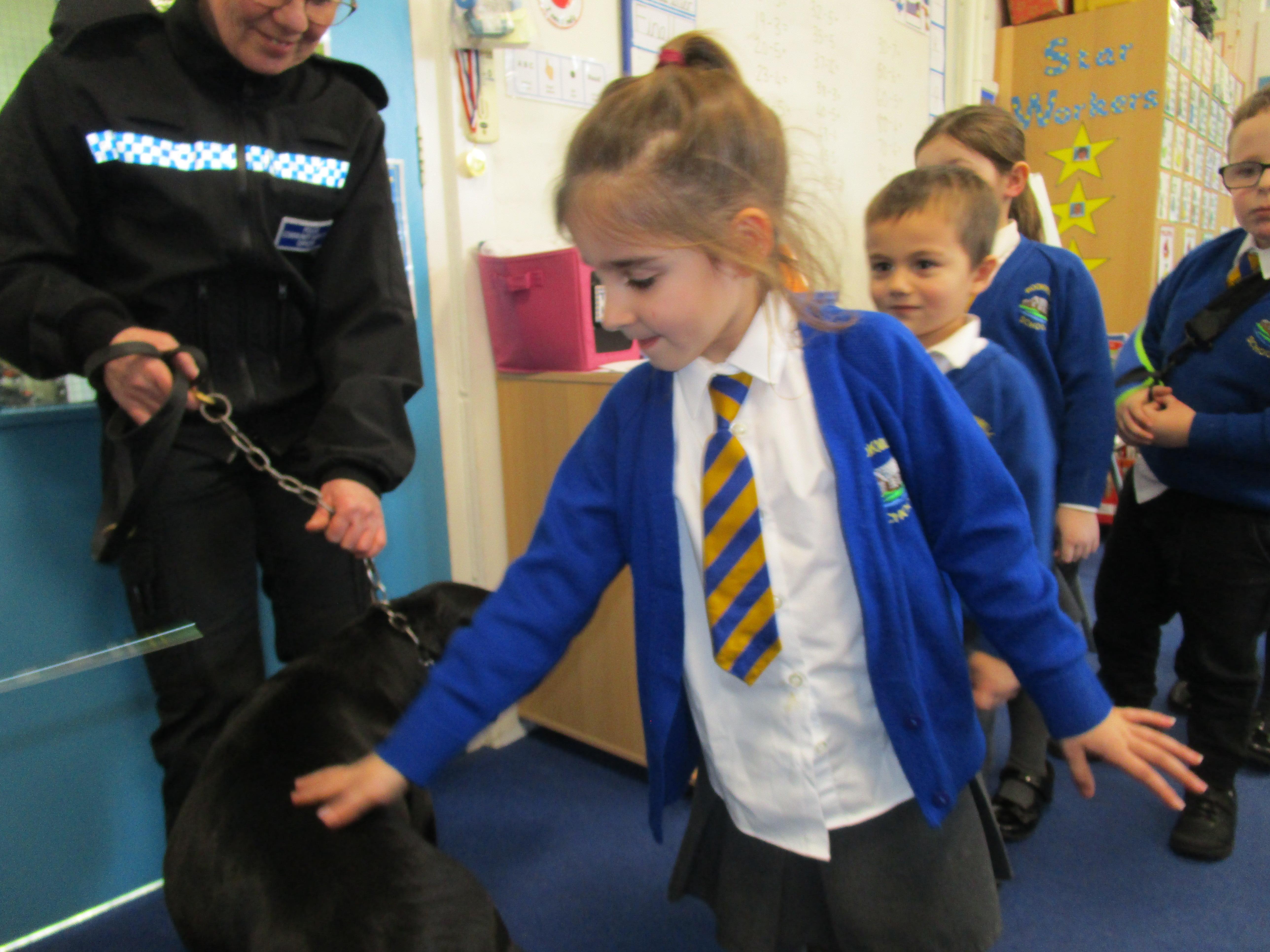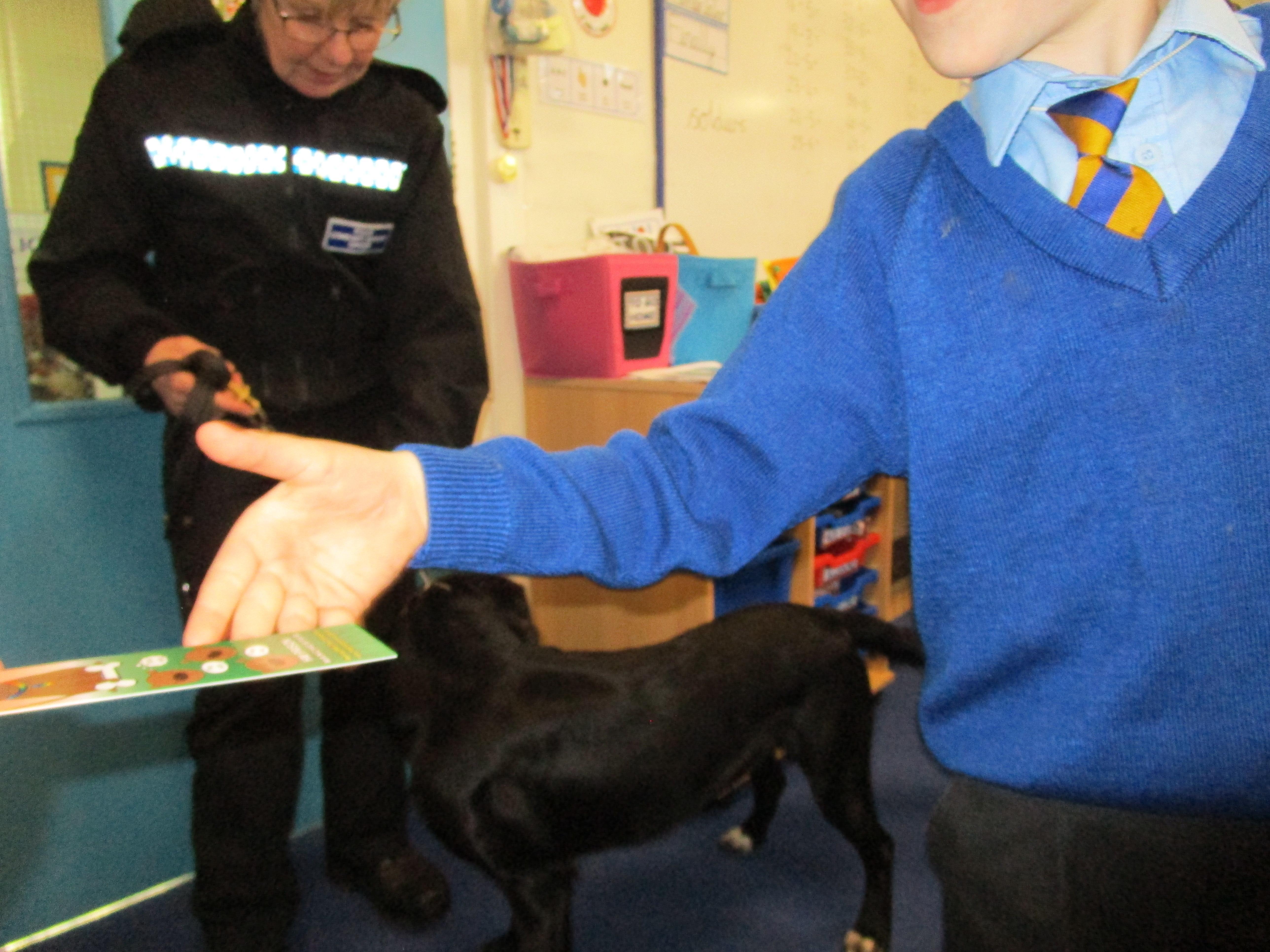 Today we were really lucky as we were visited by some PCSO's and they brought their police dog to meet the children.