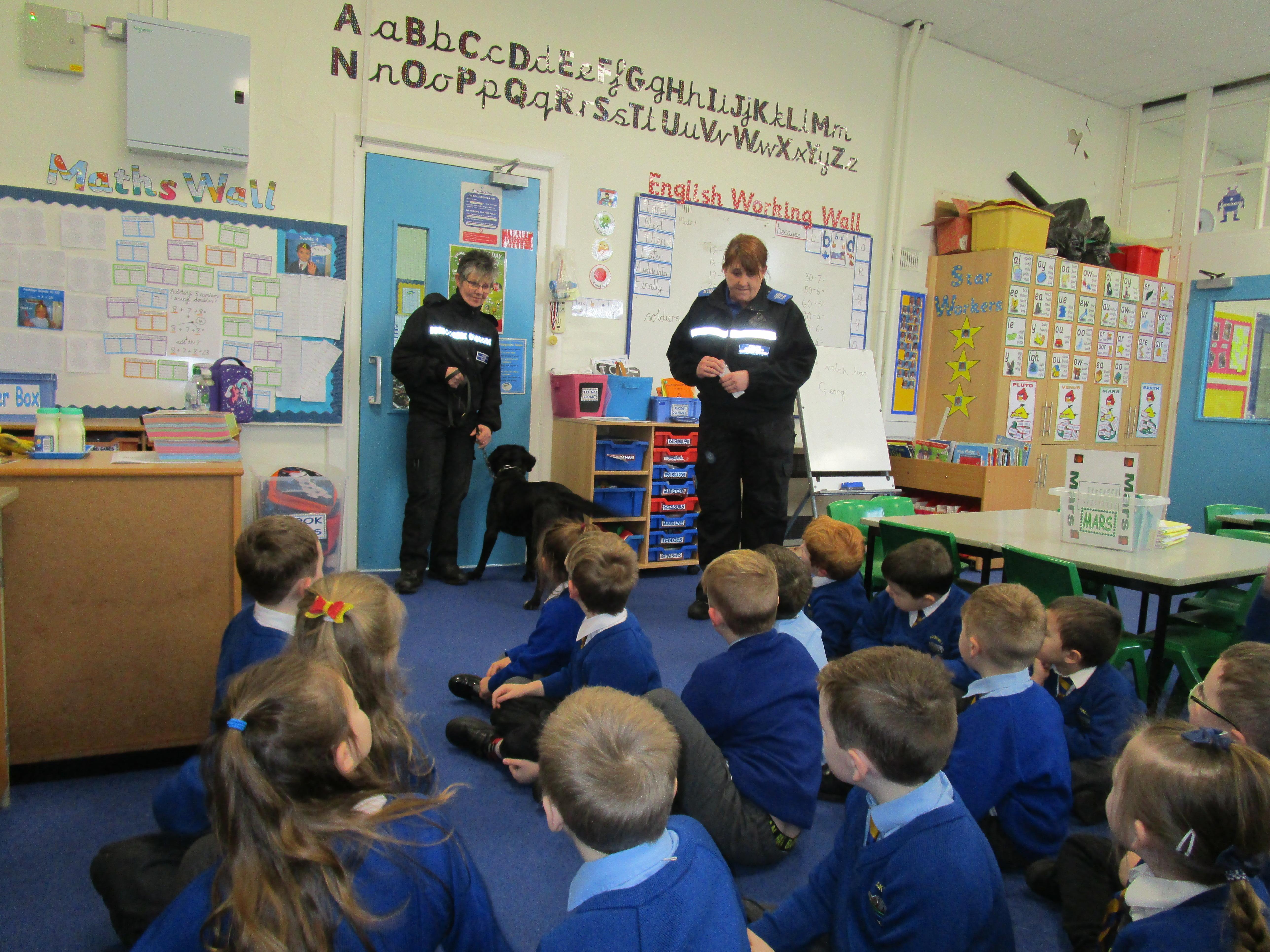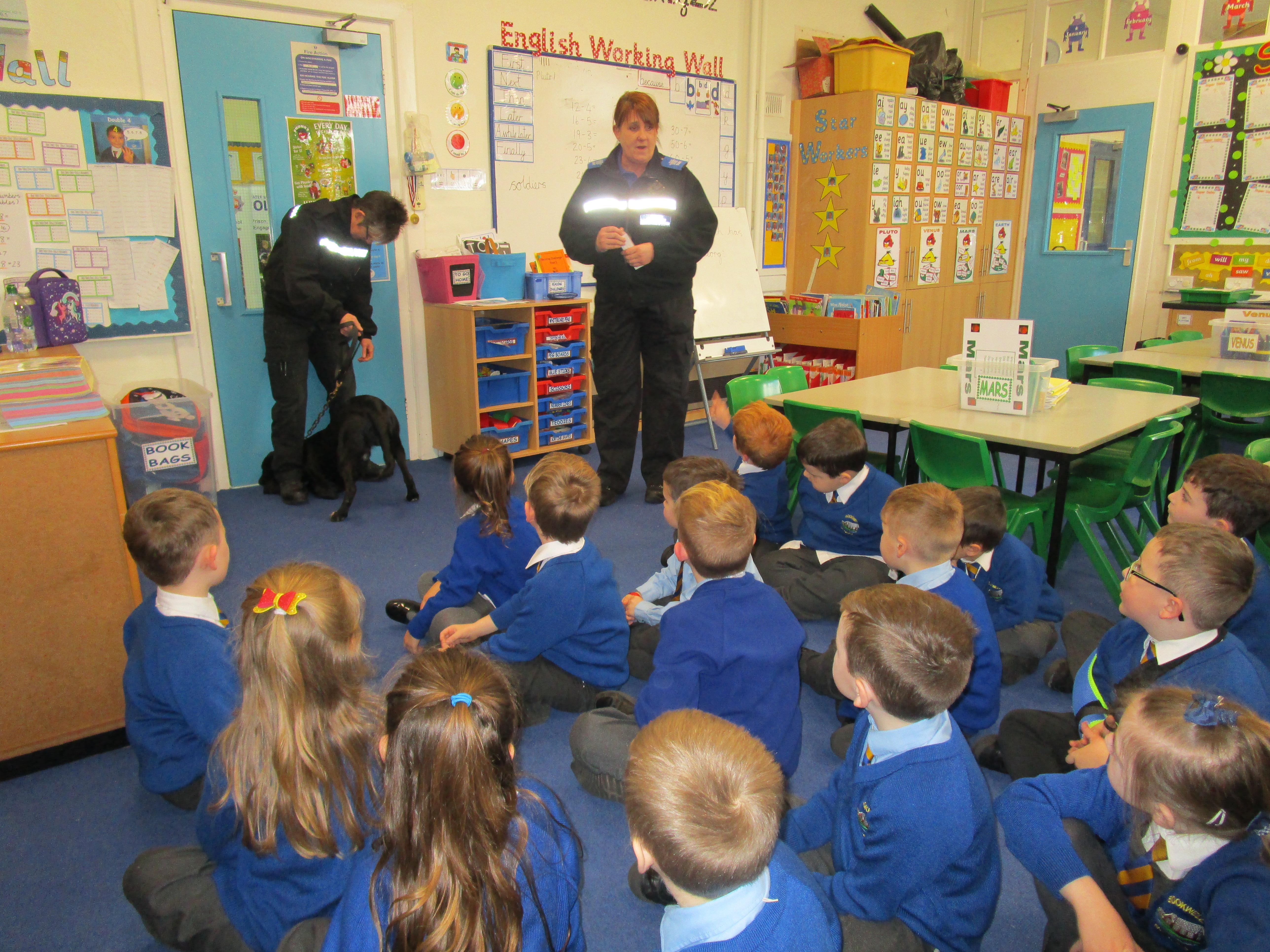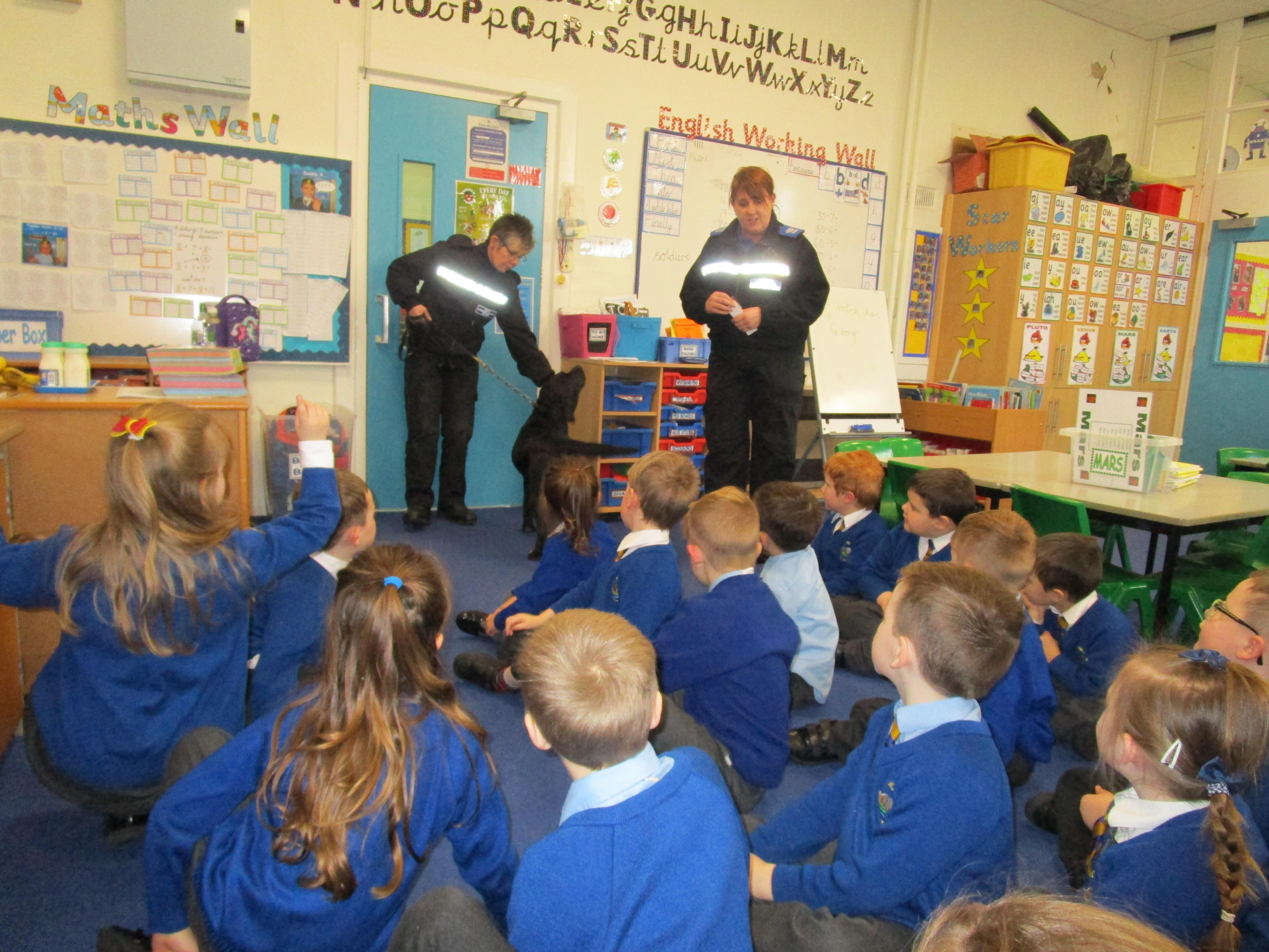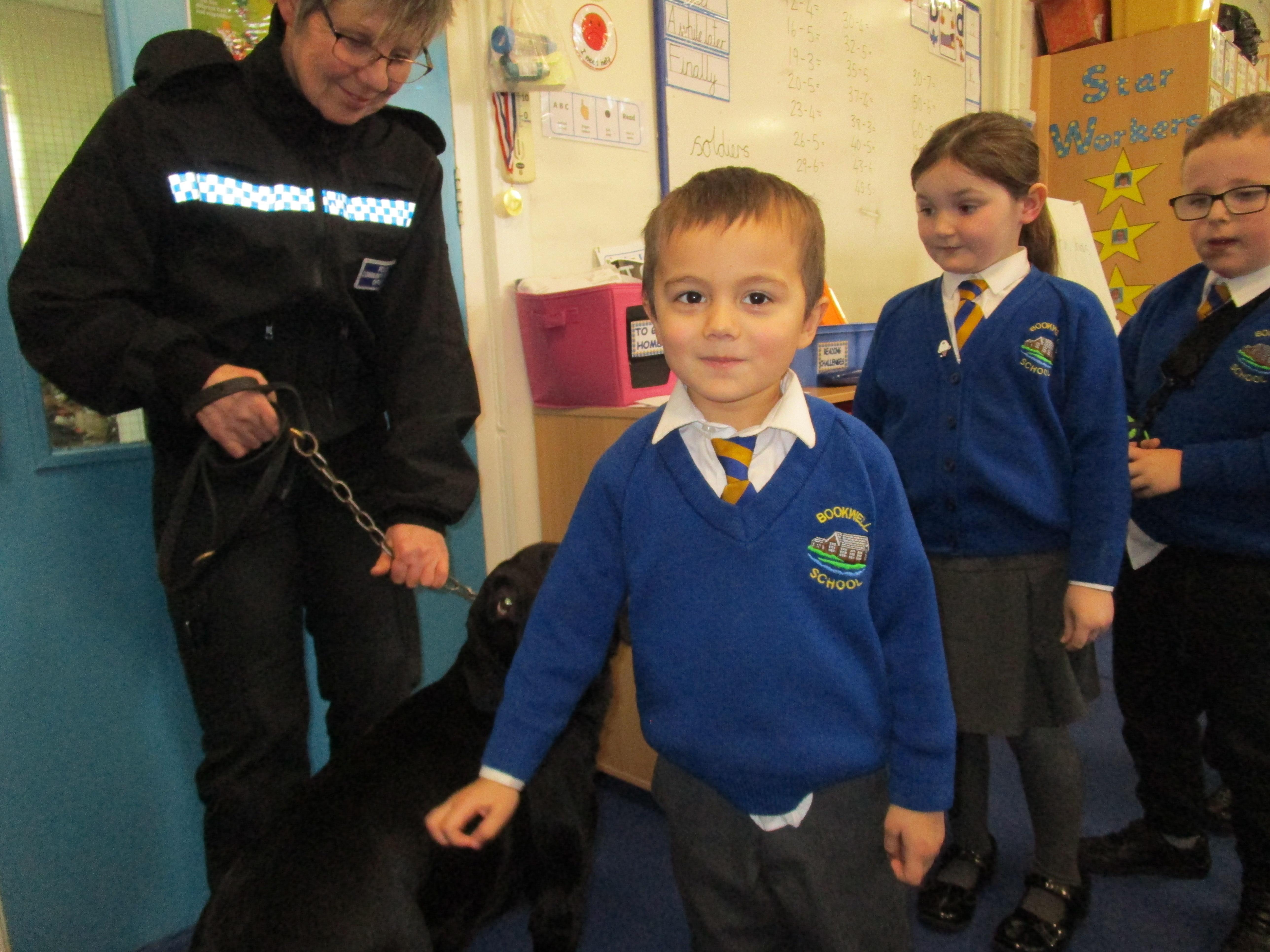 Today we were really lucky as we were visited by some PCSO's and they brought their police dog to meet the children.