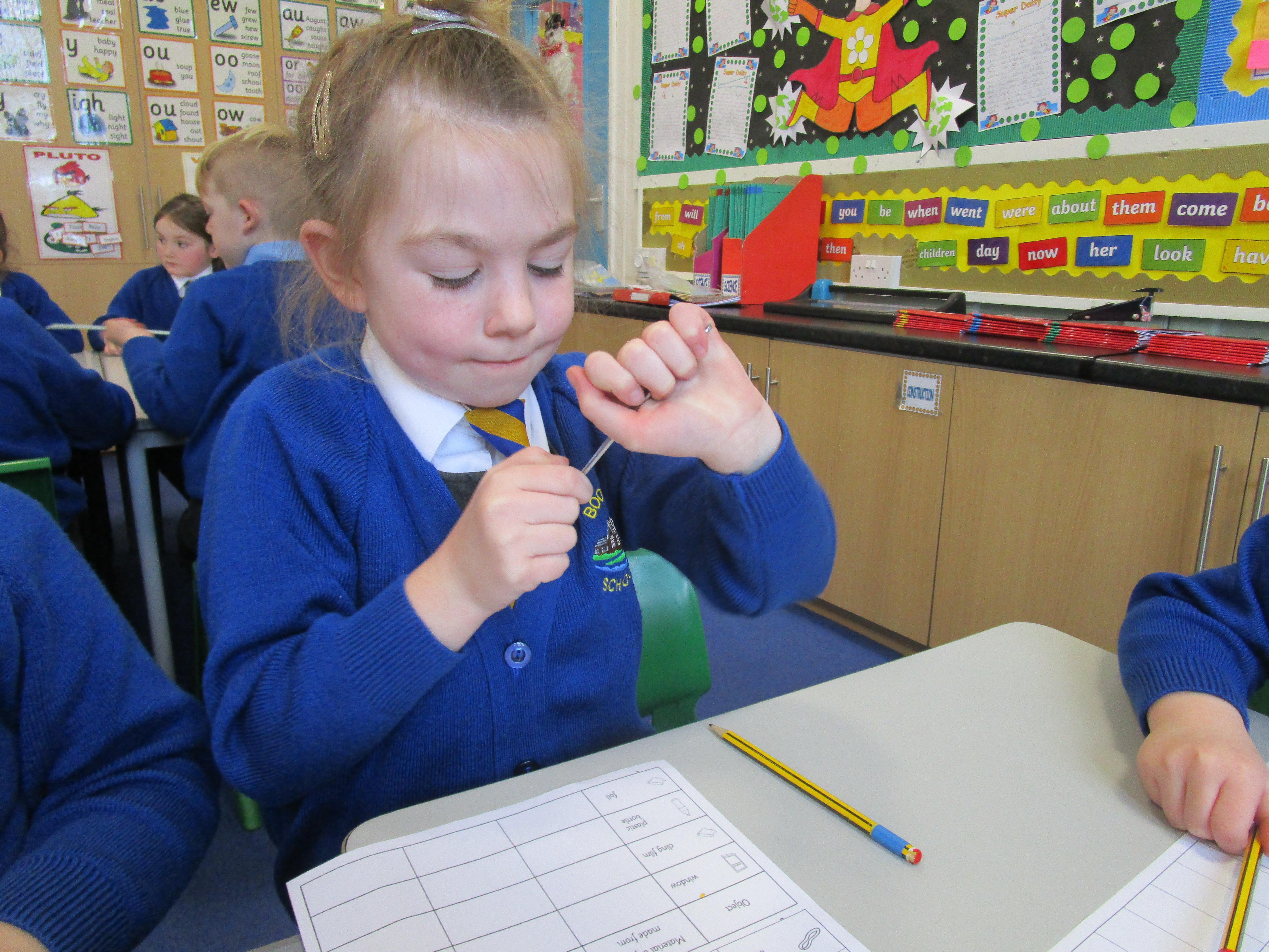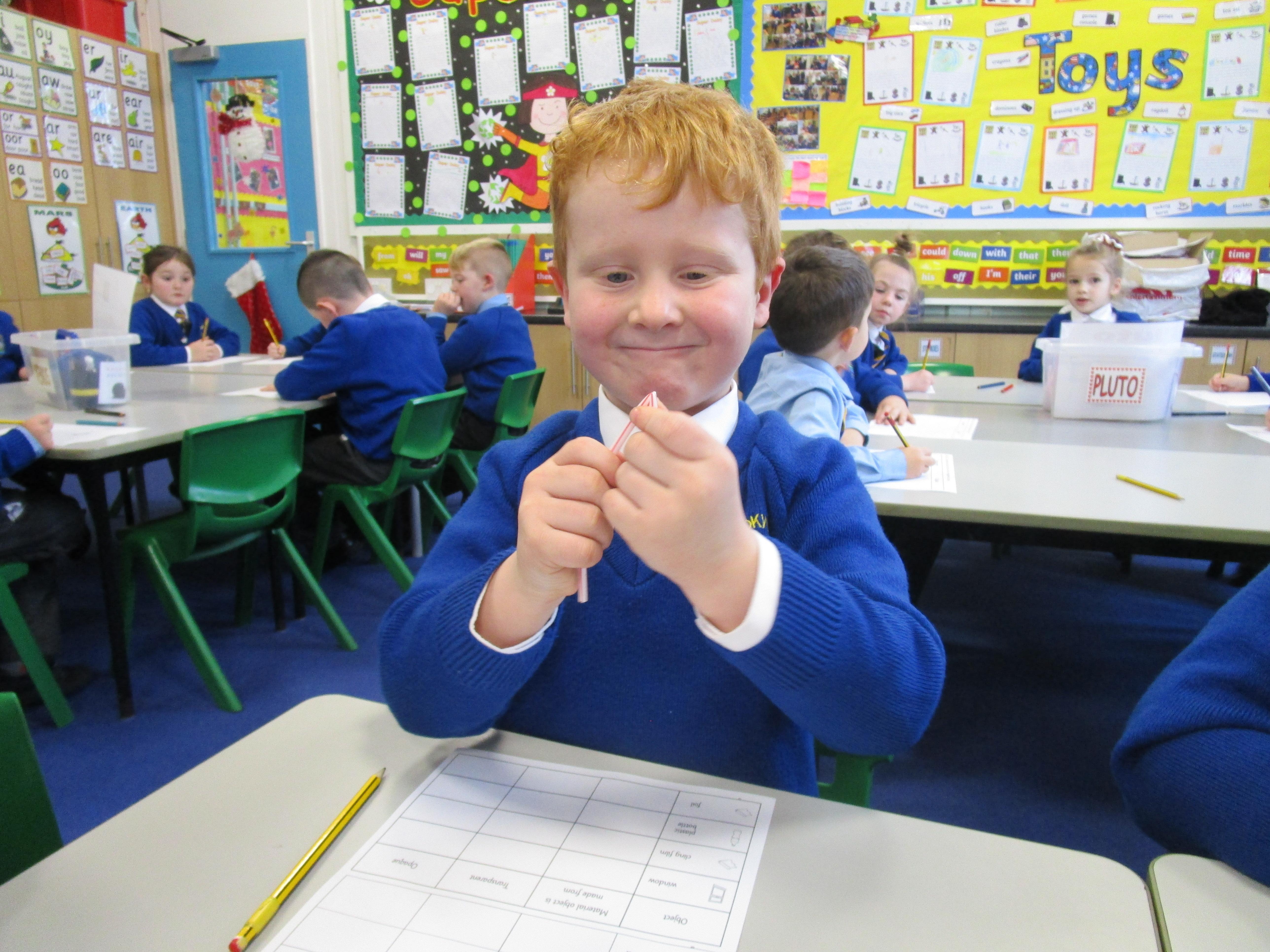 Today the children have been testing the properties of different objects. They had to check whether the objects were bendy or not and whether they were transparent or opaque.
