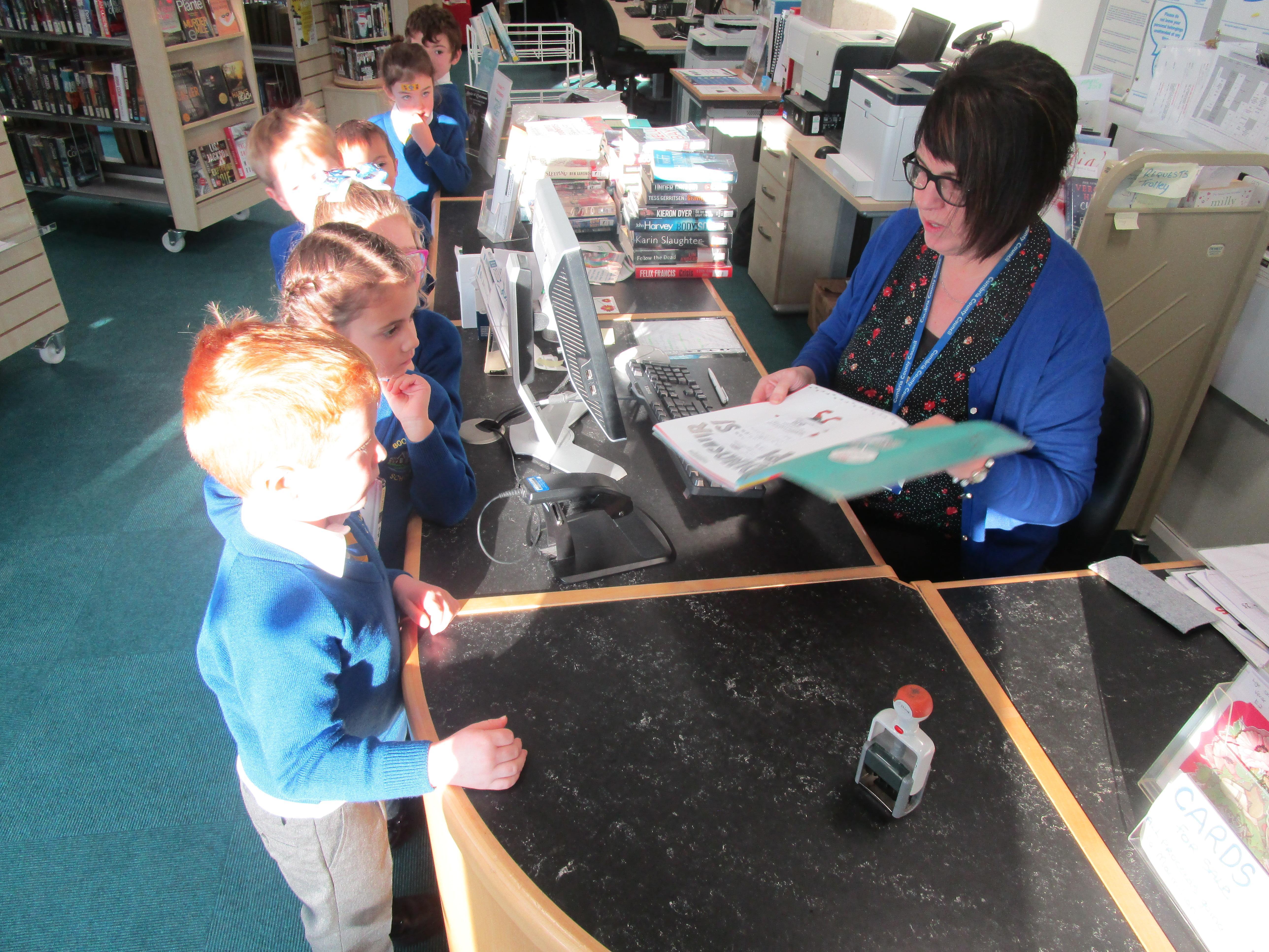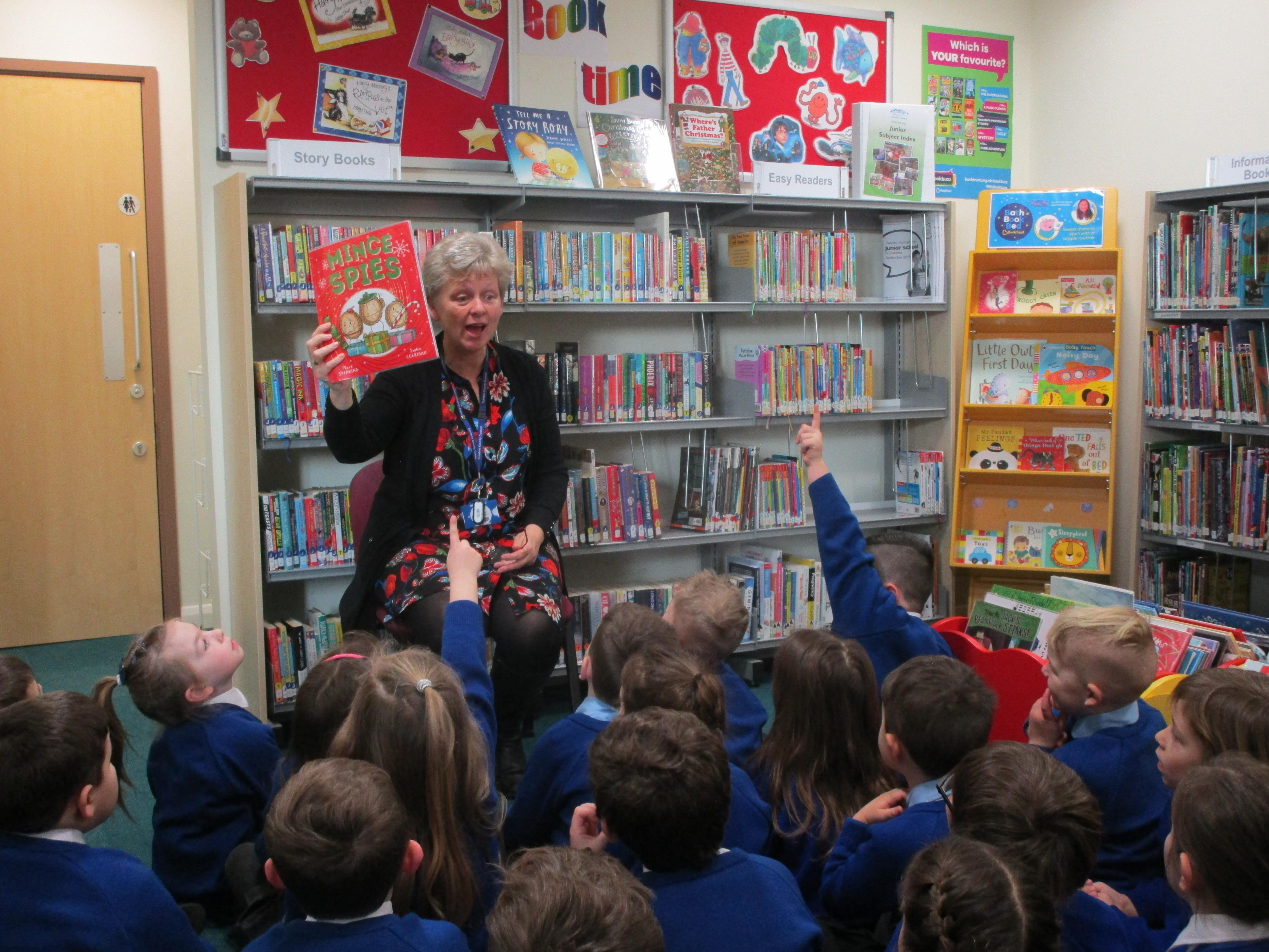 We had an excellent visit to the library today. First Ann read an exciting story called 'Mince Spies' to the children and then they got the chance to borrow a book from the library. Many thanks to Ann and Tracy for such a fantastic visit!