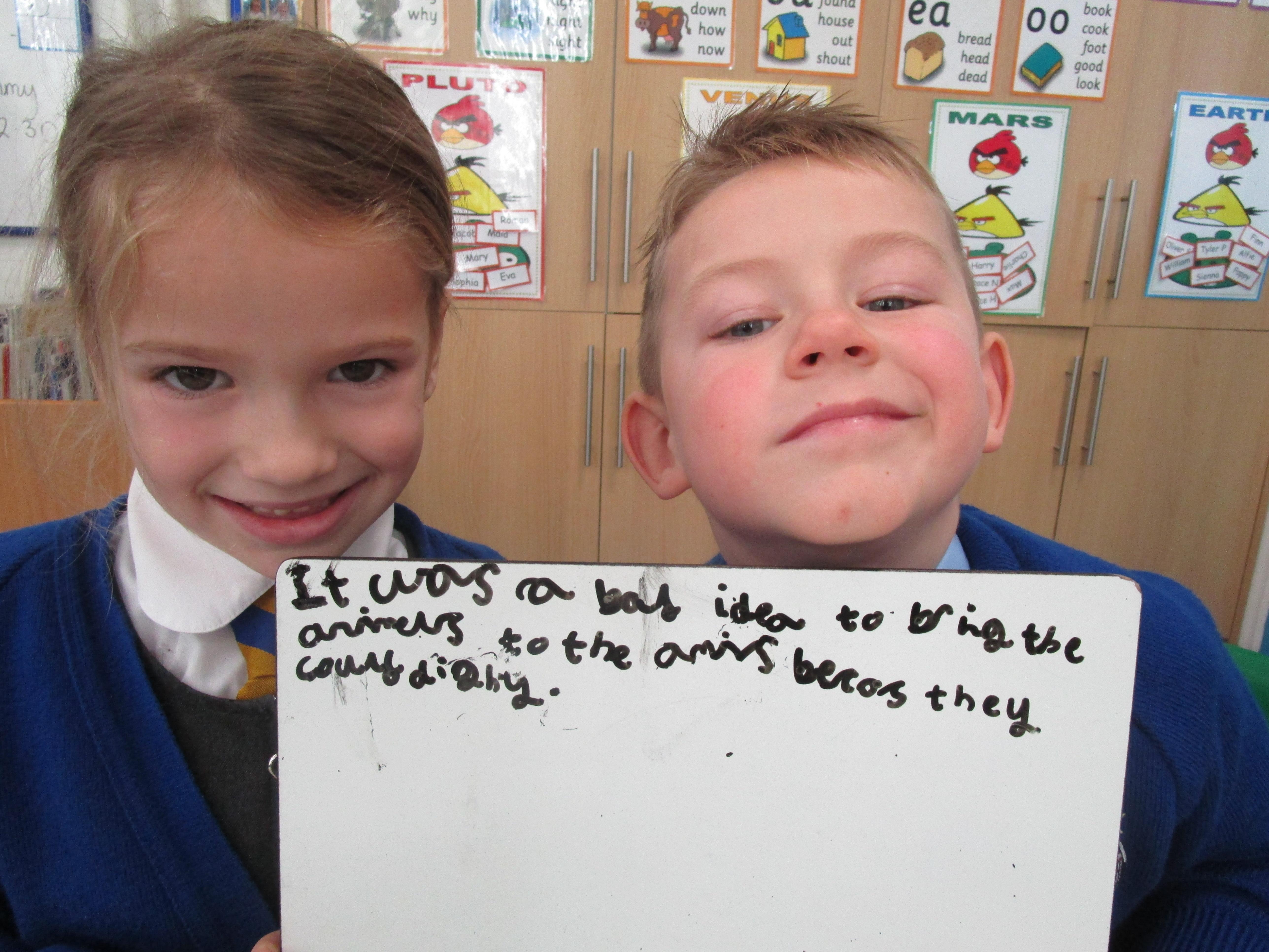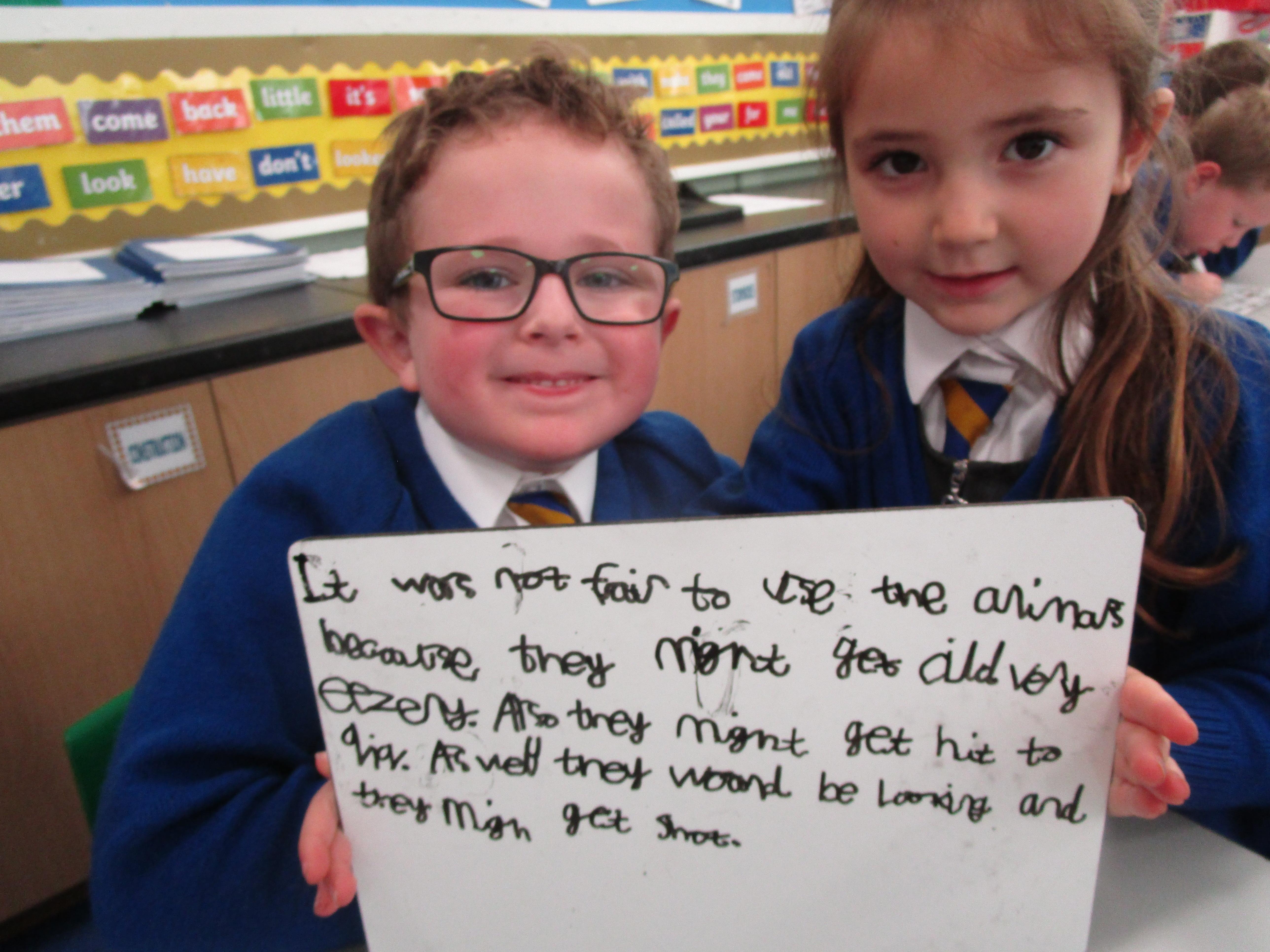 We have been learning about World War 1 this week. We discussed how animals helped the efforts of the soldiers in the war and the children had to decide whether this was fair or not. Later on in the week the children had to write facts about animals in the war in their English books.