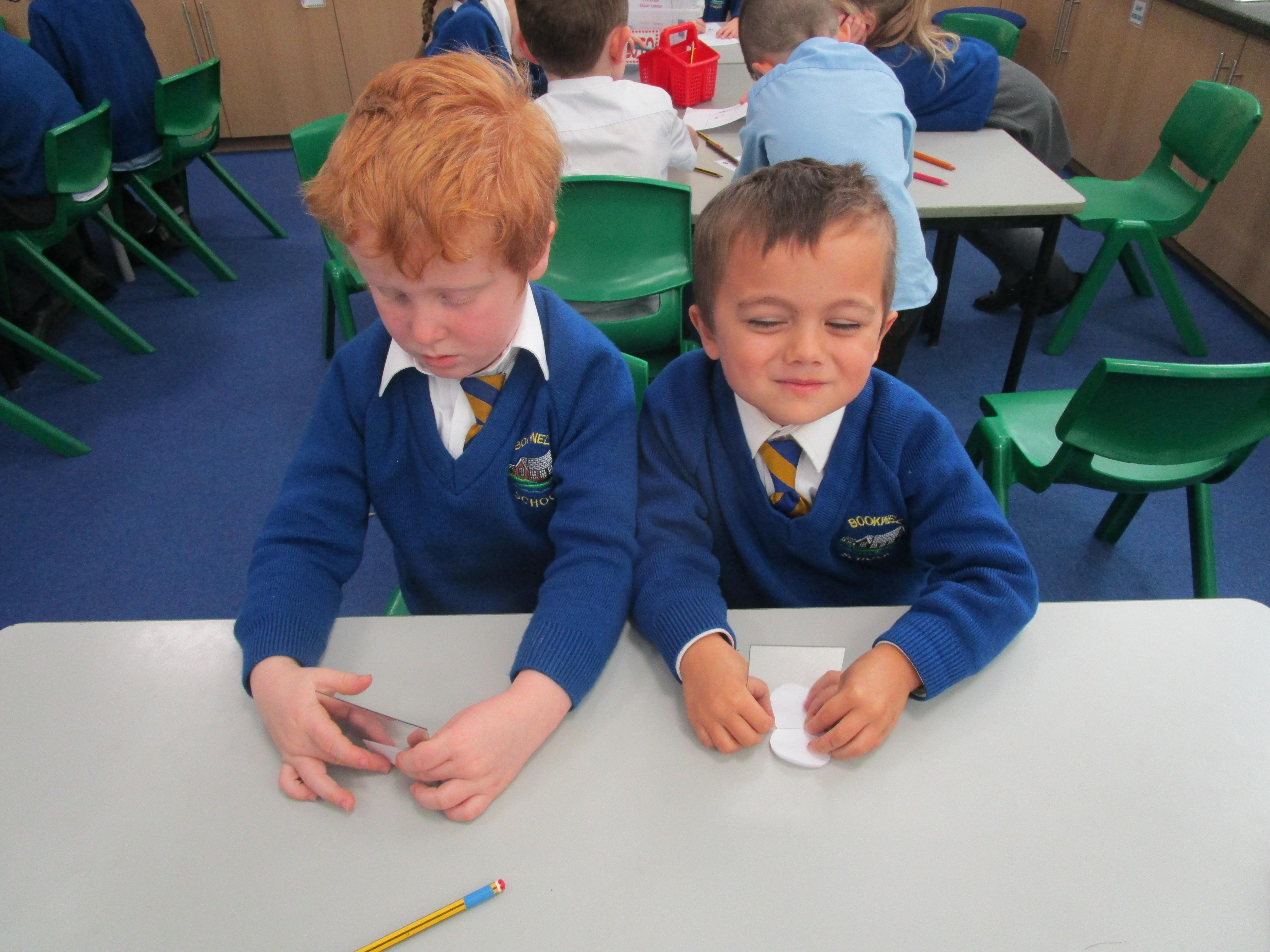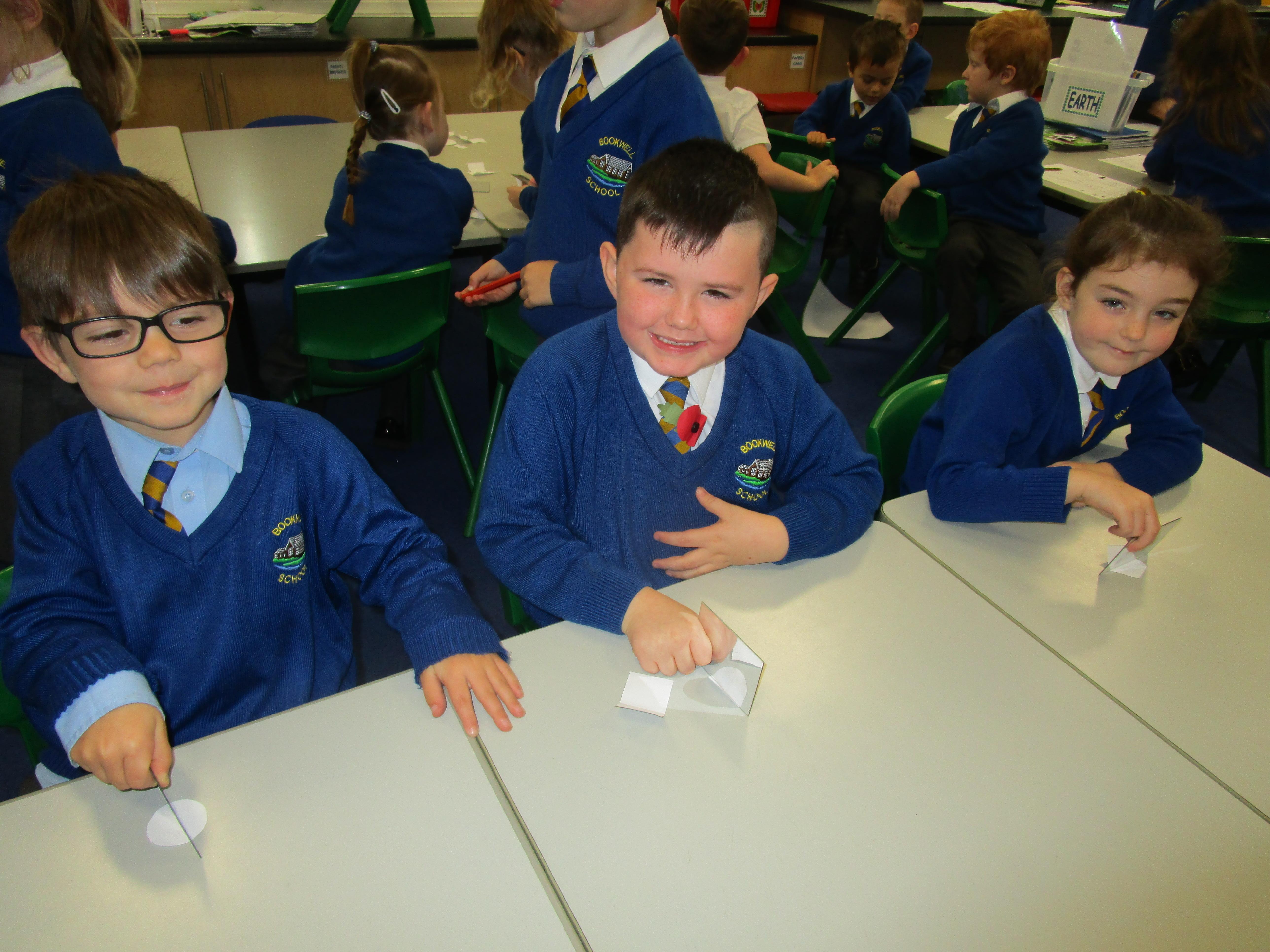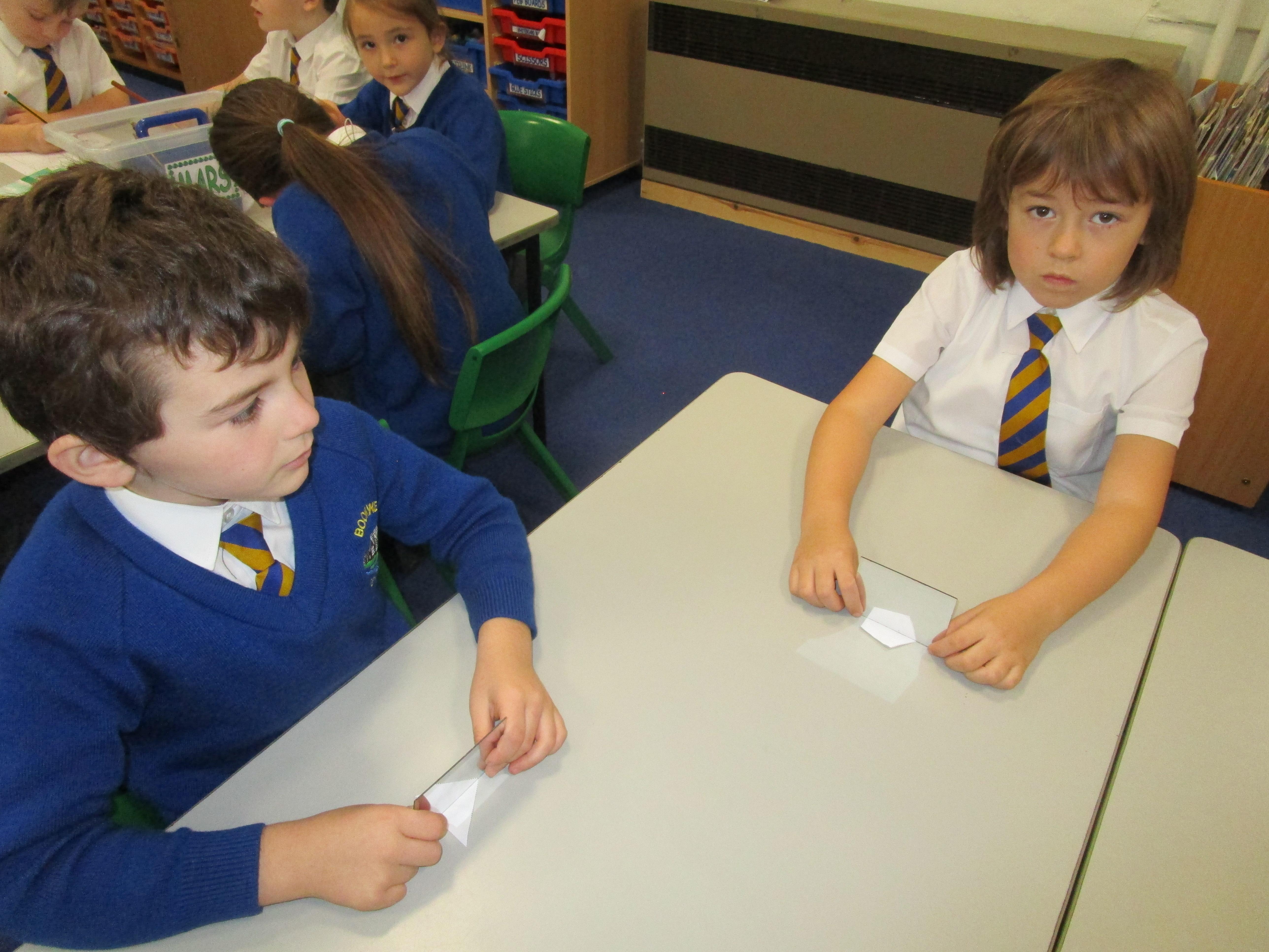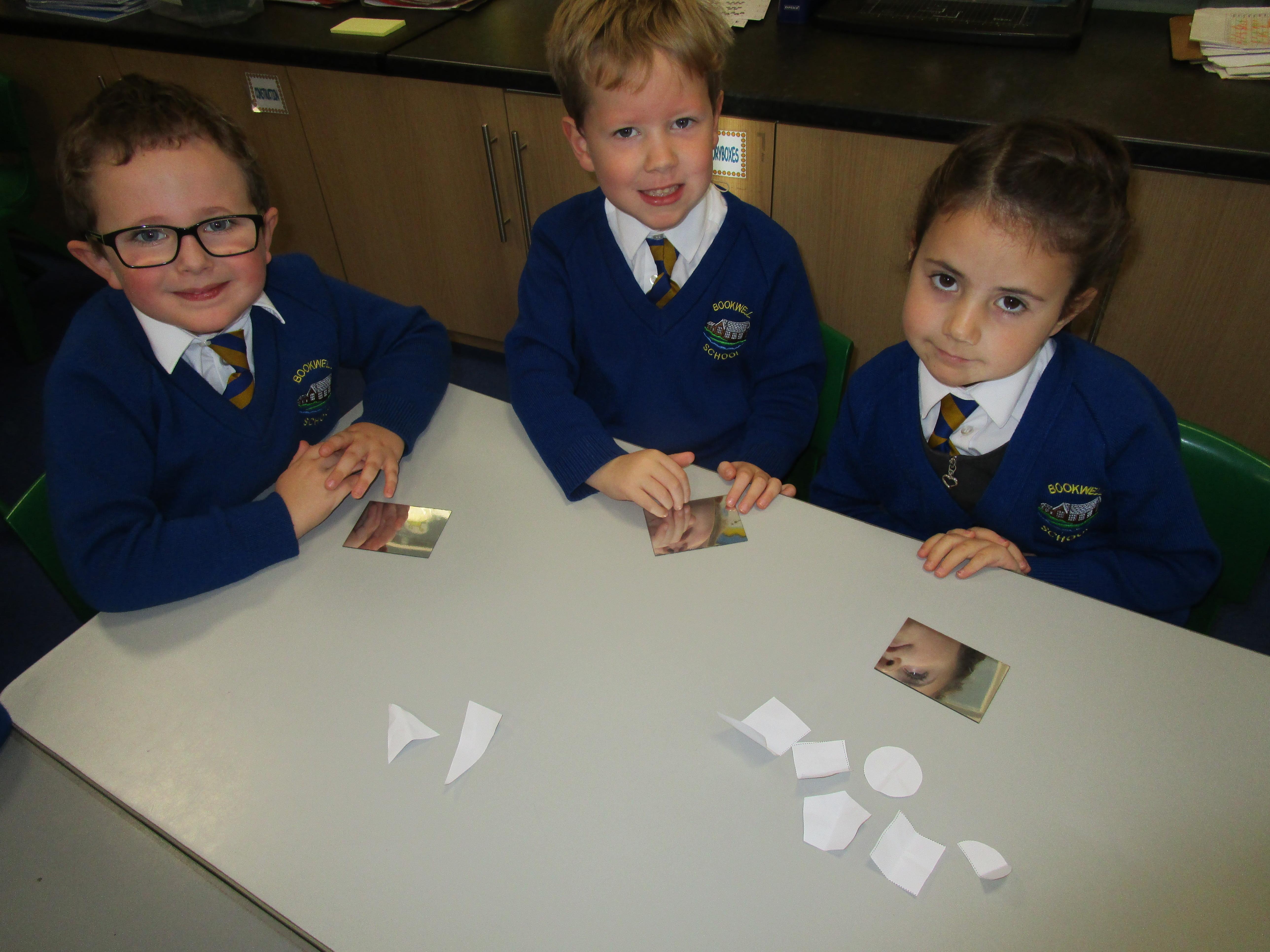 Today the children have been working with Mrs Borewell exploring symmetry. First they had to fold shapes to find lines of symmetry and then they had to identify which shapes were symmetrical in their workbooks.