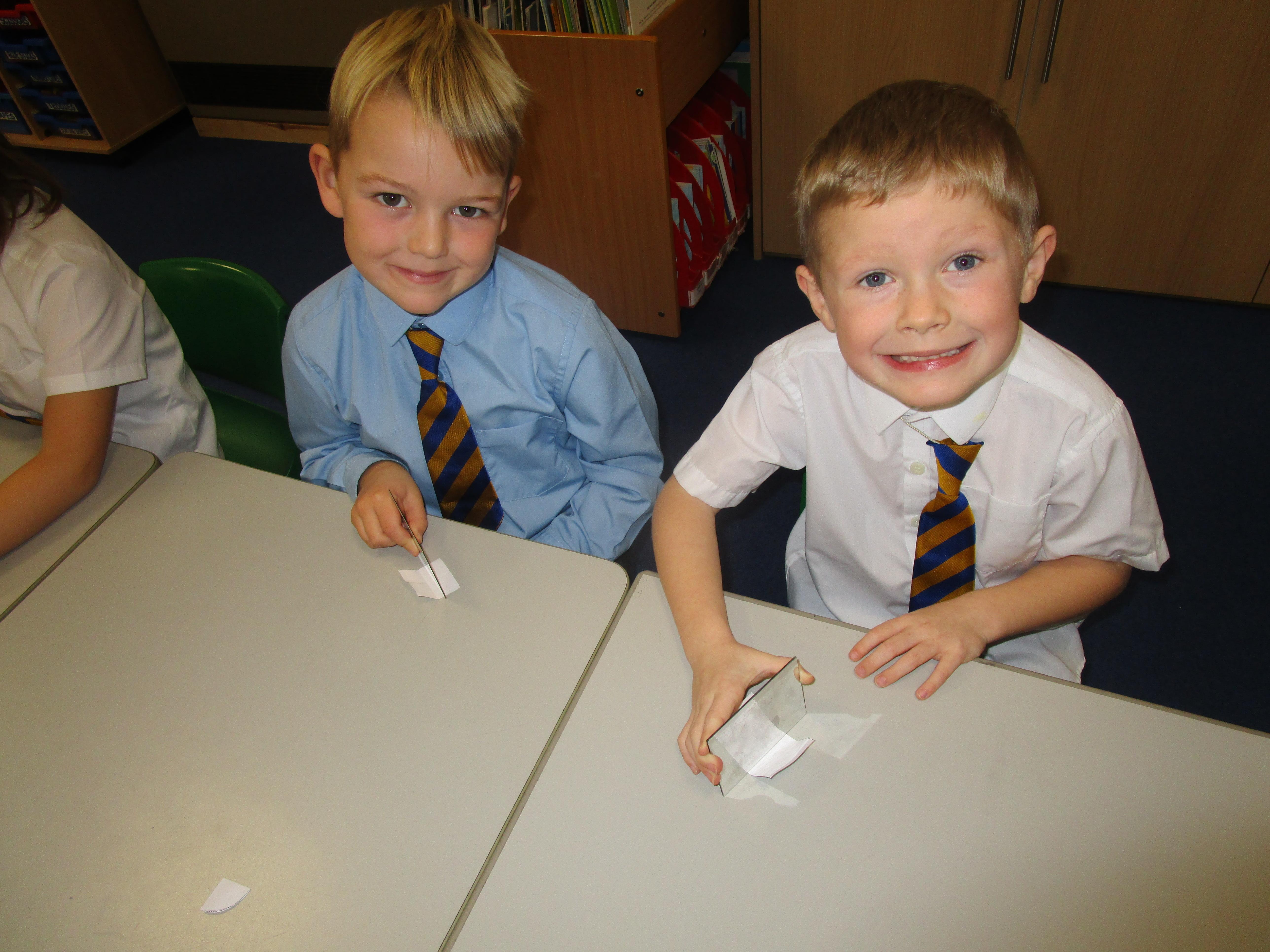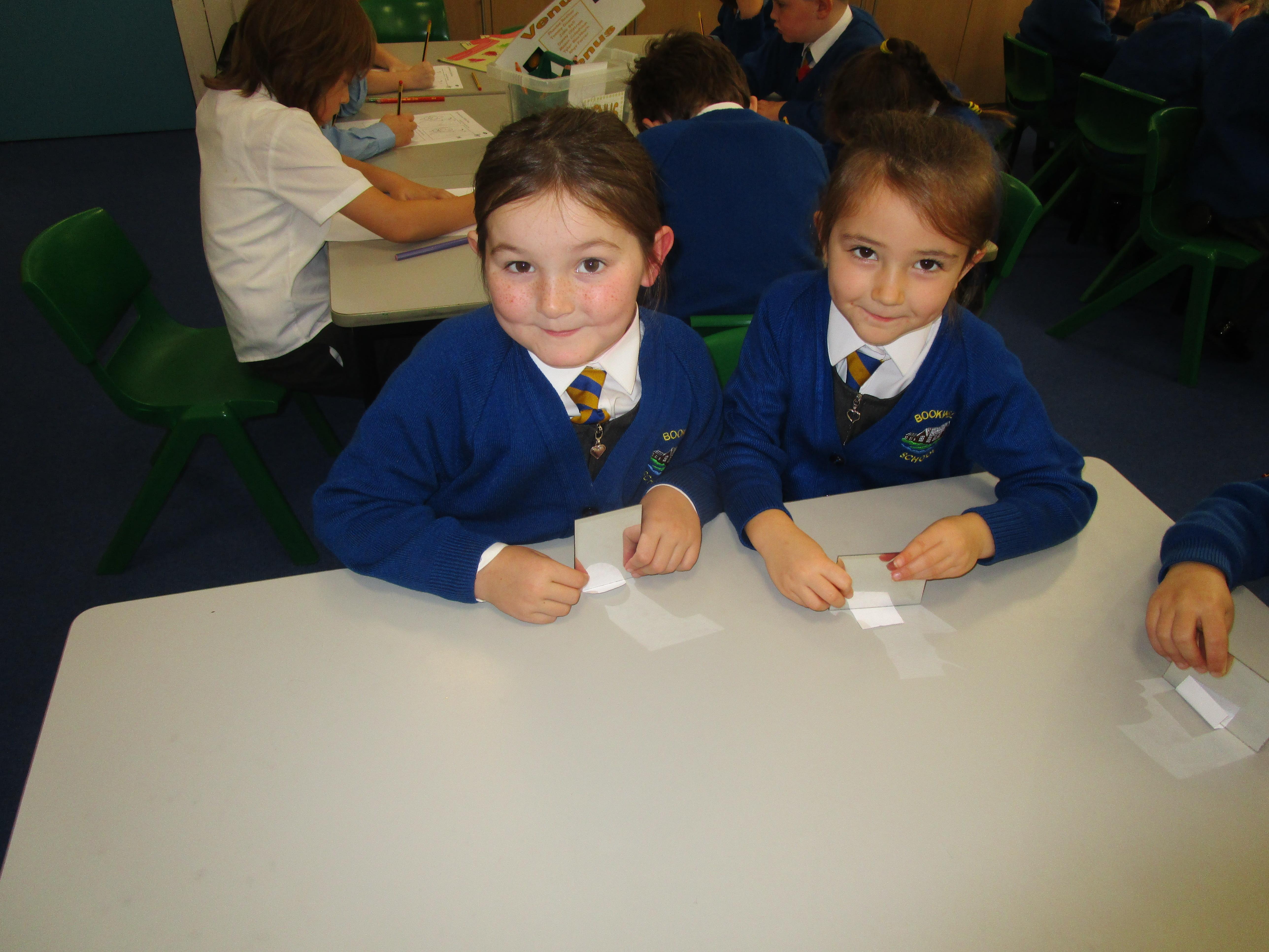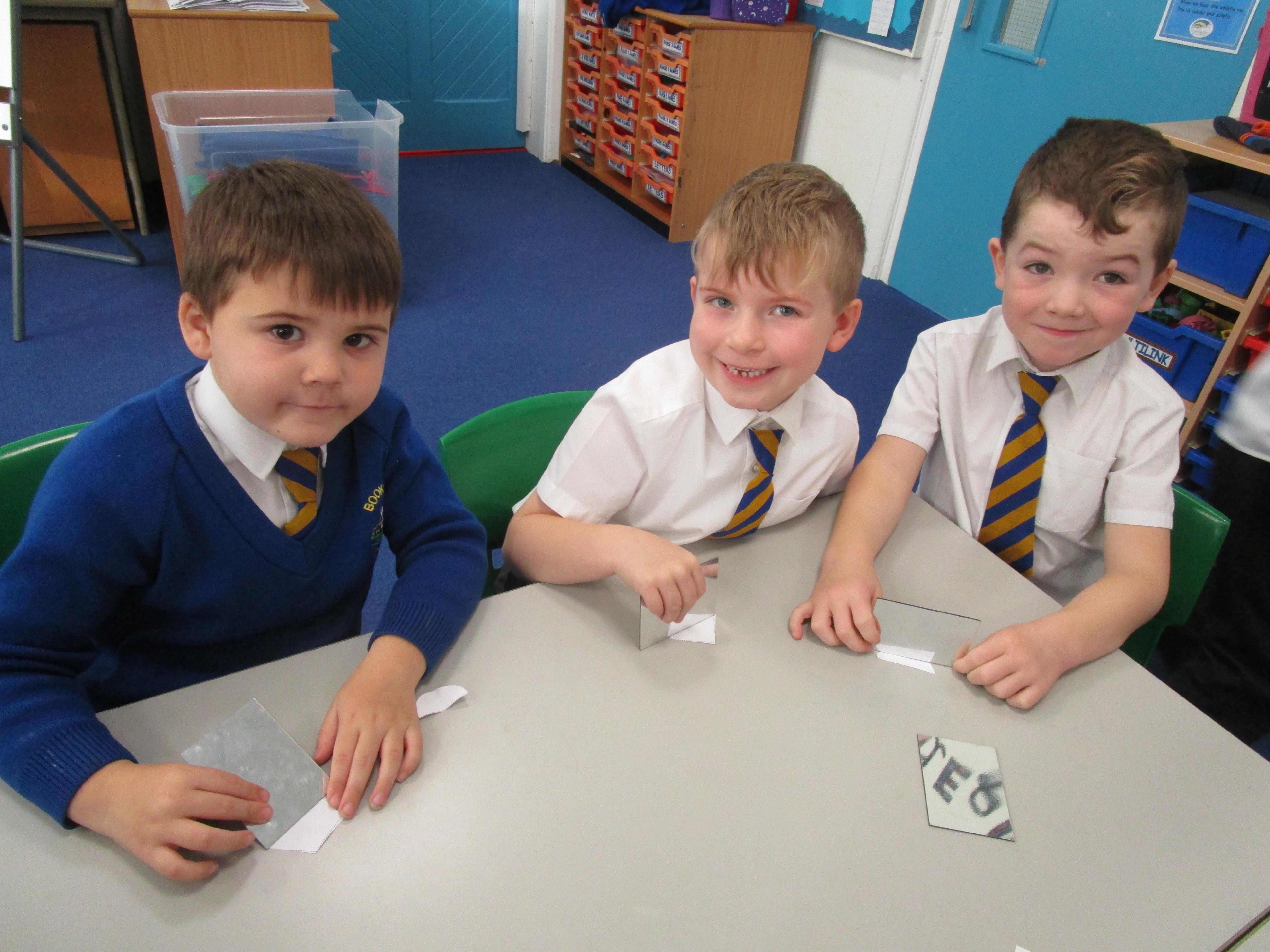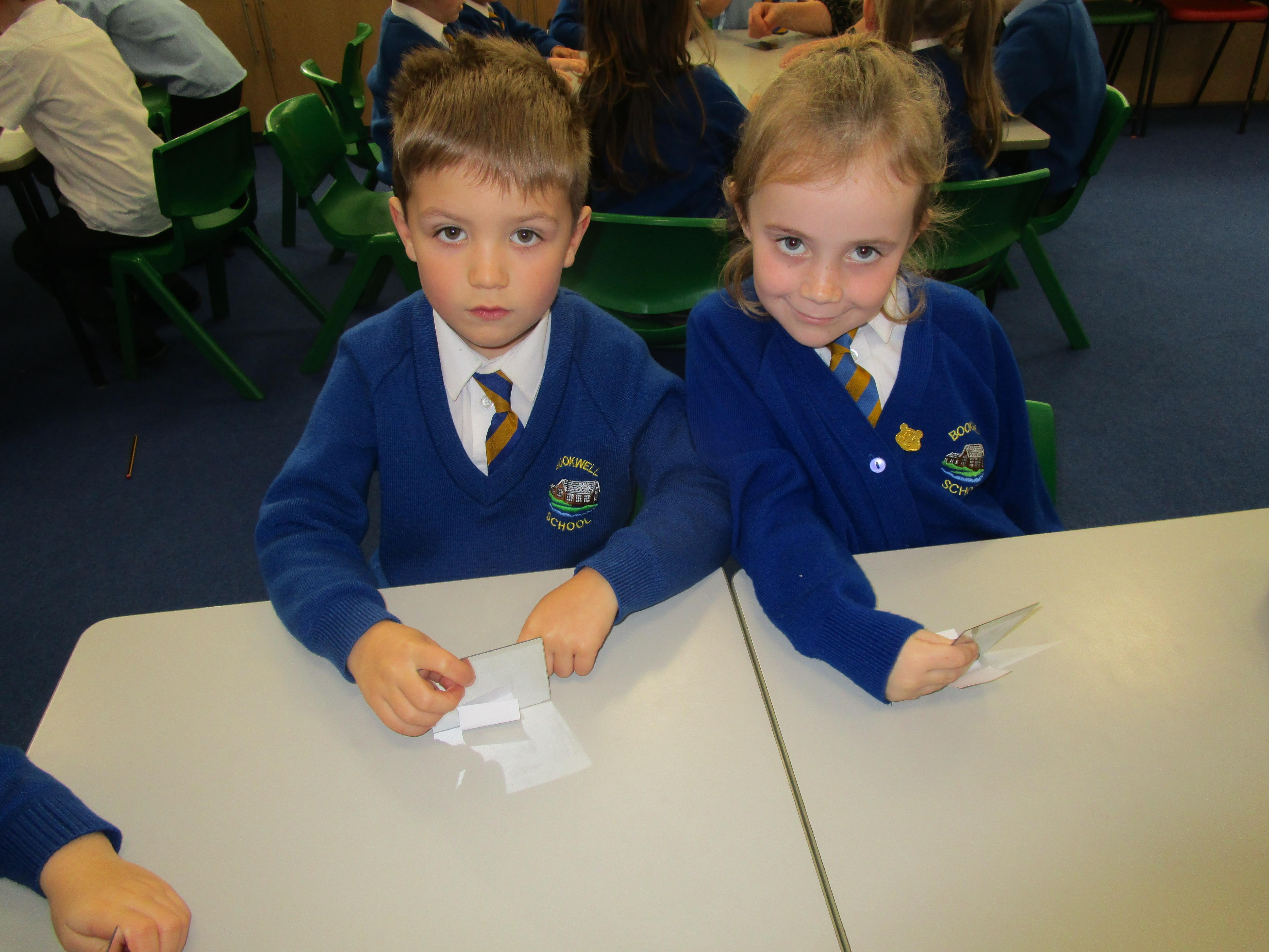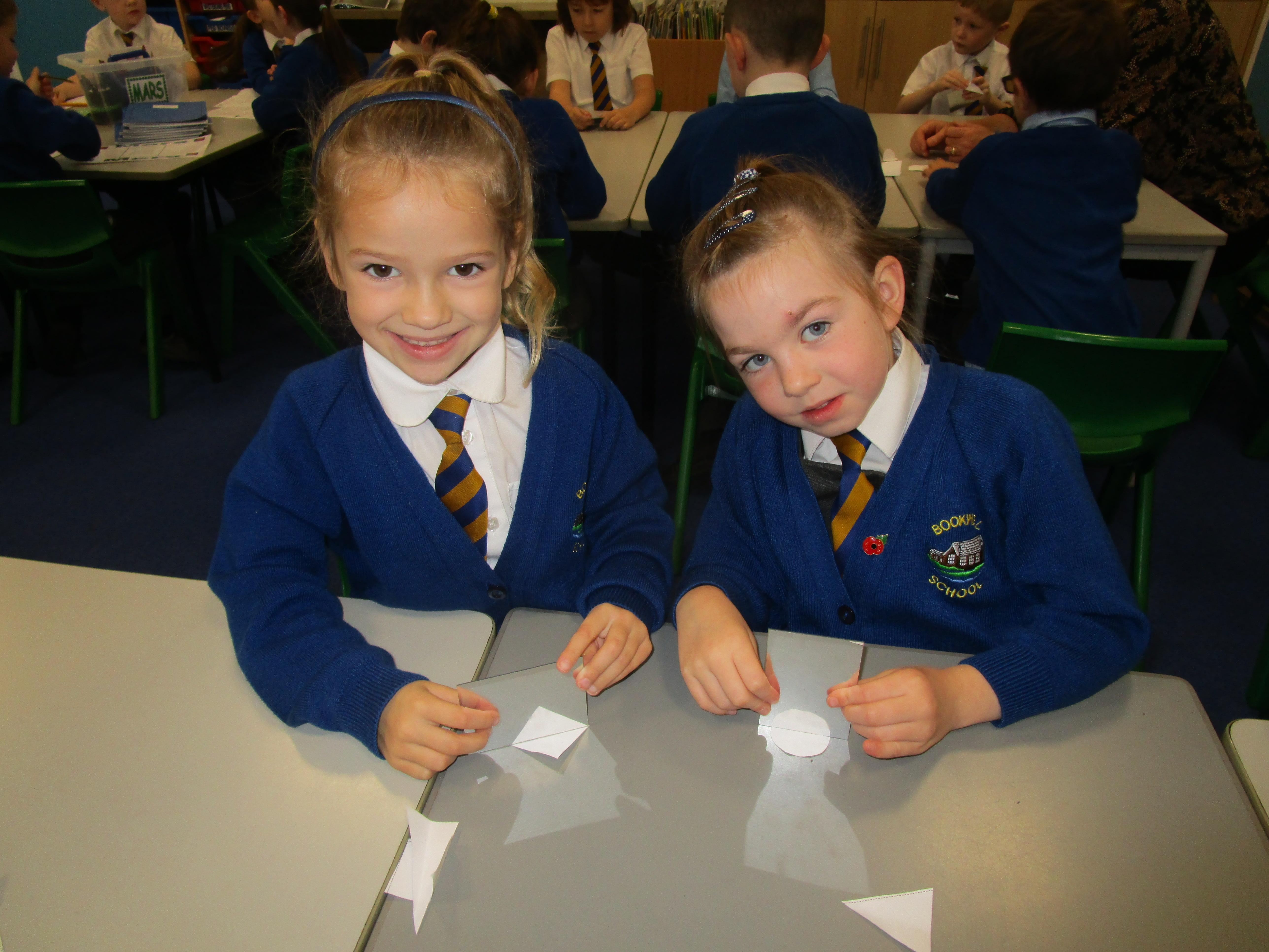 Today the children have been working with Mrs Borewell exploring symmetry. First they had to fold shapes to find lines of symmetry and then they had to identify which shapes were symmetrical in their workbooks.