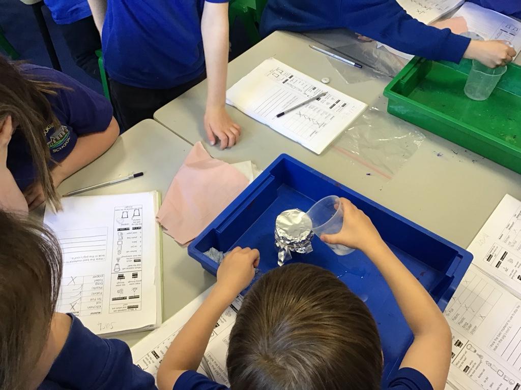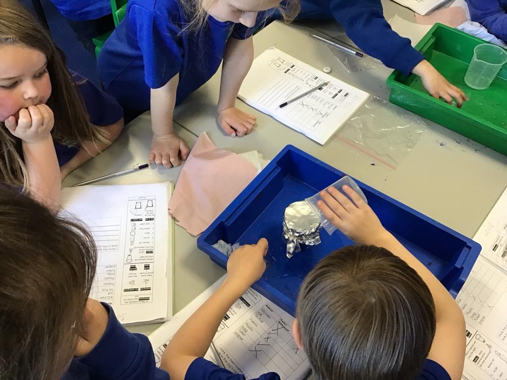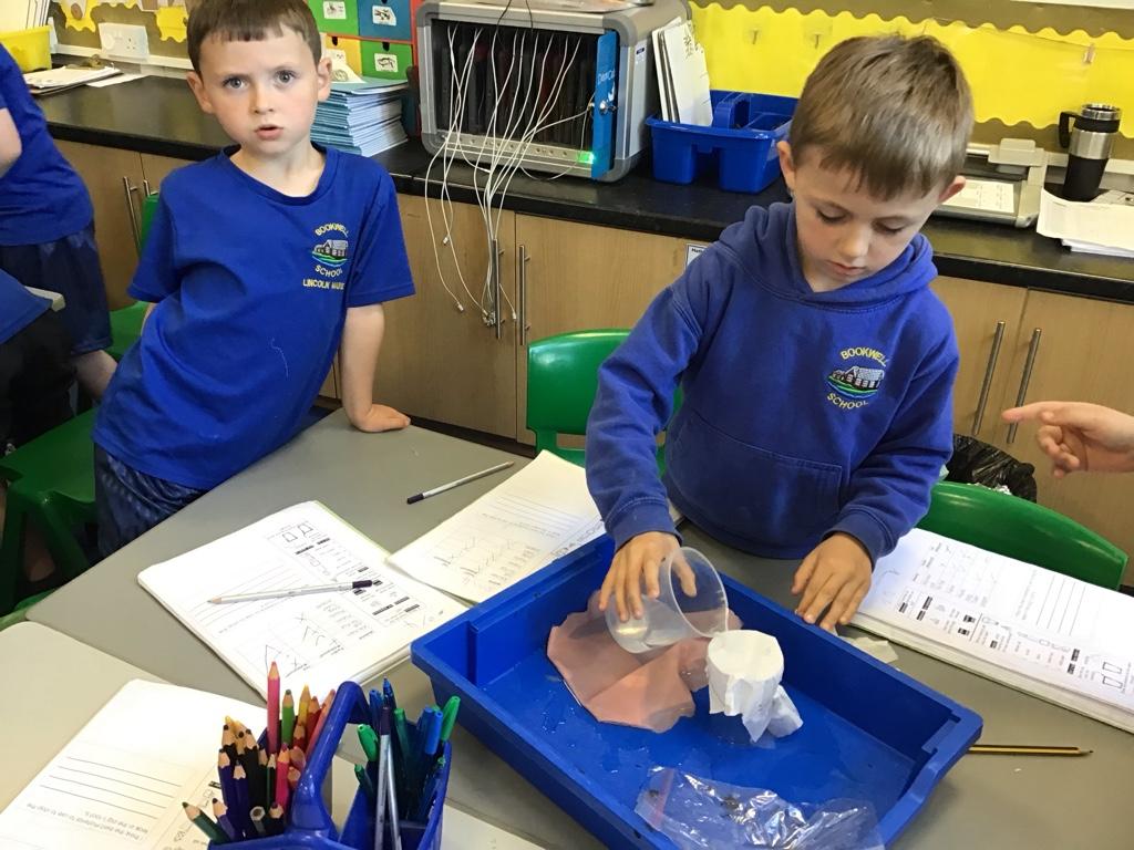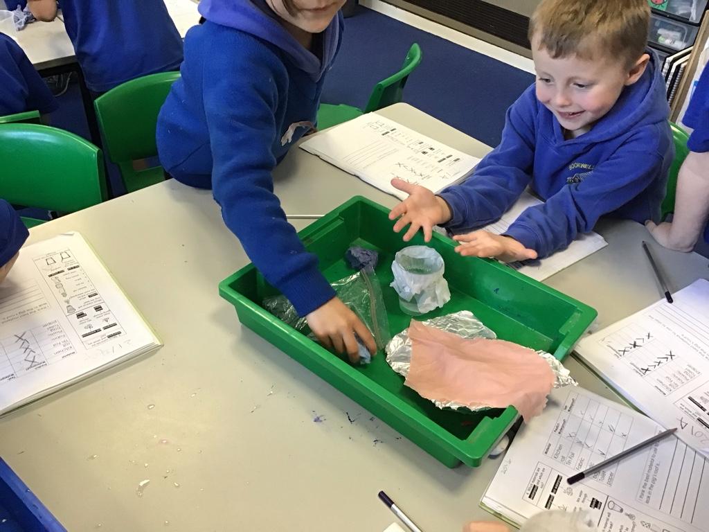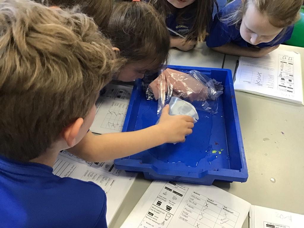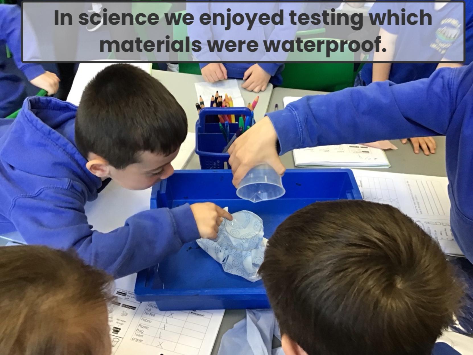 We enjoyed testing different materials to find out if they were waterproof or not.