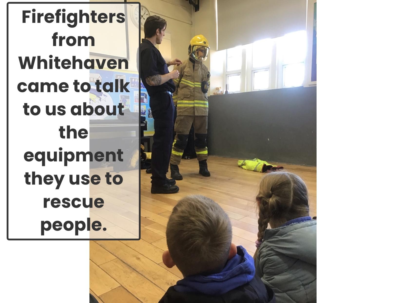 As part of our history topic we have enjoyed a visit from Whitehaven fire engine. We learnt all about the things they use when rescuing people.