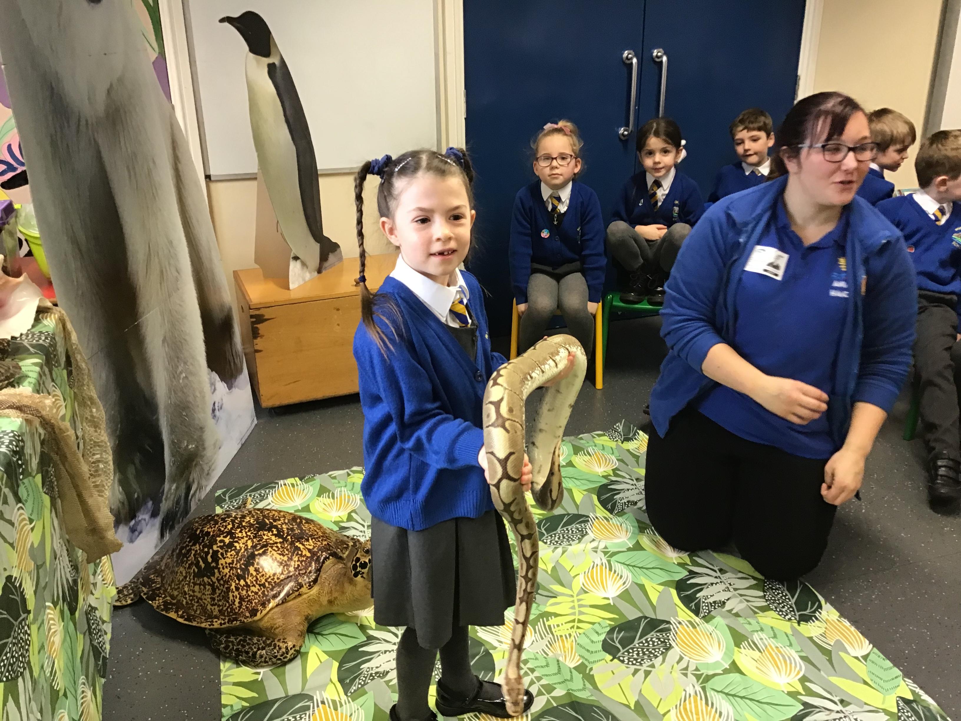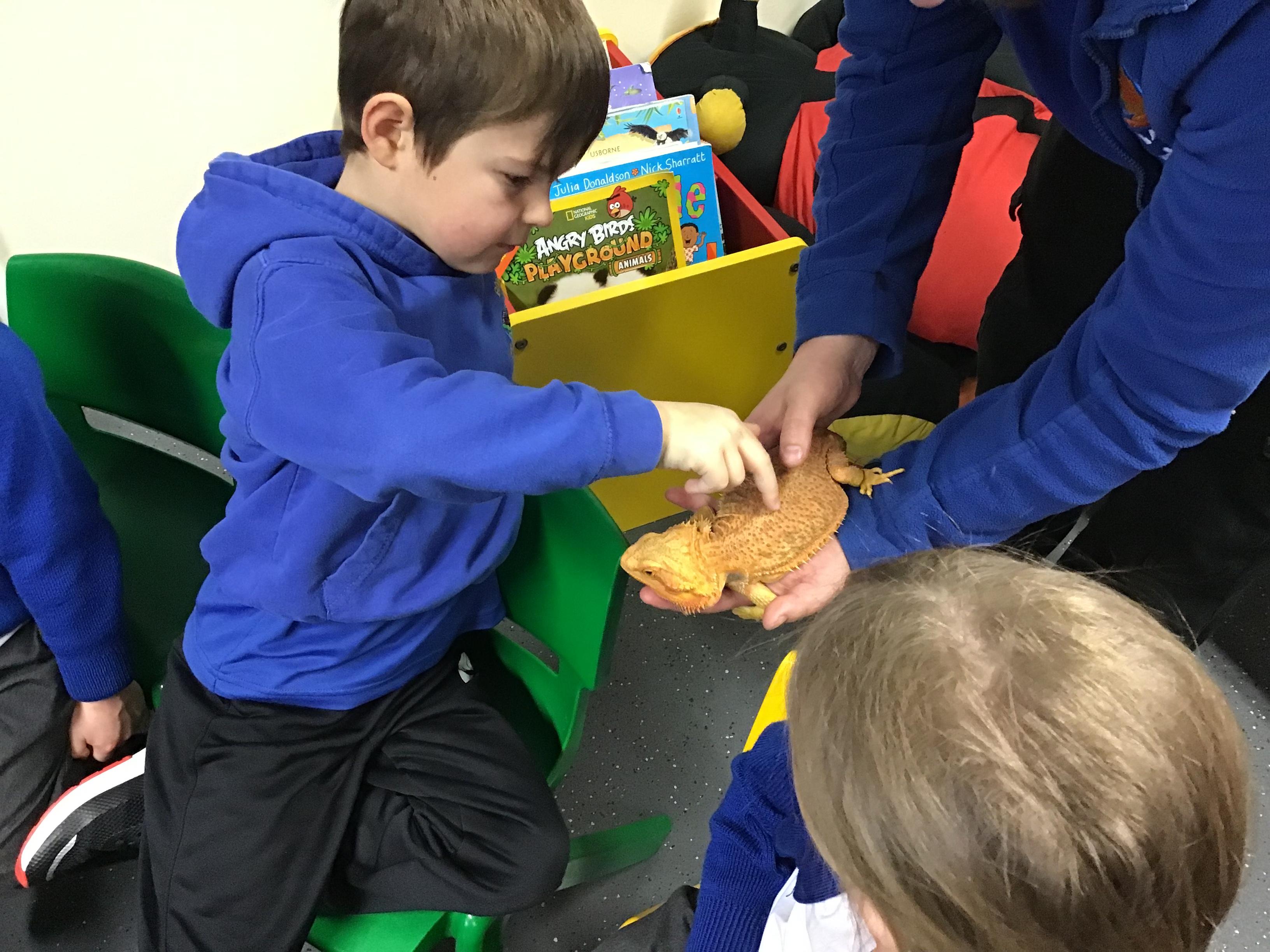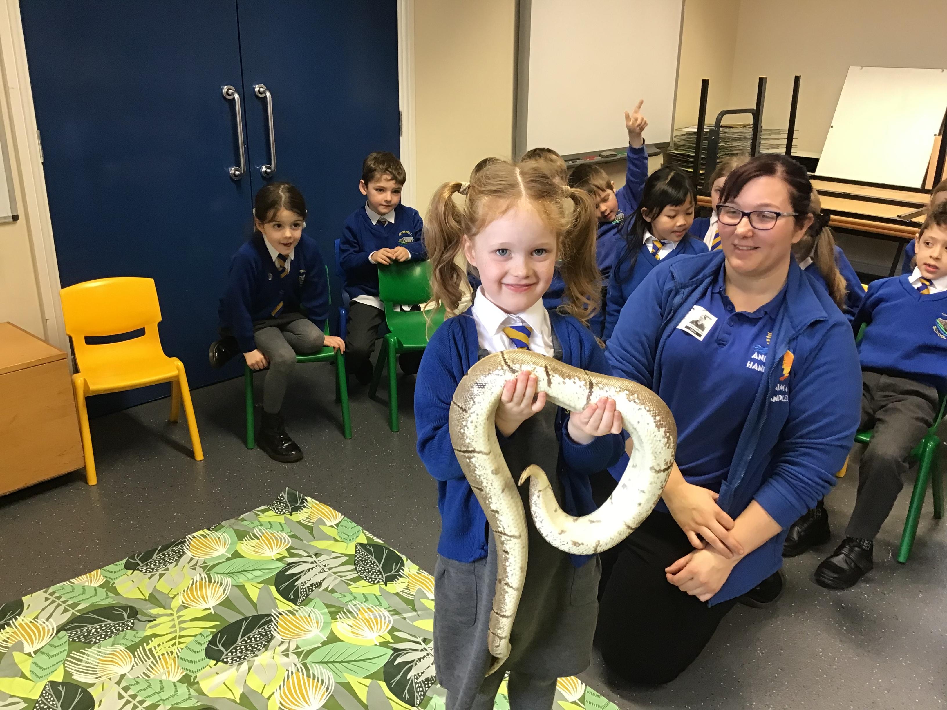 In science we have been learning what an animal is. We also learnt to classify them as mammals, birds, amphibians, reptiles and fish. We enjoyed a visit from Pet Encounters to show us some real animals so we could look for their features. We also explored humans senses.