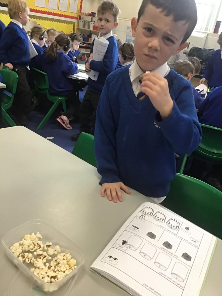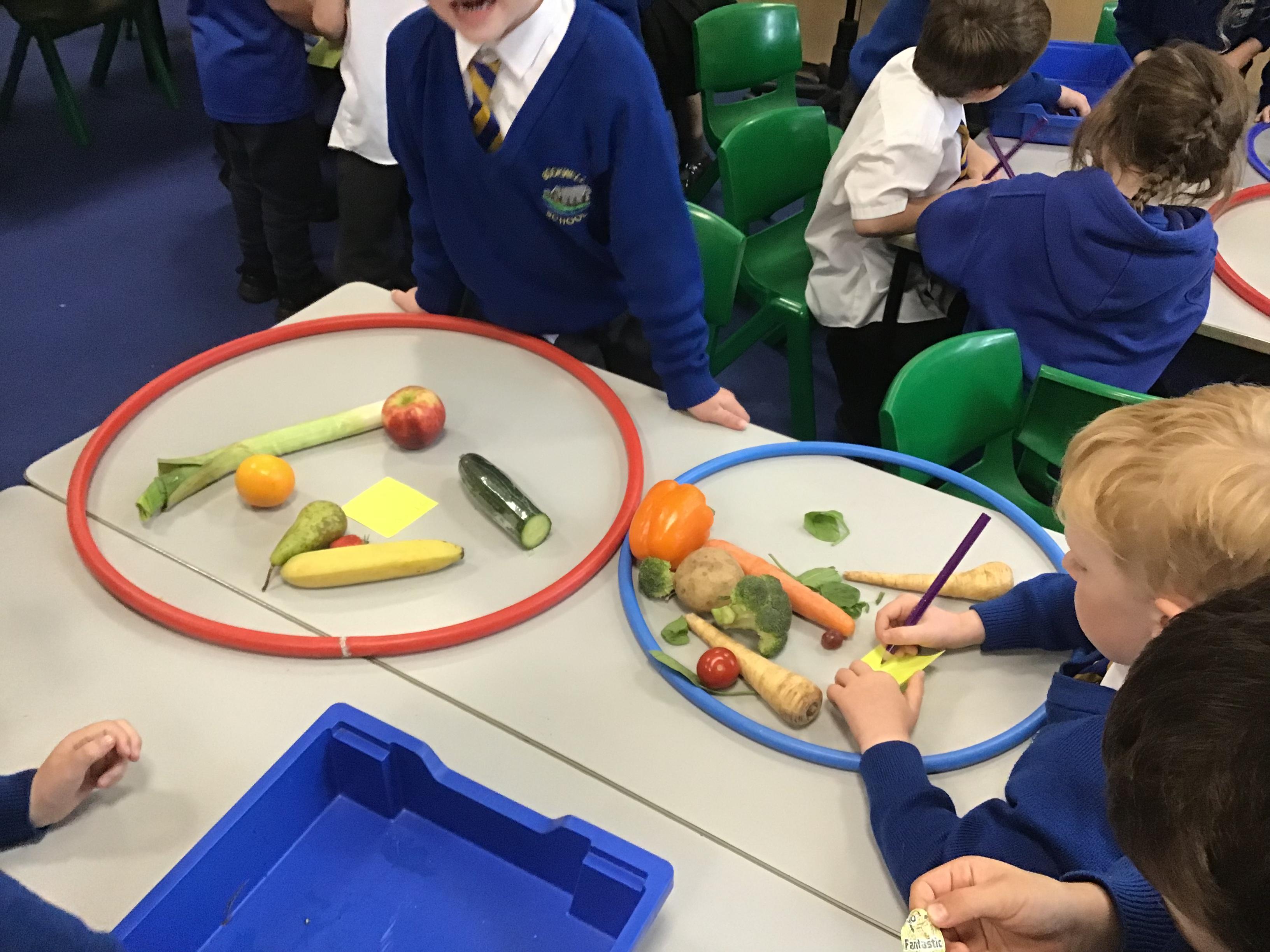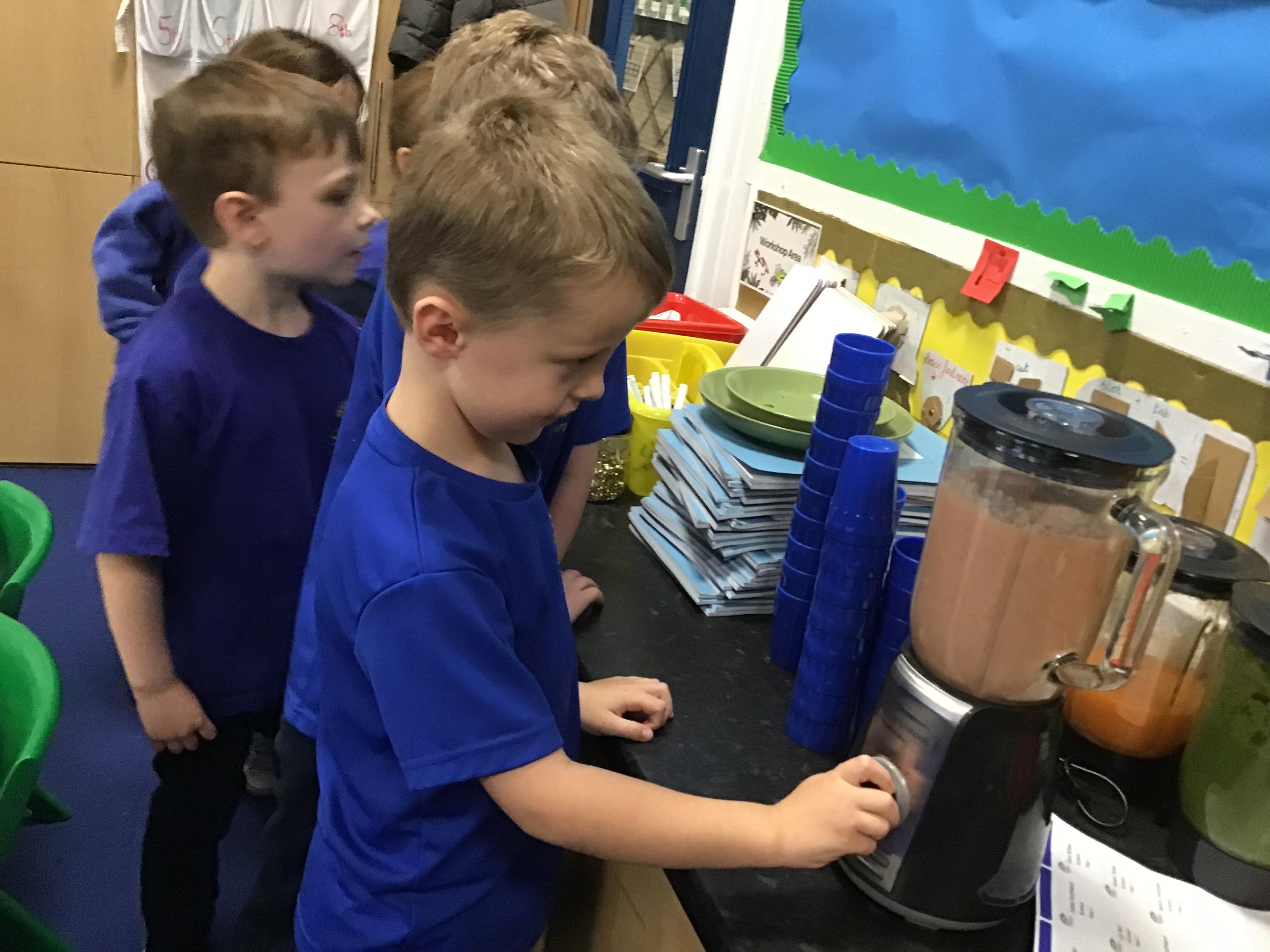 We have been busy learning what fruits and vegetables are, tasting them to help us decide what smoothie we wanted to make.