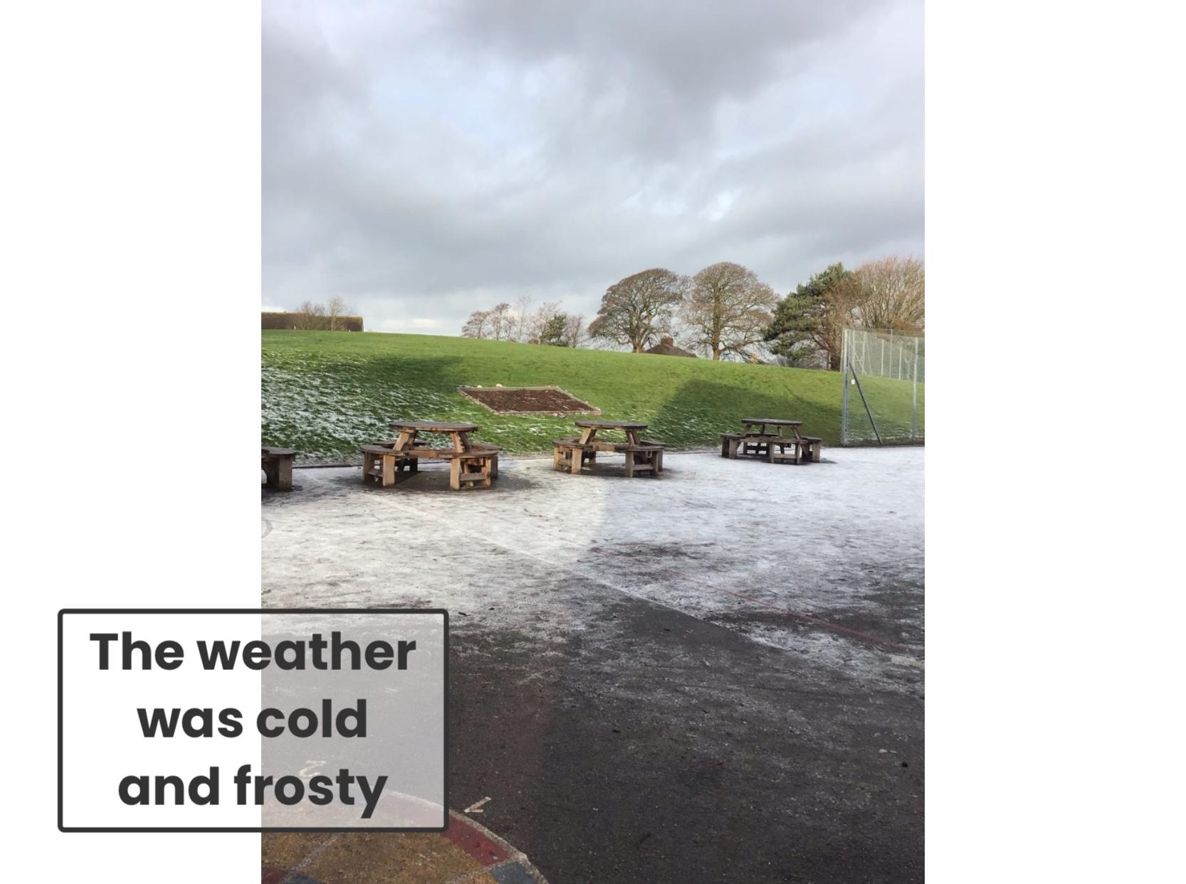 Every month we head out and observe what has changed around school. In January it was very cold.